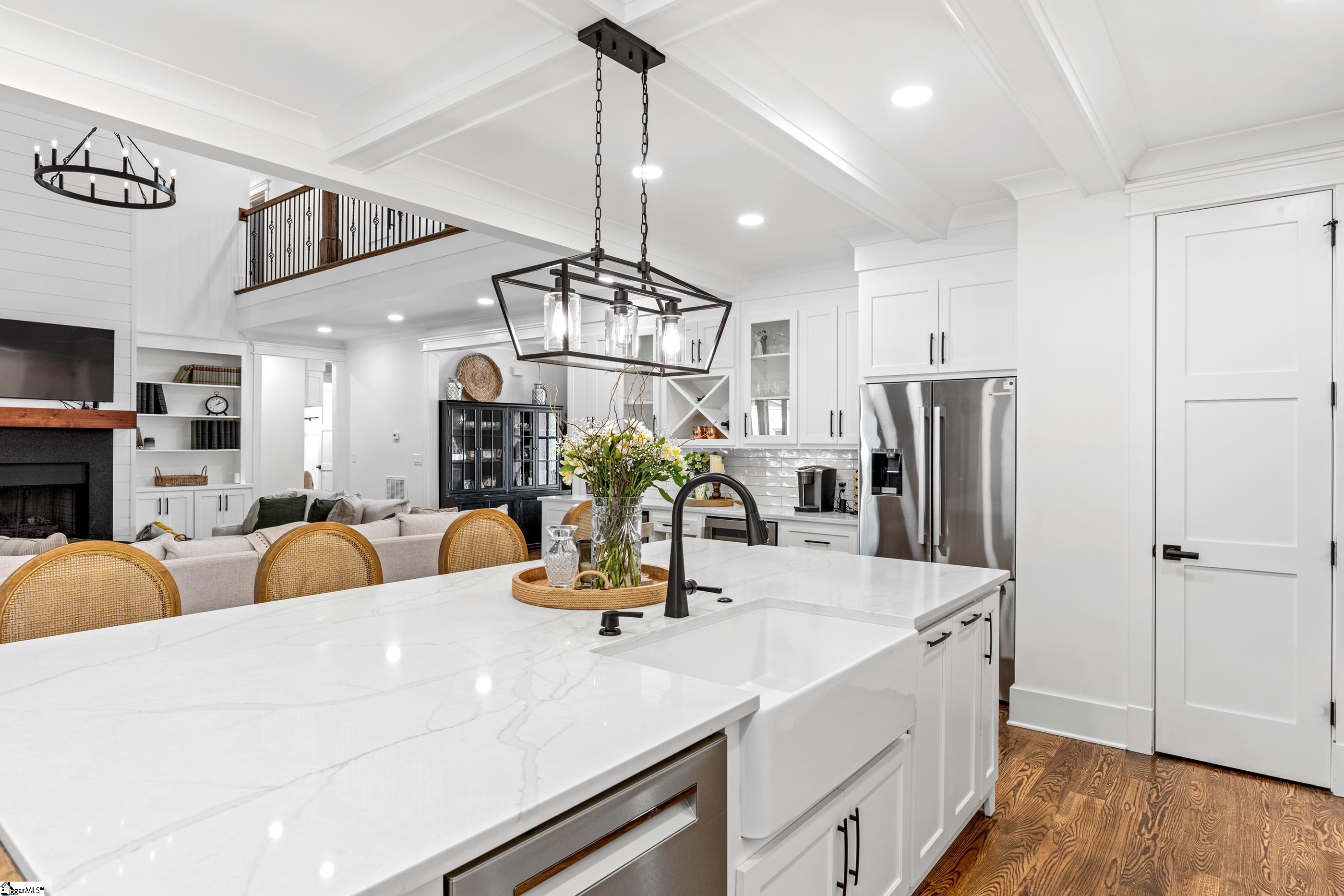 Welcome to this newly built custom family home, perfectly located in the heart of everything you need, just minutes from shopping, dining, and everyday conveniences. Thoughtfully designed with both style and function in mind, this home features a stunning open floor plan with a dedicated office, spacious walk-in laundry room, and convenient drop zone. The expansive great room flows seamlessly into a chef’s kitchen complete with a large prep area, abundant counter space, and premium features including a beverage center, icemaker, refrigerator, gas stove, and ample room for baking and entertaining. The adjoining dining area overlooks a fully fenced backyard and opens to a generous screened porch, ideal for both dining and relaxing. The main-level primary suite offers a private retreat with a luxurious ensuite bath featuring a soaking tub, separate shower, and a large walk-in closet with custom cabinetry. Upstairs, you’ll find three oversized bedrooms, two full baths, and an expansive bonus room perfect for entertaining, movie nights, or hosting guests. Additional highlights include a two-car garage with abundant storage. Meticulously maintained and move-in ready, this exceptional home is ready for you to make it your own!