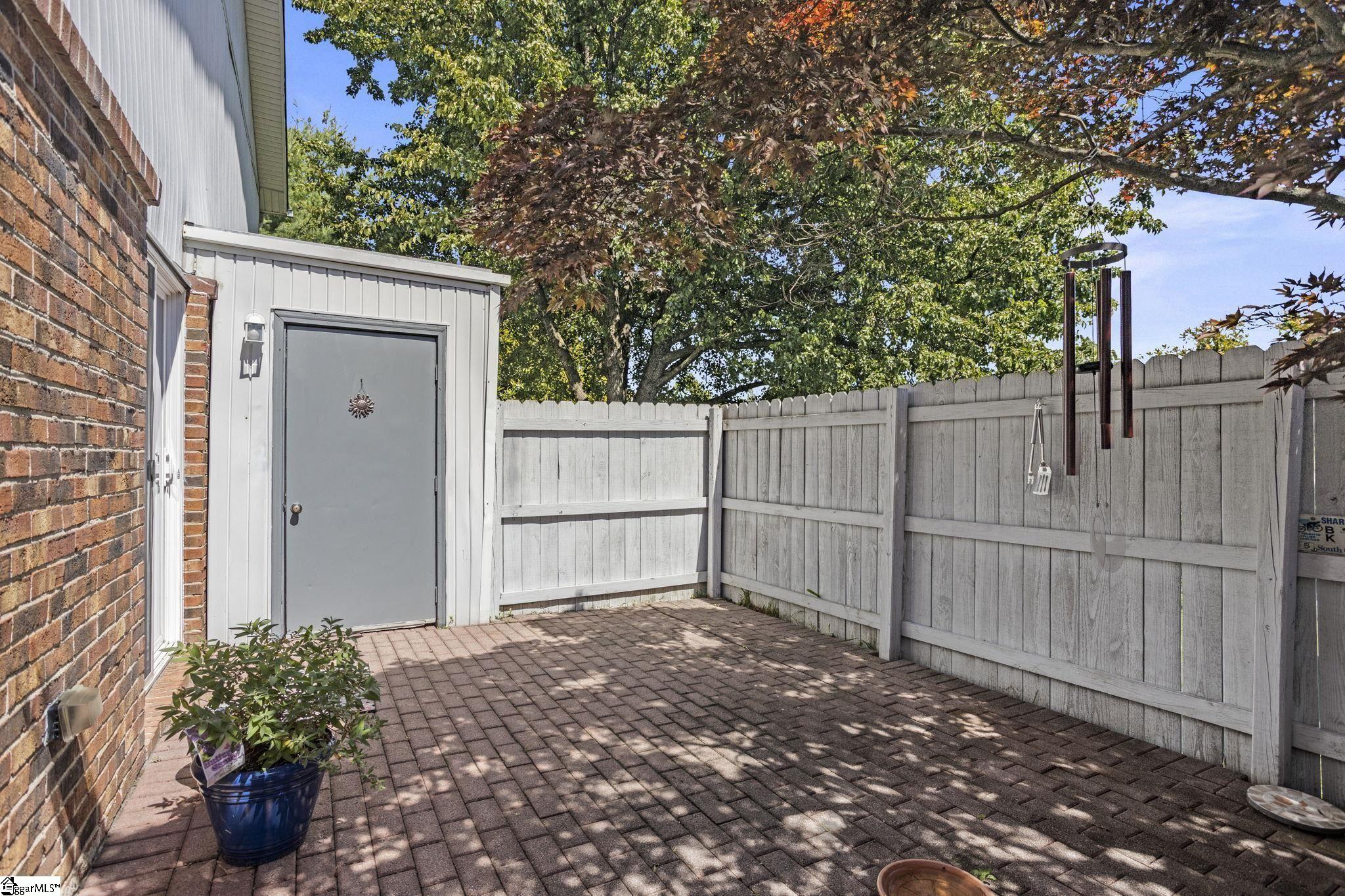 Conveniently located close to downtown with easy access to I-385 and I-85, this well-maintained community offers both connectivity and a quiet setting. Just minutes from the expanding Swamp Rabbit Trail and the new 10-acre Wheelsports Park off Haywood Road. The HOA offers exceptional value including your water bill, trash pickup (no big bins required), weekly lawn care and landscape maintenance, roof and exterior maintenance, and pest control. Community amenities include a pool, clubhouse, wooded walking areas, and green space. Walk to Publix, Sprouts Farmers Market, and popular restaurants. Only five minutes to Haywood Mall for all your shopping needs and Roper Mountain Science Center to learn and explore. Inside this end-unit condo you’ll notice its bright, open floor plan and features like granite countertops, new LVP and hardwood flooring, wood and iron stair railings, a tiled primary shower, tile surround in the hall bath and an abundance of storage space. Large windows provide abundant natural light, and sliding doors open to a private, tree-shaded patio. The spacious primary suite offers large windows, multiple closets, and an updated bath. Two additional bedrooms provide generous closet space. Extra storage includes a pull-down attic and exterior patio closet. Great location, great upgrades—this one stands out in the community!