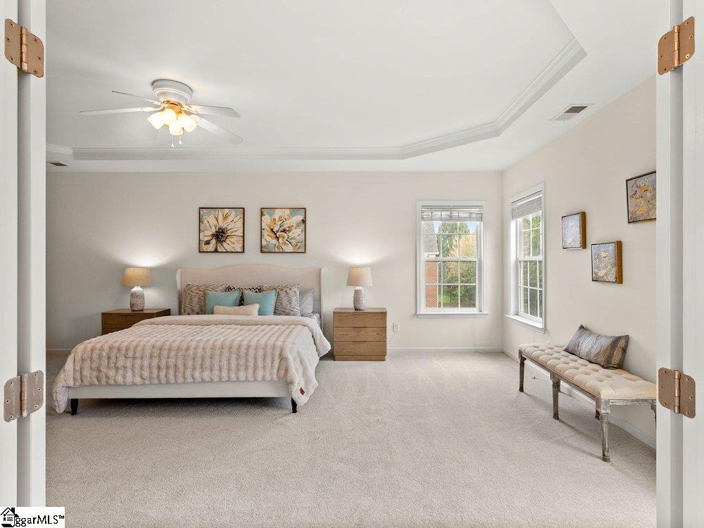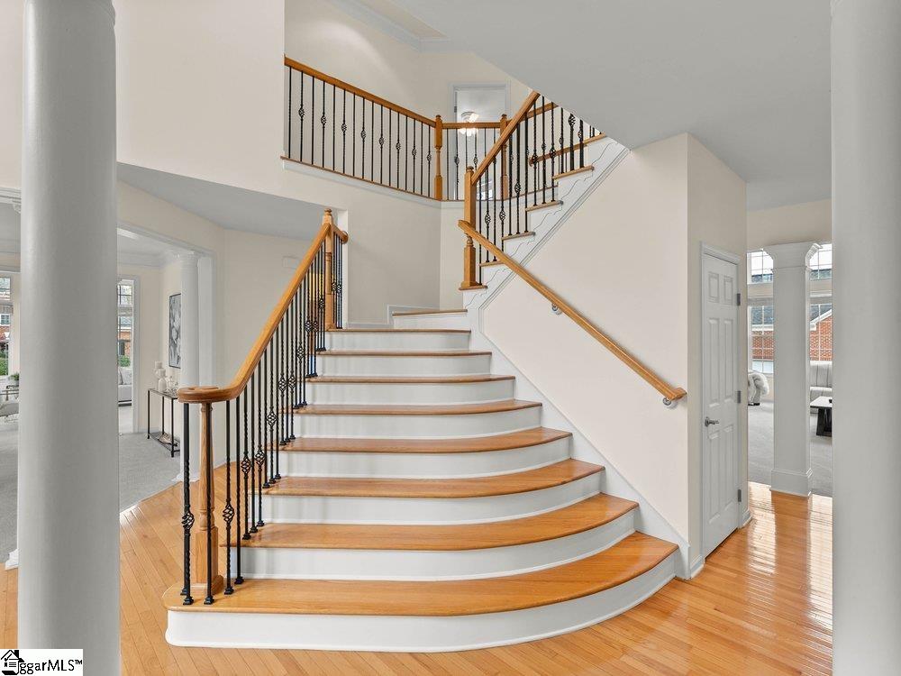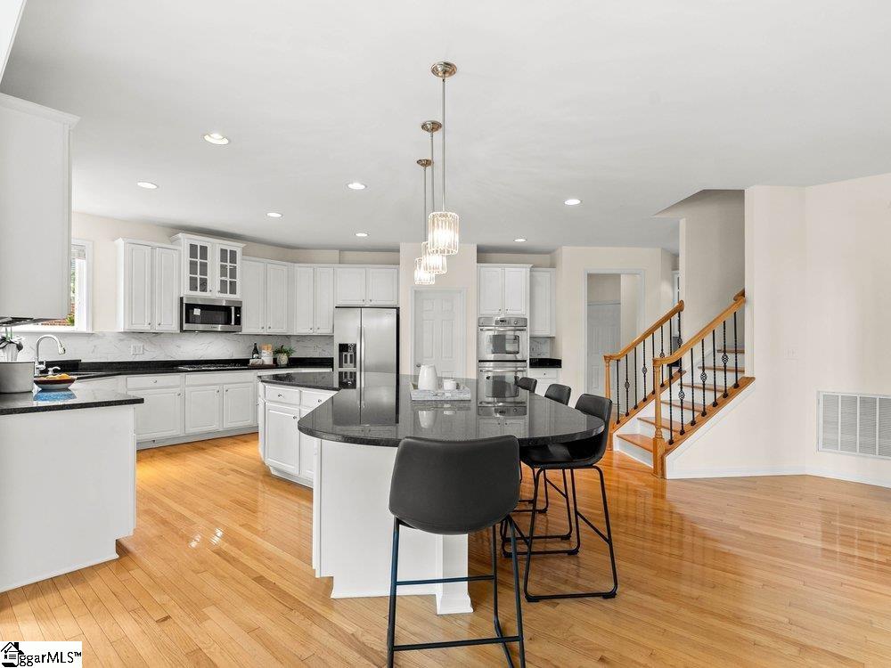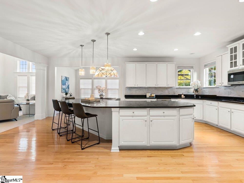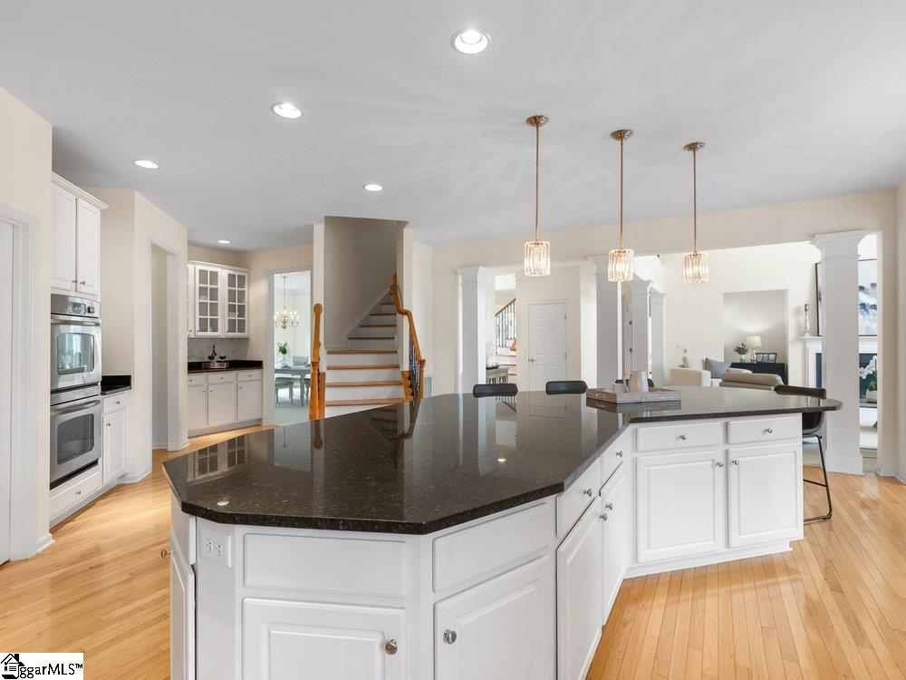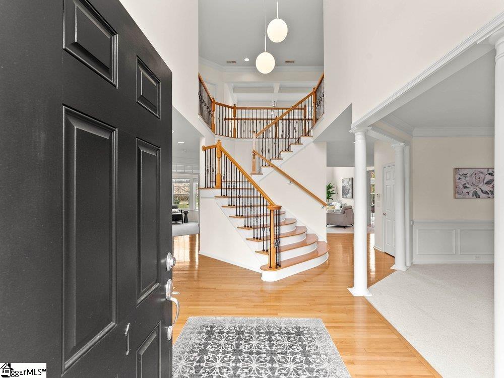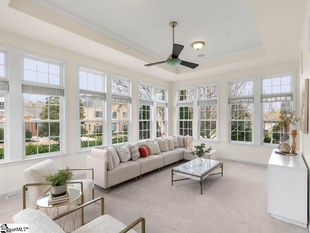 Welcome to a rare opportunity right in the heart of Five Forks—where timeless architecture, exceptional scale, and an unbeatable location come together seamlessly. Situated on a prominent corner lot in Highgrove Estates, this stately all-brick residence offers over 5,700 square feet of thoughtfully designed living space, featuring 4 bedrooms and 4 bathrooms, blending everyday comfort with refined elegance. From the moment you step inside, you’re greeted by soaring ceilings, rich hardwood floors, and a grand staircase that sets the tone for the home’s impressive presence. Expansive living areas are filled with natural light, anchored by a dramatic two-story great room with a fireplace and a wall of arched windows that create both warmth and architectural interest. The Sunroom/Conservatory is a perfect place to escape with a book or enjoy time friends. The kitchen is designed for both function and gathering—featuring ALL NEW APPLIANCES, generous counter space, an oversized EAT-UP island, and effortless flow into the large breakfast area and main living spaces. Formal dining and sitting rooms provide the perfect backdrop for hosting, while maintaining a sense of comfort and ease. The primary suite offers a true retreat, complete with a spacious layout, spa-like bath with soaking tub, and private access to the adjoining living spaces. Additional bedrooms and Bonus Room are generously sized, offering flexibility for guests, home offices, or multi-generational living. Step outside to a new beautifully designed TREX deck—an inviting extension of the home featuring a custom pergola and ambient lighting, ideal for year-round entertaining or quiet evenings at home. Located in one of the most sought-after areas of Five Forks, this home offers unmatched convenience to top-rated schools, dining, shopping, GSP International Airport and everything the Upstate has to offer. Offered at $1,150,000—this is a home that delivers on presence, lifestyle, and location.