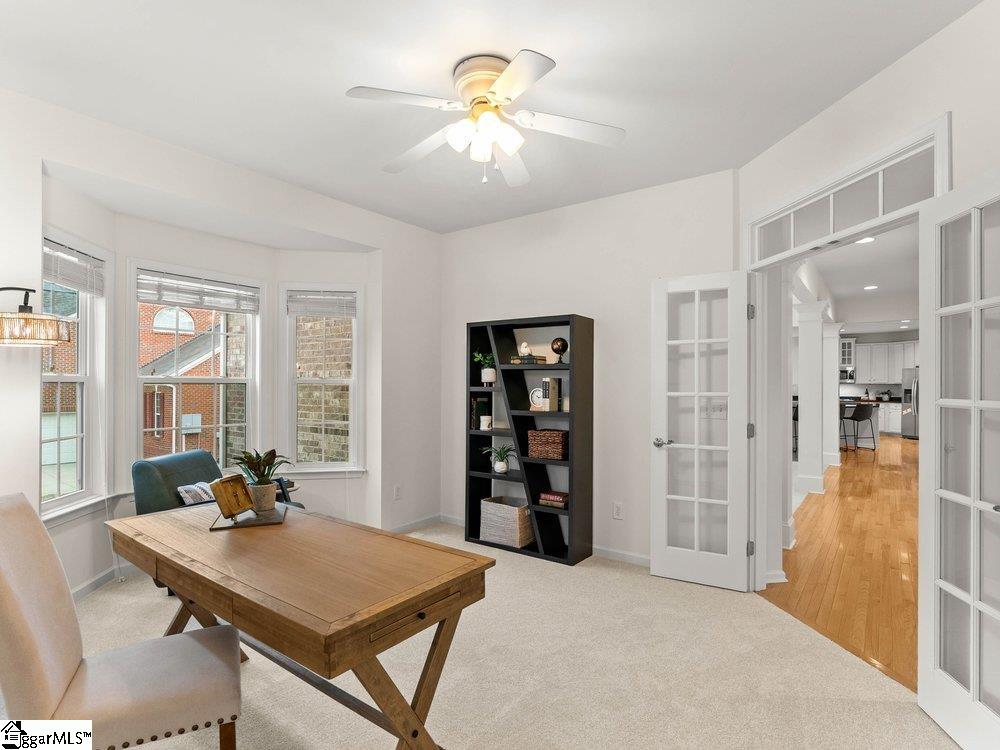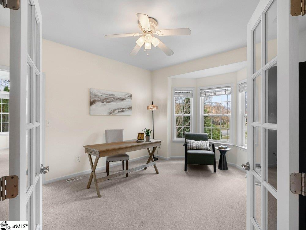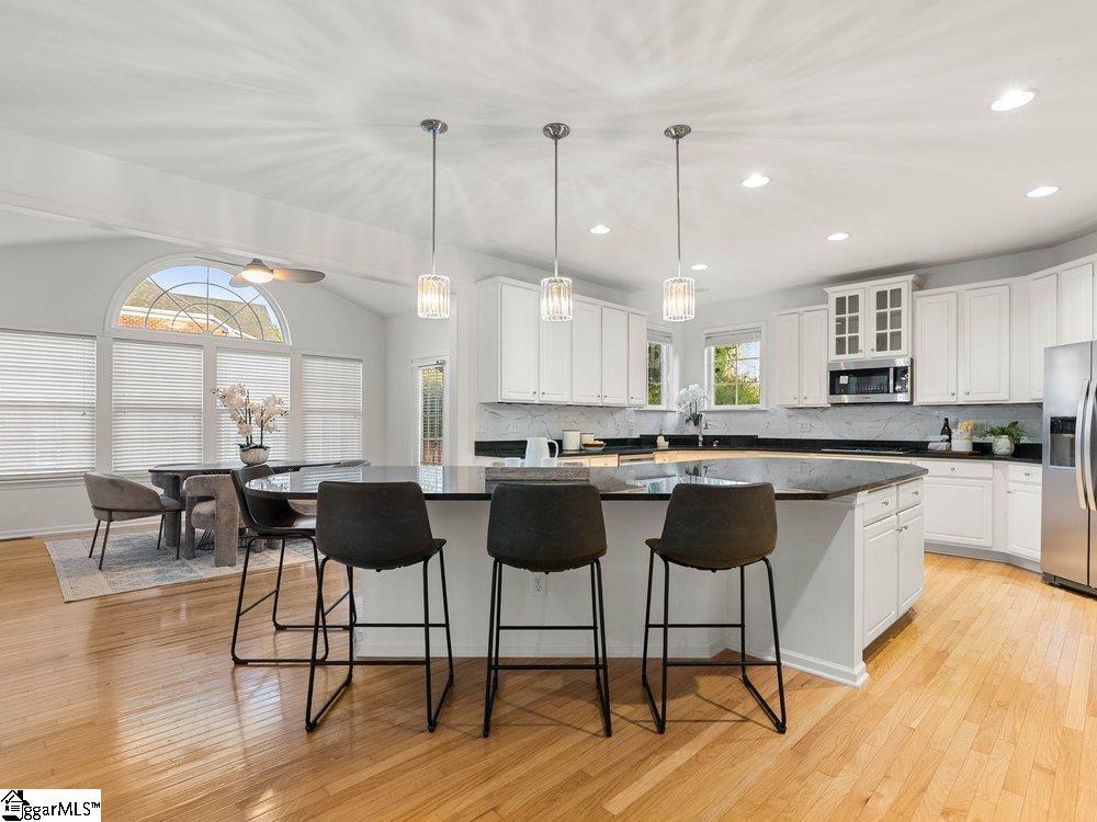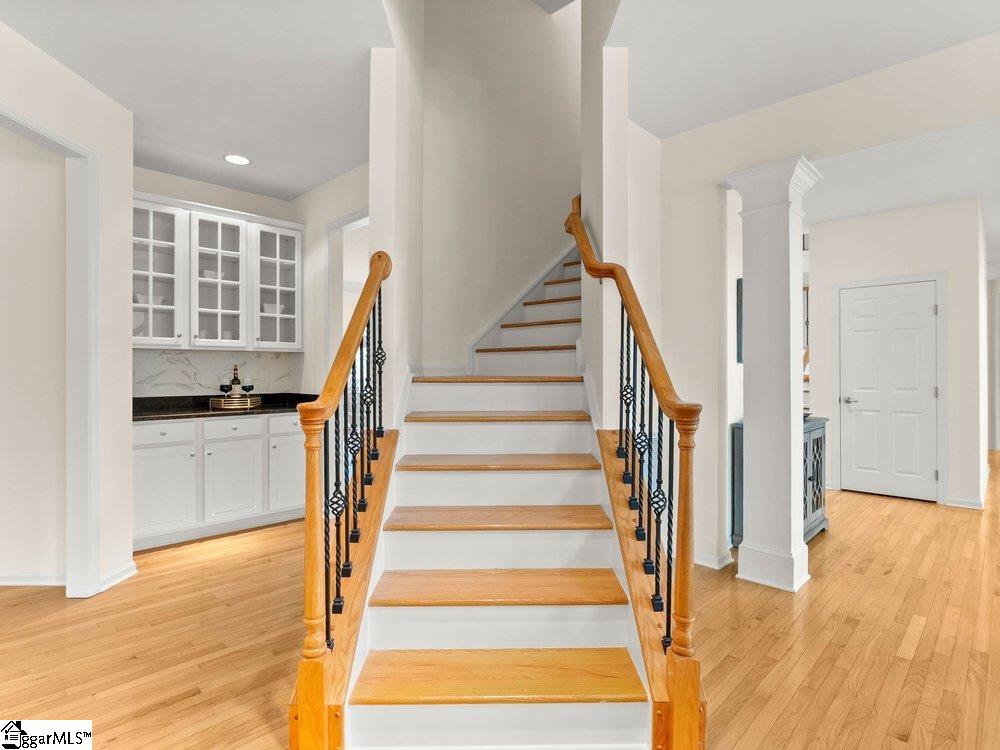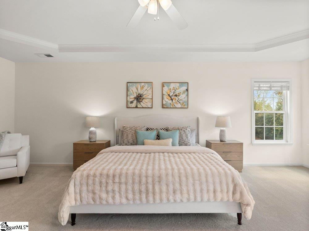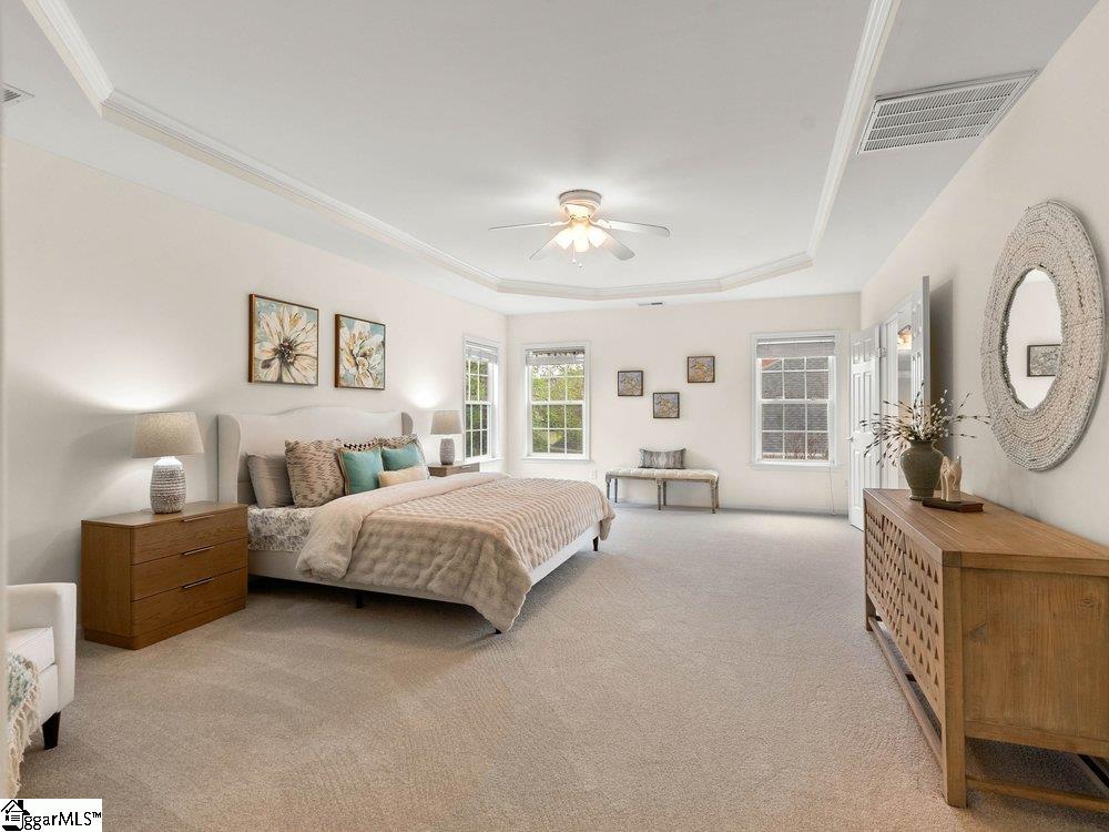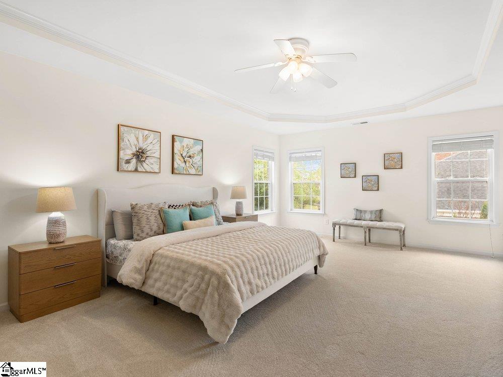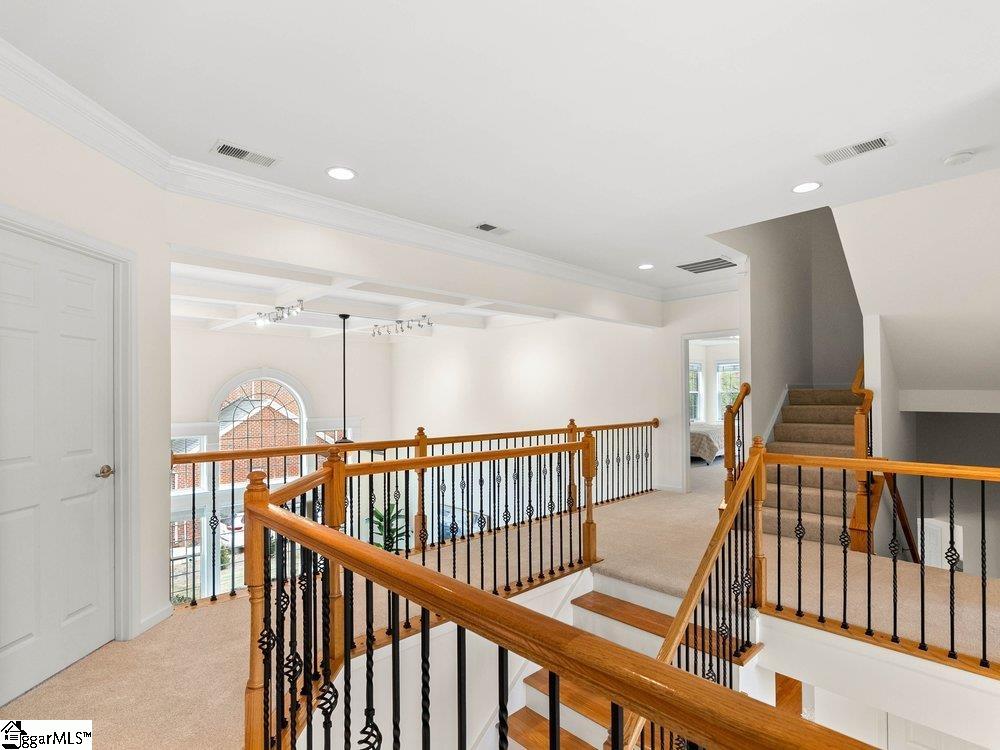 Welcome to a rare opportunity right in the heart of Five Forks—where timeless architecture, exceptional scale, and an unbeatable location come together seamlessly. Situated on a prominent corner lot in Highgrove Estates, this stately all-brick residence offers over 5,700 square feet of thoughtfully designed living space, featuring 4 bedrooms and 4 bathrooms, blending everyday comfort with refined elegance. From the moment you step inside, you’re greeted by soaring ceilings, rich hardwood floors, and a grand staircase that sets the tone for the home’s impressive presence. Expansive living areas are filled with natural light, anchored by a dramatic two-story great room with a fireplace and a wall of arched windows that create both warmth and architectural interest. The Sunroom/Conservatory is a perfect place to escape with a book or enjoy time friends. The kitchen is designed for both function and gathering—featuring ALL NEW APPLIANCES, generous counter space, an oversized EAT-UP island, and effortless flow into the large breakfast area and main living spaces. Formal dining and sitting rooms provide the perfect backdrop for hosting, while maintaining a sense of comfort and ease. The primary suite offers a true retreat, complete with a spacious layout, spa-like bath with soaking tub, and private access to the adjoining living spaces. Additional bedrooms and Bonus Room are generously sized, offering flexibility for guests, home offices, or multi-generational living. Step outside to a new beautifully designed TREX deck—an inviting extension of the home featuring a custom pergola and ambient lighting, ideal for year-round entertaining or quiet evenings at home. Located in one of the most sought-after areas of Five Forks, this home offers unmatched convenience to top-rated schools, dining, shopping, GSP International Airport and everything the Upstate has to offer. Offered at $1,150,000—this is a home that delivers on presence, lifestyle, and location.