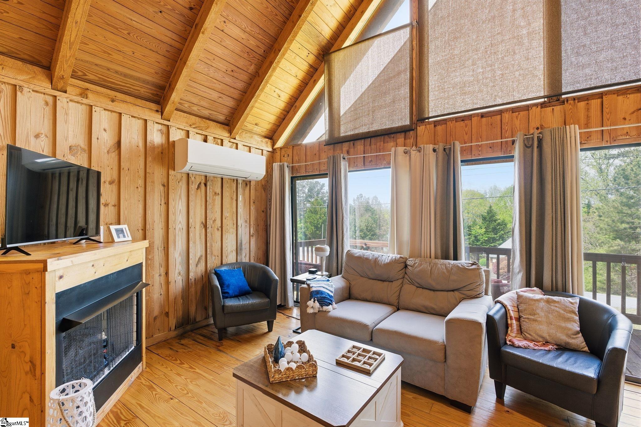 FULLY FURNISHED Lake Keowee Cabin close to Clemson University! Active Short Term Rental with Lake Keowee Access + Day Dock, Pool, and boat/jetski storage. This a 2 bedroom, 1 Bath cabin with soaring ceilings and big glass sliders to enjoy the views. Downstairs you have primary bedroom and full bath and washer/dryer. Upstairs there is a large loft to be used as a second bedroom/bunk room/ or just hobby space. Enjoy having a community day dock, Warpath boat ramp right around the corner and a pool to soak in after a long day at the lake. This has done well as a short term rental! Showings may be limited due to rental bookings in place. HOA is $410 per month. Please see associated documents for additional information. Rental financials available upon request.