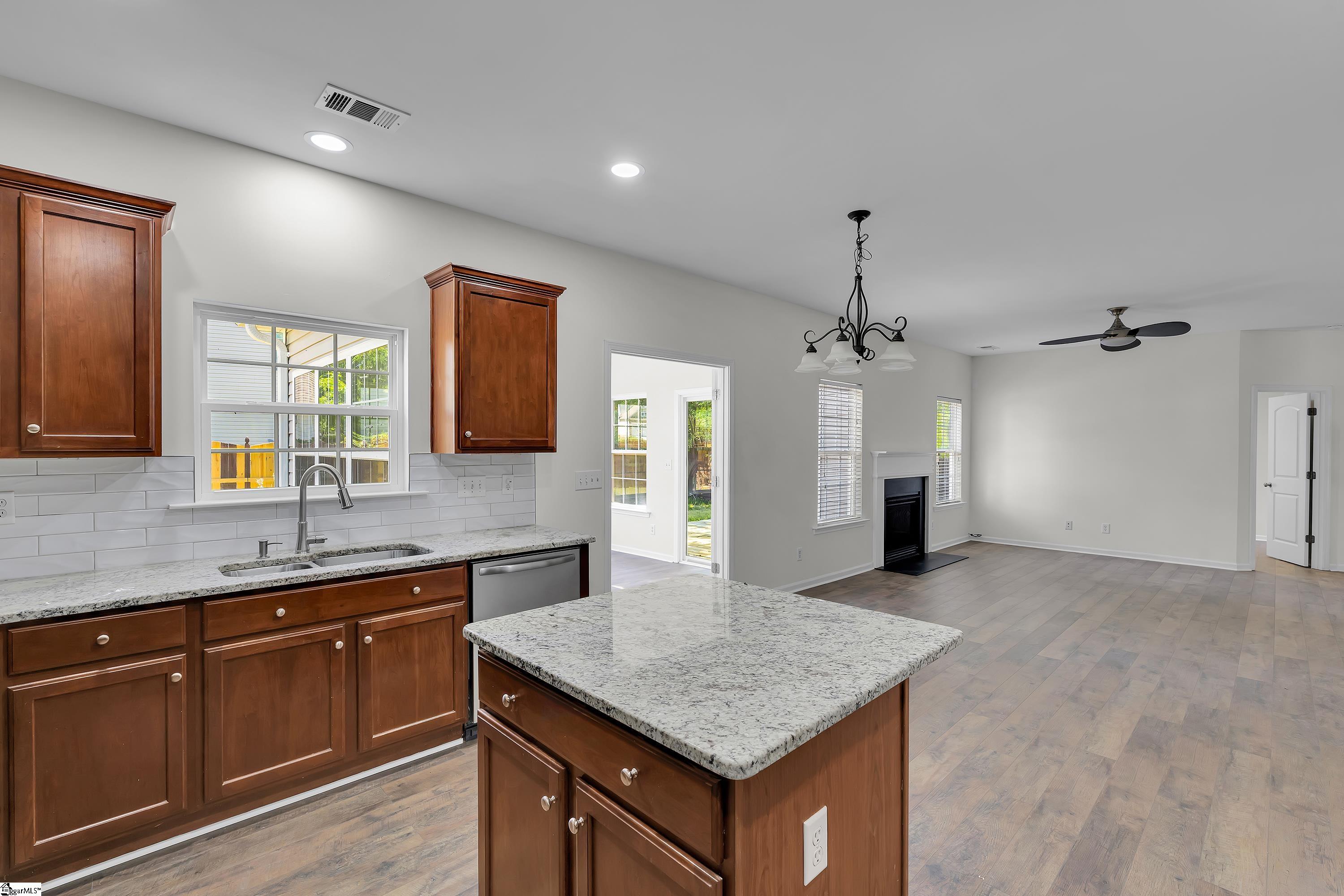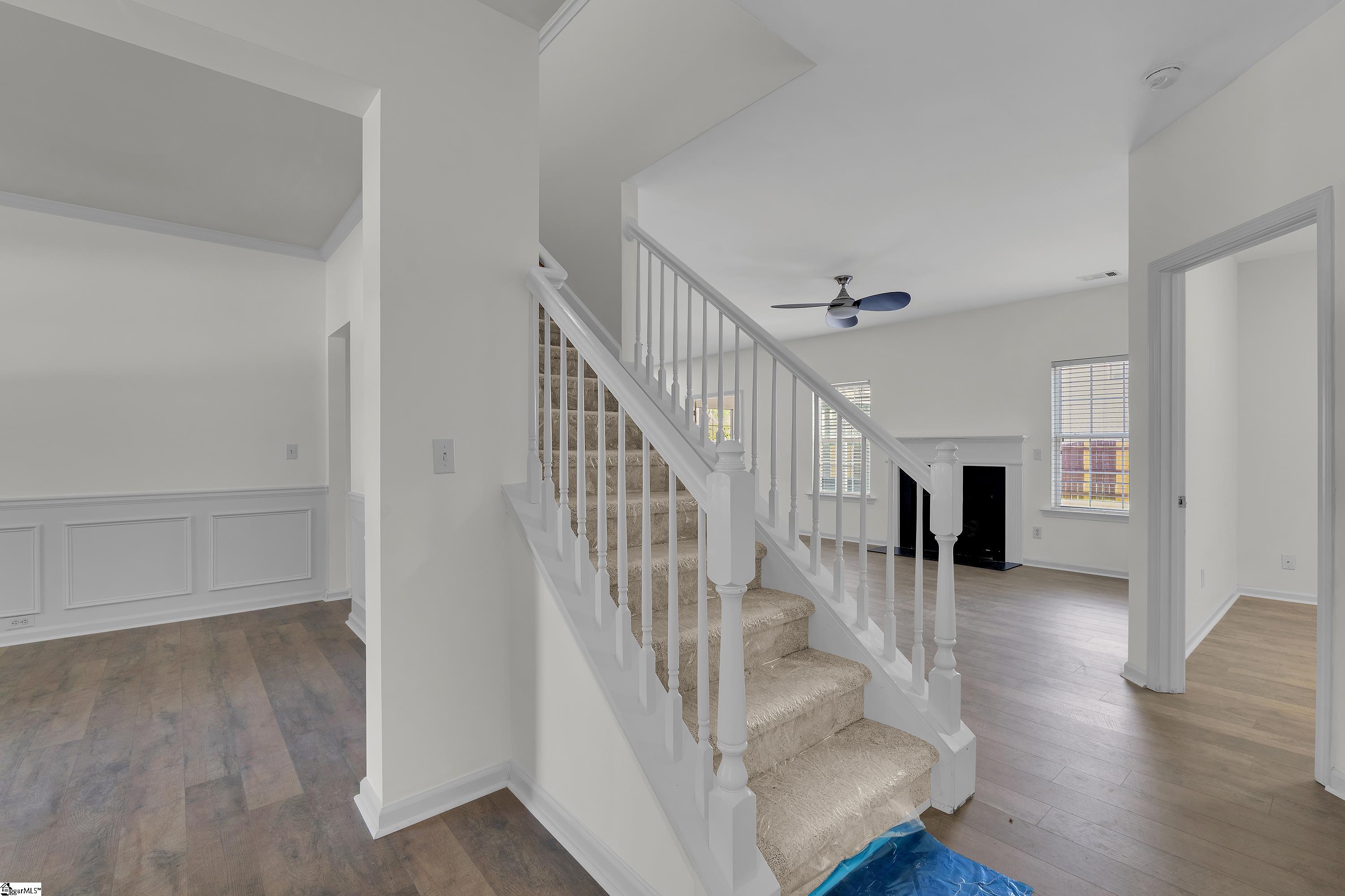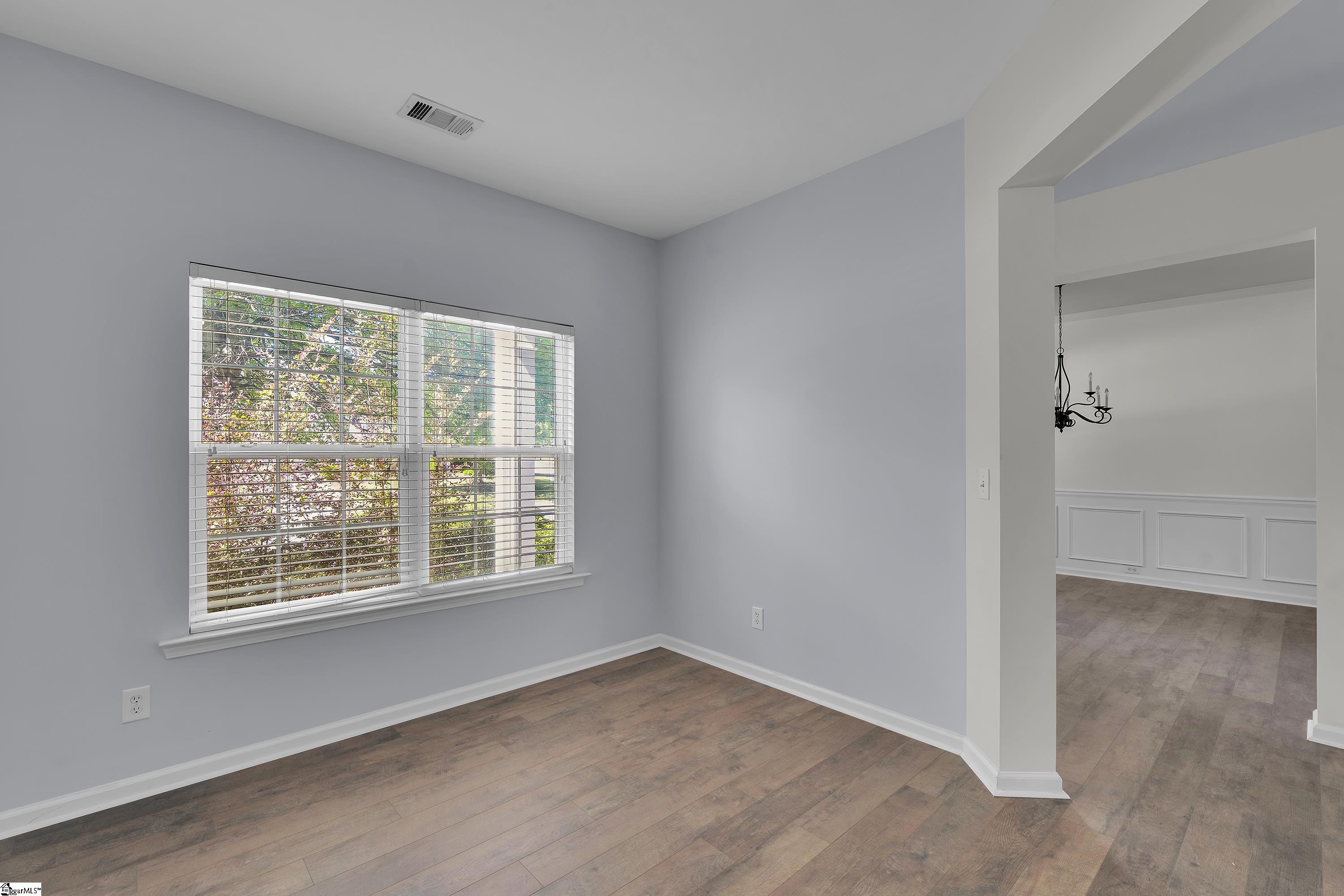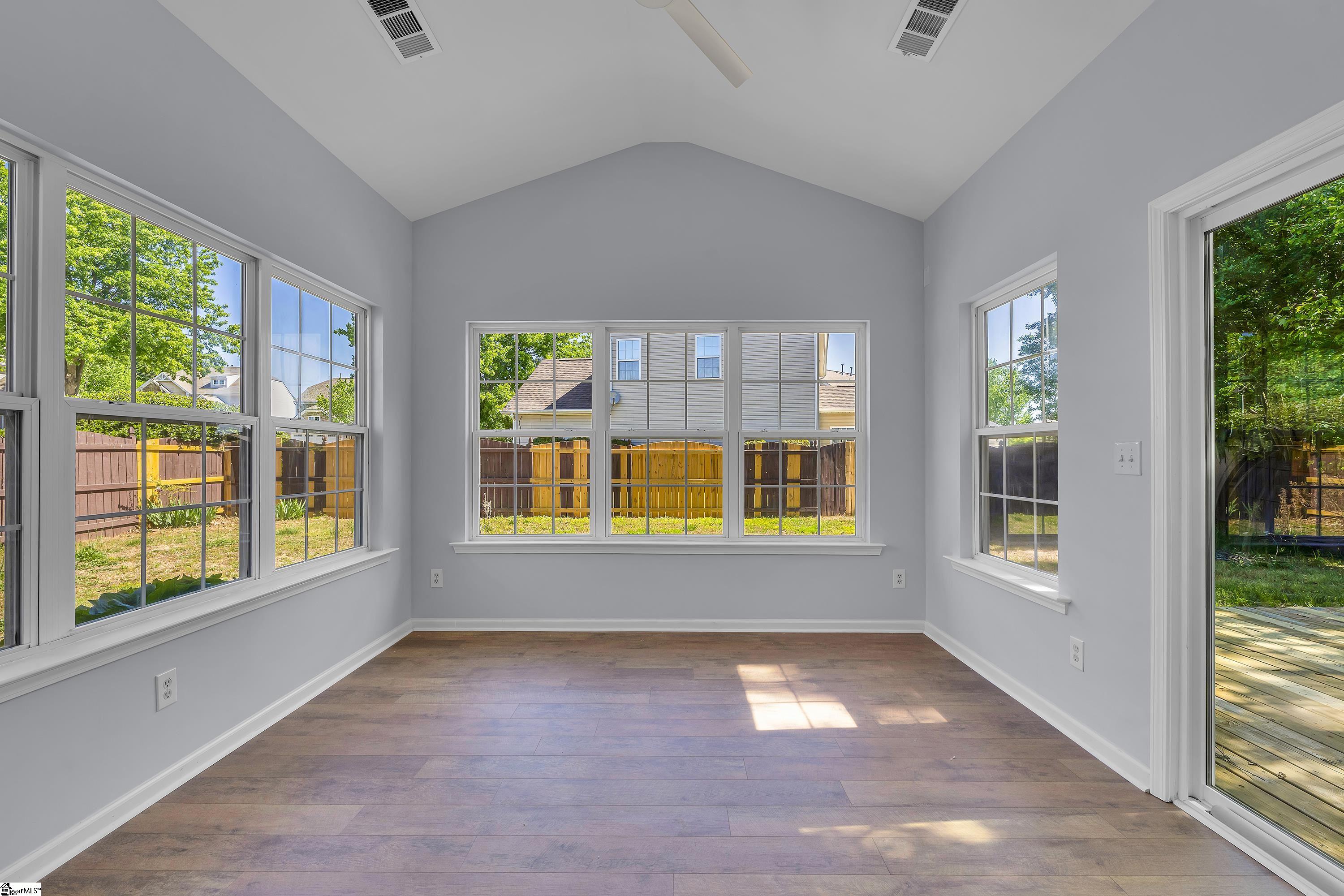 Welcome to this spacious and move-in-ready 5-bedroom, 2.5-bath home located in the heart of the sought-after Five Forks area. With new plush Carpet and LVP, fresh interior paint, brand-new granite countertops and tile backsplash, and a newer roof, this home presents style, comfort, and peace of mind from the moment you walk through the door. The main level features beautiful and versatile LVP flooring and a smart layout with a formal dining room enhanced by elegant wainscoting, a flex space perfect for a home office or formal living room, and a guest bedroom. The heart of the home is the open-concept family room, breakfast area, and spacious kitchen—now updated with gorgeous granite countertops and backsplash, a smooth top range, and abundant cabinet and counter space. A light-filled sunroom opens to a beautifully fenced backyard designed for enjoyment, complete with a soon-to-be painted updated deck and abundant yard space to spread out. Upstairs, the luxurious primary suite features a vaulted ceiling, an oversized 9×8 walk-in closet, and a spa-like bathroom with double sinks, a soaking tub, and a separate shower. Three additional generously sized bedrooms and a full bathroom provides plenty of room for family or guests, and the upstairs walk-in laundry room adds convenience. The garage includes built-in storage, and the home is just a short walk to fantastic neighborhood amenities: a resort-style pool with lazy river, kiddie pool, playground, basketball courts, sidewalks, and nature trail. Don’t miss your chance to own this beautifully updated home in one of the area’s most popular communities—schedule your tour today!