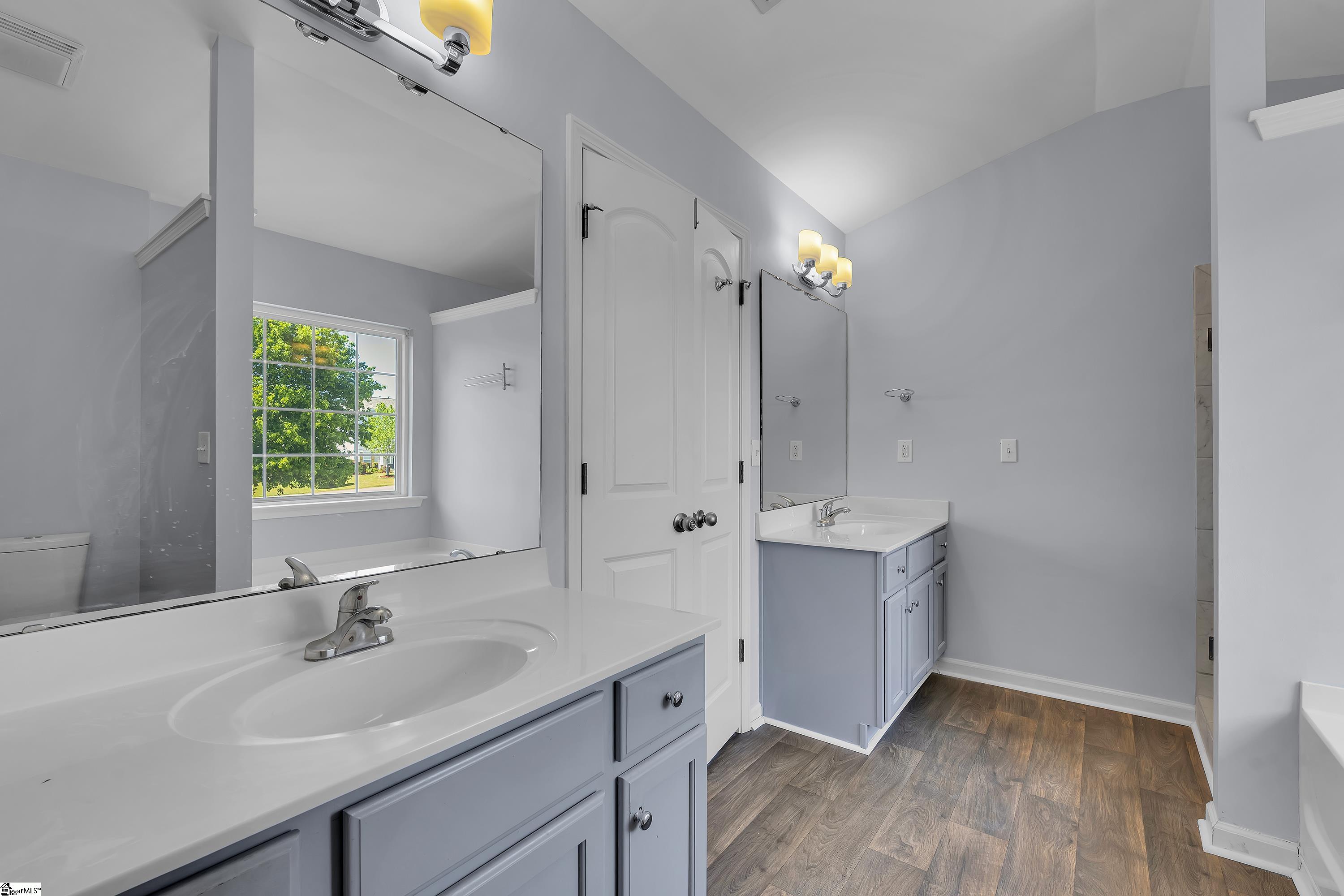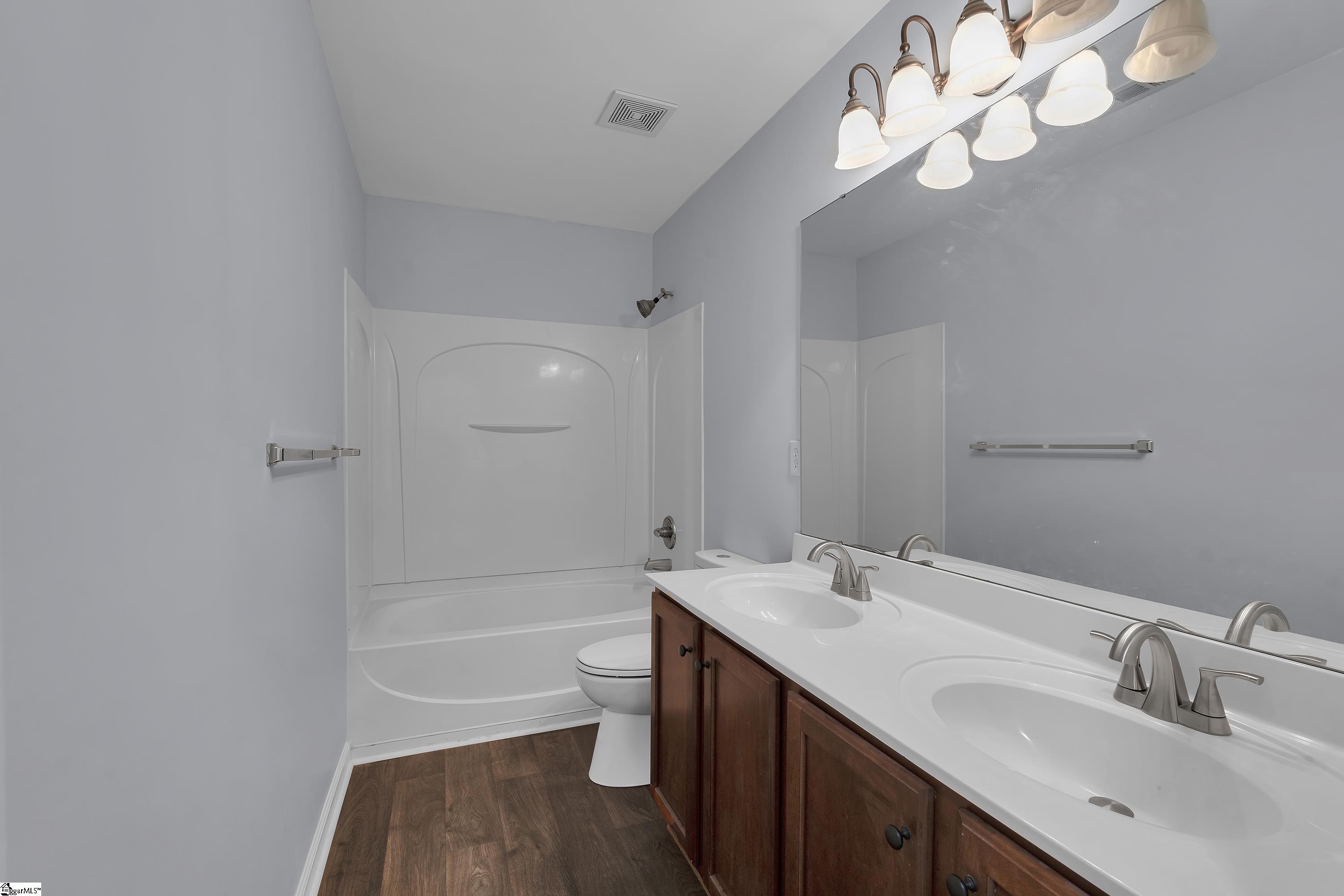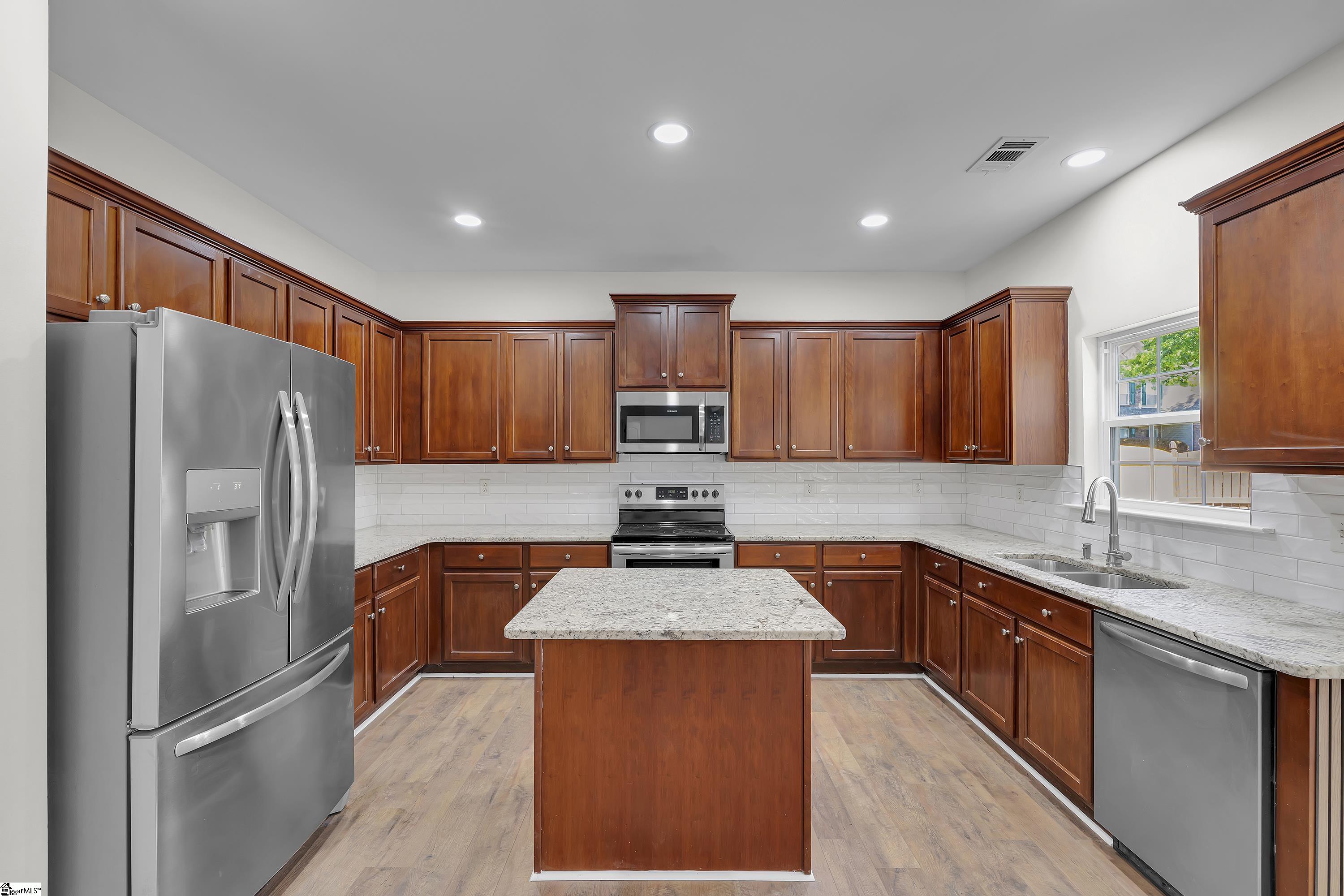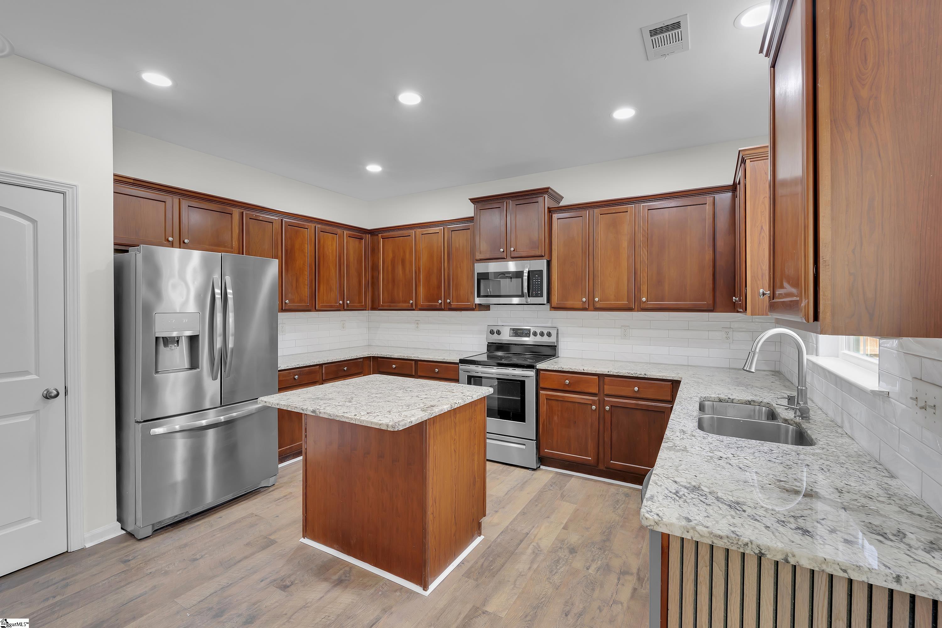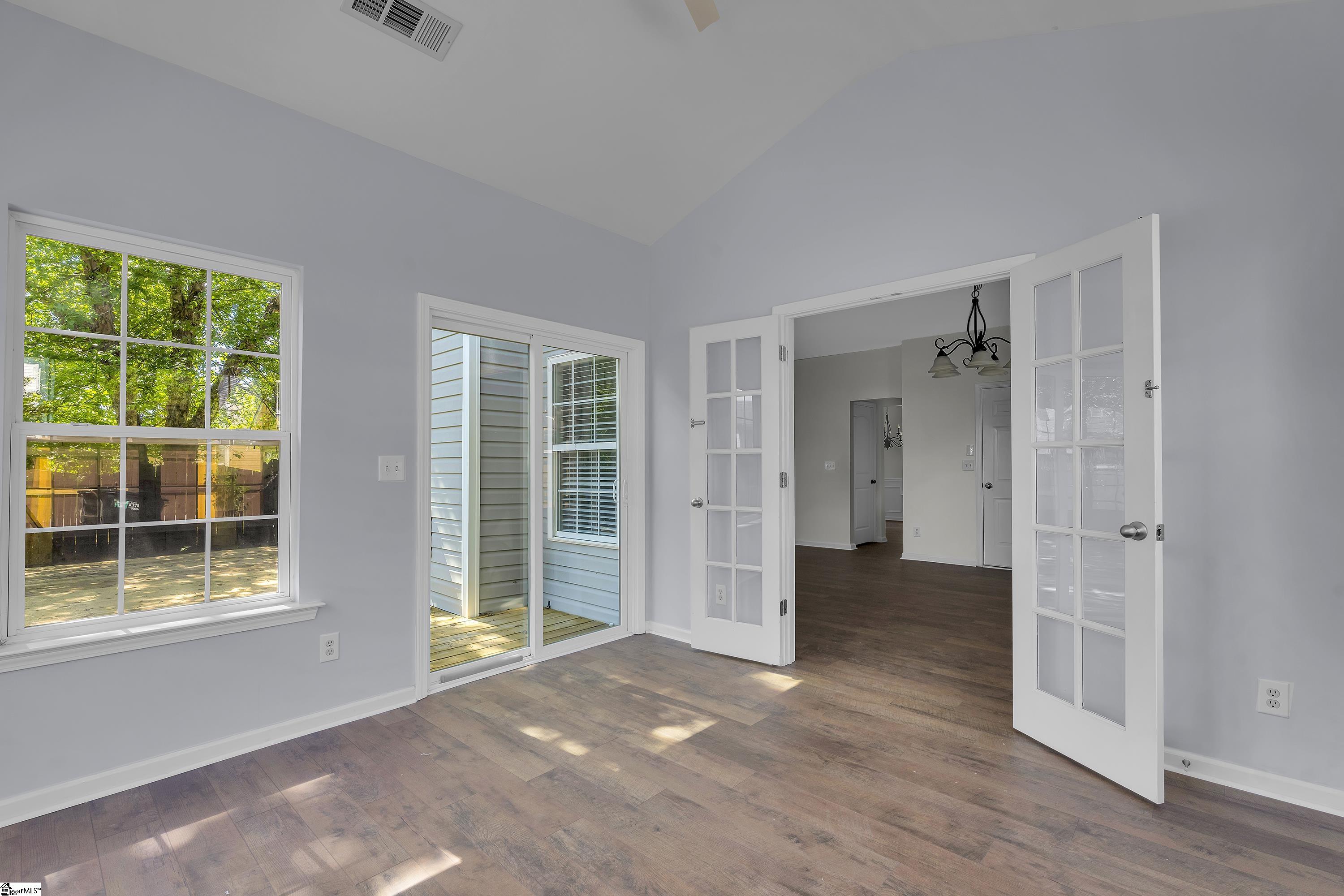 Welcome to this spacious and move-in-ready 5-bedroom, 2.5-bath home located in the heart of the sought-after Five Forks area. With new plush Carpet and LVP, fresh interior paint, brand-new granite countertops and tile backsplash, and a newer roof, this home presents style, comfort, and peace of mind from the moment you walk through the door. The main level features beautiful and versatile LVP flooring and a smart layout with a formal dining room enhanced by elegant wainscoting, a flex space perfect for a home office or formal living room, and a guest bedroom. The heart of the home is the open-concept family room, breakfast area, and spacious kitchen—now updated with gorgeous granite countertops and backsplash, a smooth top range, and abundant cabinet and counter space. A light-filled sunroom opens to a beautifully fenced backyard designed for enjoyment, complete with a soon-to-be painted updated deck and abundant yard space to spread out. Upstairs, the luxurious primary suite features a vaulted ceiling, an oversized 9×8 walk-in closet, and a spa-like bathroom with double sinks, a soaking tub, and a separate shower. Three additional generously sized bedrooms and a full bathroom provides plenty of room for family or guests, and the upstairs walk-in laundry room adds convenience. The garage includes built-in storage, and the home is just a short walk to fantastic neighborhood amenities: a resort-style pool with lazy river, kiddie pool, playground, basketball courts, sidewalks, and nature trail. Don’t miss your chance to own this beautifully updated home in one of the area’s most popular communities—schedule your tour today!