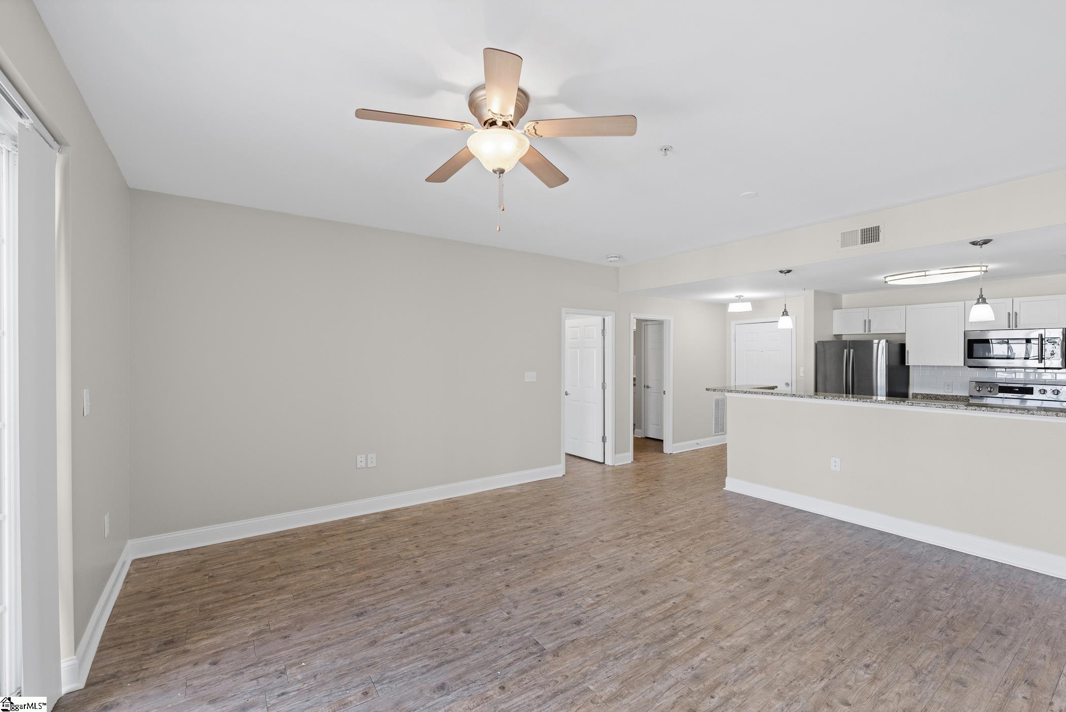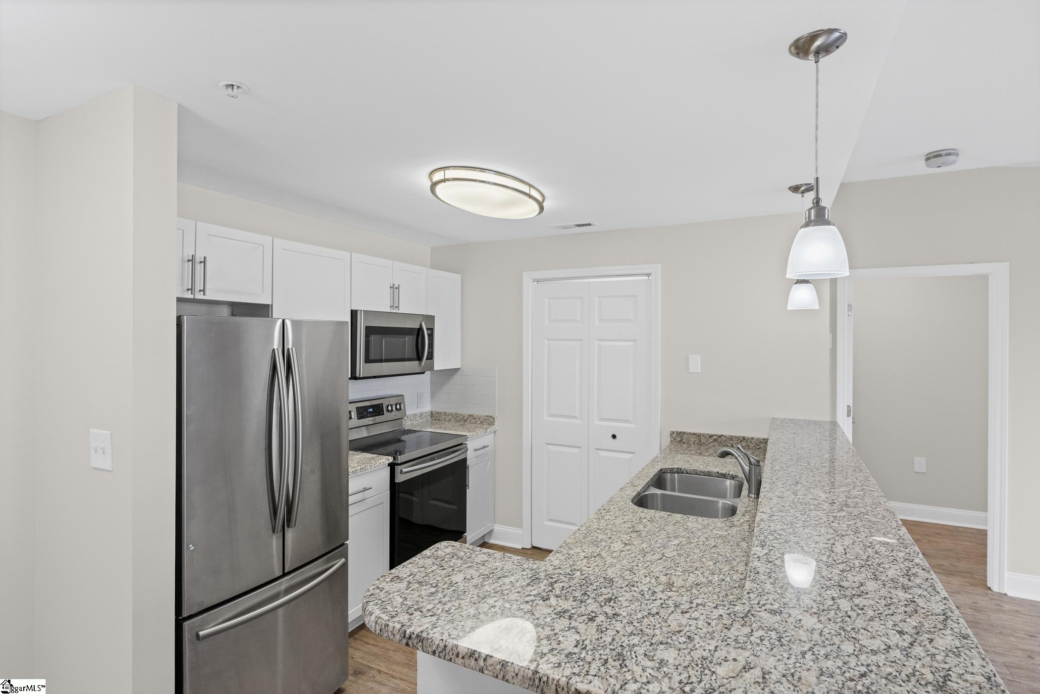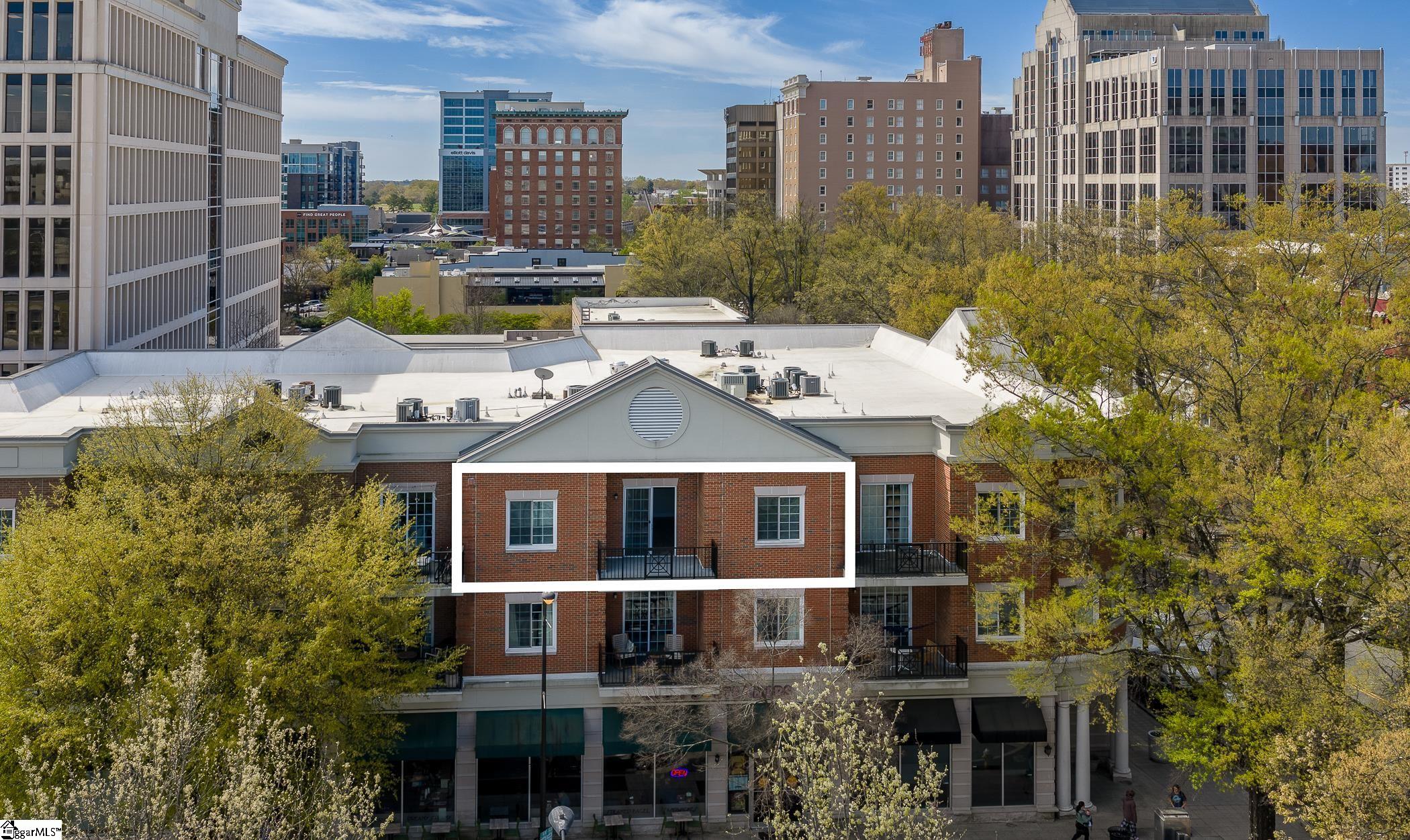 Washington on Main genuinely captures the essence of city living! Just steps from vibrant Main Street, Unit 3G is an elite top-floor unit offering both lifestyle and investment appeal, with eligibility for leases over thirty days. Enjoy a generously sized balcony perfect for taking in the energy of the city below. From lively entertainment and societal experiences and an array of dining options, everything is right at your fingertips. This exclusive residence offers a private Courtyard for residents and guests, further enhancing appeal. Our unit has been thoughtfully designed with an open layout for easy living and entertaining. Luxury flooring and a warm neutral backdrop throughout create an atmosphere that will compliment any decor. The gorgeous granite Kitchen comes complete with a full suite of stainless steel appliances and an expansive bar! This smart split floorplan allows more privacy, featuring two generously sized Bedrooms, each with ceiling fan lighting and walk-in closets. Both suites are paired with their own Baths, showcasing extended granite vanities that add a touch of elegance and functionality. For a truly move-in ready experience, the Laundry is also equipped with a washer and dryer! Enjoy the ease of HOA-maintained living, giving you more time to experience everything downtown has to offer. Additionally, convenient parking is available in the nearby South Spring Street garage.