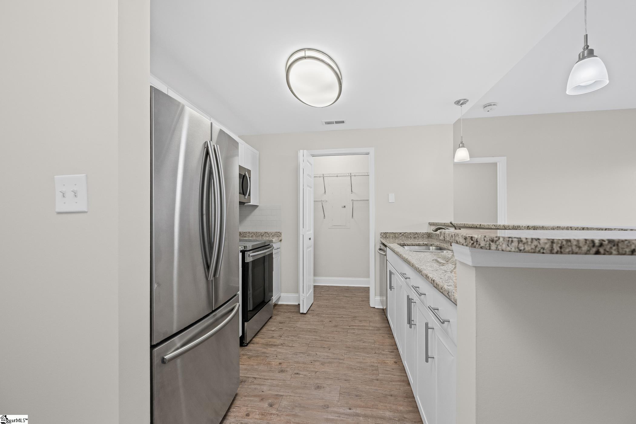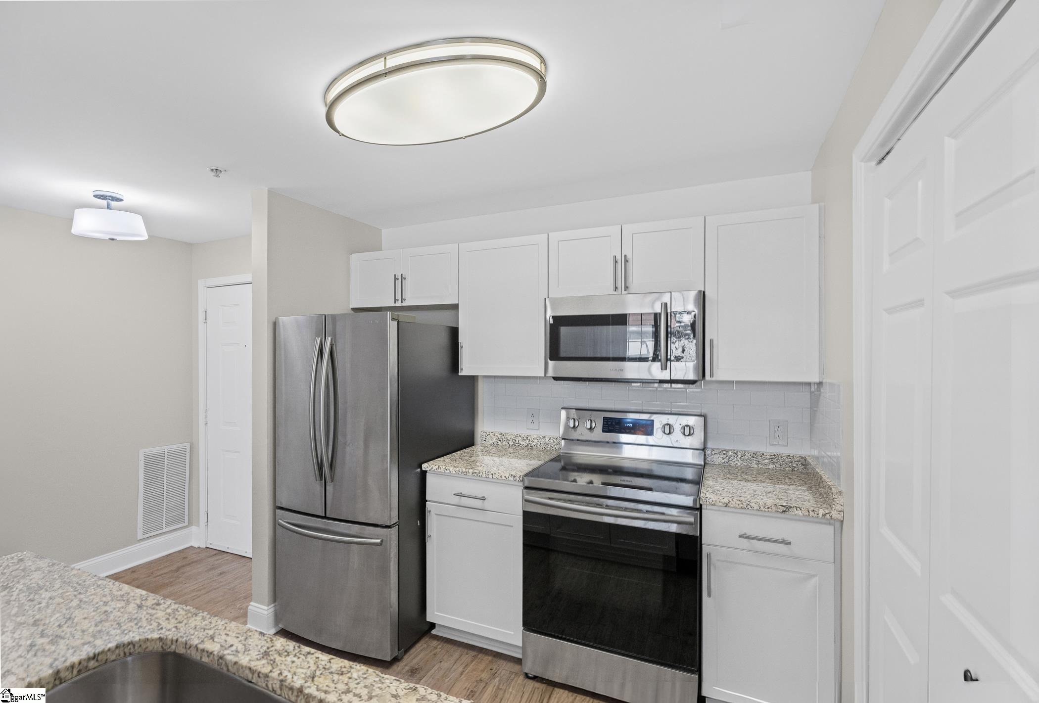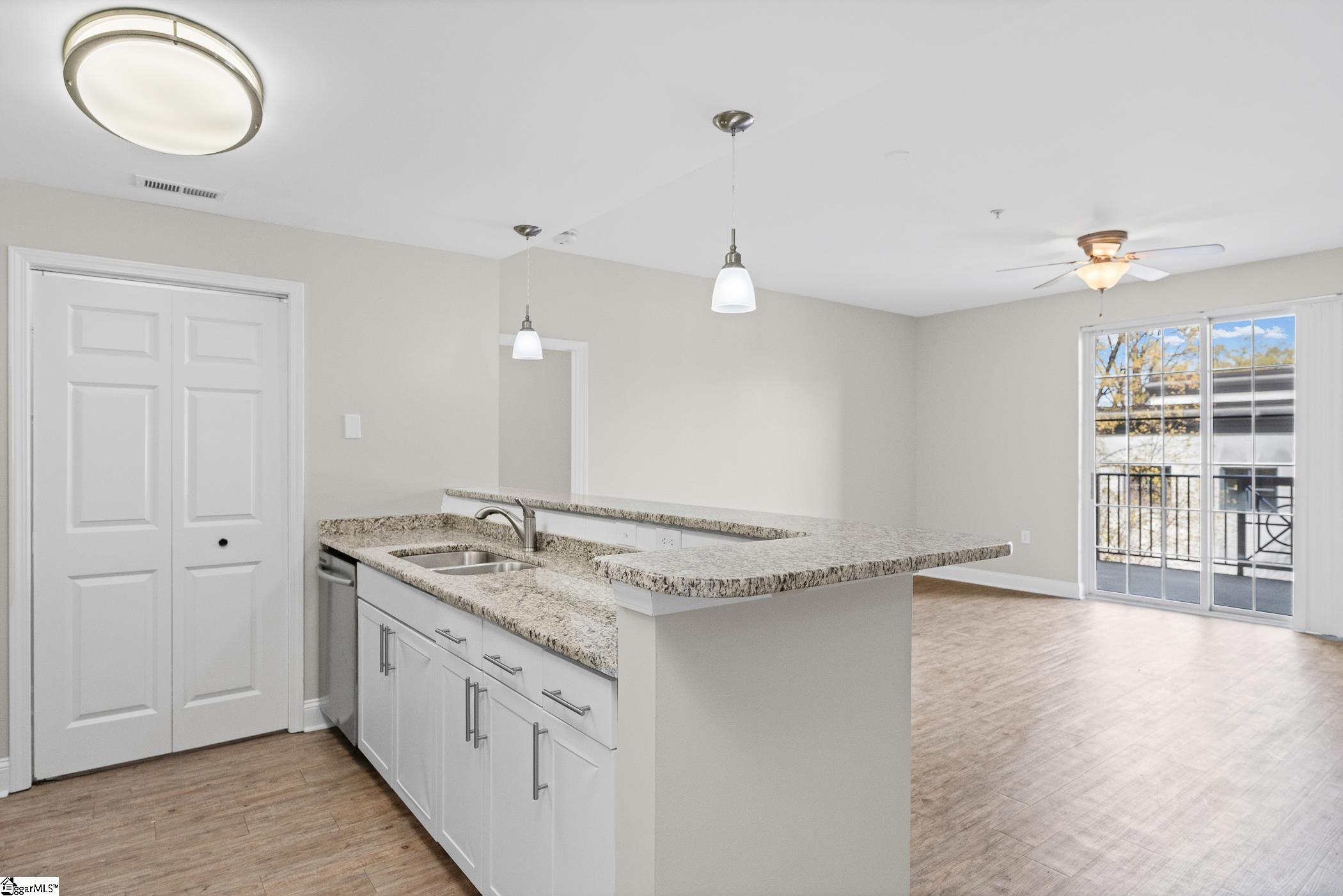 Washington on Main genuinely captures the essence of city living! Just steps from vibrant Main Street, Unit 3G is an elite top-floor unit offering both lifestyle and investment appeal, with eligibility for leases over thirty days. Enjoy a generously sized balcony perfect for taking in the energy of the city below. From lively entertainment and societal experiences and an array of dining options, everything is right at your fingertips. This exclusive residence offers a private Courtyard for residents and guests, further enhancing appeal. Our unit has been thoughtfully designed with an open layout for easy living and entertaining. Luxury flooring and a warm neutral backdrop throughout create an atmosphere that will compliment any decor. The gorgeous granite Kitchen comes complete with a full suite of stainless steel appliances and an expansive bar! This smart split floorplan allows more privacy, featuring two generously sized Bedrooms, each with ceiling fan lighting and walk-in closets. Both suites are paired with their own Baths, showcasing extended granite vanities that add a touch of elegance and functionality. For a truly move-in ready experience, the Laundry is also equipped with a washer and dryer! Enjoy the ease of HOA-maintained living, giving you more time to experience everything downtown has to offer. Additionally, convenient parking is available in the nearby South Spring Street garage.