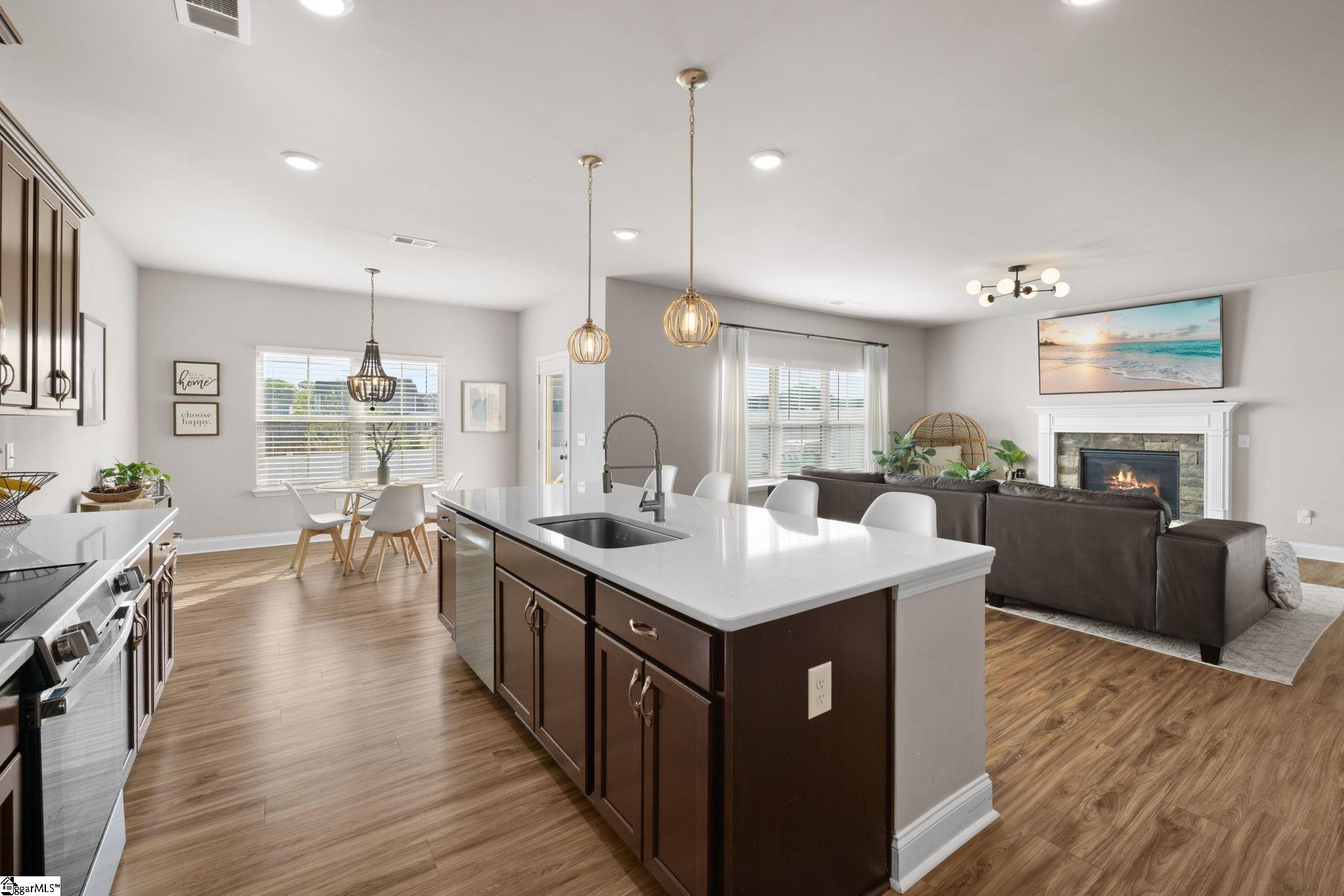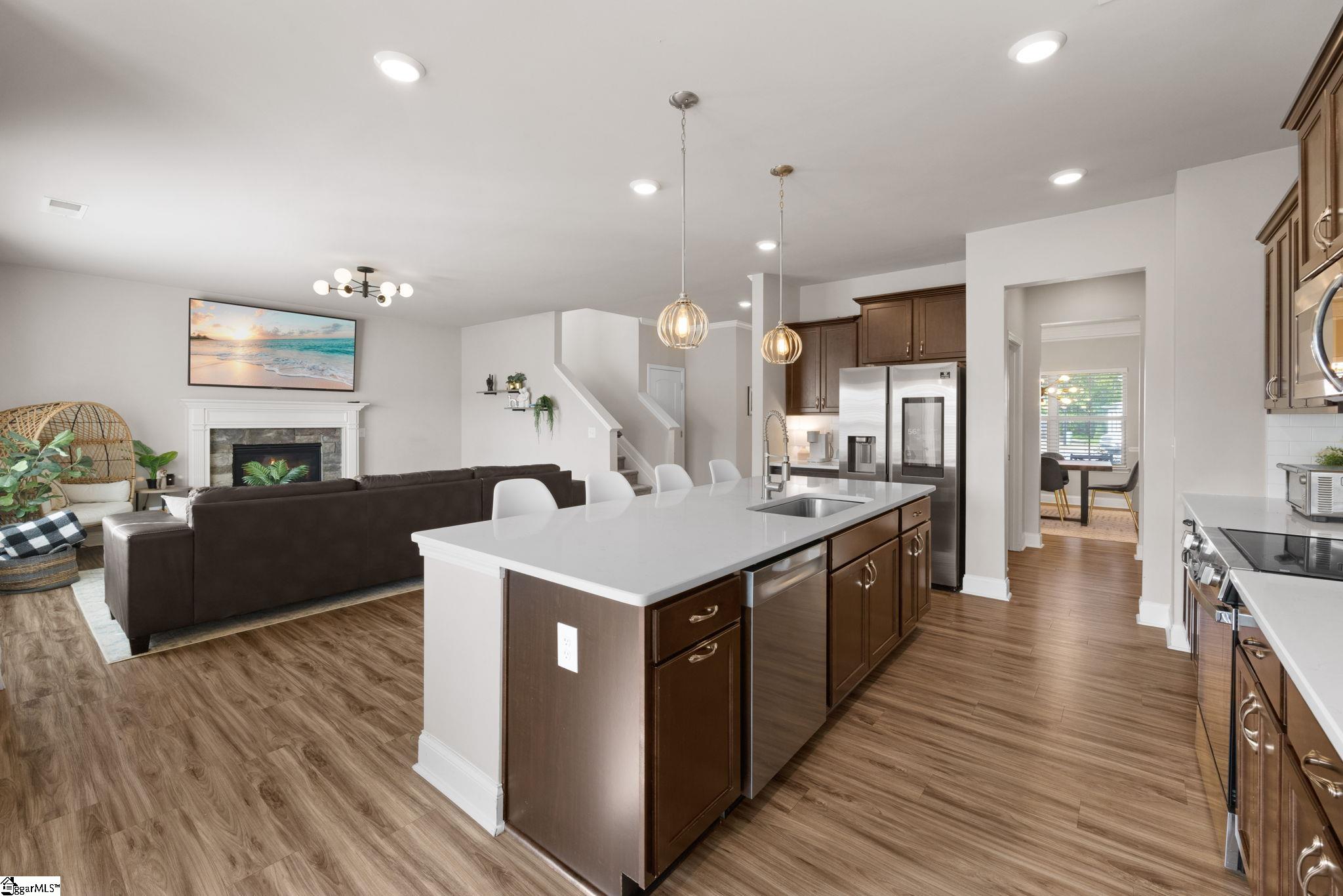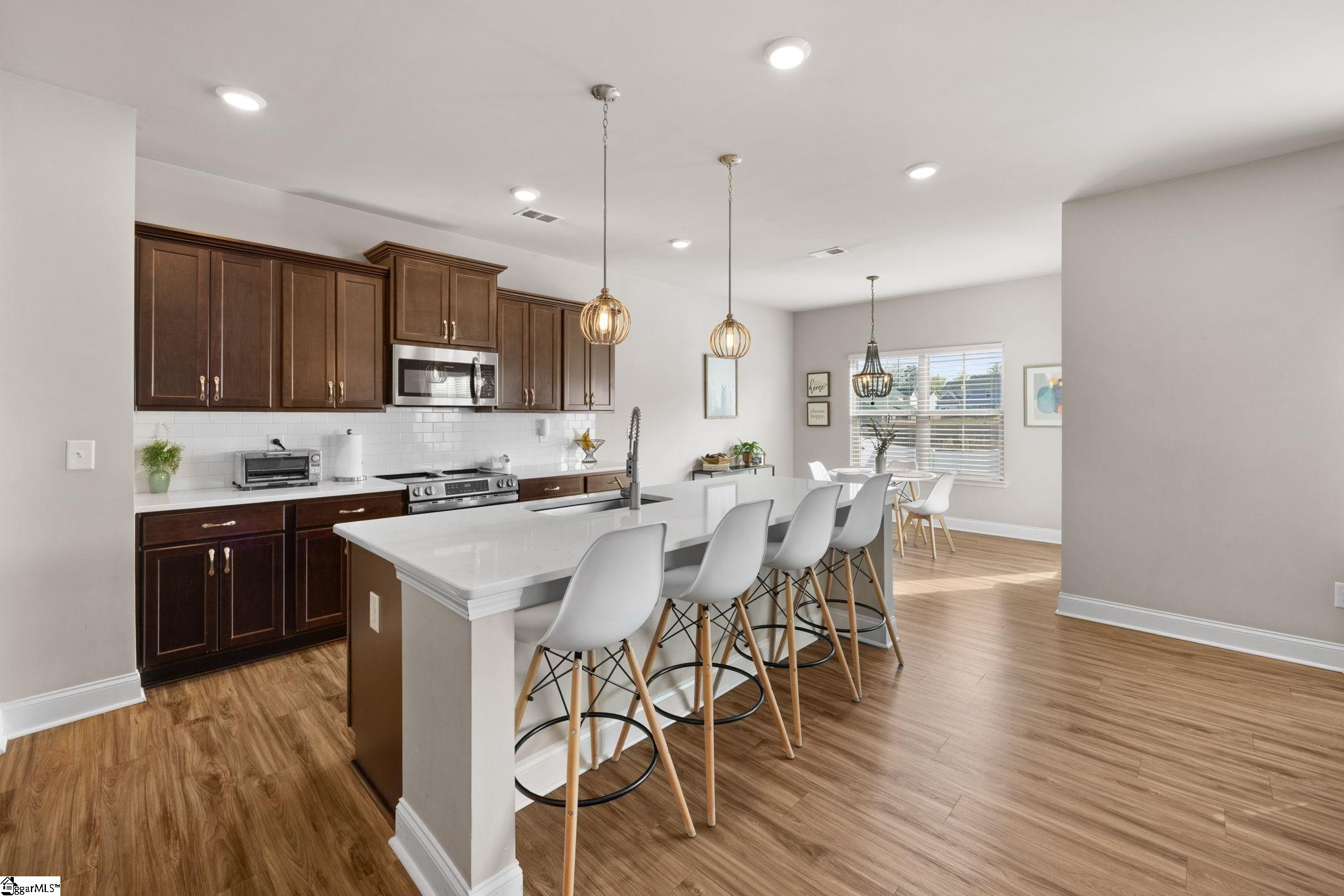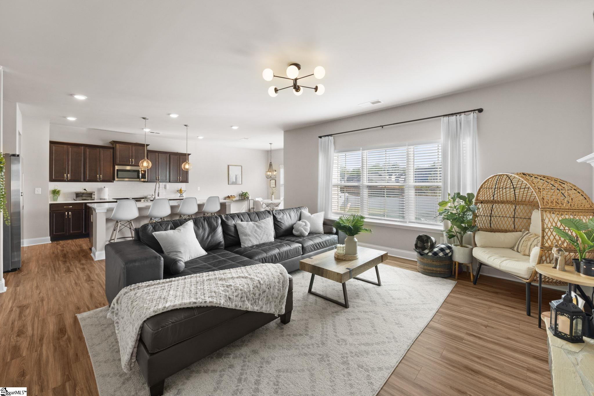 Tucked away on a quiet cul-de-sac in Greenville’s highly desirable Reedy Springs community, this beautifully designed, move-in-ready home offers a refined take on modern living. Welcome to 10 Harvestwood Place! Built in 2020, this home boasts 4 bedrooms and 3 full bathrooms, spanning over 2,300 square feet of functional living space. Highlights include soaring 9-foot ceilings, durable LVP flooring, and an open floor plan that seamlessly blends style, comfort, and functionality. From the moment you step inside, abundant natural light fills the open-concept layout, showcasing thoughtful finishes and updated light fixtures. The kitchen, which serves as the heart of the home, features quartz countertops, a large walk-in pantry, and extensive cabinet storage. A main-level bedroom and full bathroom provide ideal flexibility for guests, multigenerational living, or a dedicated home office. Upstairs, the luxurious Primary Suite is a private retreat, complete with a tray ceiling, an oversized walk-in closet, dual vanities, a relaxing garden tub, and a separate shower. The second floor also features a versatile loft space, a convenient walk-in laundry room, and generously sized secondary bedrooms. Outdoor living is a delight with a covered front porch, a backyard patio, and a fully fenced-in yard. Enjoy seasonal walks on the tranquil community trails by the Reedy River, surrounded by nature. With summer approaching, be ready to take advantage of the neighborhood pool and everything this friendly neighborhood has to offer. 23 minutes from vibrant downtown Greenville and 13 minutes from charming Simpsonville, this home gives you easy access to I-85 and I-385 — making your commute and errands a breeze. Don’t miss your chance to own this move-in-ready home in a wonderful area. Schedule your private showing today! Located in a USDA loan–eligible area, meaning 100% financing may be available for qualified buyers. ***