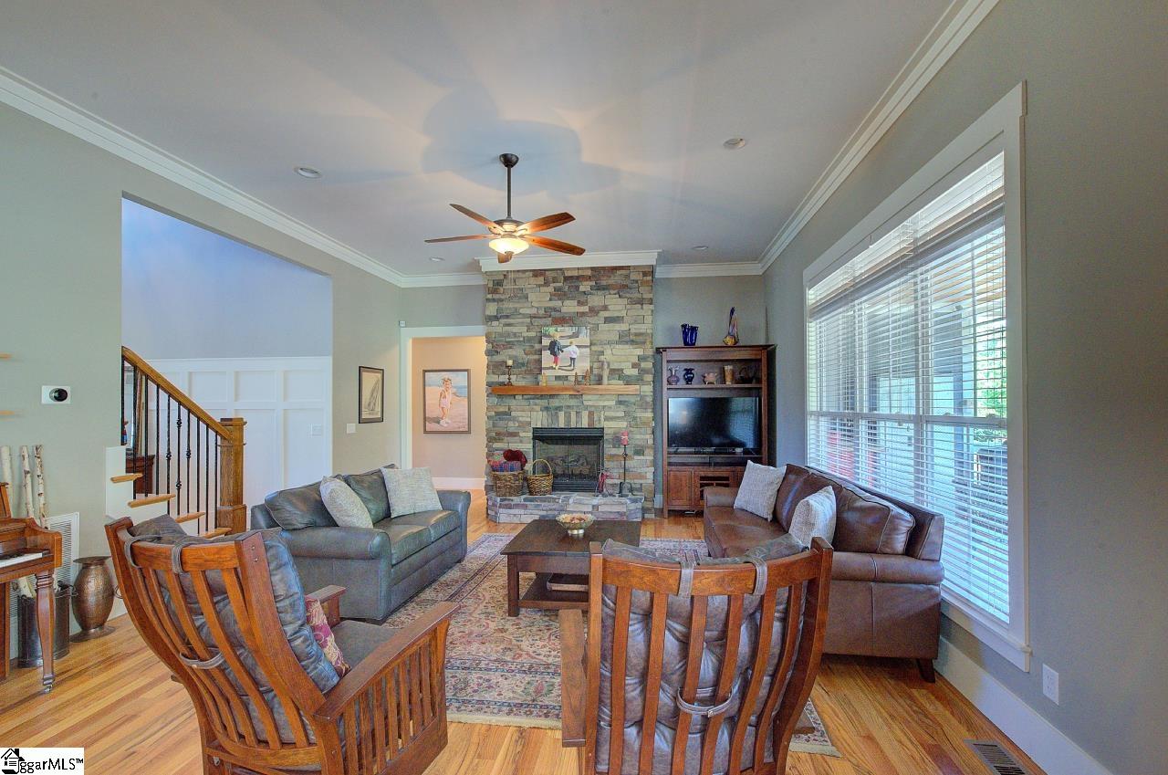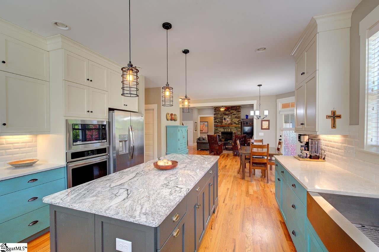 Welcome to this impressive Mike Anderson custom home located in the gated community of Hunters Landing, just steps from Lake Robinson. Situated on a corner lot of over half an acre, this 2017-built home offers nearly 4,400 square feet of well-designed living space. Inside, you’ll find 6 bedrooms, 4.5 bathrooms, a spacious bonus room, and an additional den currently used as a home office providing plenty of flexibility for a variety of needs. The main living area features an open-concept layout with a striking stone gas fireplace flowing into a beautifully appointed kitchen complete with custom cabinetry, an oversized island, and a commercial-grade Blue Star gas range ideal for both everyday living and entertaining. The primary suite is located on the main level and includes an impressive private bath. An additional bedroom on the main floor adds convenience for guests or flexible use. Thoughtful details continue throughout, including a custom-designed laundry room and pantry with built-in cabinetry and upgraded countertops. Outdoors, the fenced backyard features expansive Bermuda throughout, an oversized stone patio, and a fire pit perfect for gathering and relaxing. The property is further enhanced with grapevines and beautiful peonies throughout the lot. With its generous square footage, quality craftsmanship, and extensive upgrades, this home offers a great opportunity for comfortable living near Lake Robinson.
