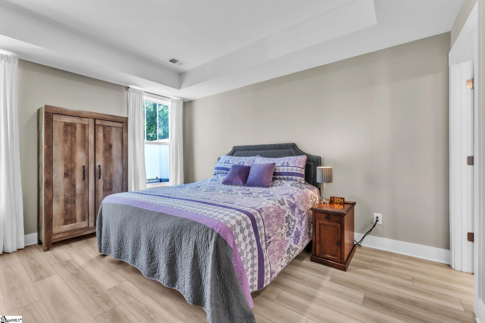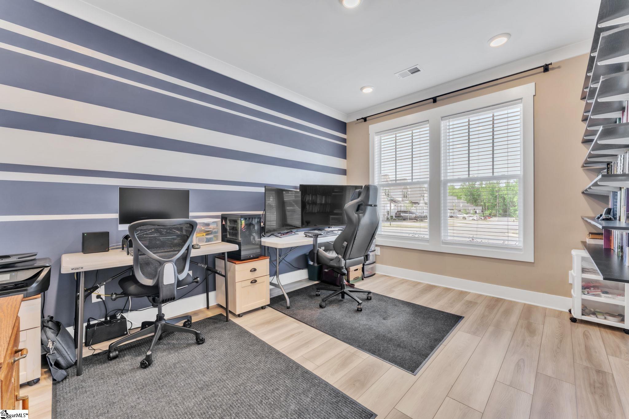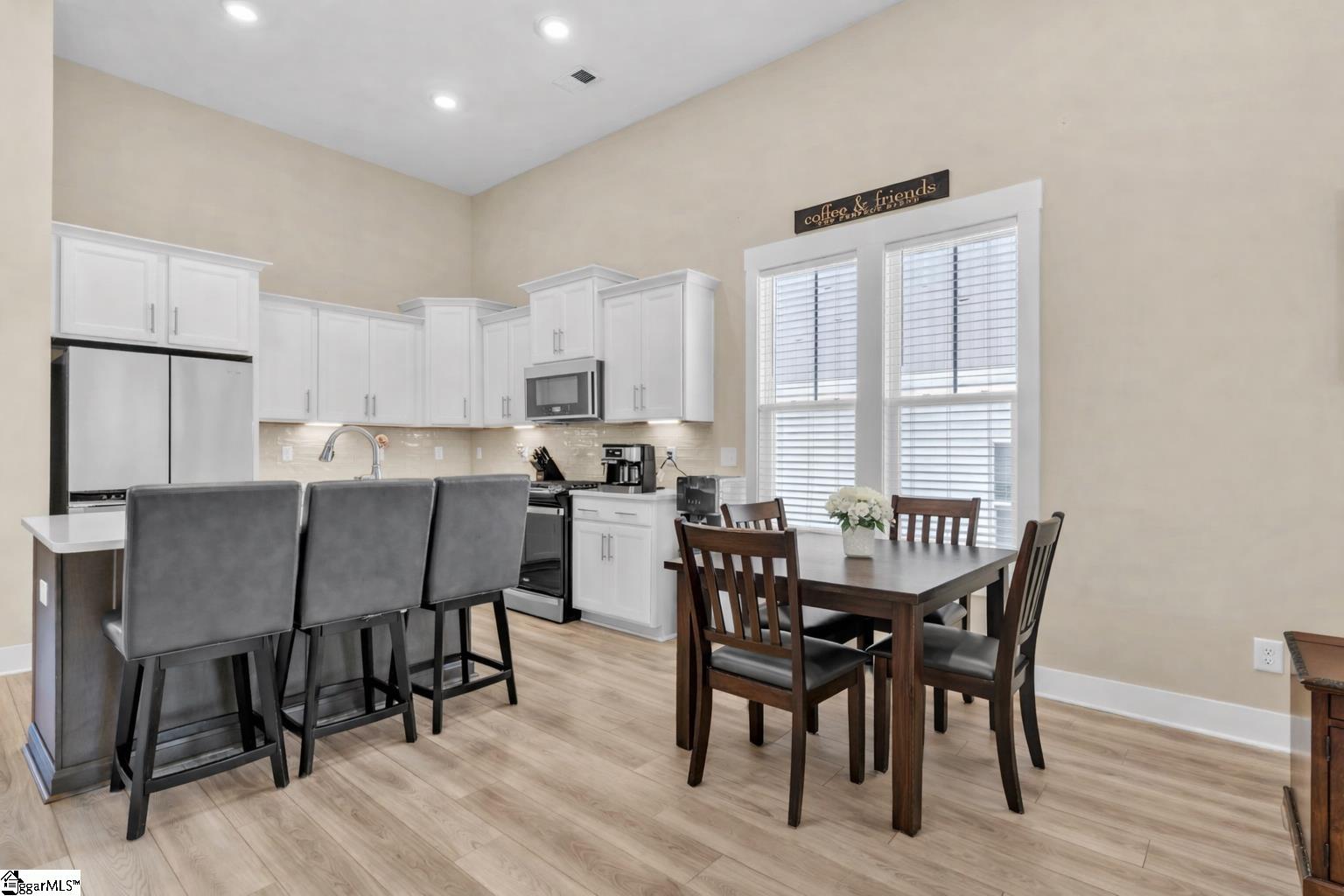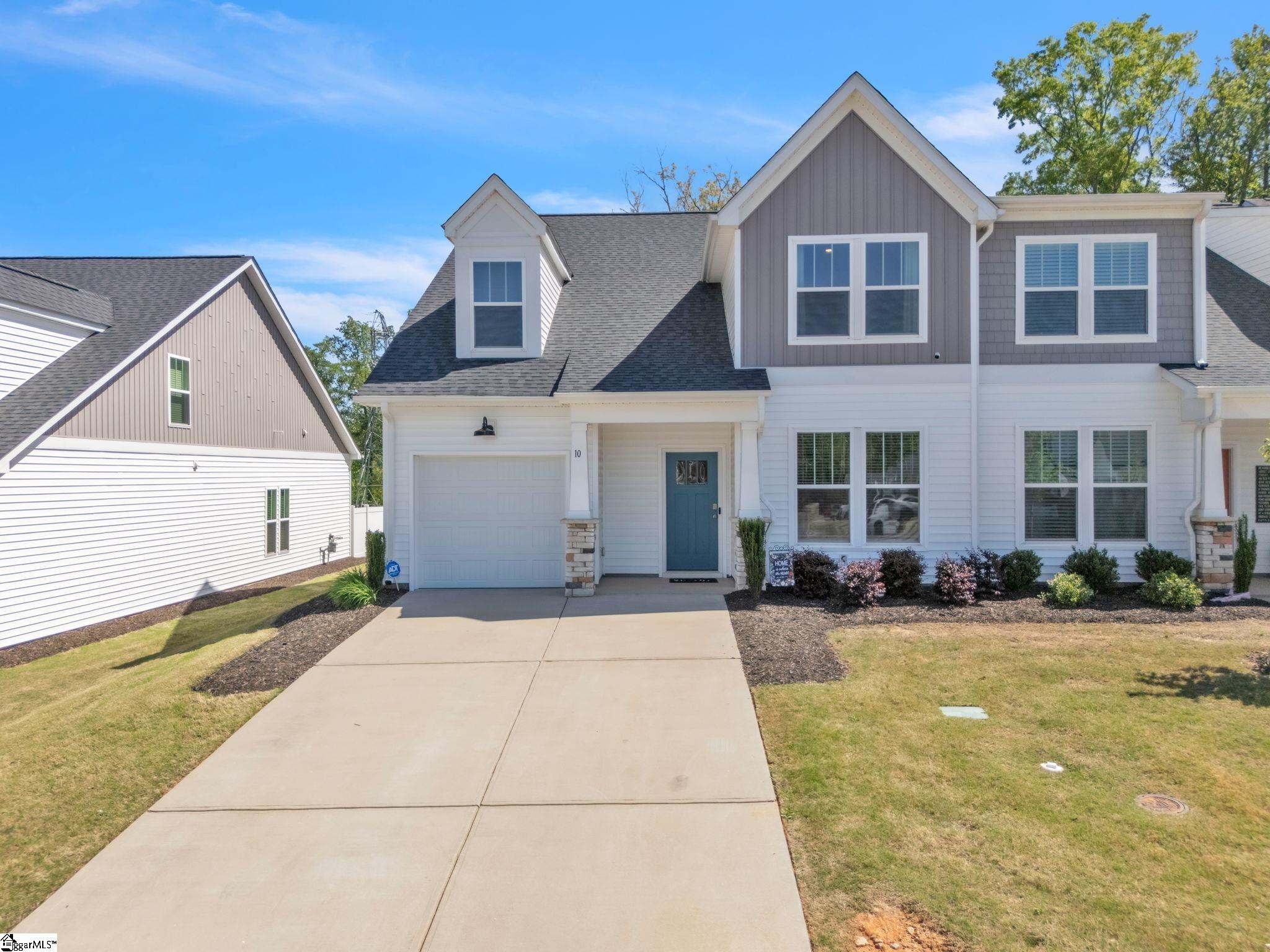 Welcome to low-maintenance living with high-end style at 10 Thornfield Drive in Greenville! This spacious end-unit townhome offers nearly 2,200 square feet of thoughtfully designed living space, featuring 3 bedrooms and 3 full bathrooms—perfect for comfortable everyday living or hosting guests. Originally built as the model home for the community, this property is loaded with upgrades and designer touches throughout—and wasn’t even lived in for the first two years, giving it a lightly lived-in feel with enhanced quality and care. Step inside to an inviting open floor plan filled with natural light, thanks to large windows and additional dining room windows that brighten the entire main living space. The split floor plan offers both functionality and privacy, while a dedicated office with upgraded paint schemes and elegant French doors creates the perfect work-from-home setup. The kitchen is a true centerpiece, featuring upgraded white cabinetry, a farmhouse sink, stylish backsplash, and enhanced lighting throughout the kitchen and dining areas—ideal for both entertaining and everyday living. The main-level primary suite offers ultimate convenience and comfort, featuring a tray ceiling detail, upgraded paint, and a beautifully finished tiled shower in the en-suite bath—creating a true private retreat. Upstairs continues the elevated feel with upgraded paint throughout, along with a stunning hardwood staircase that adds warmth and character. Additional premium features include upgraded flooring throughout the home, an epoxy-coated garage floor, and a front yard irrigation system for added convenience. Enjoy peaceful wooded views from the back, offering privacy and a relaxing backdrop, while the HOA takes care of lawn maintenance—making this home as easy to maintain as it is beautiful. Location is a standout feature—just minutes from Shoals Crossing Shopping Plaza, and easy access to all the shops and restaurants of Mauldin. You’re only 20 minutes from vibrant downtown Greenville and conveniently located near I-185 and I-385, providing quick access to the rest of the Upstate. If you’re looking for a move-in-ready home with model-home upgrades, natural light, and low-maintenance living in a prime location, this one checks all the boxes. Schedule your showing today!