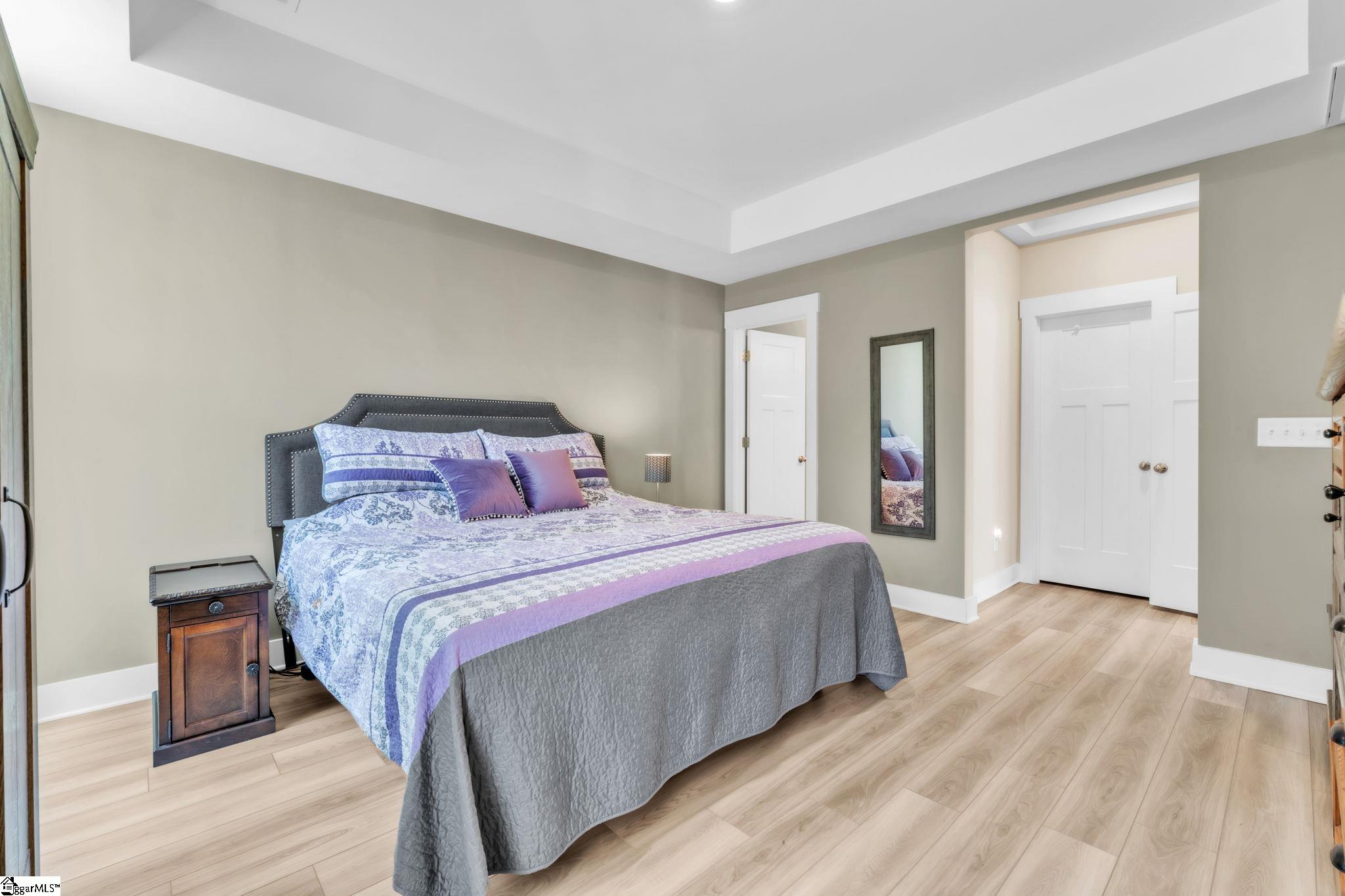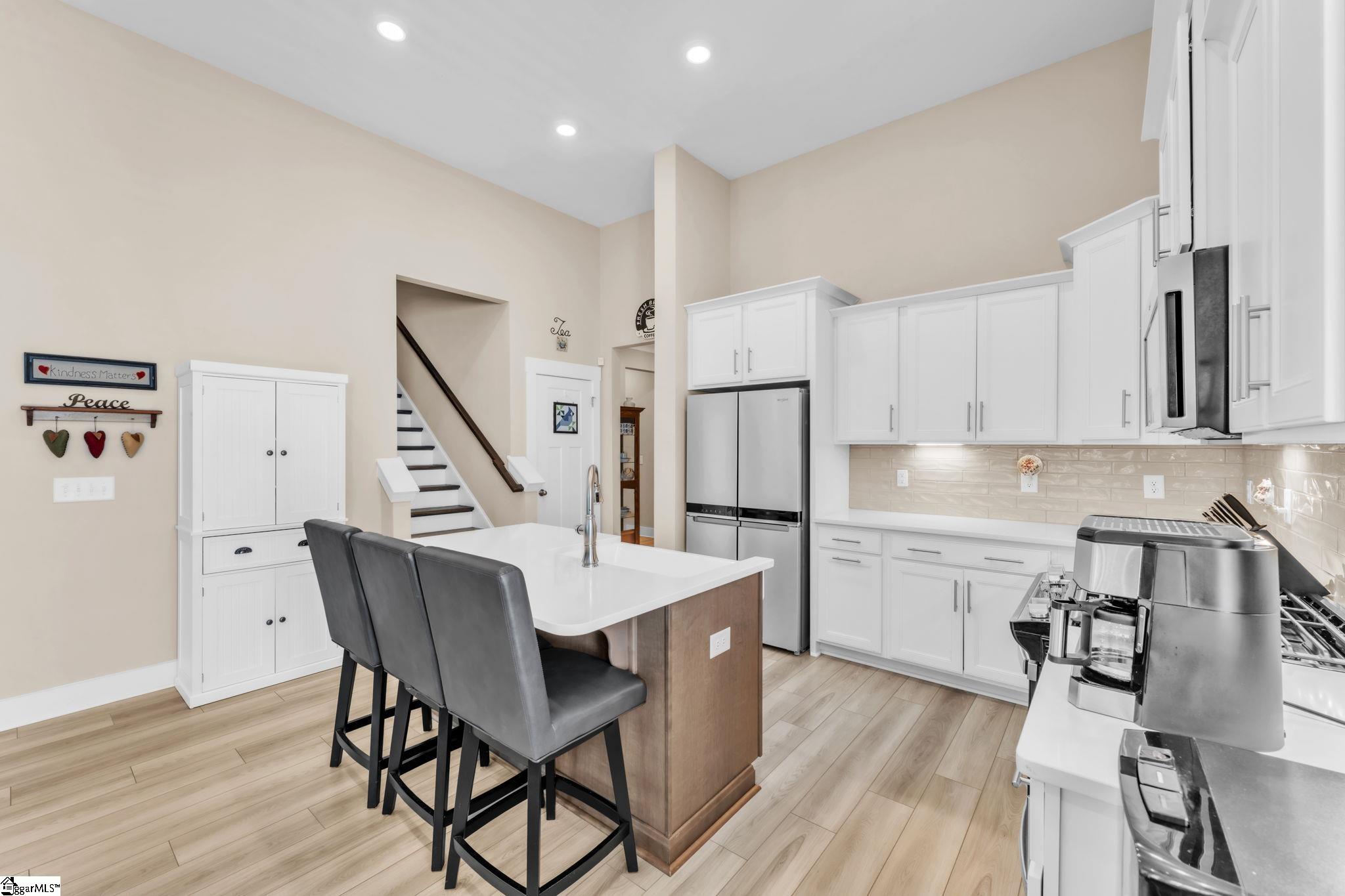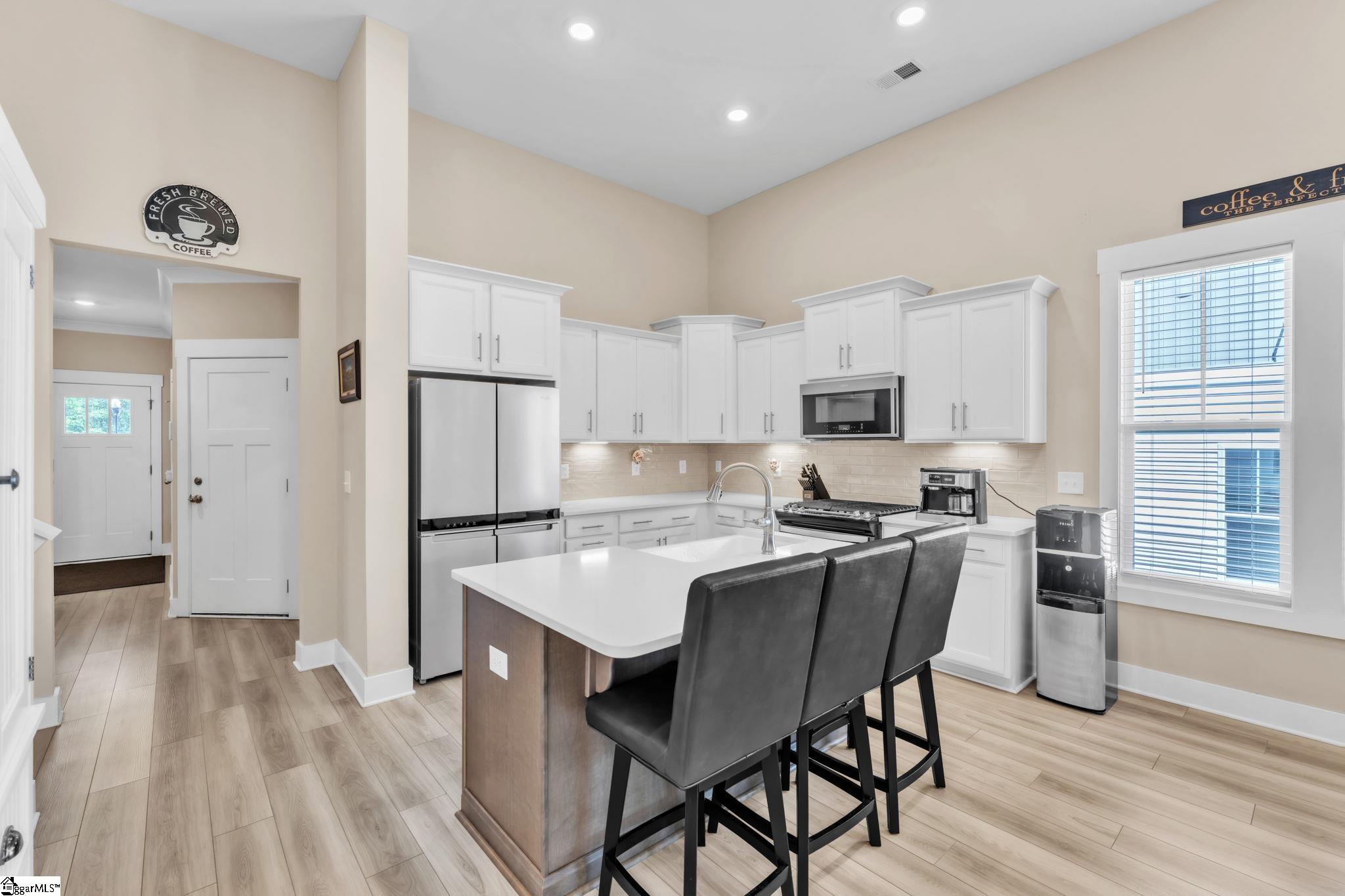 Welcome to low-maintenance living with high-end style at 10 Thornfield Drive in Greenville! This spacious end-unit townhome offers nearly 2,200 square feet of thoughtfully designed living space, featuring 3 bedrooms and 3 full bathrooms—perfect for comfortable everyday living or hosting guests. Originally built as the model home for the community, this property is loaded with upgrades and designer touches throughout—and wasn’t even lived in for the first two years, giving it a lightly lived-in feel with enhanced quality and care. Step inside to an inviting open floor plan filled with natural light, thanks to large windows and additional dining room windows that brighten the entire main living space. The split floor plan offers both functionality and privacy, while a dedicated office with upgraded paint schemes and elegant French doors creates the perfect work-from-home setup. The kitchen is a true centerpiece, featuring upgraded white cabinetry, a farmhouse sink, stylish backsplash, and enhanced lighting throughout the kitchen and dining areas—ideal for both entertaining and everyday living. The main-level primary suite offers ultimate convenience and comfort, featuring a tray ceiling detail, upgraded paint, and a beautifully finished tiled shower in the en-suite bath—creating a true private retreat. Upstairs continues the elevated feel with upgraded paint throughout, along with a stunning hardwood staircase that adds warmth and character. Additional premium features include upgraded flooring throughout the home, an epoxy-coated garage floor, and a front yard irrigation system for added convenience. Enjoy peaceful wooded views from the back, offering privacy and a relaxing backdrop, while the HOA takes care of lawn maintenance—making this home as easy to maintain as it is beautiful. Location is a standout feature—just minutes from Shoals Crossing Shopping Plaza, and easy access to all the shops and restaurants of Mauldin. You’re only 20 minutes from vibrant downtown Greenville and conveniently located near I-185 and I-385, providing quick access to the rest of the Upstate. If you’re looking for a move-in-ready home with model-home upgrades, natural light, and low-maintenance living in a prime location, this one checks all the boxes. Schedule your showing today!