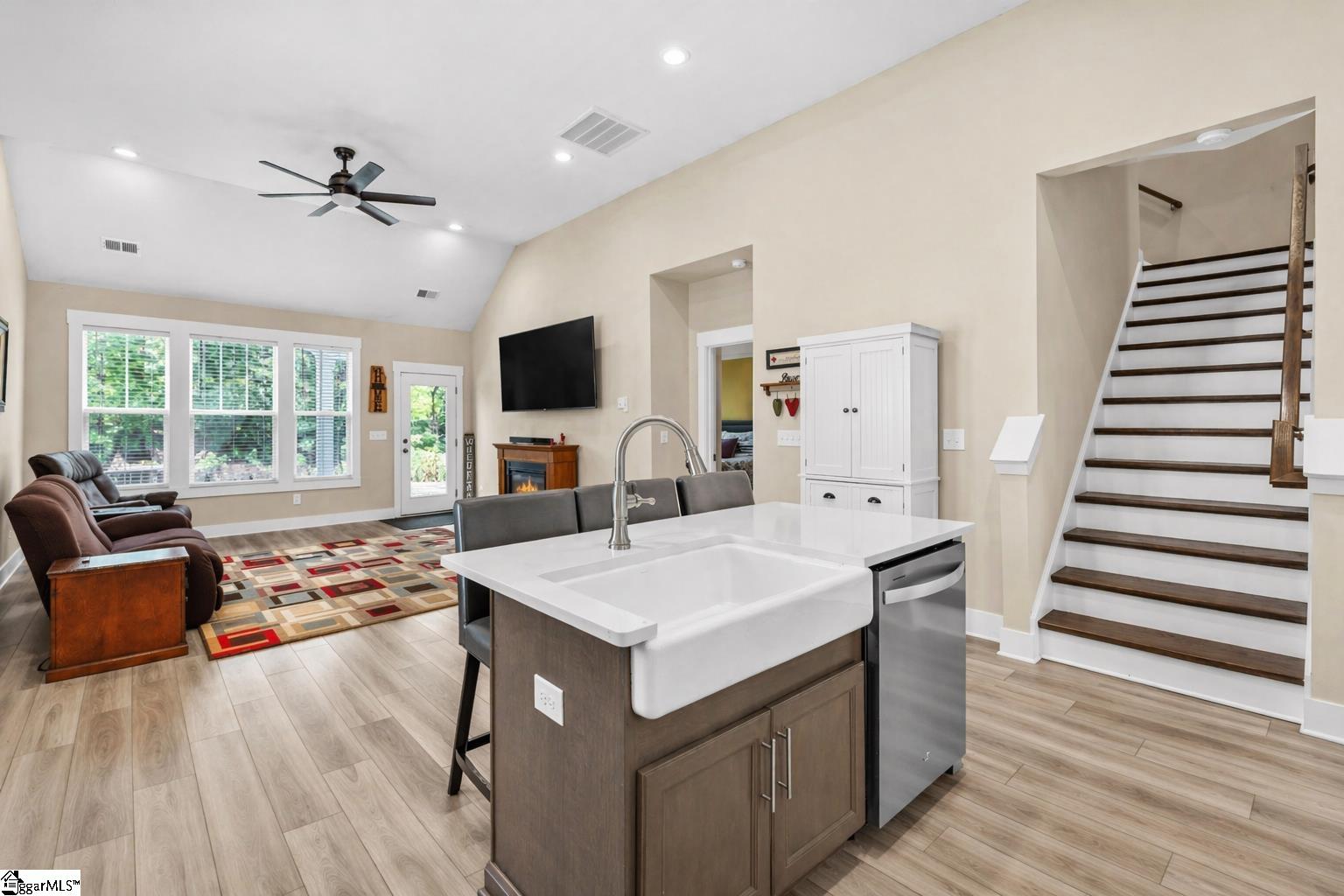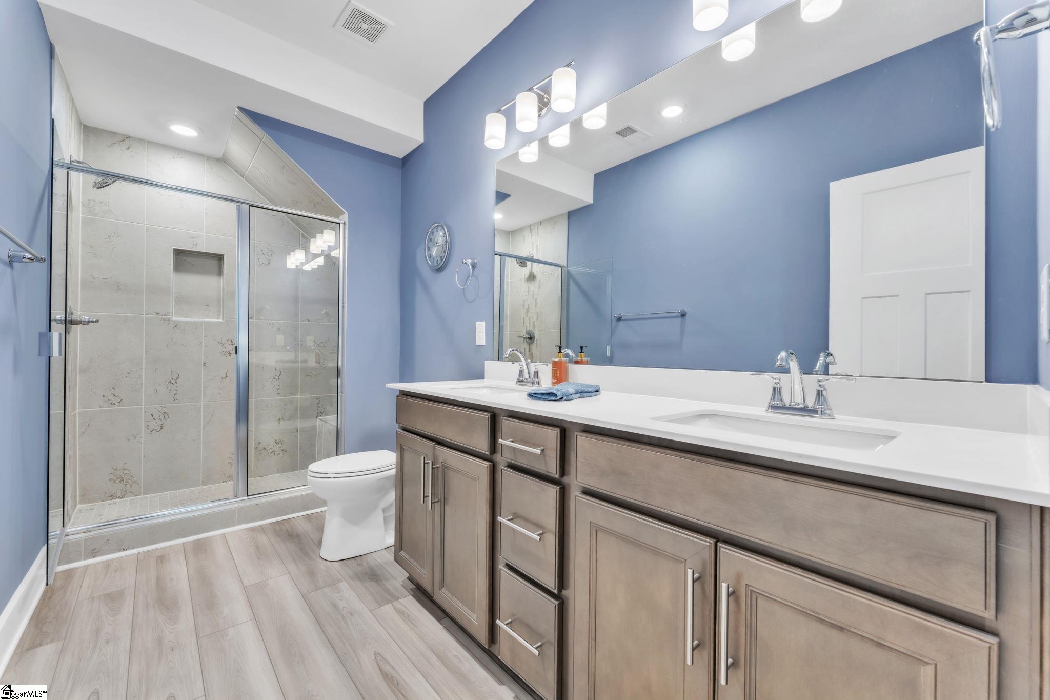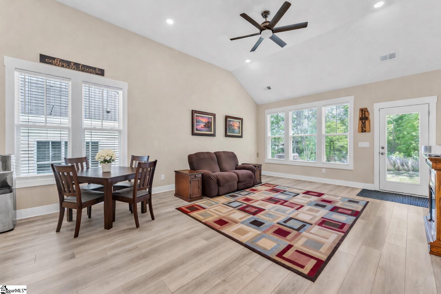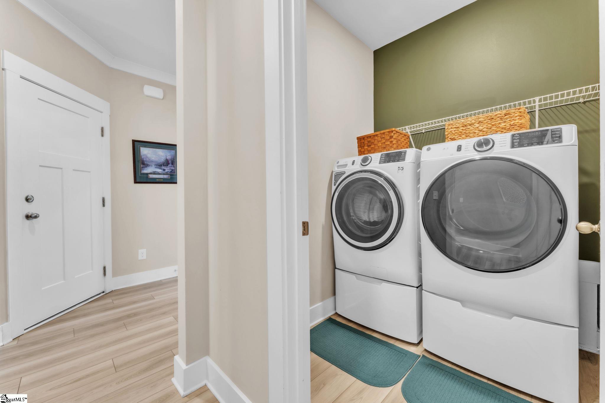 Welcome to low-maintenance living with high-end style at 10 Thornfield Drive in Greenville! This spacious end-unit townhome offers nearly 2,200 square feet of thoughtfully designed living space, featuring 3 bedrooms and 3 full bathrooms—perfect for comfortable everyday living or hosting guests. Originally built as the model home for the community, this property is loaded with upgrades and designer touches throughout—and wasn’t even lived in for the first two years, giving it a lightly lived-in feel with enhanced quality and care. Step inside to an inviting open floor plan filled with natural light, thanks to large windows and additional dining room windows that brighten the entire main living space. The split floor plan offers both functionality and privacy, while a dedicated office with upgraded paint schemes and elegant French doors creates the perfect work-from-home setup. The kitchen is a true centerpiece, featuring upgraded white cabinetry, a farmhouse sink, stylish backsplash, and enhanced lighting throughout the kitchen and dining areas—ideal for both entertaining and everyday living. The main-level primary suite offers ultimate convenience and comfort, featuring a tray ceiling detail, upgraded paint, and a beautifully finished tiled shower in the en-suite bath—creating a true private retreat. Upstairs continues the elevated feel with upgraded paint throughout, along with a stunning hardwood staircase that adds warmth and character. Additional premium features include upgraded flooring throughout the home, an epoxy-coated garage floor, and a front yard irrigation system for added convenience. Enjoy peaceful wooded views from the back, offering privacy and a relaxing backdrop, while the HOA takes care of lawn maintenance—making this home as easy to maintain as it is beautiful. Location is a standout feature—just minutes from Shoals Crossing Shopping Plaza, and easy access to all the shops and restaurants of Mauldin. You’re only 20 minutes from vibrant downtown Greenville and conveniently located near I-185 and I-385, providing quick access to the rest of the Upstate. If you’re looking for a move-in-ready home with model-home upgrades, natural light, and low-maintenance living in a prime location, this one checks all the boxes. Schedule your showing today!