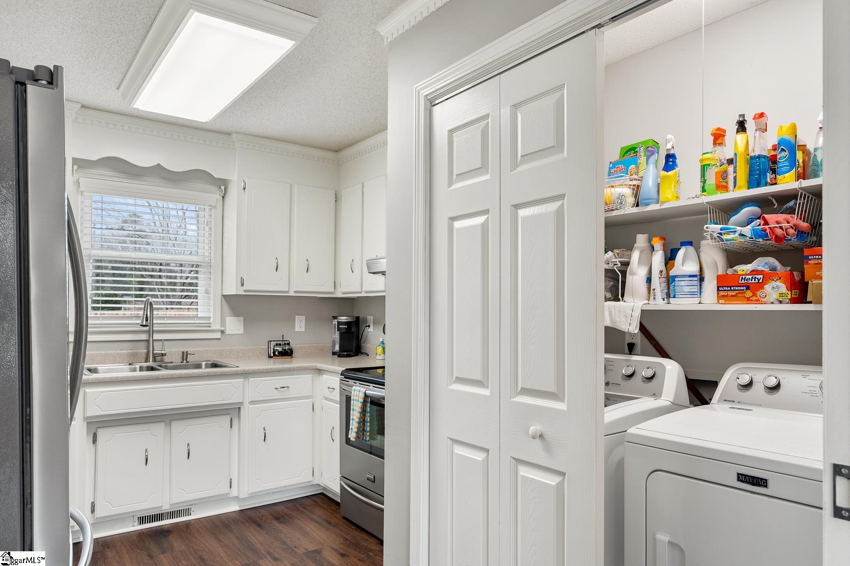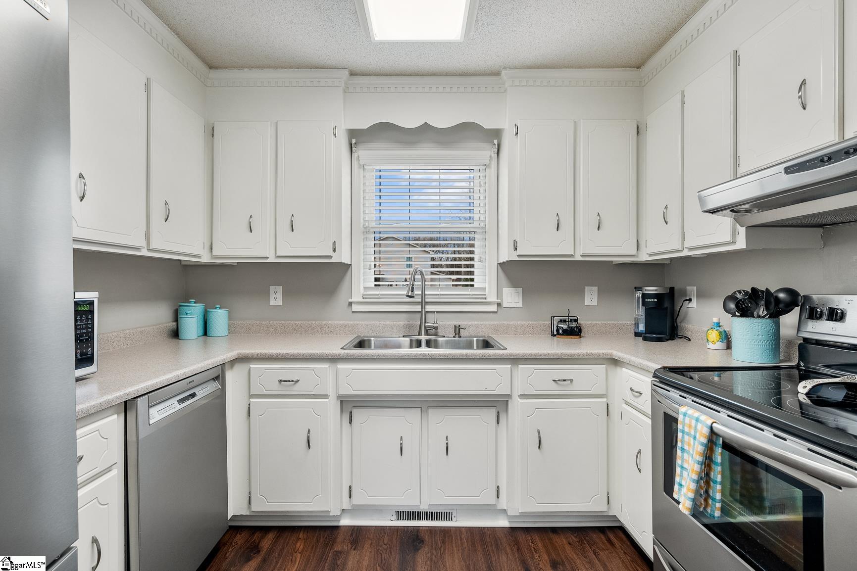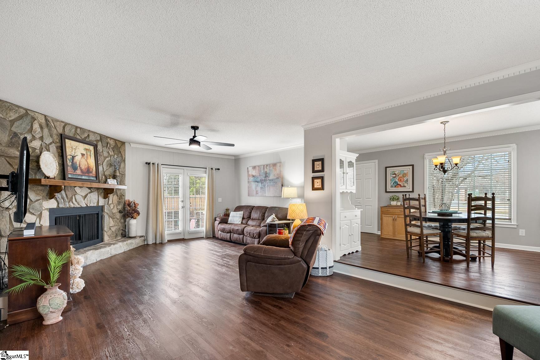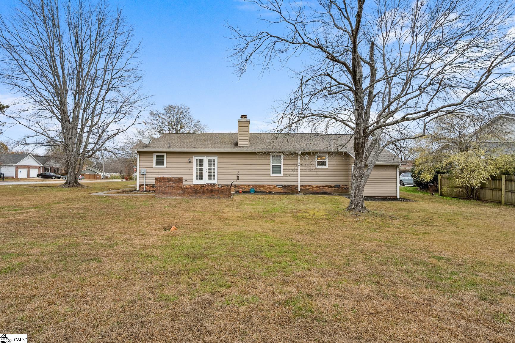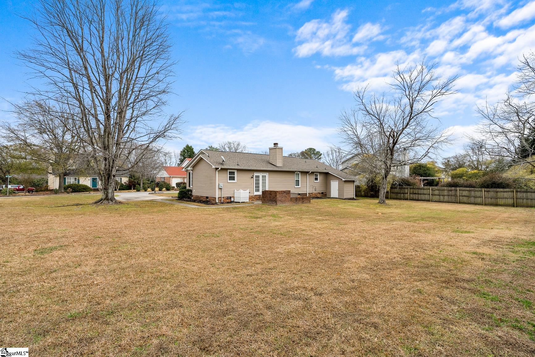Location, location, location! This beautifully maintained one-story ranch sits on a desirable corner lot in the established Canebrake community. Pride of ownership is evident—this home has had only one owner, who has lovingly cared for it for over 44 years. Canebrake offers exceptional community amenities including a pool, tennis courts, basketball court, playground, and neighborhood pond. The home is located within the Riverside school district and offers convenient access to Buena Vista Elementary. Inside, the home features a spacious living room accented by a stone wood-burning fireplace. The bright dining room sits just off the kitchen, which offers painted wood cabinetry, abundant storage, and ample counter space. A conveniently located laundry area is also found in the kitchen. Down the hallway is a fully updated bathroom with double sinks, a dedicated vanity area, and an expansive marble walk-in shower. Two secondary bedrooms provide generous closet space. The primary suite is located at the end of the hall and features an ensuite bathroom and walk-in closet. The level backyard includes a large patio and an attached storage building for added convenience. Additional recent upgrades include updated bathrooms, luxury vinyl plank flooring throughout the home (with tile in the bathrooms), and a brand-new HVAC system with ductwork installed in 2025. This property offers exceptional convenience—just minutes from I-85, Pelham Road, BMW, Michelin, GSP Airport, and the shops and restaurants of downtown Greer and Greenville. Don’t miss the opportunity to make this move-in-ready home yours in one of the area’s most sought-after communities.