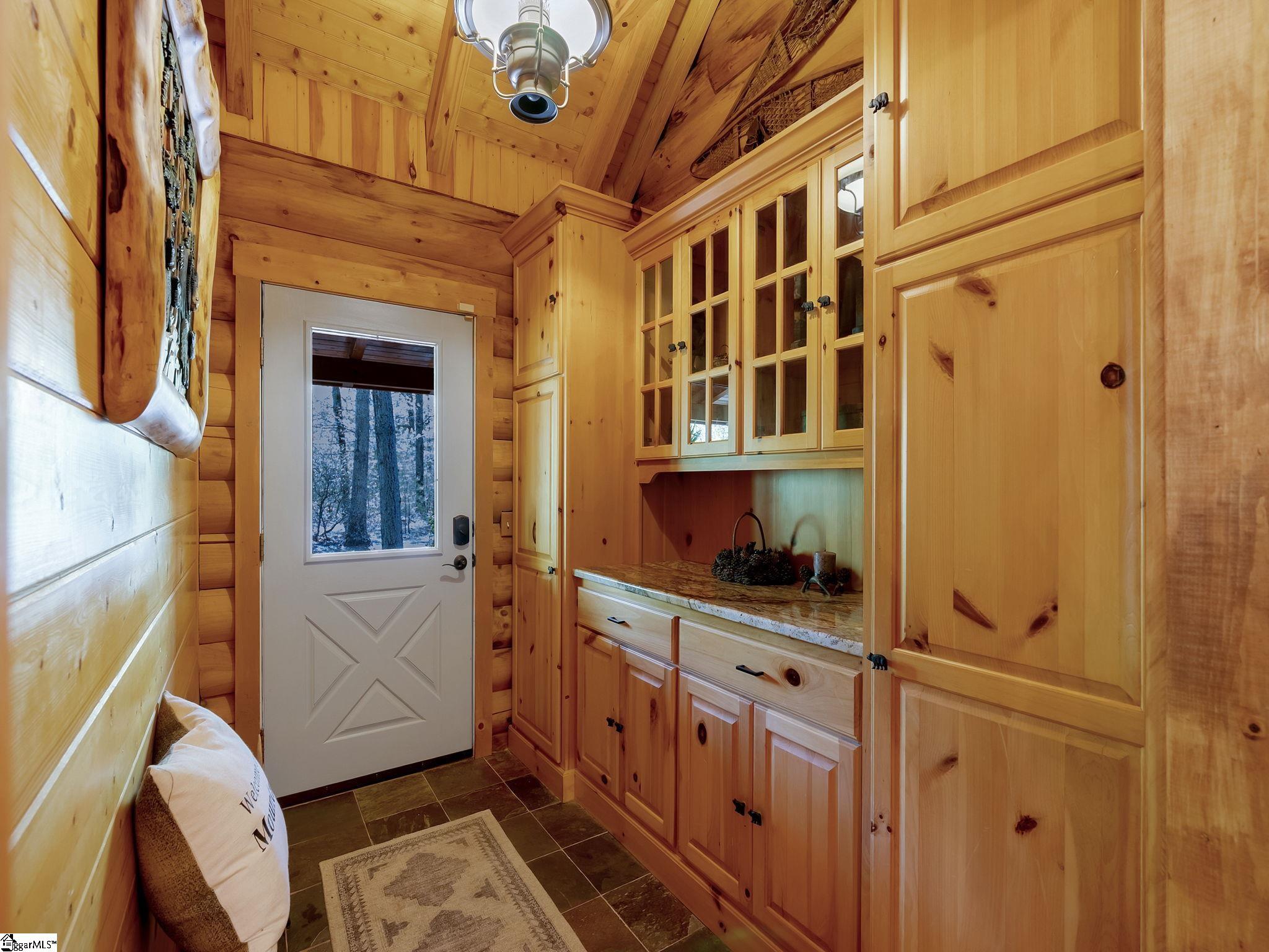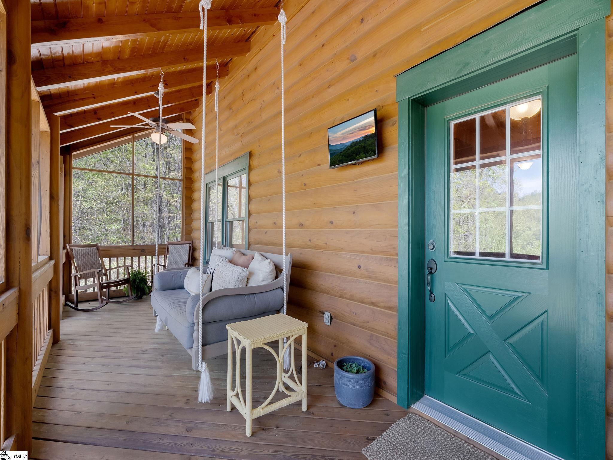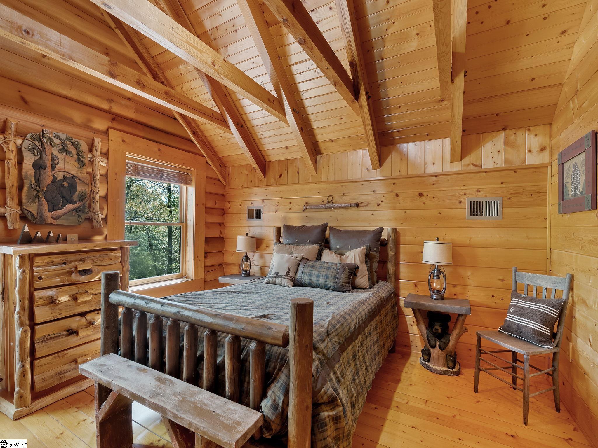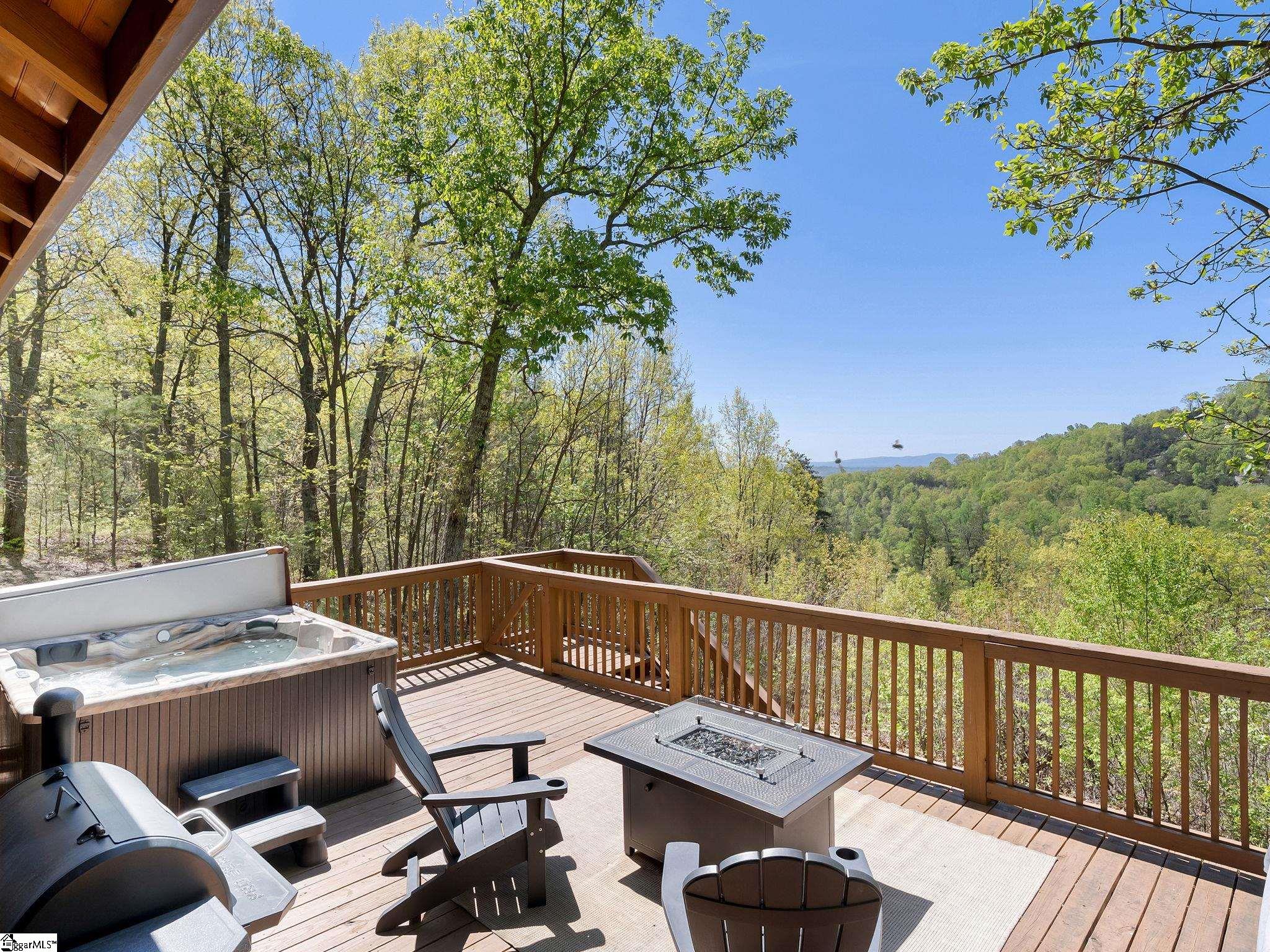 Welcome to 100 Eagle Rock Road, a charming log mountain retreat privately situated on 2.7 acres at approximately 1,650 feet of elevation. Tucked within a peaceful natural setting, this inviting residence offers the perfect blend of rustic character, modern comfort, and exceptional privacy. From the moment you arrive, you’ll appreciate the home’s curb appeal, enhanced by upgraded driveway edge stones, beautifully improved landscape lighting with smart app controls, and an easy, level driveway providing effortless access to the attached two-car garage. Sweeping south to southwest mountain views create a stunning backdrop, making this an ideal opportunity to downsize in style or enjoy as a weekend or seasonal escape. Inside, the foyer welcomes you with the warmth and beauty that only a true mountain home can offer. The kitchen serves as the heart of the residence, featuring stainless steel appliances, a Samsung refrigerator and microwave (2023), granite countertops, gas cooktop, added center island, and a soaring A-frame rustic ceiling. The breakfast nook gas fireplace adds a cozy ambiance, perfect for quiet mornings or intimate dinners. Adjacent to the kitchen, a versatile den—converted from a former sunroom—has been thoughtfully updated and offers exceptional flexibility as a bright home office, sitting room, recreation room, or separate dining area. Updated light fixtures throughout the home provide a fresh, refined touch while complementing the timeless log construction. Just down the hall, the spacious living room invites gatherings with family and friends around the impressive stone gas fireplace. Whether entertaining guests or enjoying a peaceful evening with a good book, this room offers comfort and classic mountain charm. The generous primary suite is designed as a private retreat, featuring ample walk-in closet space, a study nook, and a spacious bath with dual vanities and tub/shower combination. The remodeled half bath further enhances the home’s style and functionality and is accented by an artisan copper sink.Upstairs, two guest bedrooms and a full bath comfortably accommodate visitors. Both upper-level bedroom closets include convenient attic access for additional storage. Outdoor living is equally inviting, offering a seamless extension of the home’s warm interior spaces and the perfect setting to enjoy the surrounding mountain beauty year-round. The screened porch spans the entire rear of the home, offering a tranquil place to relax while taking in breathtaking sunset views. A newly added deck and stairs provide easy access to the backyard, where there is ample room for pets, recreation, or grandchildren to play. Soak in the inviting hot tub and enjoy a peaceful place to relax while taking in the serene mountain surroundings. The view corridor to the left of the home has ARB approval for tree removal, presenting an opportunity to further open and enhance the mountain vistas. Additional recent improvements include new HVAC systems (2021 and 2023) and a new water heater. Abundant storage space is found in the lower-level garage, along with an attached 360+ sq. ft. laundry and storage room. This home includes the adjacent lot (tax#: 0638140103500, providing added privacy and flexibility, and is subject to an additional POA assessment. A Club membership at The Cliffs is available with this property giving you access to all seven communities.
