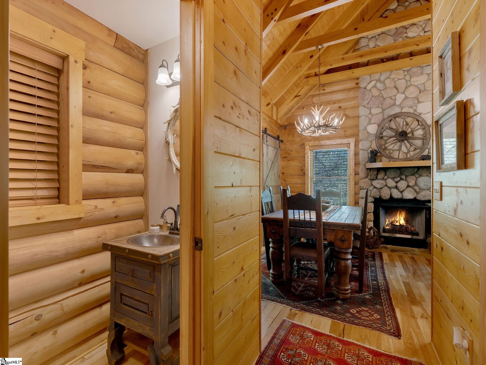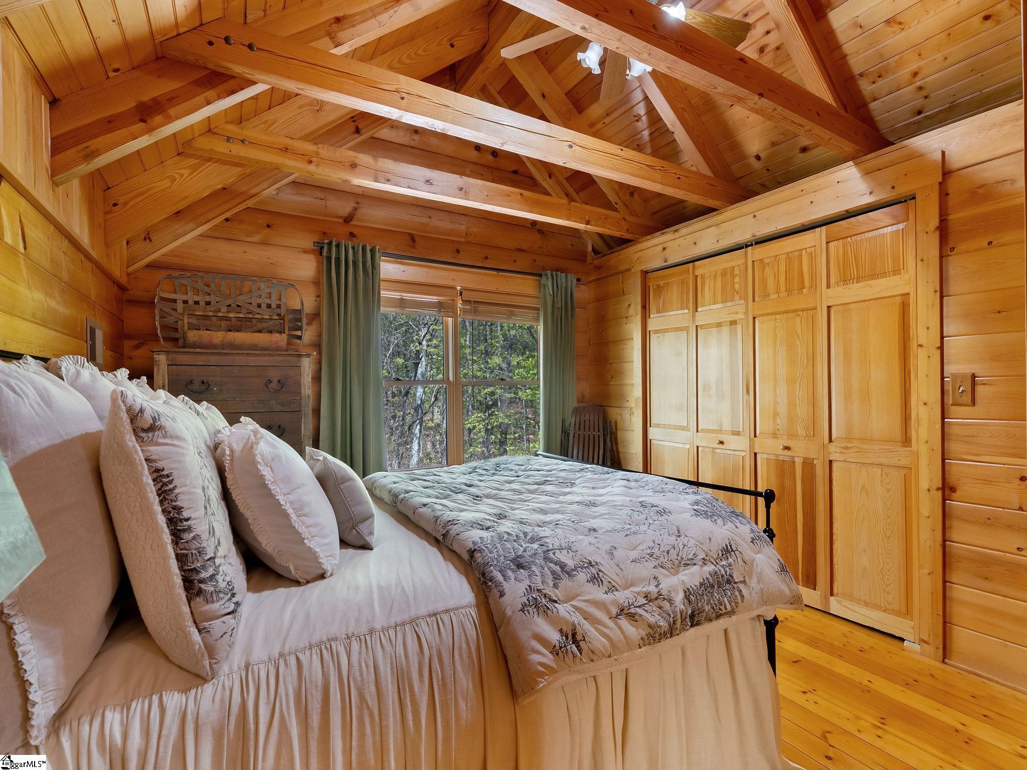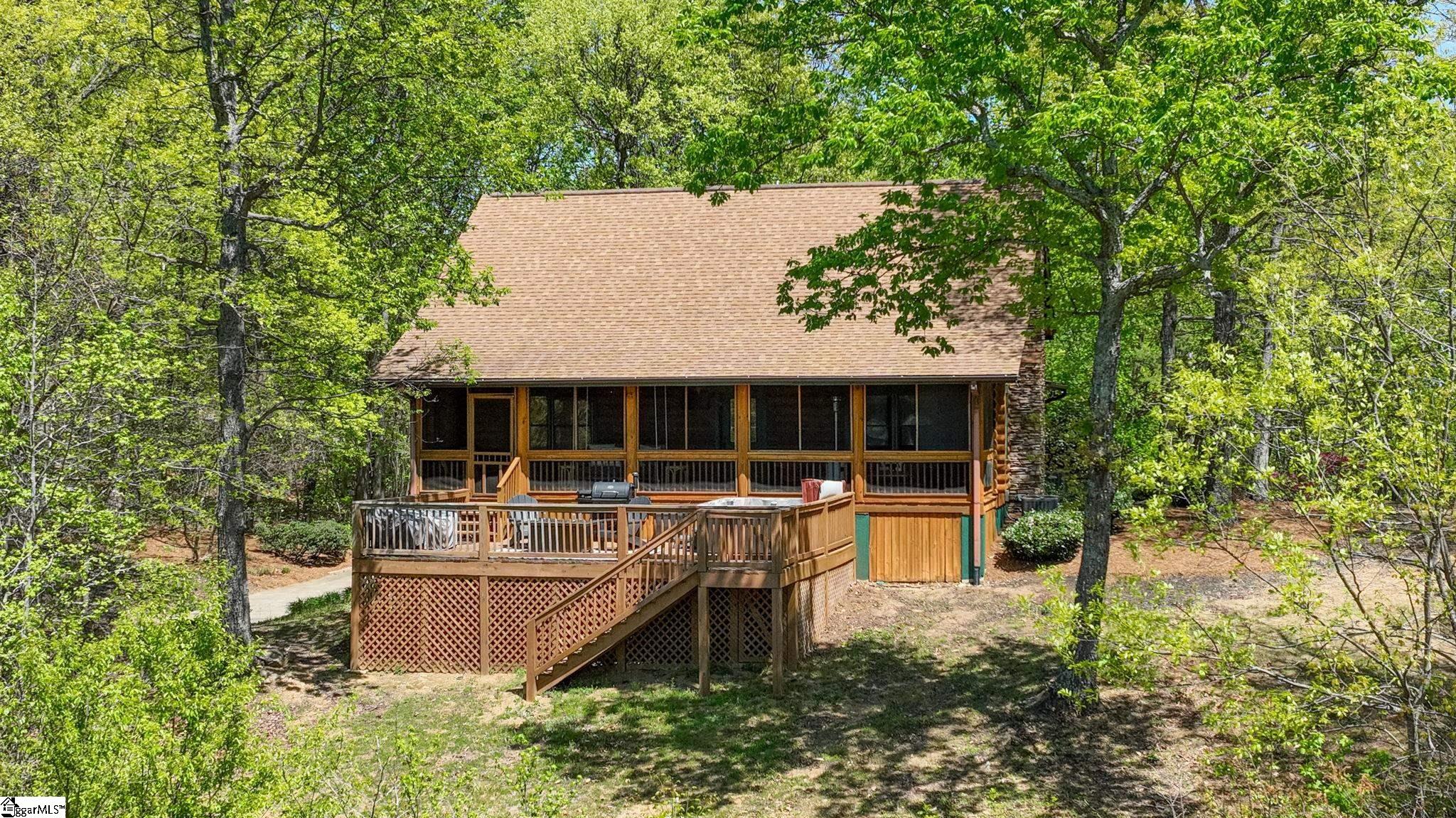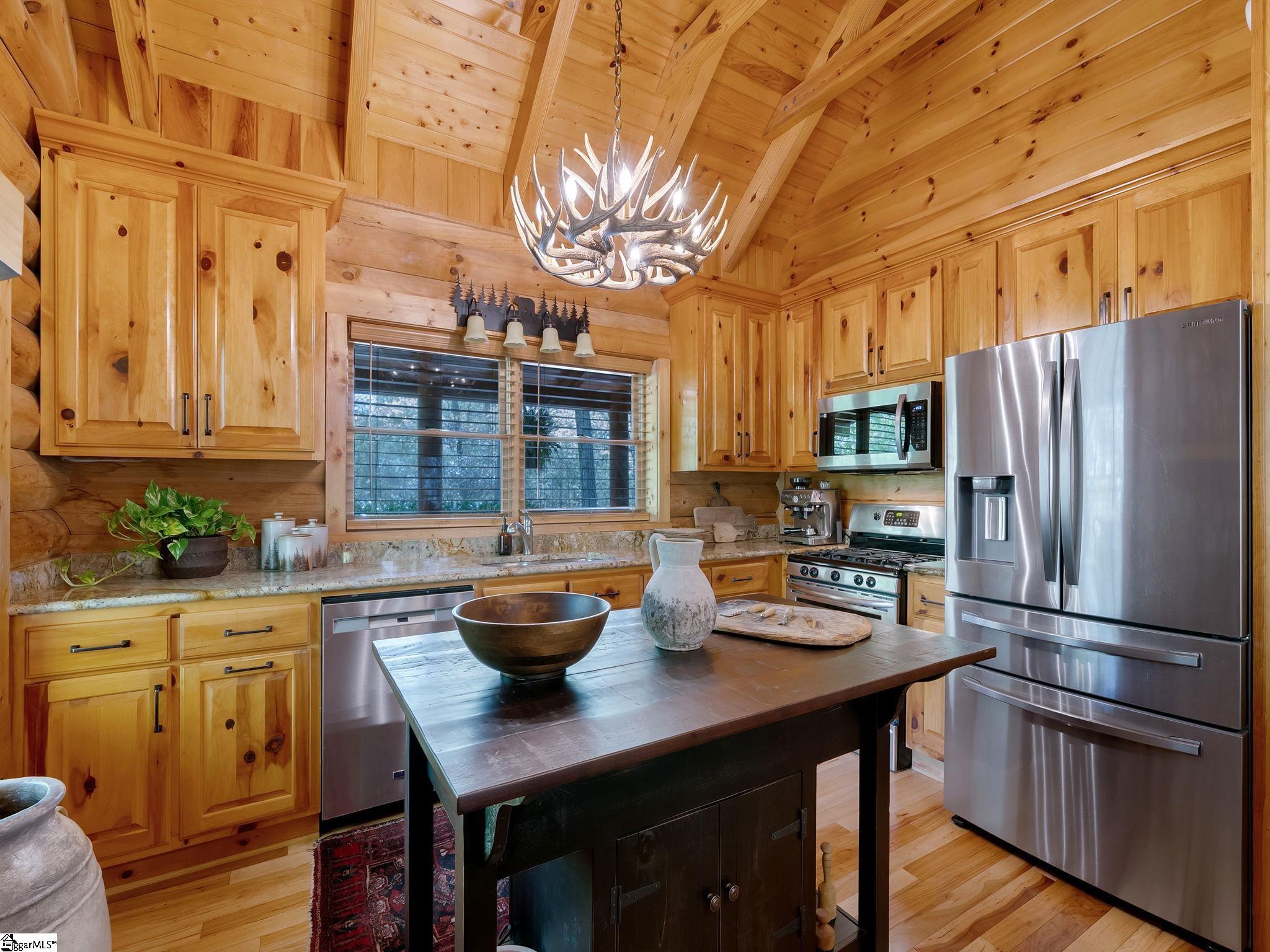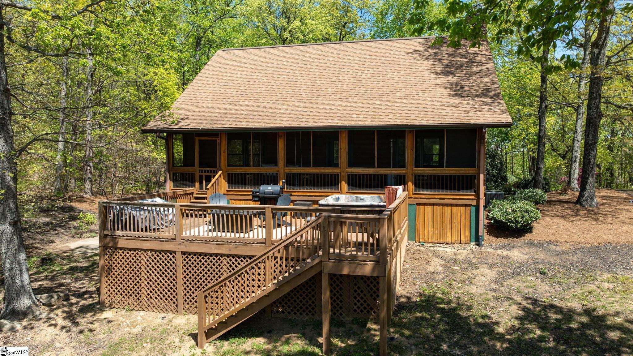 Welcome to 100 Eagle Rock Road, a charming log mountain retreat privately situated on 2.7 acres at approximately 1,650 feet of elevation. Tucked within a peaceful natural setting, this inviting residence offers the perfect blend of rustic character, modern comfort, and exceptional privacy. From the moment you arrive, you’ll appreciate the home’s curb appeal, enhanced by upgraded driveway edge stones, beautifully improved landscape lighting with smart app controls, and an easy, level driveway providing effortless access to the attached two-car garage. Sweeping south to southwest mountain views create a stunning backdrop, making this an ideal opportunity to downsize in style or enjoy as a weekend or seasonal escape. Inside, the foyer welcomes you with the warmth and beauty that only a true mountain home can offer. The kitchen serves as the heart of the residence, featuring stainless steel appliances, a Samsung refrigerator and microwave (2023), granite countertops, gas cooktop, added center island, and a soaring A-frame rustic ceiling. The breakfast nook gas fireplace adds a cozy ambiance, perfect for quiet mornings or intimate dinners. Adjacent to the kitchen, a versatile den—converted from a former sunroom—has been thoughtfully updated and offers exceptional flexibility as a bright home office, sitting room, recreation room, or separate dining area. Updated light fixtures throughout the home provide a fresh, refined touch while complementing the timeless log construction. Just down the hall, the spacious living room invites gatherings with family and friends around the impressive stone gas fireplace. Whether entertaining guests or enjoying a peaceful evening with a good book, this room offers comfort and classic mountain charm. The generous primary suite is designed as a private retreat, featuring ample walk-in closet space, a study nook, and a spacious bath with dual vanities and tub/shower combination. The remodeled half bath further enhances the home’s style and functionality and is accented by an artisan copper sink.Upstairs, two guest bedrooms and a full bath comfortably accommodate visitors. Both upper-level bedroom closets include convenient attic access for additional storage. Outdoor living is equally inviting, offering a seamless extension of the home’s warm interior spaces and the perfect setting to enjoy the surrounding mountain beauty year-round. The screened porch spans the entire rear of the home, offering a tranquil place to relax while taking in breathtaking sunset views. A newly added deck and stairs provide easy access to the backyard, where there is ample room for pets, recreation, or grandchildren to play. Soak in the inviting hot tub and enjoy a peaceful place to relax while taking in the serene mountain surroundings. The view corridor to the left of the home has ARB approval for tree removal, presenting an opportunity to further open and enhance the mountain vistas. Additional recent improvements include new HVAC systems (2021 and 2023) and a new water heater. Abundant storage space is found in the lower-level garage, along with an attached 360+ sq. ft. laundry and storage room. This home includes the adjacent lot (tax#: 0638140103500, providing added privacy and flexibility, and is subject to an additional POA assessment. A Club membership at The Cliffs is available with this property giving you access to all seven communities.