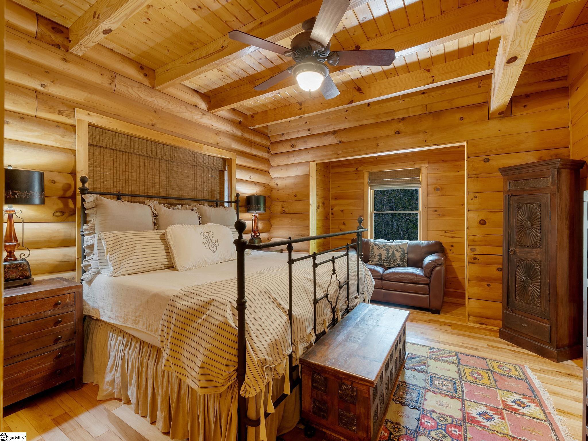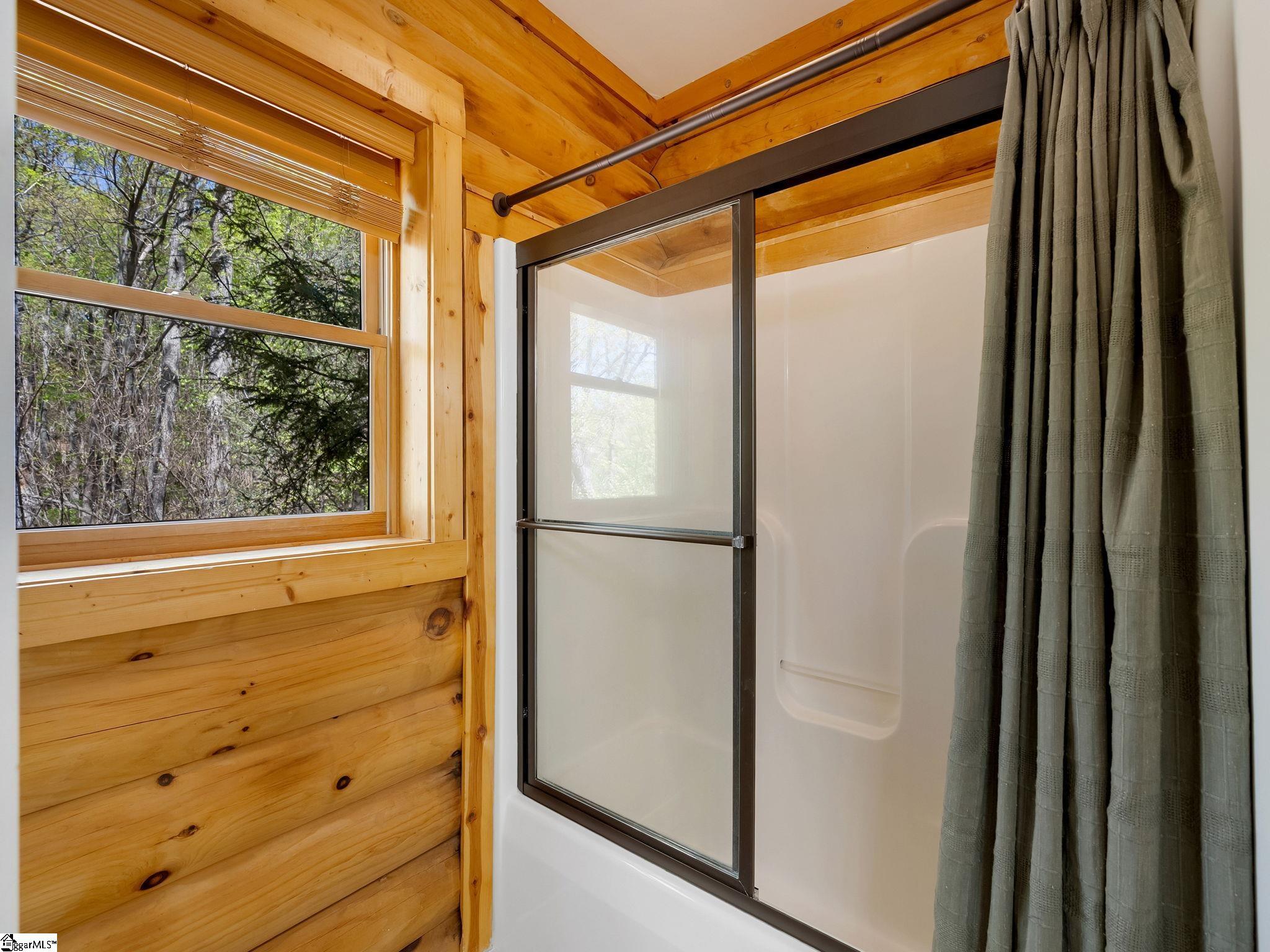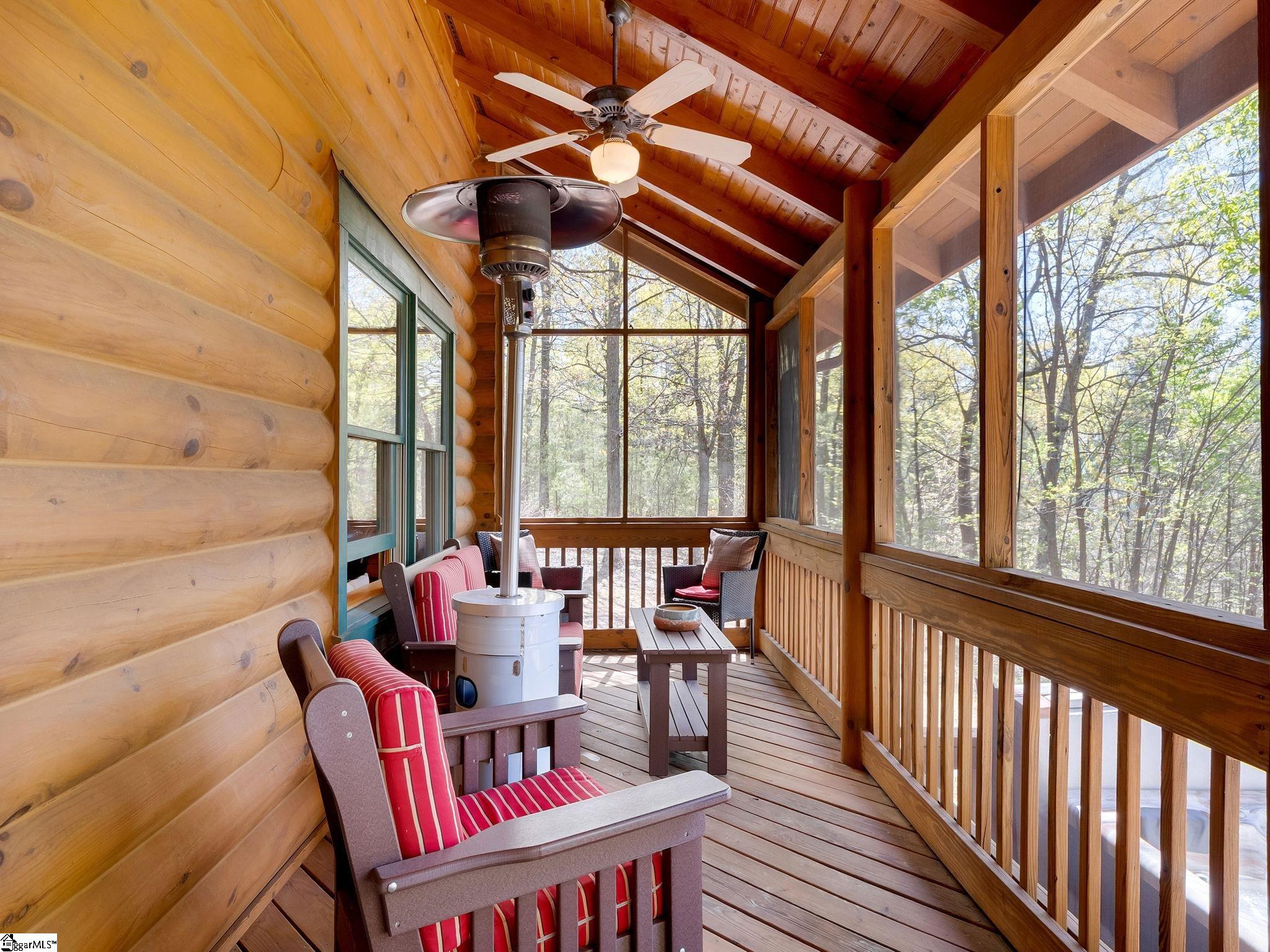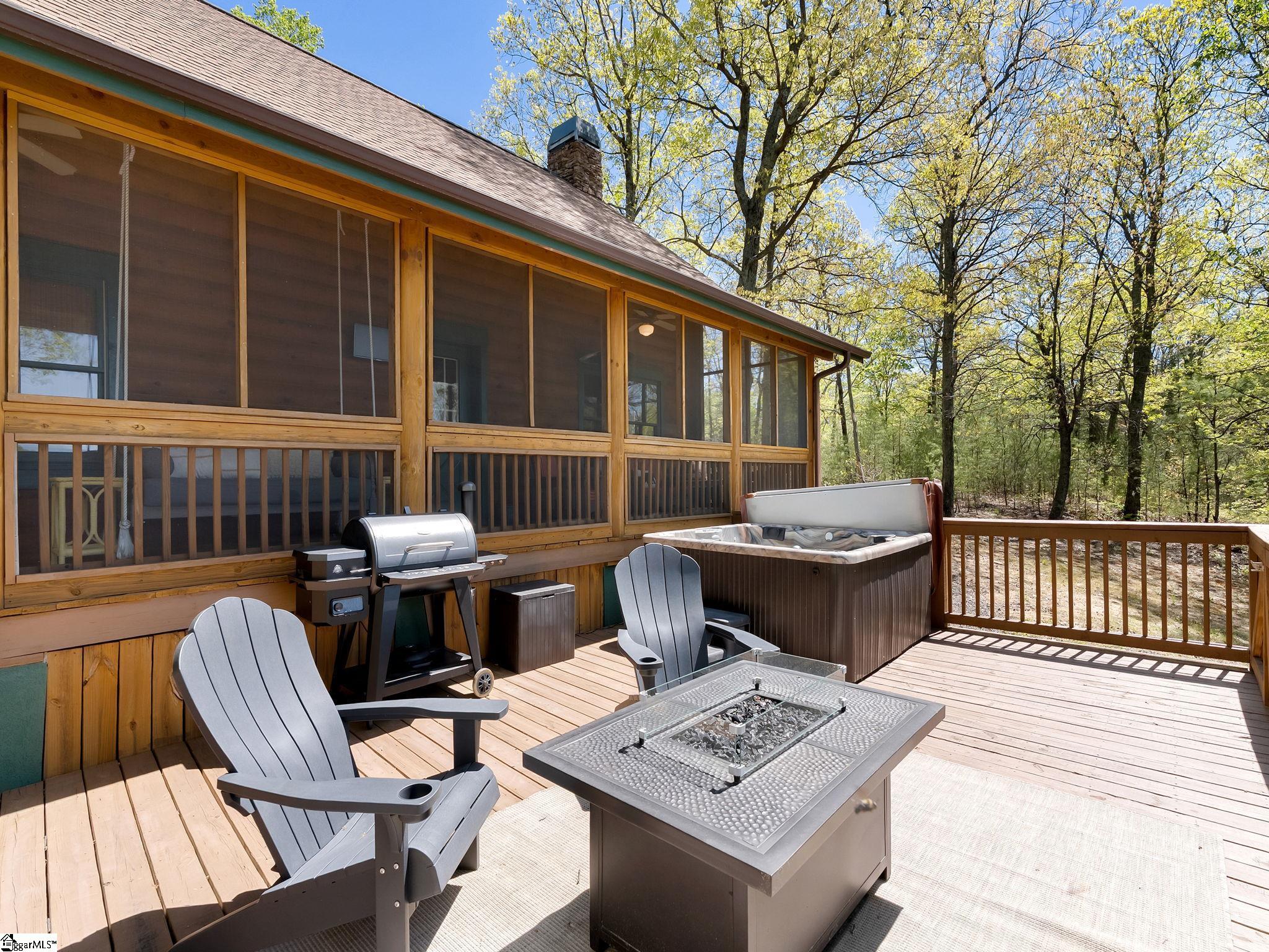 Welcome to 100 Eagle Rock Road, a charming log mountain retreat privately situated on 2.7 acres at approximately 1,650 feet of elevation. Tucked within a peaceful natural setting, this inviting residence offers the perfect blend of rustic character, modern comfort, and exceptional privacy. From the moment you arrive, you’ll appreciate the home’s curb appeal, enhanced by upgraded driveway edge stones, beautifully improved landscape lighting with smart app controls, and an easy, level driveway providing effortless access to the attached two-car garage. Sweeping south to southwest mountain views create a stunning backdrop, making this an ideal opportunity to downsize in style or enjoy as a weekend or seasonal escape. Inside, the foyer welcomes you with the warmth and beauty that only a true mountain home can offer. The kitchen serves as the heart of the residence, featuring stainless steel appliances, a Samsung refrigerator and microwave (2023), granite countertops, gas cooktop, added center island, and a soaring A-frame rustic ceiling. The breakfast nook gas fireplace adds a cozy ambiance, perfect for quiet mornings or intimate dinners. Adjacent to the kitchen, a versatile den—converted from a former sunroom—has been thoughtfully updated and offers exceptional flexibility as a bright home office, sitting room, recreation room, or separate dining area. Updated light fixtures throughout the home provide a fresh, refined touch while complementing the timeless log construction. Just down the hall, the spacious living room invites gatherings with family and friends around the impressive stone gas fireplace. Whether entertaining guests or enjoying a peaceful evening with a good book, this room offers comfort and classic mountain charm. The generous primary suite is designed as a private retreat, featuring ample walk-in closet space, a study nook, and a spacious bath with dual vanities and tub/shower combination. The remodeled half bath further enhances the home’s style and functionality and is accented by an artisan copper sink.Upstairs, two guest bedrooms and a full bath comfortably accommodate visitors. Both upper-level bedroom closets include convenient attic access for additional storage. Outdoor living is equally inviting, offering a seamless extension of the home’s warm interior spaces and the perfect setting to enjoy the surrounding mountain beauty year-round. The screened porch spans the entire rear of the home, offering a tranquil place to relax while taking in breathtaking sunset views. A newly added deck and stairs provide easy access to the backyard, where there is ample room for pets, recreation, or grandchildren to play. Soak in the inviting hot tub and enjoy a peaceful place to relax while taking in the serene mountain surroundings. The view corridor to the left of the home has ARB approval for tree removal, presenting an opportunity to further open and enhance the mountain vistas. Additional recent improvements include new HVAC systems (2021 and 2023) and a new water heater. Abundant storage space is found in the lower-level garage, along with an attached 360+ sq. ft. laundry and storage room. This home includes the adjacent lot (tax#: 0638140103500, providing added privacy and flexibility, and is subject to an additional POA assessment. A Club membership at The Cliffs is available with this property giving you access to all seven communities.