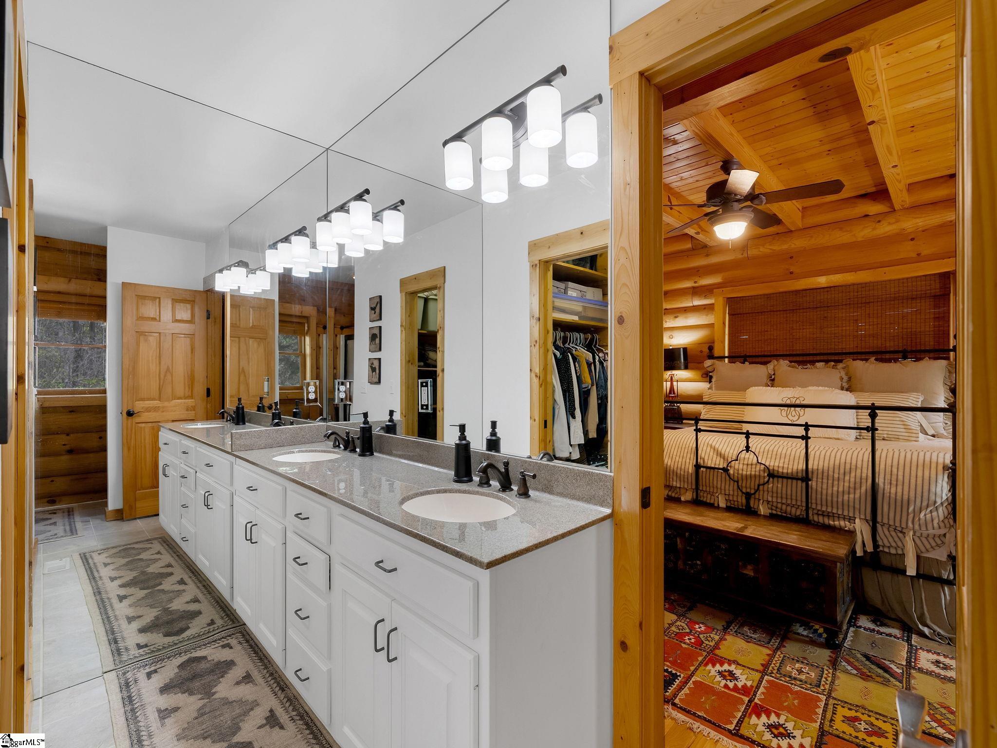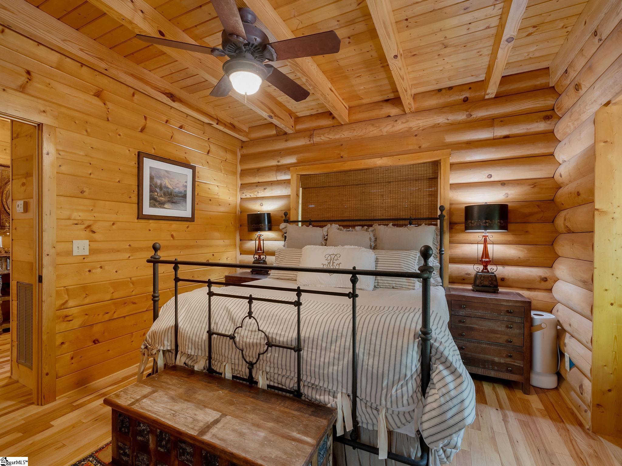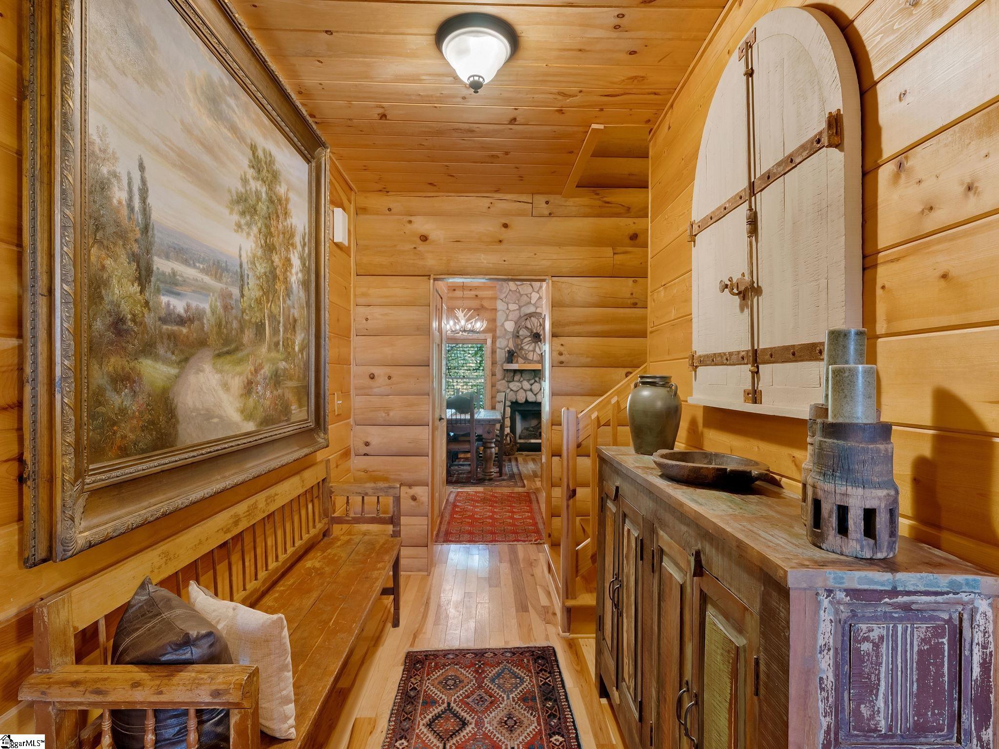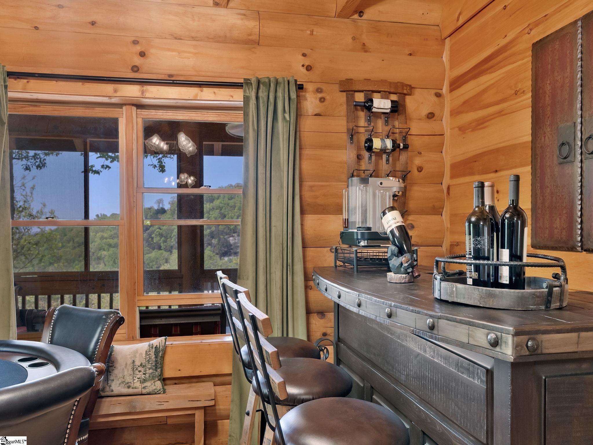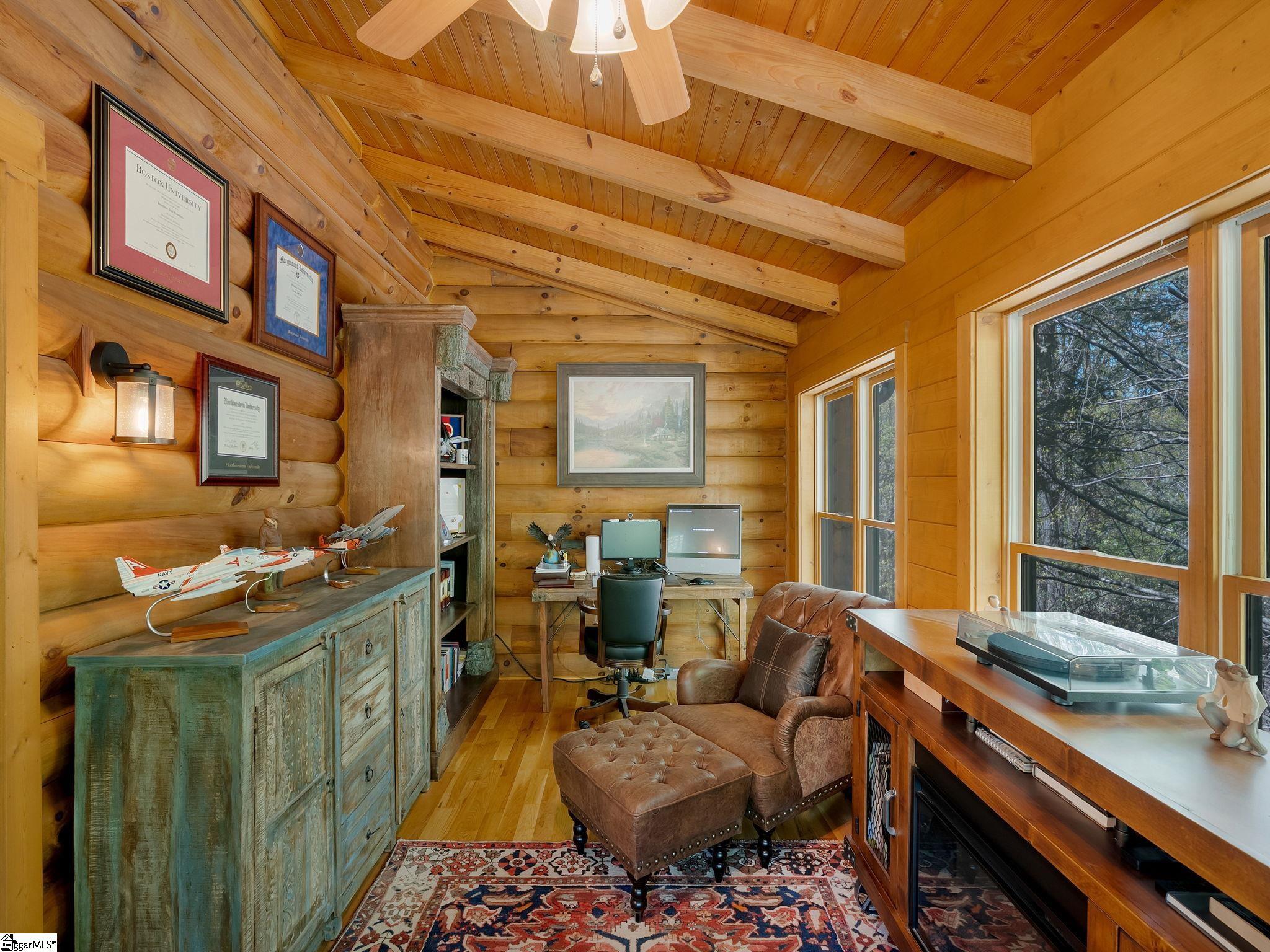 Welcome to 100 Eagle Rock Road, a charming log mountain retreat privately situated on 2.7 acres at approximately 1,650 feet of elevation. Tucked within a peaceful natural setting, this inviting residence offers the perfect blend of rustic character, modern comfort, and exceptional privacy. From the moment you arrive, you’ll appreciate the home’s curb appeal, enhanced by upgraded driveway edge stones, beautifully improved landscape lighting with smart app controls, and an easy, level driveway providing effortless access to the attached two-car garage. Sweeping south to southwest mountain views create a stunning backdrop, making this an ideal opportunity to downsize in style or enjoy as a weekend or seasonal escape. Inside, the foyer welcomes you with the warmth and beauty that only a true mountain home can offer. The kitchen serves as the heart of the residence, featuring stainless steel appliances, a Samsung refrigerator and microwave (2023), granite countertops, gas cooktop, added center island, and a soaring A-frame rustic ceiling. The breakfast nook gas fireplace adds a cozy ambiance, perfect for quiet mornings or intimate dinners. Adjacent to the kitchen, a versatile den—converted from a former sunroom—has been thoughtfully updated and offers exceptional flexibility as a bright home office, sitting room, recreation room, or separate dining area. Updated light fixtures throughout the home provide a fresh, refined touch while complementing the timeless log construction. Just down the hall, the spacious living room invites gatherings with family and friends around the impressive stone gas fireplace. Whether entertaining guests or enjoying a peaceful evening with a good book, this room offers comfort and classic mountain charm. The generous primary suite is designed as a private retreat, featuring ample walk-in closet space, a study nook, and a spacious bath with dual vanities and tub/shower combination. The remodeled half bath further enhances the home’s style and functionality and is accented by an artisan copper sink.Upstairs, two guest bedrooms and a full bath comfortably accommodate visitors. Both upper-level bedroom closets include convenient attic access for additional storage. Outdoor living is equally inviting, offering a seamless extension of the home’s warm interior spaces and the perfect setting to enjoy the surrounding mountain beauty year-round. The screened porch spans the entire rear of the home, offering a tranquil place to relax while taking in breathtaking sunset views. A newly added deck and stairs provide easy access to the backyard, where there is ample room for pets, recreation, or grandchildren to play. Soak in the inviting hot tub and enjoy a peaceful place to relax while taking in the serene mountain surroundings. The view corridor to the left of the home has ARB approval for tree removal, presenting an opportunity to further open and enhance the mountain vistas. Additional recent improvements include new HVAC systems (2021 and 2023) and a new water heater. Abundant storage space is found in the lower-level garage, along with an attached 360+ sq. ft. laundry and storage room. This home includes the adjacent lot (tax#: 0638140103500, providing added privacy and flexibility, and is subject to an additional POA assessment. A Club membership at The Cliffs is available with this property giving you access to all seven communities.