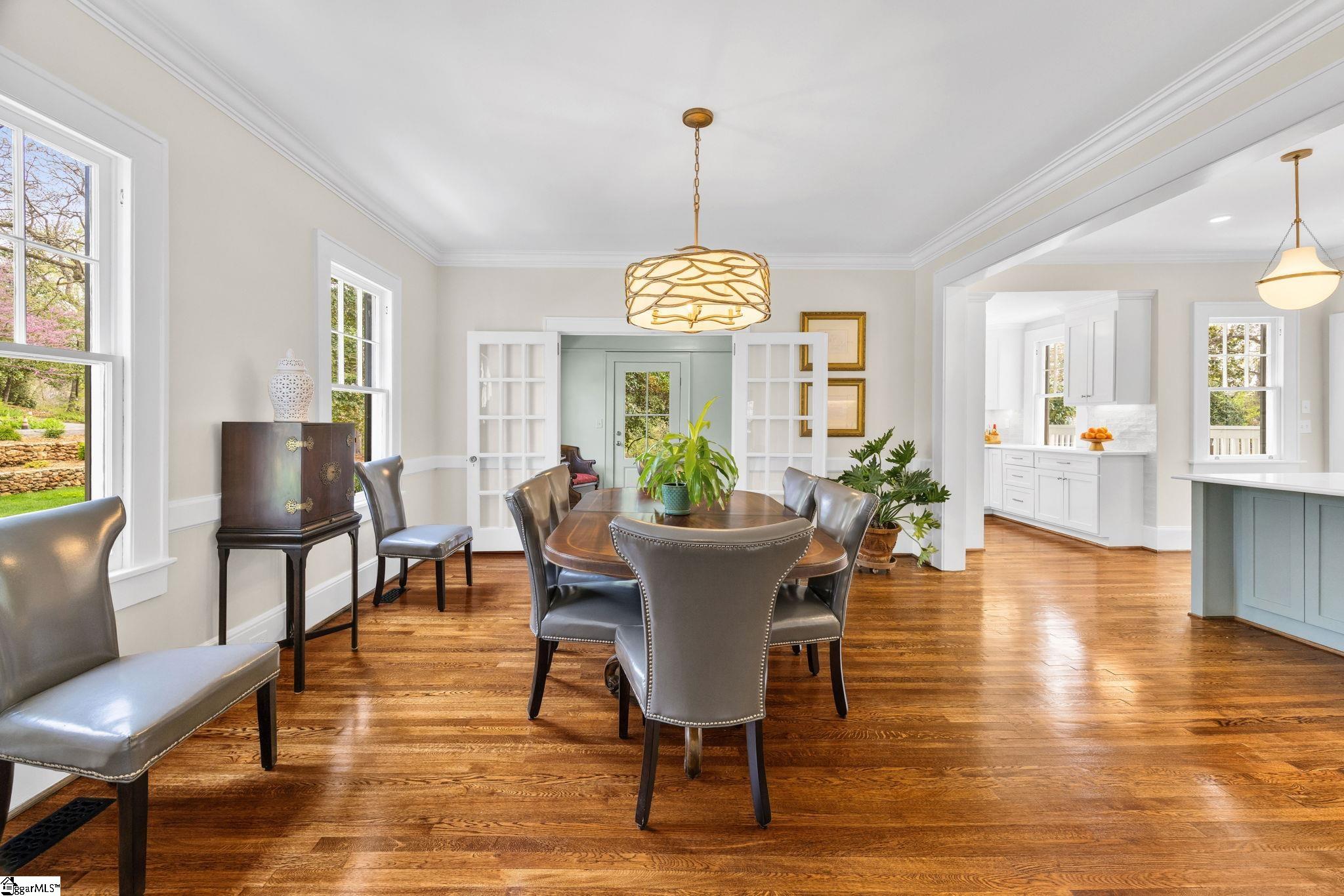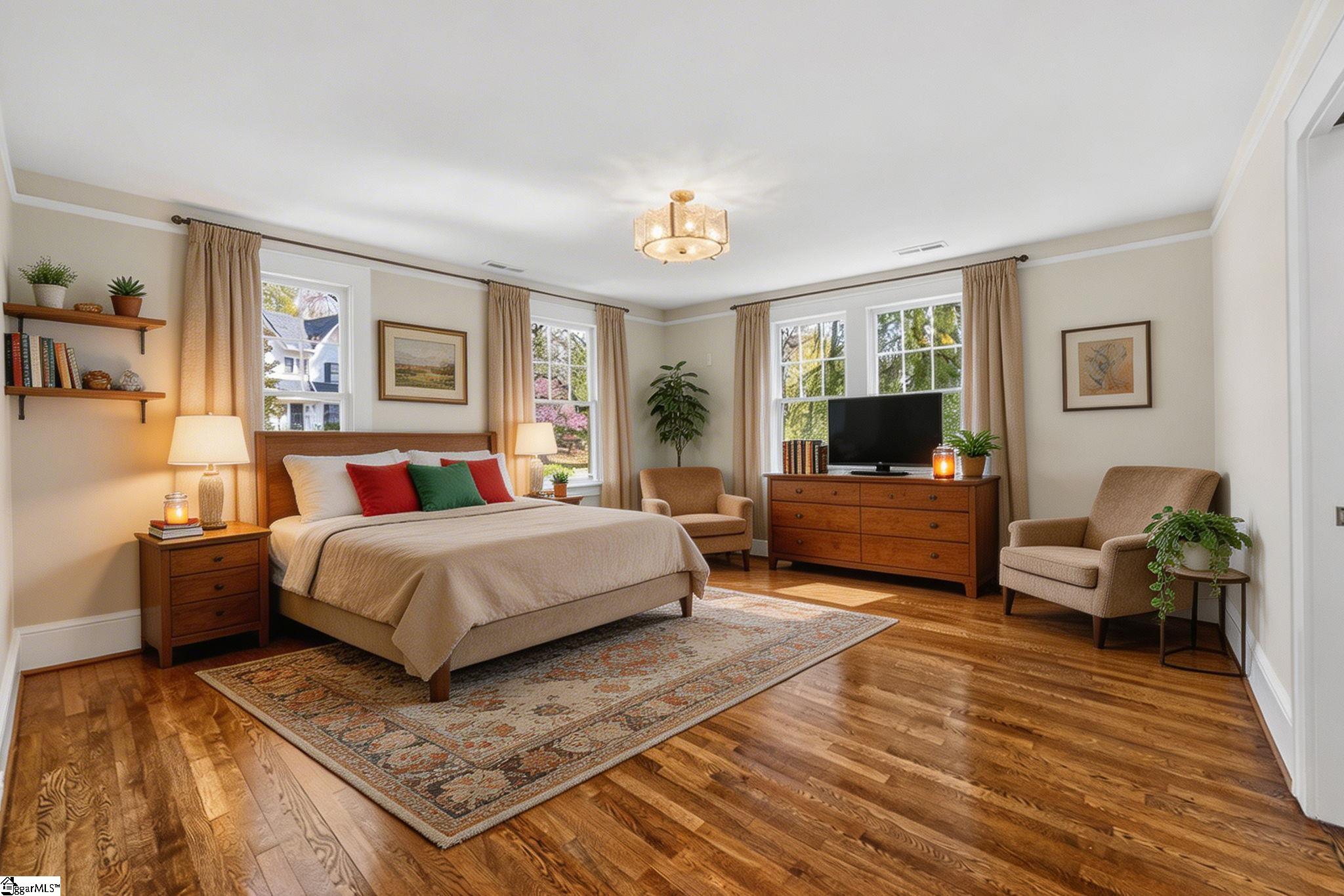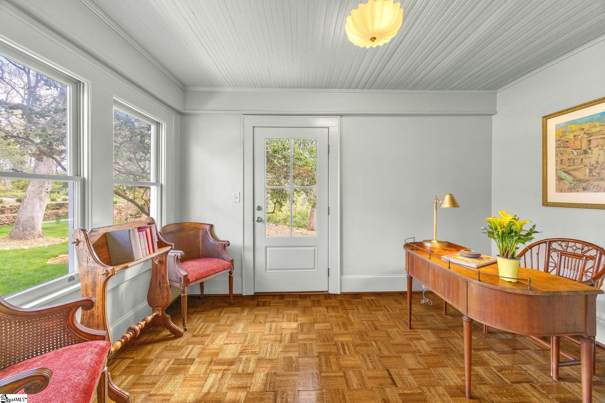 Rare opportunity to own a meticulously restored 100-year-old Colonial Revival home on a beautiful half acre lot in downtown Greenville’s sought-after Overbrook Historic District. Blending timeless architecture with modern convenience, this property has undergone a complete preservation effort over the past year—offering the character of a historic home with the peace of mind of updated systems. Recent mechanical upgrades include new electrical and plumbing, dual HVAC units, a new architectural roof, Leaf Guard gutter system, and full-yard irrigation—ensuring efficiency and low maintenance for years to come. Inside, the home features expansive, light-filled rooms designed for both everyday living and entertaining. The inviting living room showcases custom built-in bookcases and a stunning fireplace with gas logs and opens up to the sunroom with custom millwork and heart pine flooring. A formal dining room with original French doors flows seamlessly into a dedicated office space with parquet flooring. The chef’s kitchen is a true centerpiece, featuring custom shaker-style cabinetry, quartz countertops, a full suite of stainless-steel appliances, tile backsplash, and a large island with bar seating. A butler’s pantry with wet bar and a spacious walk-in laundry room with custom cabinetry add both function and elegance. The primary suite offers a private retreat with a walk-in closet, double vanity with linen tower, a marble-tiled shower, and a large freestanding soaking tub. Two additional guest bedrooms include double closets and charming window seats with storage, while a smaller fourth bedroom is the perfect nursery, playroom, or flex space. Additional highlights include a full interior-accessed walkout basement and a garage with ample storage that could double as an art studio or flex space. Outdoors, the property is framed by beautifully restored 100-year-old South Carolina fieldstone walls and recently poured walkways, along with newly installed landscaping including sod, shrubs, and mature trees—creating a lush, inviting landscape. The roof top deck offers expansive space for entertaining and is located just off the kitchen. Located in the heart of Overbrook, residents enjoy a preserved historic setting with towering century-old oak trees, a nearby nature park, and direct access to the Swamp Rabbit Trail—all just minutes from downtown amenities. Schedule your tour today! Please verify any information you deem important. Owner agent.