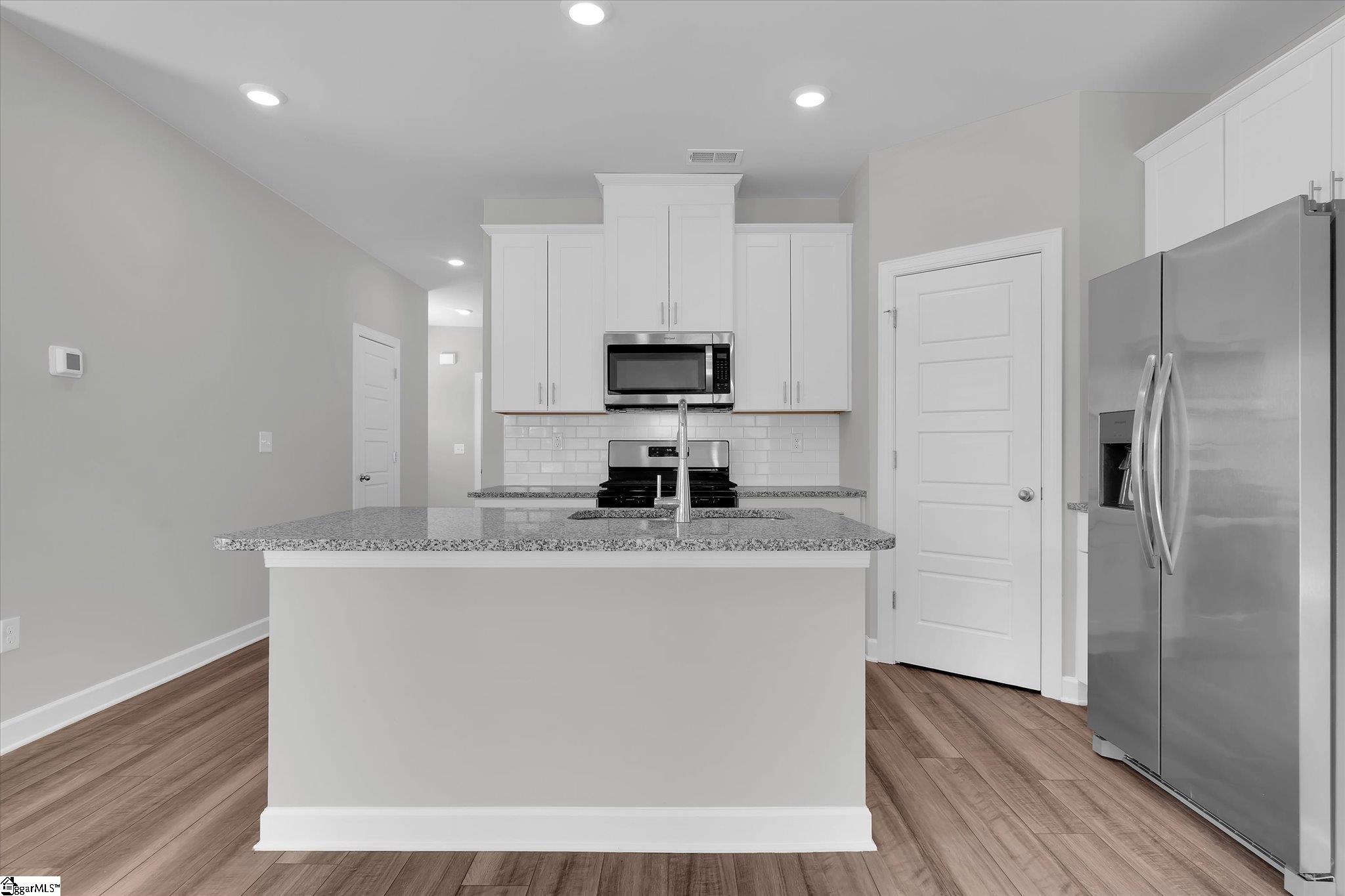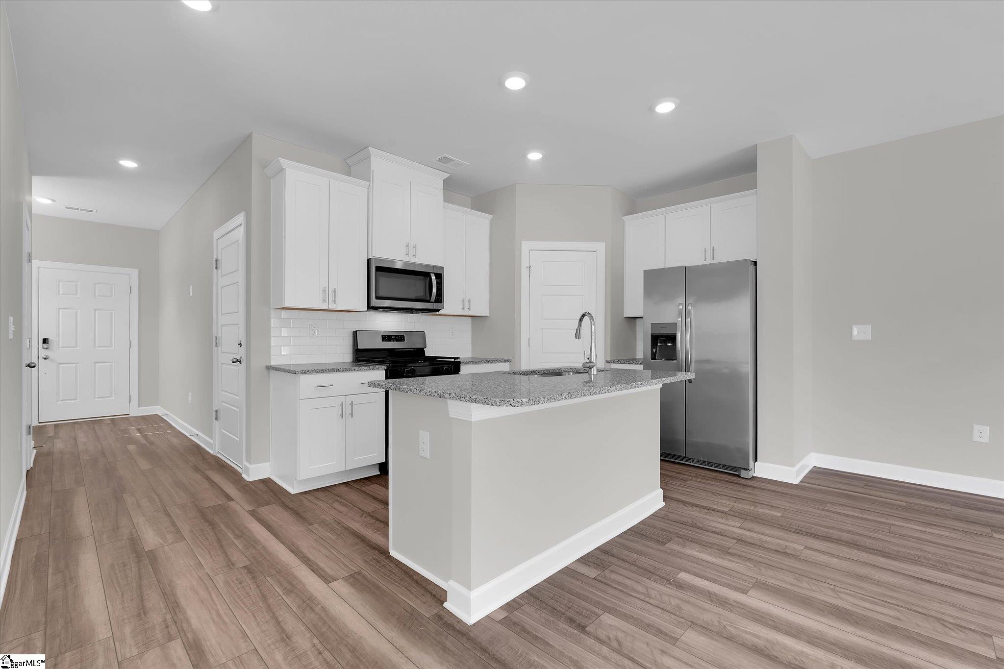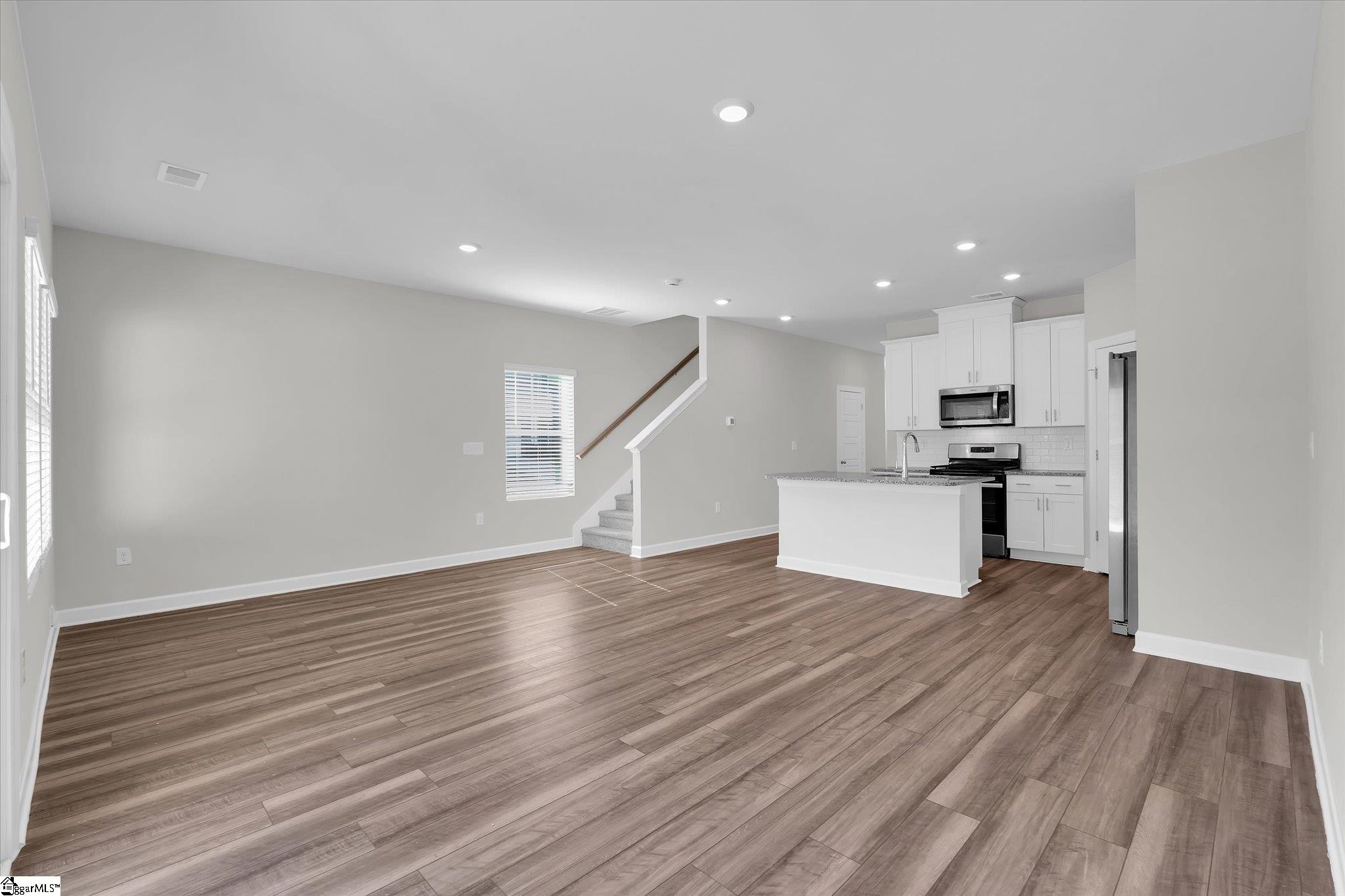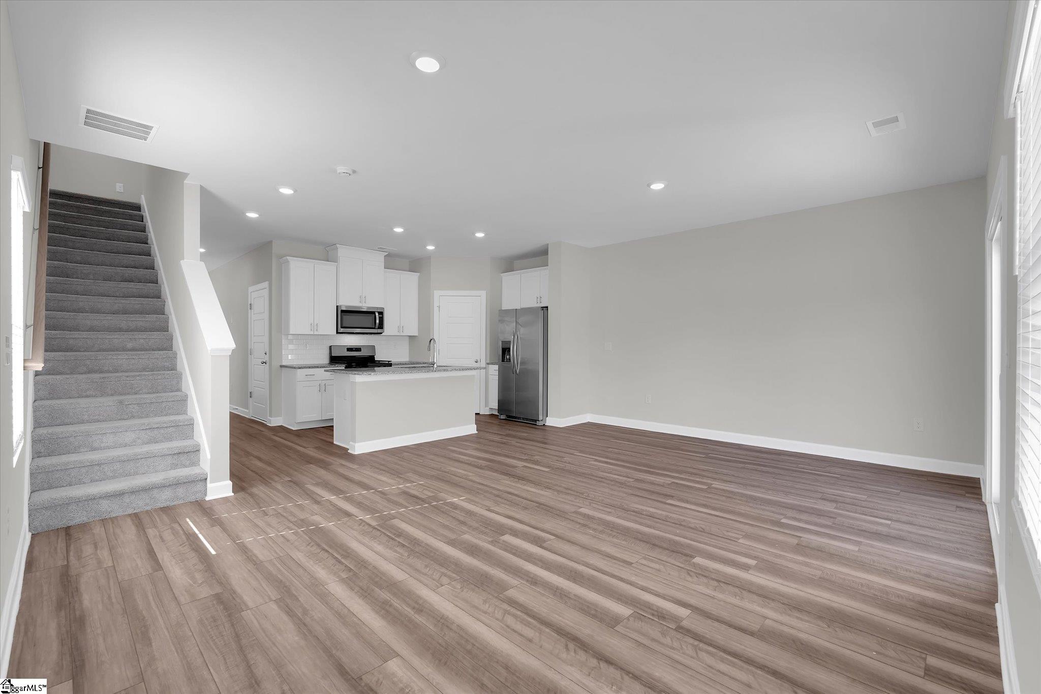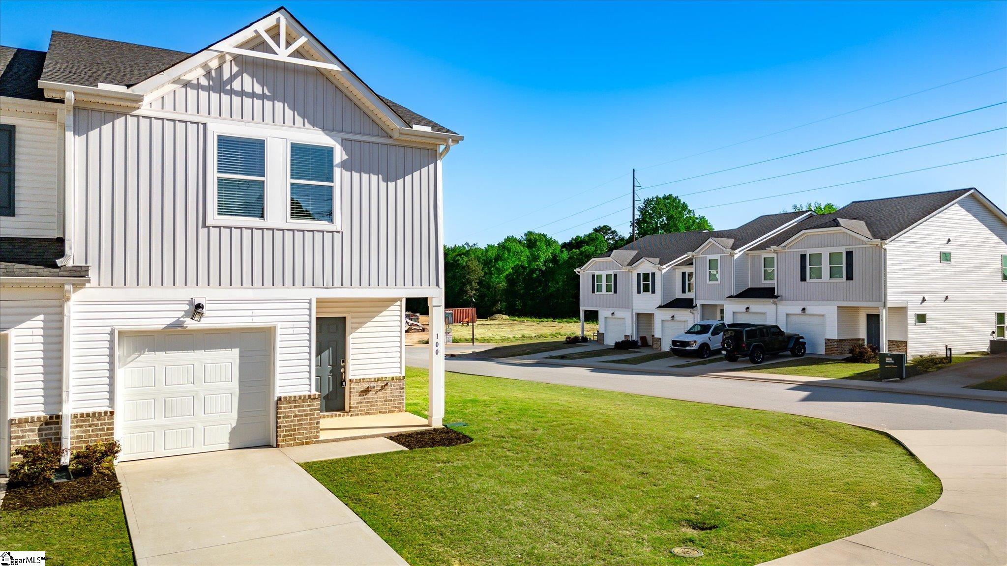 Welcome to your brand new home in Fountain Inn! This charming two-story townhome boasts 3 bedrooms and 2 full baths, plus 1 half bath on the main level. It offers the epitome of low-maintenance living, perfect for busy lifestyles. Located near I-385, Bryson & Hillcrest schools, and just minutes away from Fairview Road shopping and restaurants, you’ll find yourself at the heart of convenience. Step inside the well-lit foyer from the covered front porch, accented with a mulched flower bed. The main level open floor plan creates an inviting space, with the kitchen featuring a spacious eat-at island overlooking the great room and dining area. Stainless steel appliances including a gas range, dishwasher, built-in microwave, and refrigerator are ready for your culinary adventures, and are complemented by a large walk-in pantry. A back patio, accessible from the great room, provides an outdoor relaxation space and includes a storage closet and a flower bed plot, perfect for green thumbs. Upstairs, discover a walk-in laundry room complete with washer and dryer near the bedrooms for ultimate convenience. A loft provides extra living space, ideal for relaxation or entertainment. The sunny master suite is a retreat in itself, featuring a roomy walk-in closet, double sinks, a linen closet, and a tile-accented glass shower. The secondary bedrooms are also upstairs with another full bathroom. Recessed lighting throughout the house illuminates the space, while a tankless water heater ensures continuous hot water supply. Parking is a breeze with a 1-car attached garage and space for parking on the driveway. Inside access from the garage is conveniently located next to the kitchen. Don’t miss the opportunity to make this stunning townhome your own! Schedule your showing today!