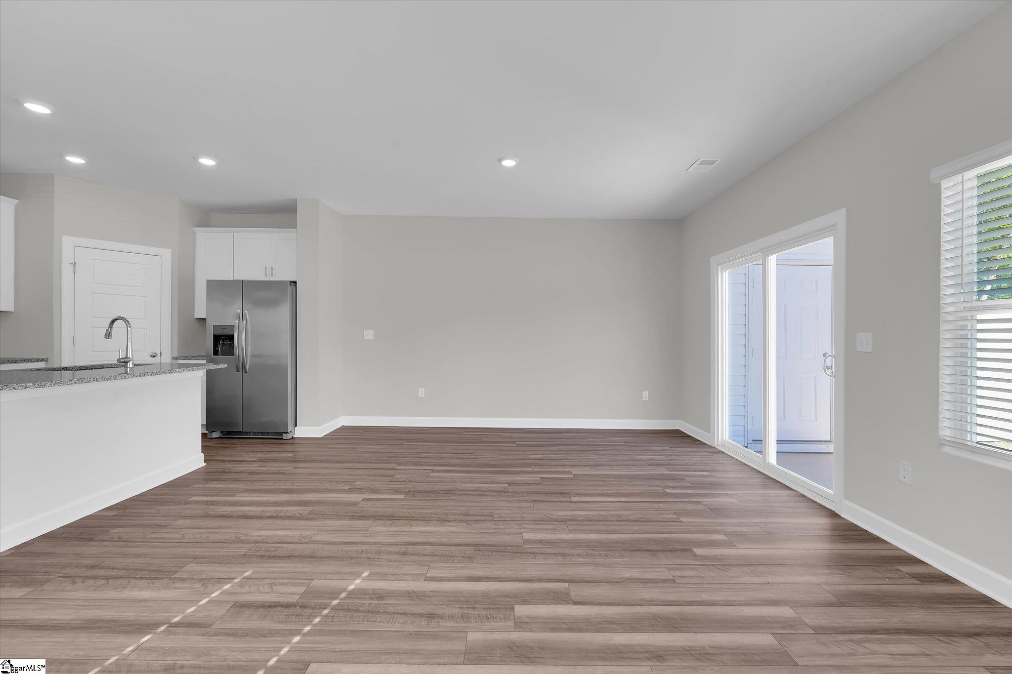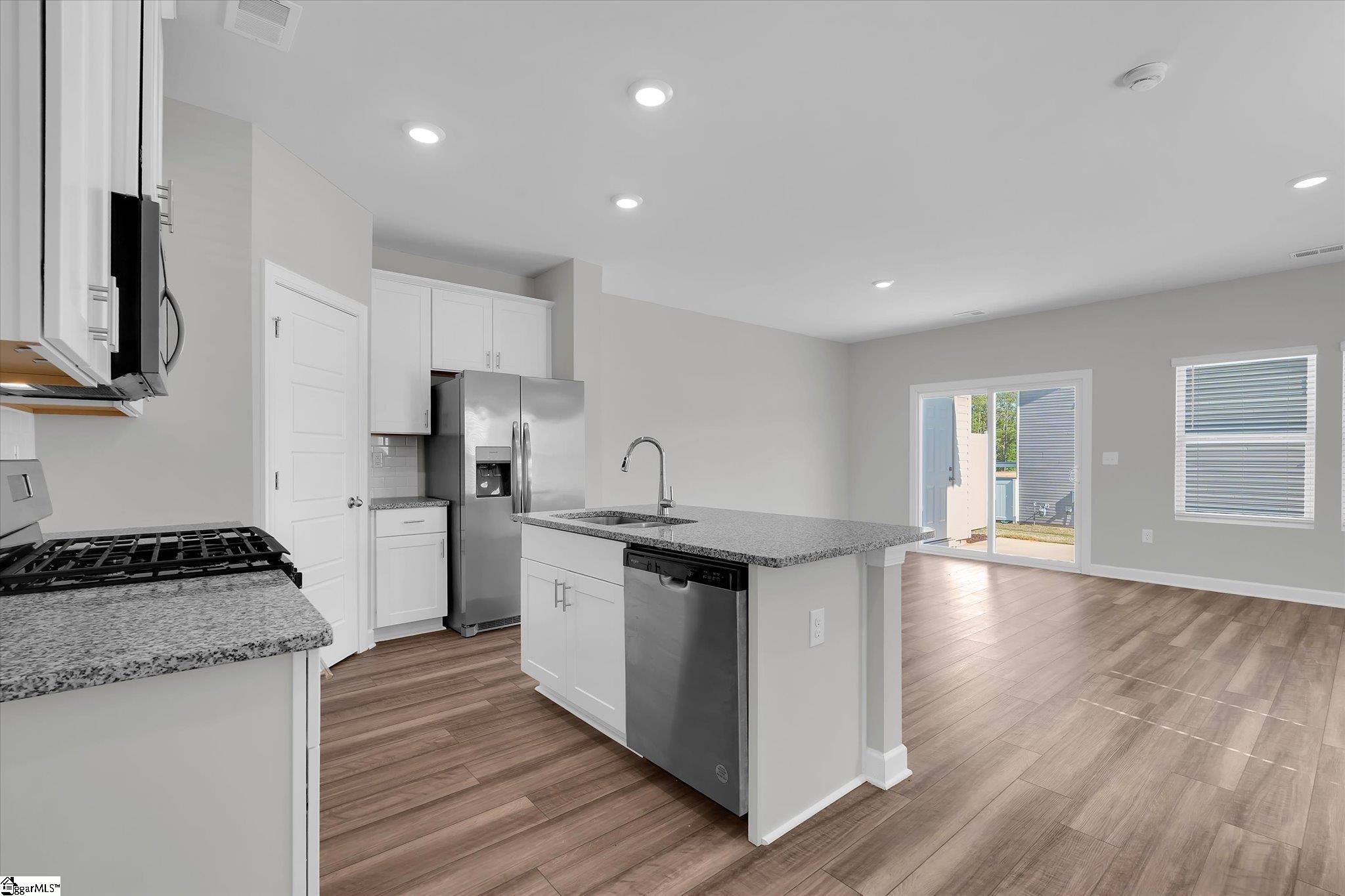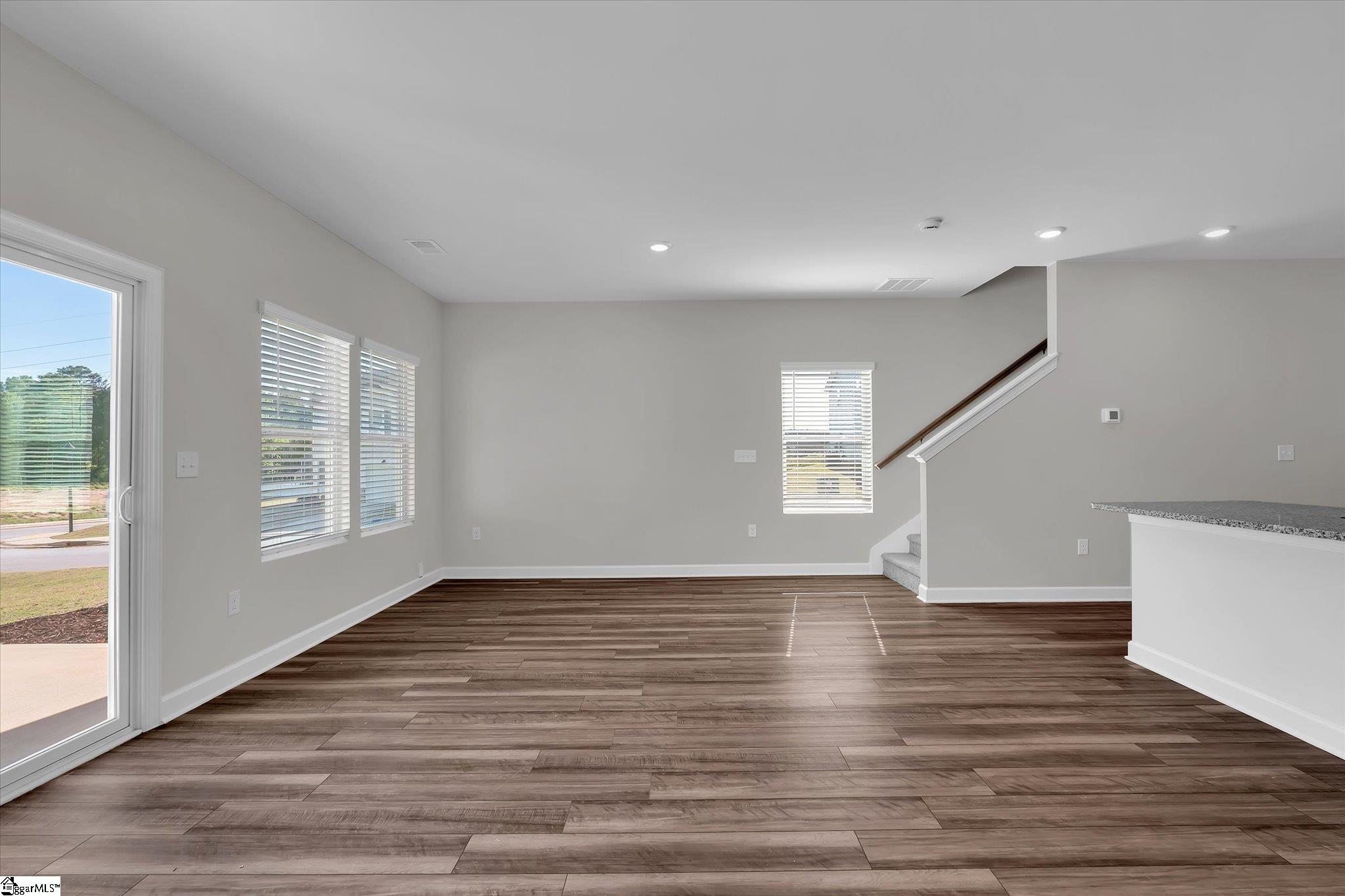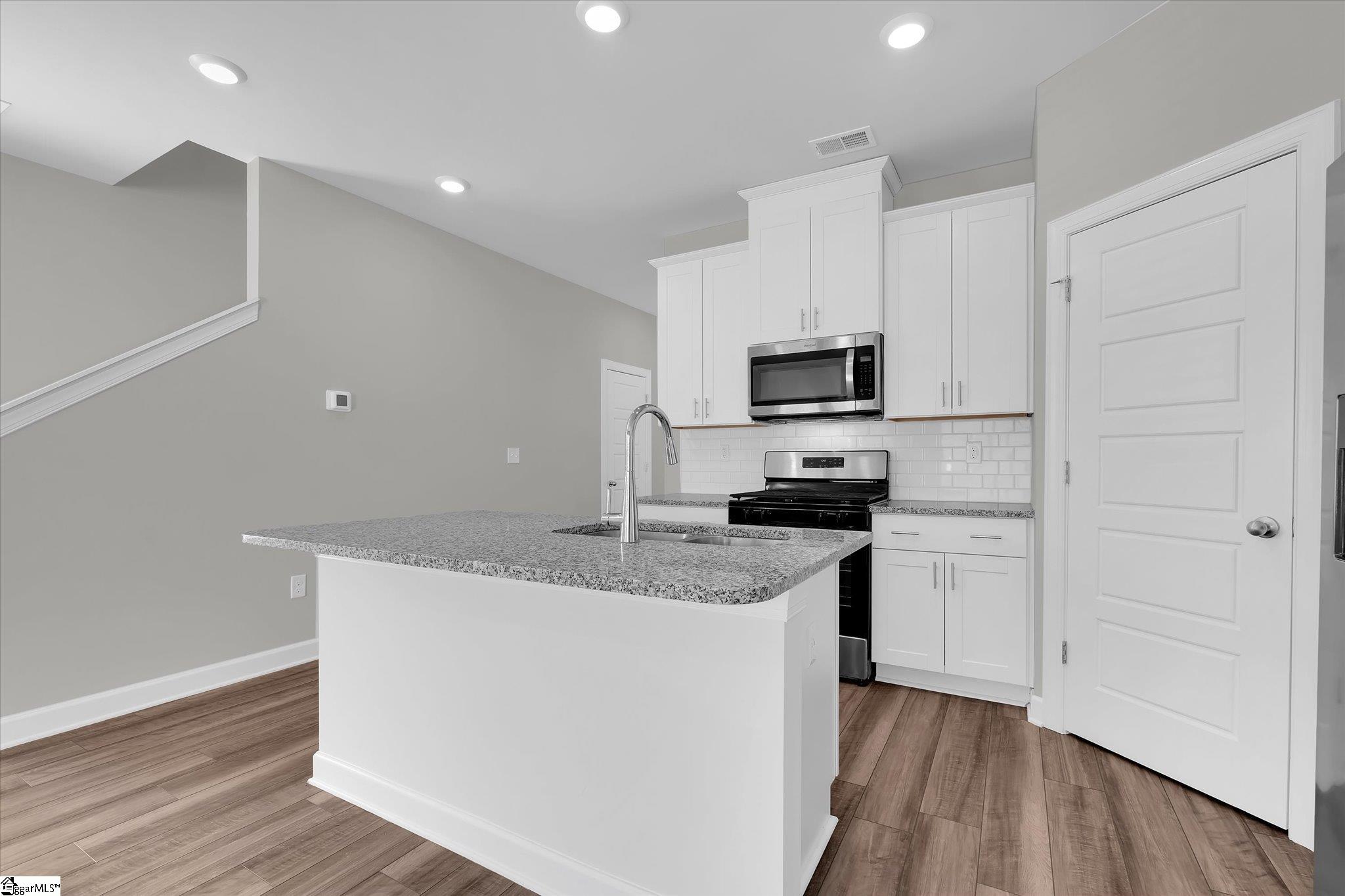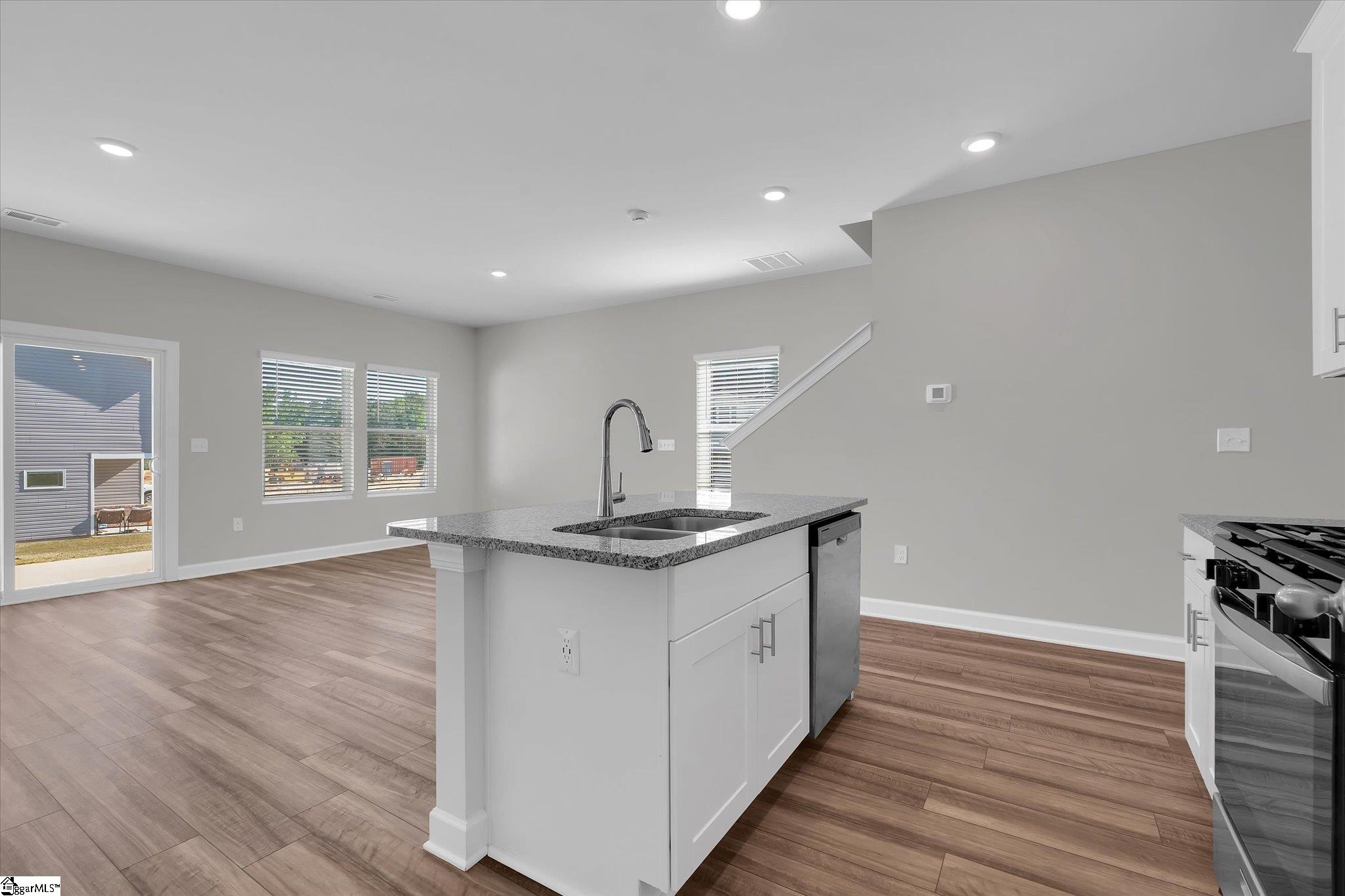 Welcome to your brand new home in Fountain Inn! This charming two-story townhome boasts 3 bedrooms and 2 full baths, plus 1 half bath on the main level. It offers the epitome of low-maintenance living, perfect for busy lifestyles. Located near I-385, Bryson & Hillcrest schools, and just minutes away from Fairview Road shopping and restaurants, you’ll find yourself at the heart of convenience. Step inside the well-lit foyer from the covered front porch, accented with a mulched flower bed. The main level open floor plan creates an inviting space, with the kitchen featuring a spacious eat-at island overlooking the great room and dining area. Stainless steel appliances including a gas range, dishwasher, built-in microwave, and refrigerator are ready for your culinary adventures, and are complemented by a large walk-in pantry. A back patio, accessible from the great room, provides an outdoor relaxation space and includes a storage closet and a flower bed plot, perfect for green thumbs. Upstairs, discover a walk-in laundry room complete with washer and dryer near the bedrooms for ultimate convenience. A loft provides extra living space, ideal for relaxation or entertainment. The sunny master suite is a retreat in itself, featuring a roomy walk-in closet, double sinks, a linen closet, and a tile-accented glass shower. The secondary bedrooms are also upstairs with another full bathroom. Recessed lighting throughout the house illuminates the space, while a tankless water heater ensures continuous hot water supply. Parking is a breeze with a 1-car attached garage and space for parking on the driveway. Inside access from the garage is conveniently located next to the kitchen. Don’t miss the opportunity to make this stunning townhome your own! Schedule your showing today!