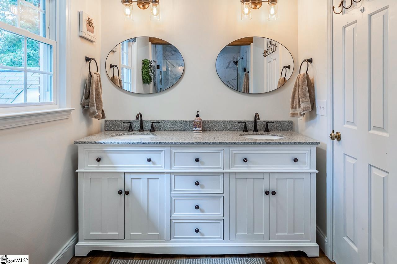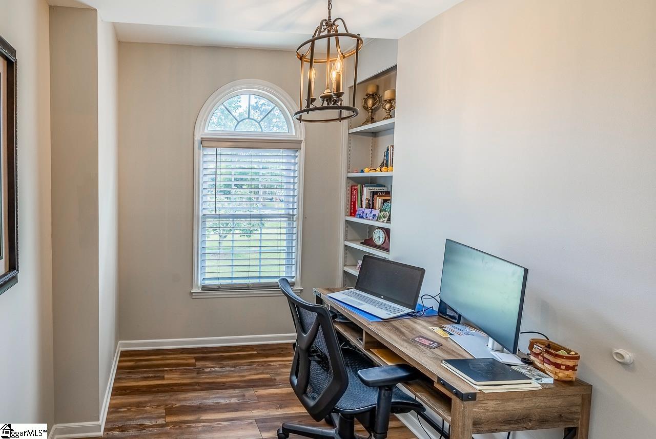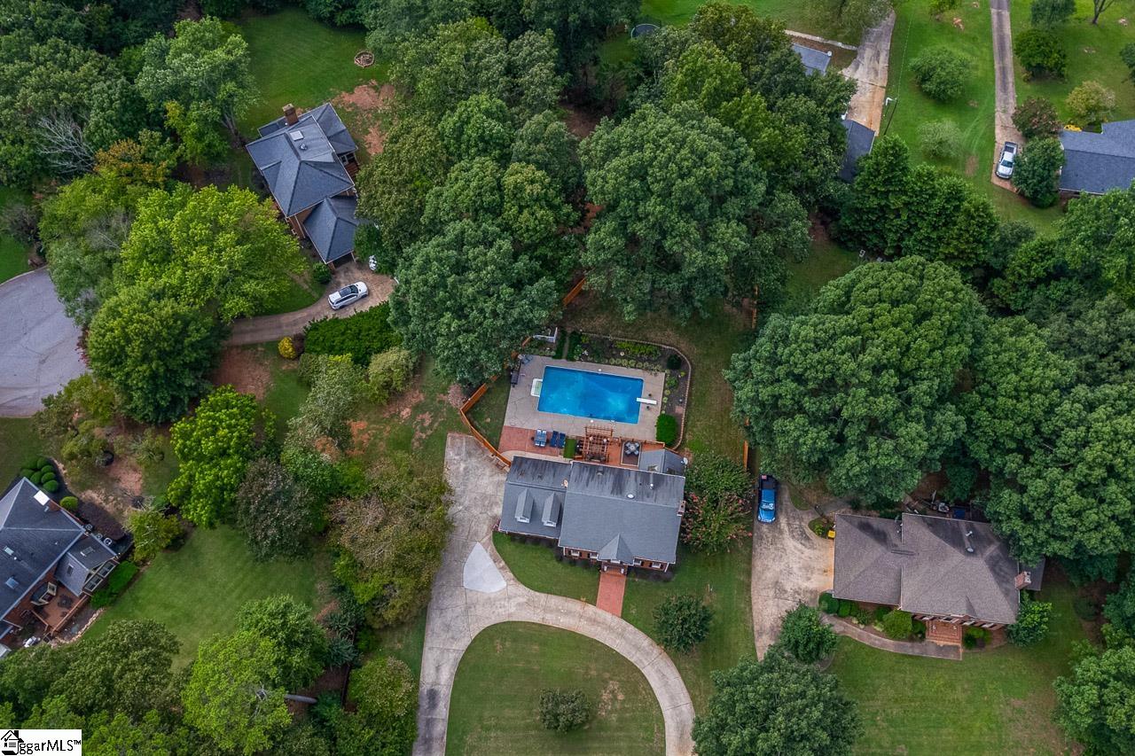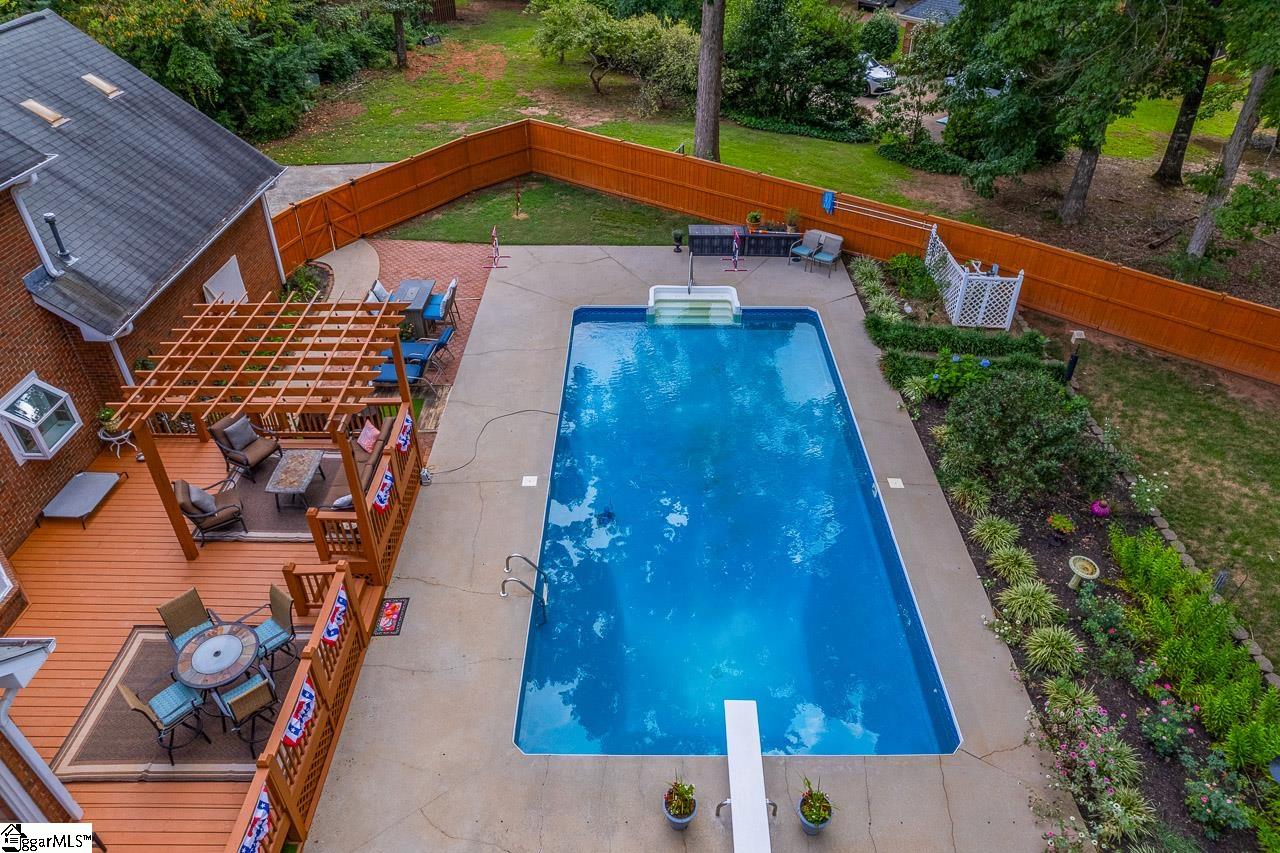 This stunning 3 bedroom, 2.5 bathroom brick colonial sits proudly on a meticulously manicured 0.75-acre lot, complete with an in-ground swimming pool. From the moment you arrive, the circular driveway and expansive front yard set a welcoming tone. Inside, crown molding, fresh paint, and luxury vinyl plank flooring flow throughout, creating a warm and inviting feel. The thoughtfully designed floor plan offers a formal dining room to the left and a spacious living room to the right, featuring an updated fireplace and built-in bookshelves. Just off the living room, a bright sunroom provides the perfect spot for morning coffee or relaxing with a book. The kitchen is a true showpiece with granite countertops, refinished cabinetry, recessed lighting, stainless steel appliances, and a breakfast nook framed by a charming bay window. Upstairs, you’ll find three generously sized bedrooms, including the large primary suite with hardwood floors, a remodeled bathroom with a frameless glass shower, dual vanities, and a walk-in closet with built-ins. A hidden flex room, accessible through the primary closet or its own private entrance from the garage, offers versatile space for an office, gym, or studio. The expanded and remodeled secondary bathroom also features a frameless glass shower and updated vanities. A small office upstairs leads to nearly 700 sqft of unfinished 3rd-floor attic space—perfect for future expansion or abundant storage. The side-entry 2-car garage provides even more storage. Outside, your private backyard oasis awaits, complete with a large deck and pergola, a 40×20 in-ground pool with diving board, and a fully fenced, tree-lined yard. Buy with confidence and peace of mind knowing this house provides a transferrable home warranty that is good till June of 2028! All of this is located in a sought-after area close to shopping, restaurants and conveniences off Highway 153, Highway 123, and I-85, and zoned for award-winning Powdersville schools. Don’t miss your opportunity to tour this beautiful home. Schedule your showing today!