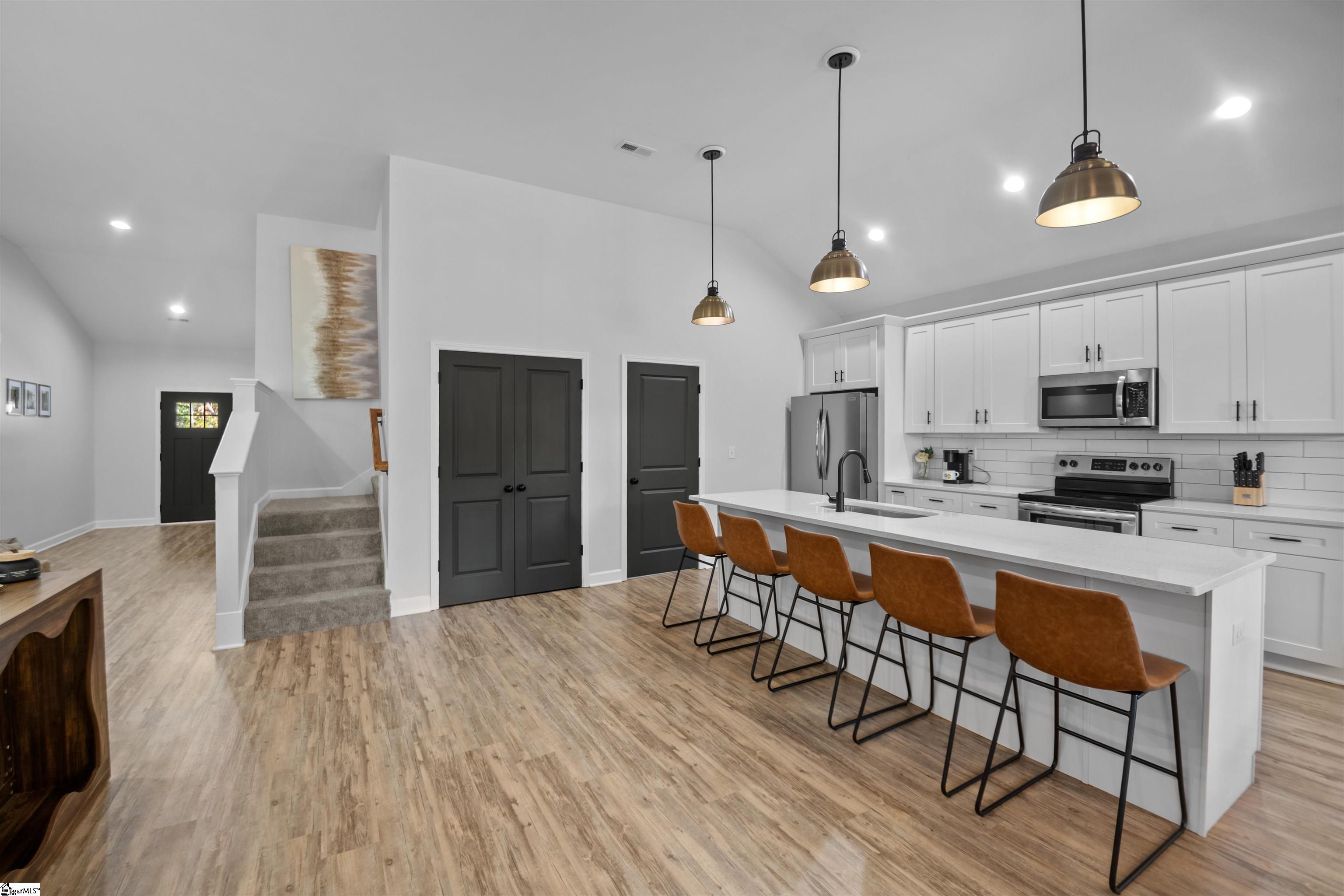***OPEN HOUSE SUNDAY 2:30-3:30*** Welcome to 102 George Williams Drive, Easley — a stunning, recently built one-level home nestled on a shady 0.86 acre lot in the peaceful and unique fly-in community of Williamsport Airpark. This serene residence features 3 bedrooms, 2 full baths, and a bonus room, offering around 2,200 square feet to spread out. The open-concept layout surrounds a generous family room that flows seamlessly into a gourmet kitchen showcasing premium quartz countertops, stainless steel appliances, luxury vinyl flooring, and soft-close all-wood cabinetry — a truly modern and functional heart of the home. The primary suite is a relaxing retreat with 9-foot ceilings, a custom walk-in closet, and a spa-like ensuite bath featuring double vanities and a tiled shower. Two additional bedrooms complete the main level — perfect for family, guests, or a home office. Upstairs, a spacious bonus room over the garage offers endless possibilities: playroom, gym, media space, or teen hangout. How would you use it? Step outside and you’ll fall in love with the inviting rocking chair front porch, perfect for chatting with neighbors as they pass by. The upgraded landscaping and carefully maintained exterior reflect the pride of ownership. Out back, a covered porch overlooks a fully fenced yard shaded by mature trees, creating a private oasis for morning coffee, evening gatherings, or afternoon play dates. It’s truly rare to find newer construction on a lot this size! Built with quality and comfort in mind, this home features a vinyl-sided Craftsman-style exterior, architectural roof, attached two-car garage, and low-maintenance landscaping. The 9+ foot ceilings throughout enhance the open feel, making this home ideal for both everyday living and entertaining. Enjoy public water, underground utilities, and a location that perfectly balances country tranquility with city convenience — just 10 minutes to shopping and 20 minutes to downtown Greenville. Come take a look!