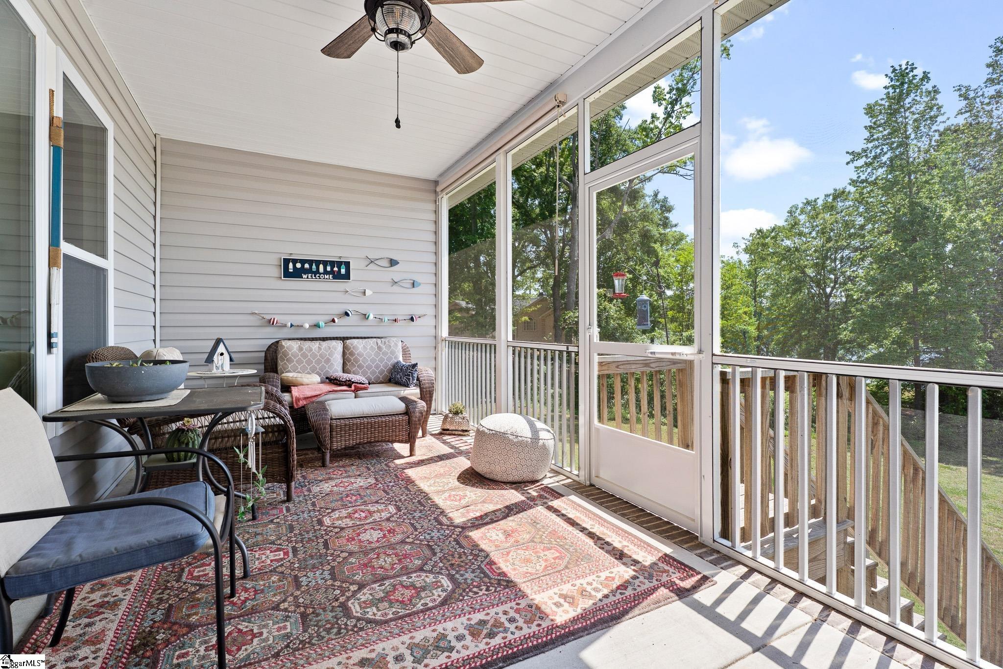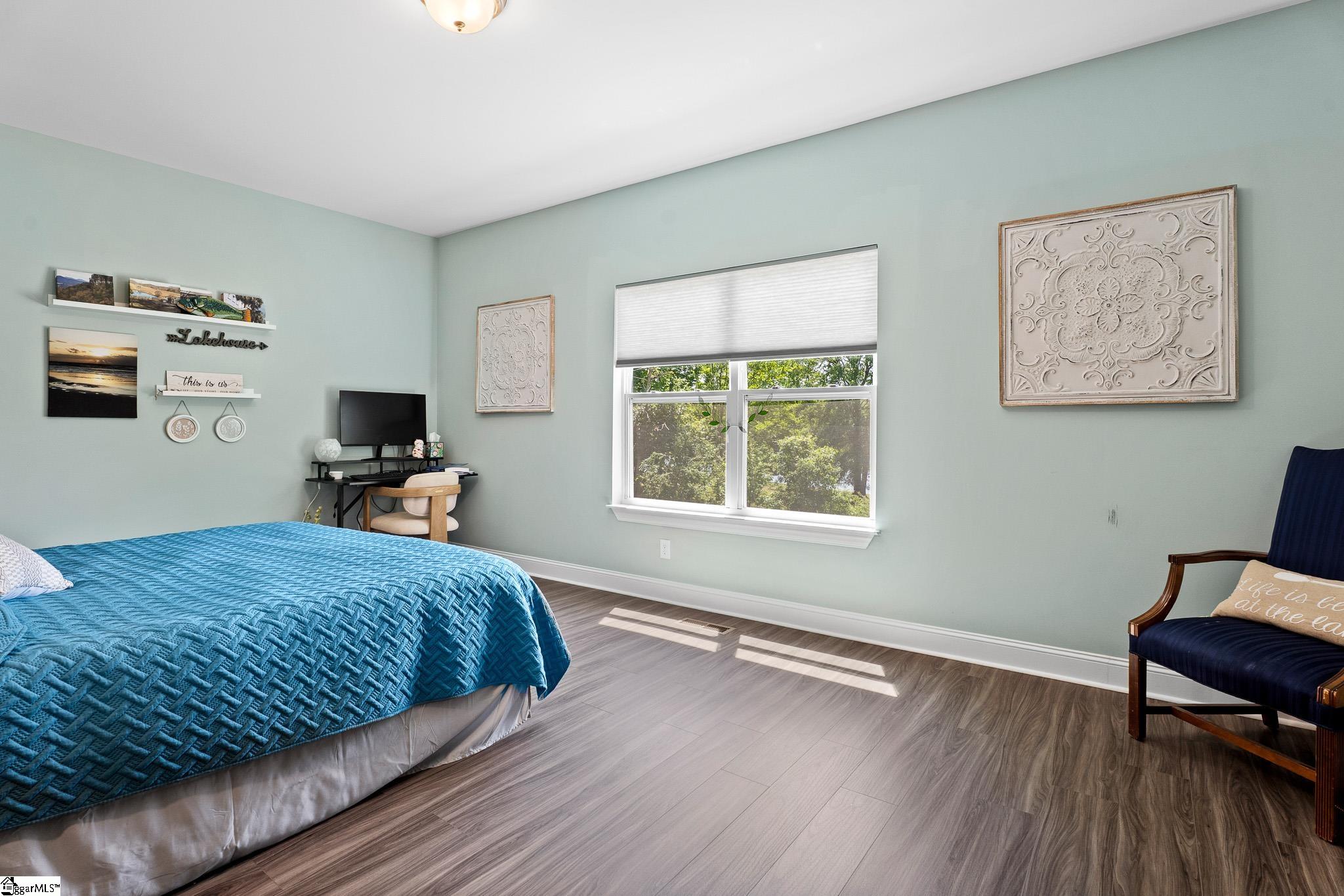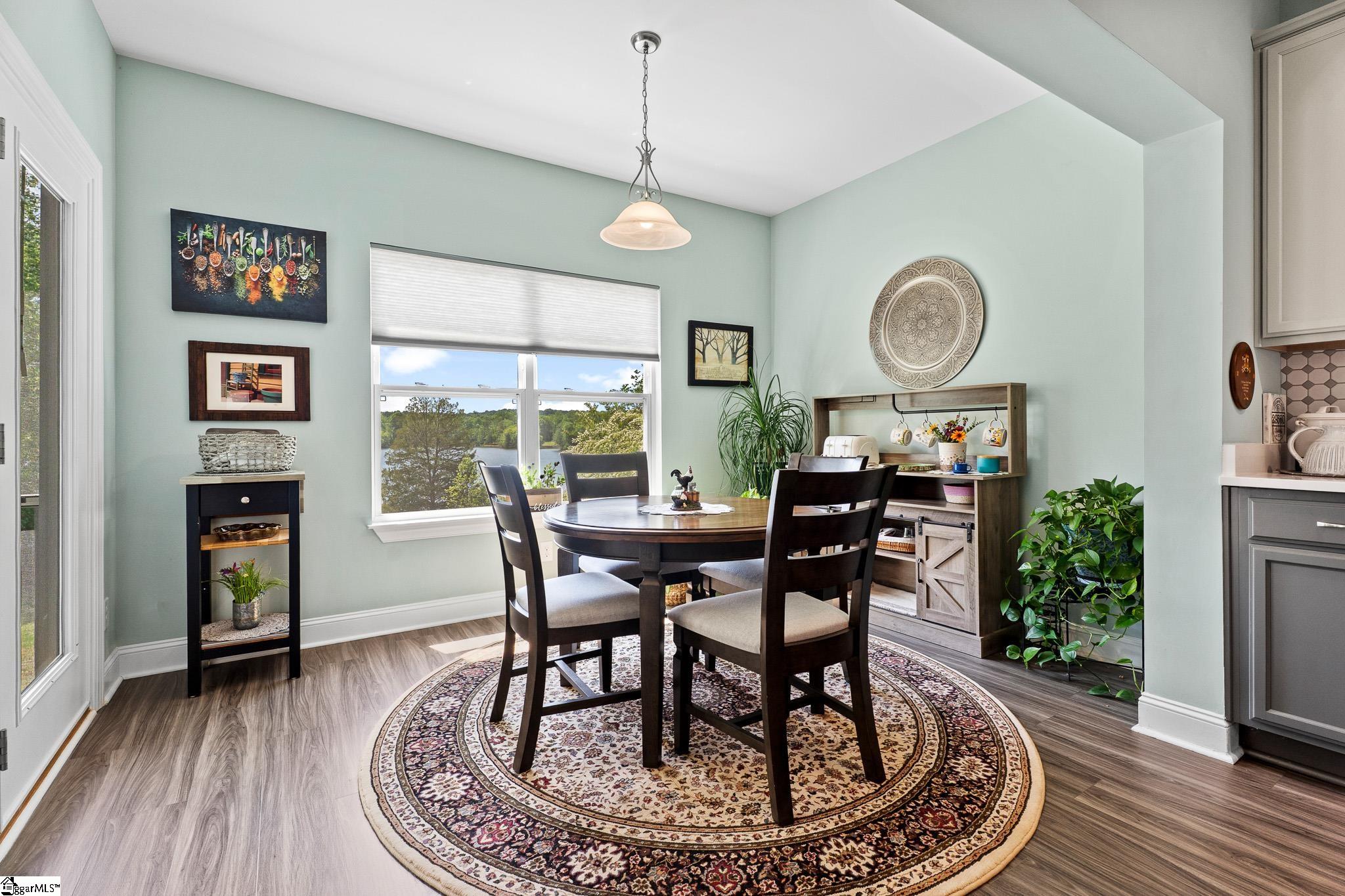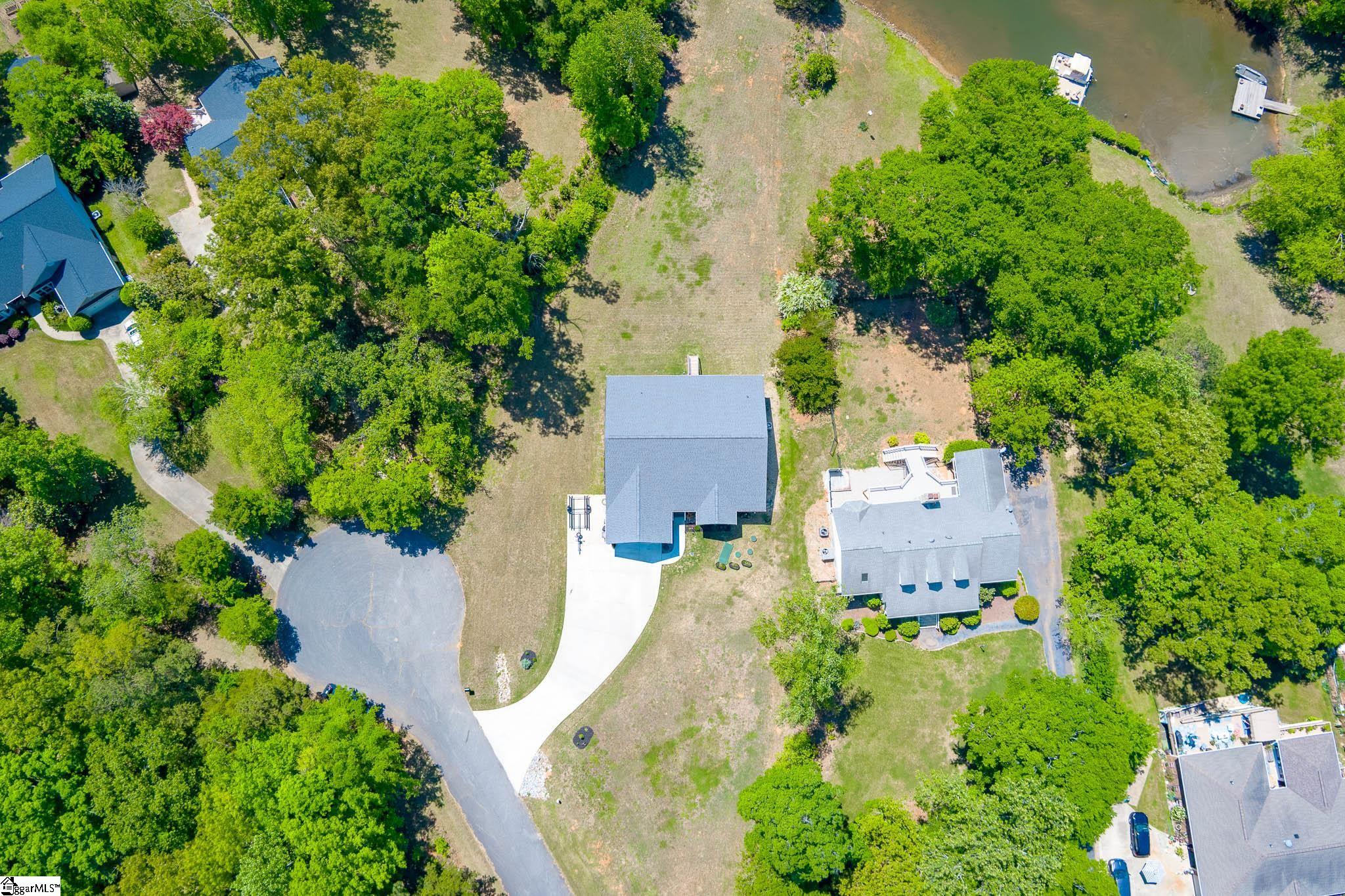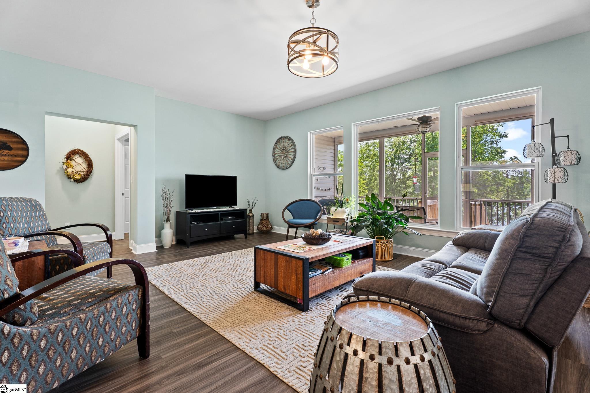 Welcome to lake living at its best. This 3 bedroom, 2 bath home built in 2022 sits on a private, shaded lot with incredible west facing views, giving you a front row seat to the sunset over the water every evening. Inside, natural light fills the home thanks to an abundance of windows, creating a bright and comfortable feel throughout. The kitchen is set up for gathering, with quartz countertops, an oversized island, and an easy flow into the main living space and out to the screened in back porch. The primary suite was designed with both comfort and function in mind. It features an ADA compliant layout, a large walk in closet, and a laundry room conveniently located right in the suite. Step outside and enjoy both a covered front porch and a screened back porch overlooking the lake. A brand new dock is already in place, and the Quest Pontoon boat conveys (16 ft, new motor replace 2025), so you can start enjoying the water right away! Additional features include a large crawl space for extra storage and an engineered septic system with active monitoring for peace of mind. This home is clean, modern, and move in ready with everything you need to enjoy lake life from day one.