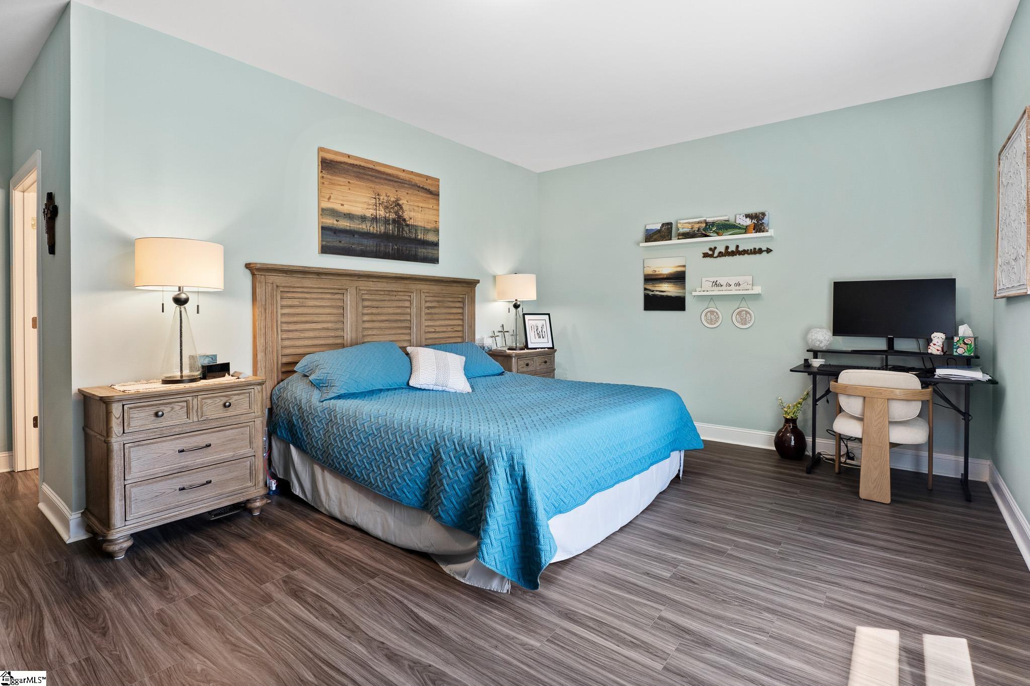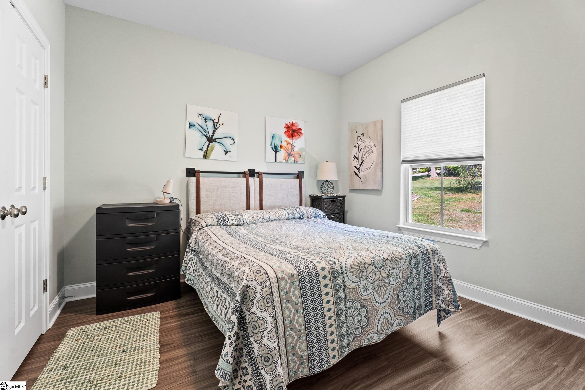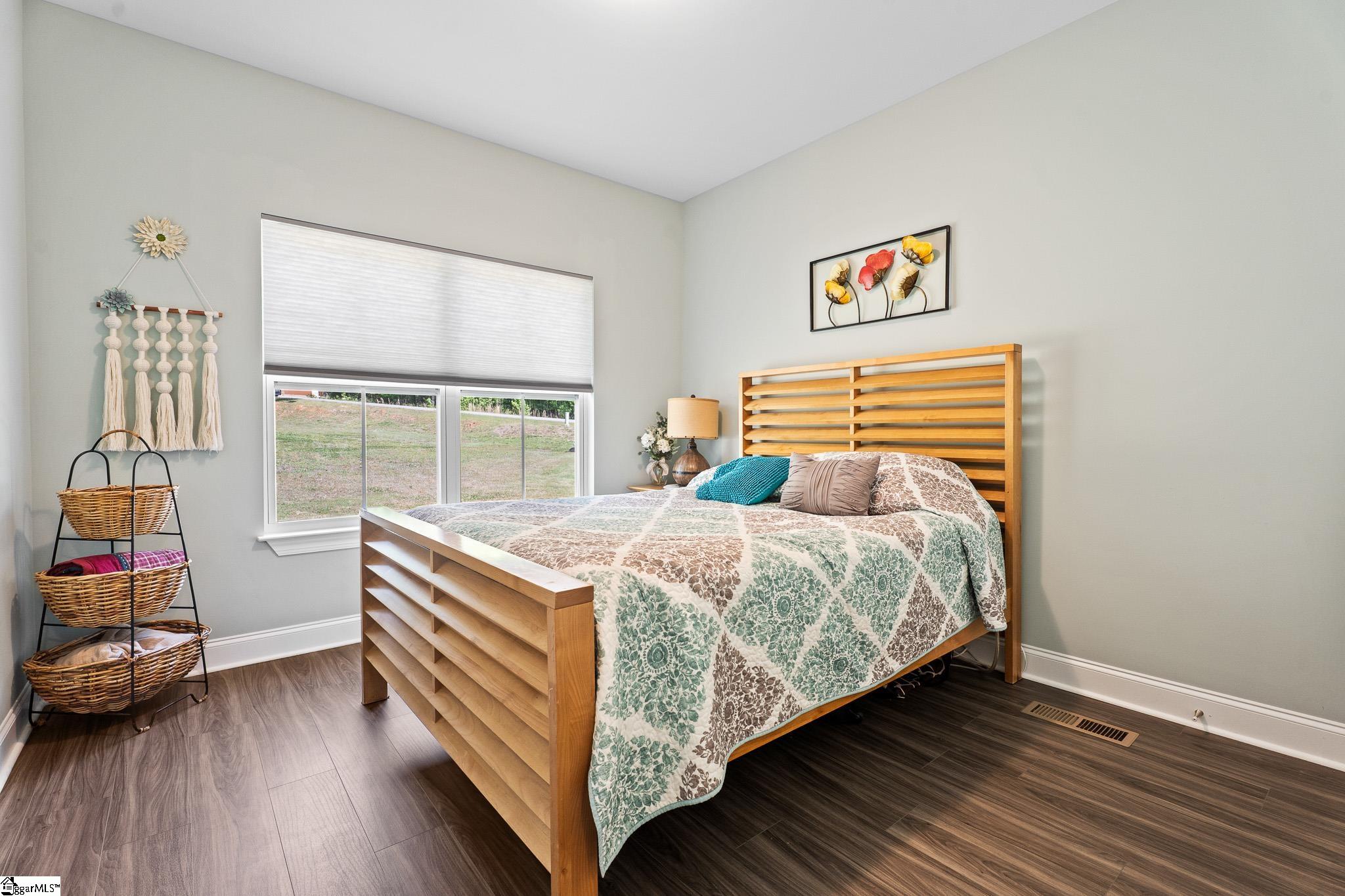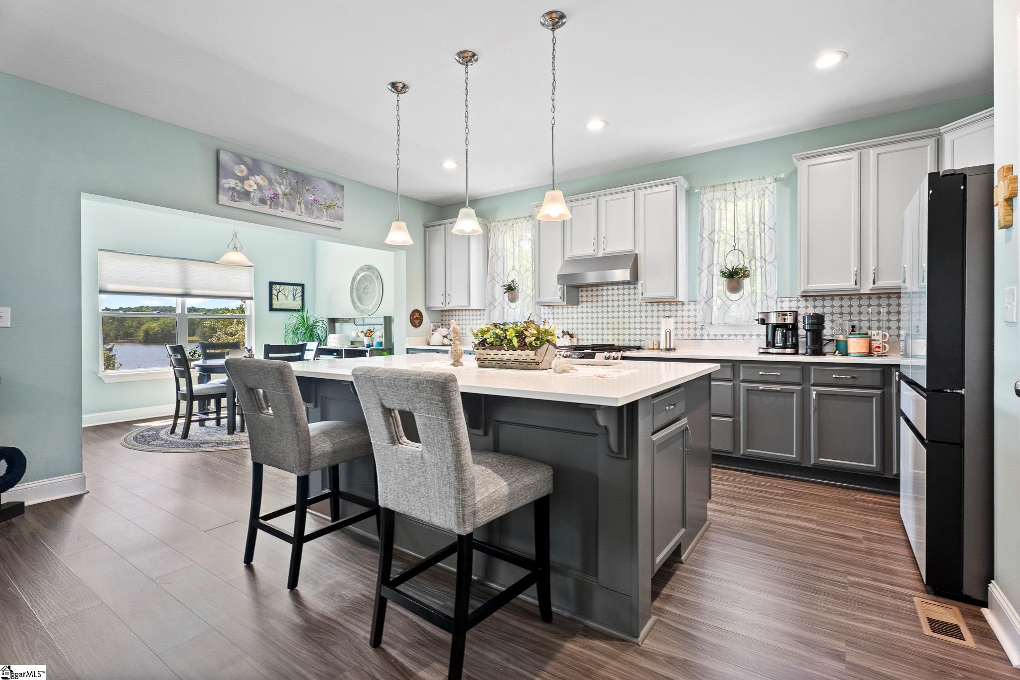 Welcome to lake living at its best. This 3 bedroom, 2 bath home built in 2022 sits on a private, shaded lot with incredible west facing views, giving you a front row seat to the sunset over the water every evening. Inside, natural light fills the home thanks to an abundance of windows, creating a bright and comfortable feel throughout. The kitchen is set up for gathering, with quartz countertops, an oversized island, and an easy flow into the main living space and out to the screened in back porch. The primary suite was designed with both comfort and function in mind. It features an ADA compliant layout, a large walk in closet, and a laundry room conveniently located right in the suite. Step outside and enjoy both a covered front porch and a screened back porch overlooking the lake. A brand new dock is already in place, and the Quest Pontoon boat conveys (16 ft, new motor replace 2025), so you can start enjoying the water right away! Additional features include a large crawl space for extra storage and an engineered septic system with active monitoring for peace of mind. This home is clean, modern, and move in ready with everything you need to enjoy lake life from day one.
