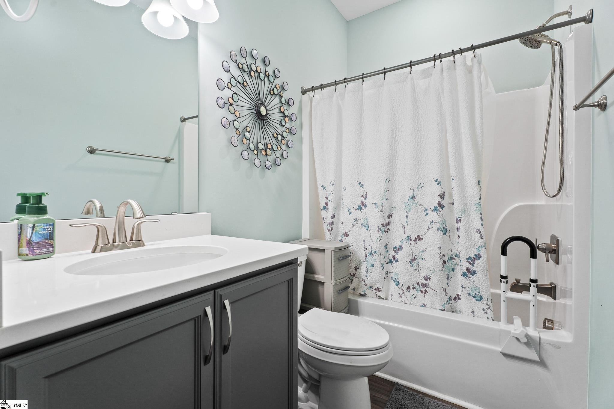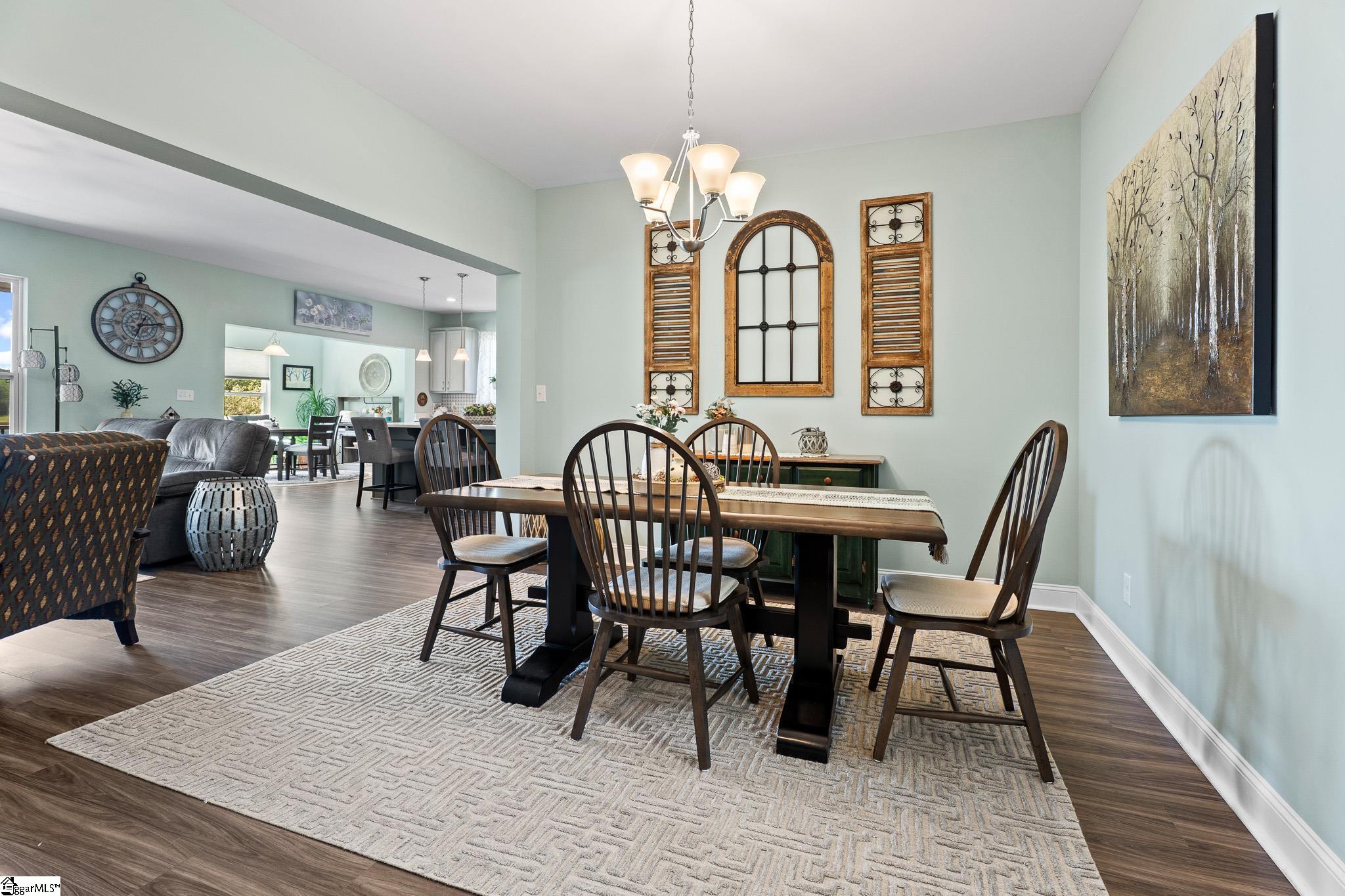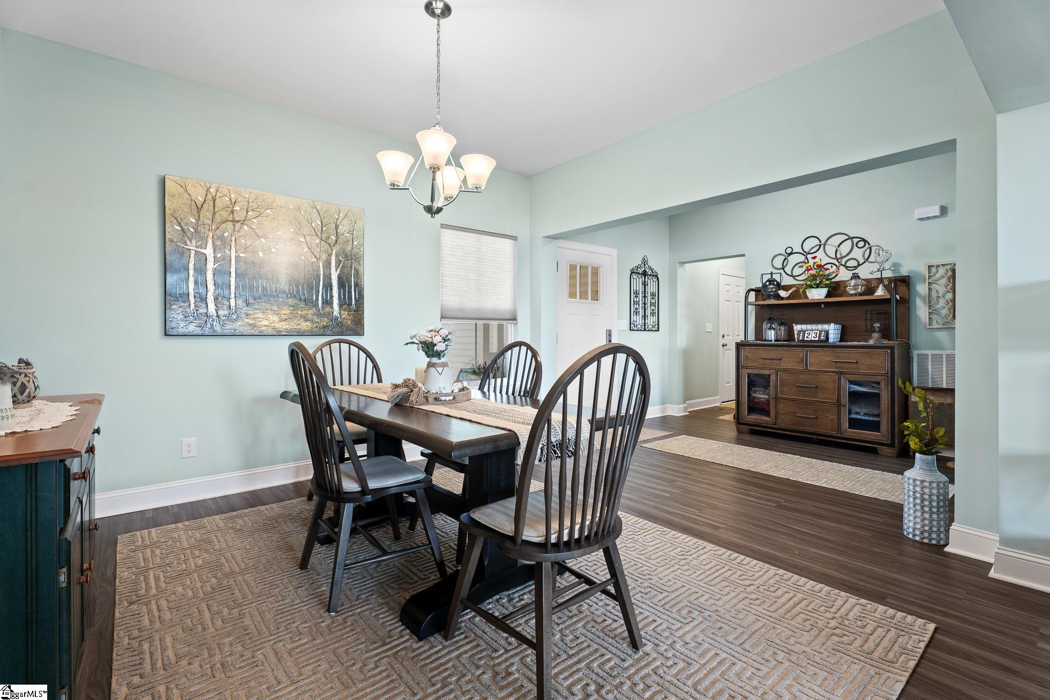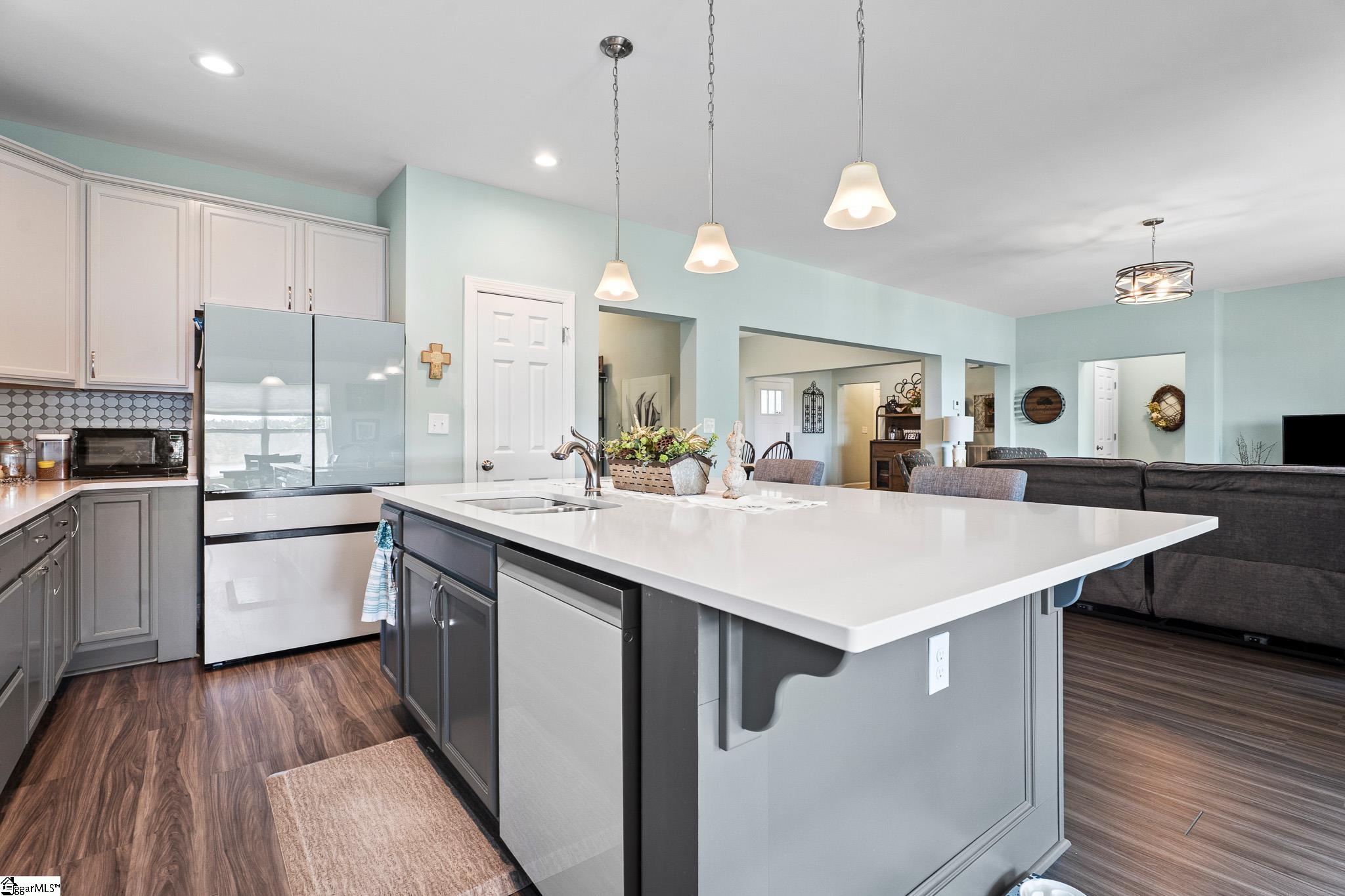 Welcome to lake living at its best. This 3 bedroom, 2 bath home built in 2022 sits on a private, shaded lot with incredible west facing views, giving you a front row seat to the sunset over the water every evening. Inside, natural light fills the home thanks to an abundance of windows, creating a bright and comfortable feel throughout. The kitchen is set up for gathering, with quartz countertops, an oversized island, and an easy flow into the main living space and out to the screened in back porch. The primary suite was designed with both comfort and function in mind. It features an ADA compliant layout, a large walk in closet, and a laundry room conveniently located right in the suite. Step outside and enjoy both a covered front porch and a screened back porch overlooking the lake. A brand new dock is already in place, and the Quest Pontoon boat conveys (16 ft, new motor replace 2025), so you can start enjoying the water right away! Additional features include a large crawl space for extra storage and an engineered septic system with active monitoring for peace of mind. This home is clean, modern, and move in ready with everything you need to enjoy lake life from day one.