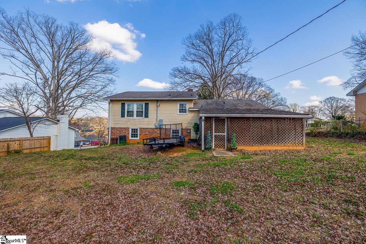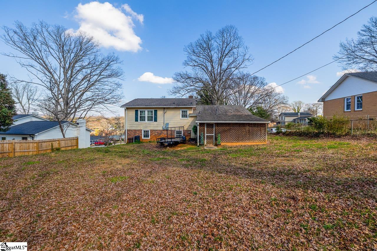 Opportunity awaits in this charming 3-bedroom, 1-bath tri-level home located just minutes from vibrant downtown Greenville. Situated on a spacious lot in the rapidly growing Chestnut Hills area, this property offers incredible potential for a homeowner looking to personalize a space or an investor seeking their next opportunity. Best of all, the home is not part of an HOA, providing flexibility and freedom for the next owner. As you enter, you’re welcomed by a cozy living room accented with crown molding that flows throughout the home. The kitchen features granite countertops, a built-in wall oven, drop-in cooktop, and ample cabinet space, with an adjoining dining area that makes hosting and everyday meals convenient. Upstairs, you’ll find hardwood floors and three generously sized bedrooms, including the primary bedroom with dual closets. The bathroom has been recently updated with a Bath Fitter tub, offering durability and modern appeal. The lower level presents a blank canvas ready for your vision. Already plumbed for an additional bathroom; framed for a bedroom and living area, this space provides endless possibilities. Whether you expand the home’s living space or take advantage of the separate entrance to create a potential income-producing rental, the opportunity is there. Step outside and enjoy the covered back patio overlooking the spacious, level backyard, offering a great setting for outdoor gatherings, gardening, or simply relaxing while enjoying the privacy of your lot. Major updates provide peace of mind, including crawlspace encapsulation with dehumidifier (2025), full home rewiring (2025), water heater (2023), roof (2015), and HVAC and windows replaced (2015). Conveniently located just 5 minutes from Greenville Memorial Hospital and a little over 10 minutes to the heart of downtown Greenville, you’ll enjoy easy access to dining, shopping, entertainment, and major employers. With solid updates already completed and room to add value, this home offers a fantastic opportunity in one of Greenville’s growing areas. Schedule your showing today!