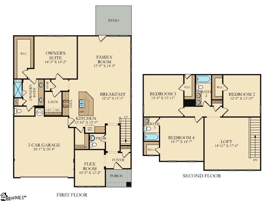 The Inlet at Shadow Stone is a two-story home with 4 bedrooms, 3.5 bathrooms, and a two-car garage. The main floor features an open family room, kitchen with a breakfast area, a private owner’s suite, and a flexible room for an office or study. Upstairs, a loft and three additional bedrooms provide plenty of space for family or guests. With its smart layout and comfortable living spaces, the Inlet is perfect for families who want both style and functionality.