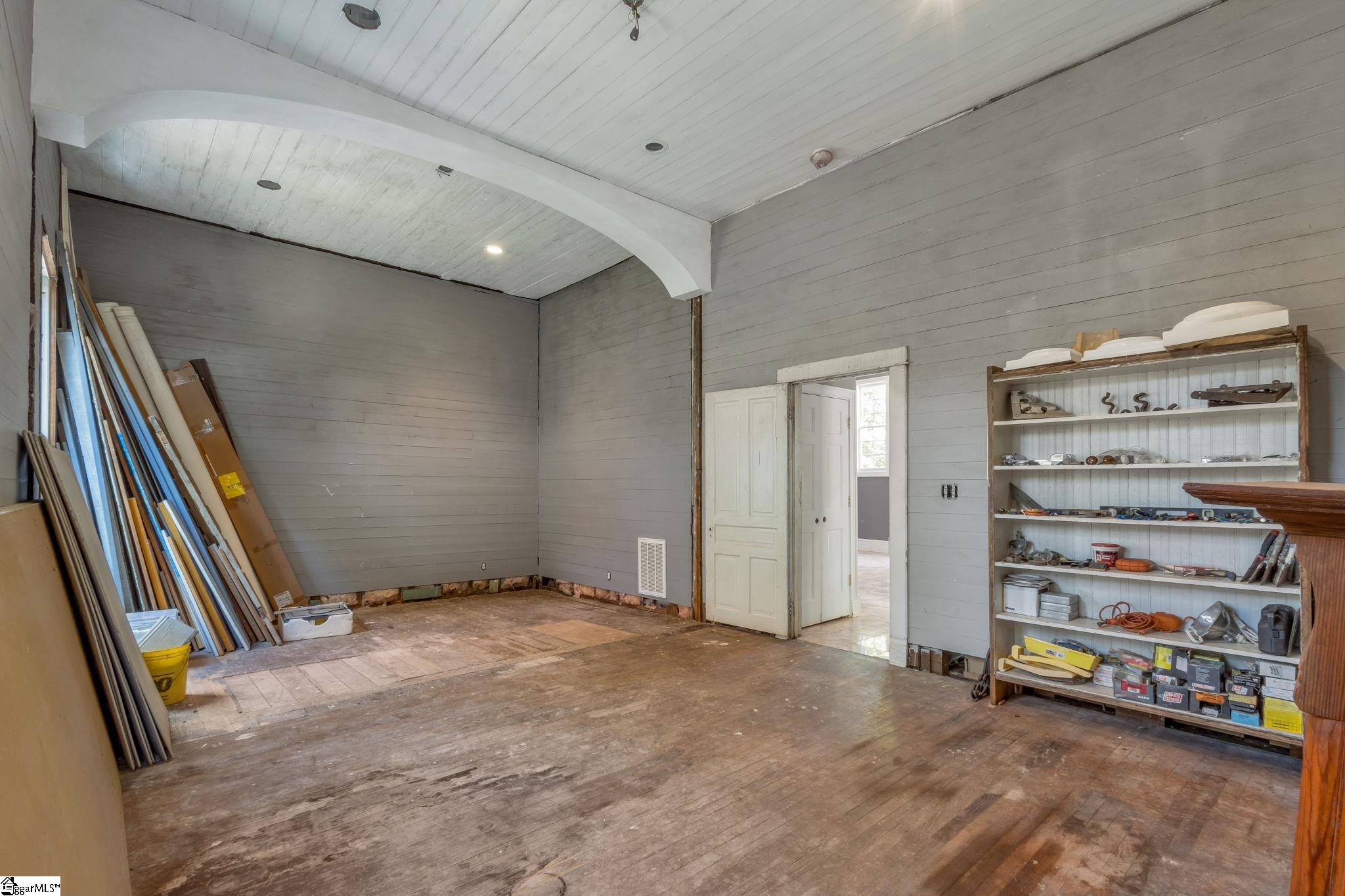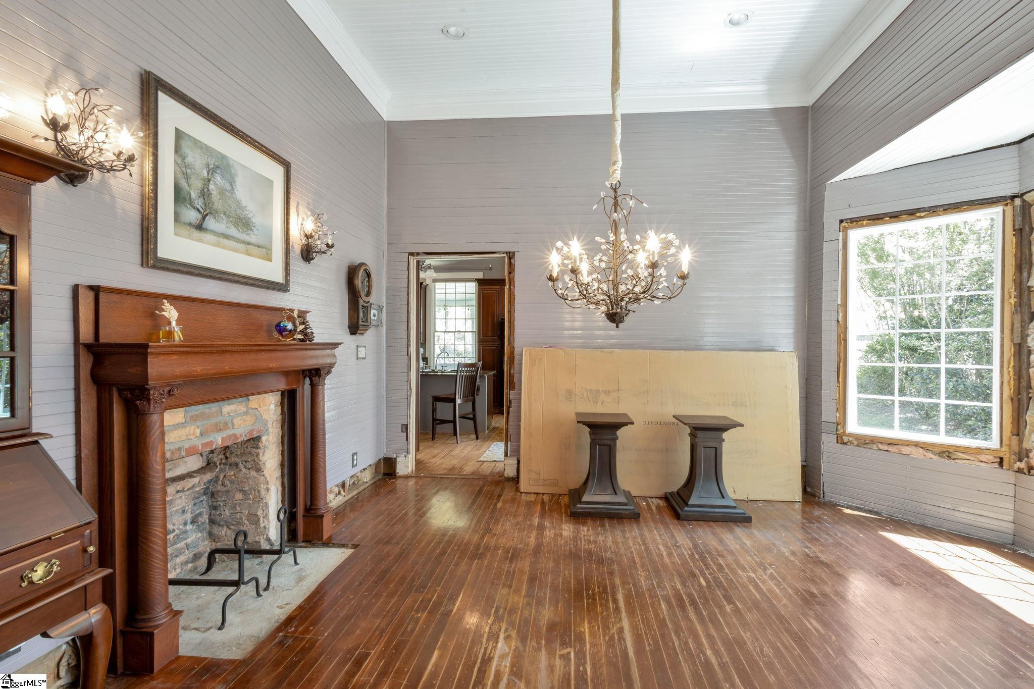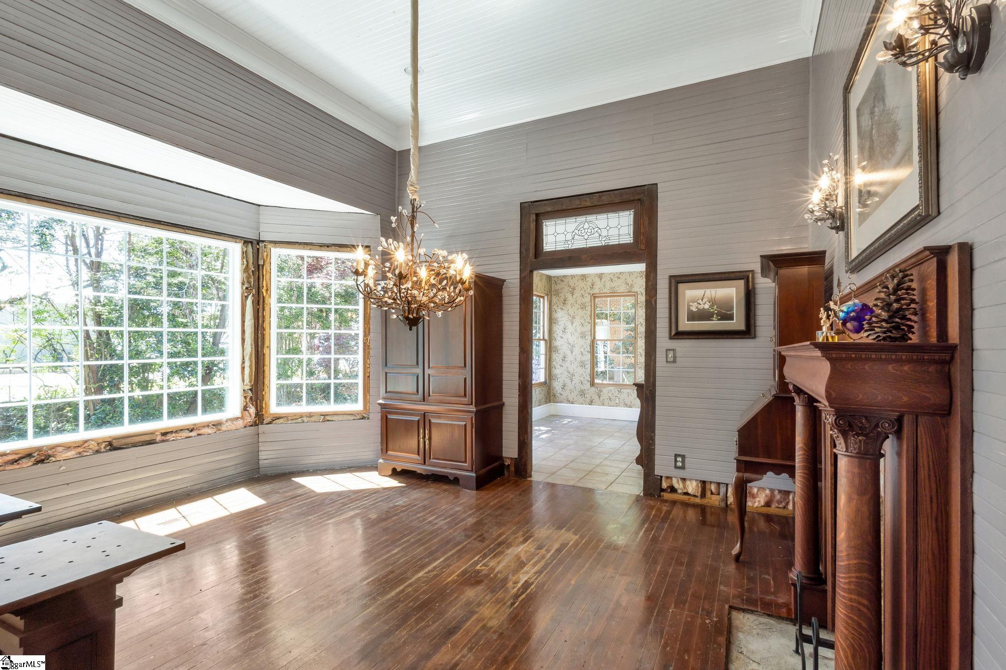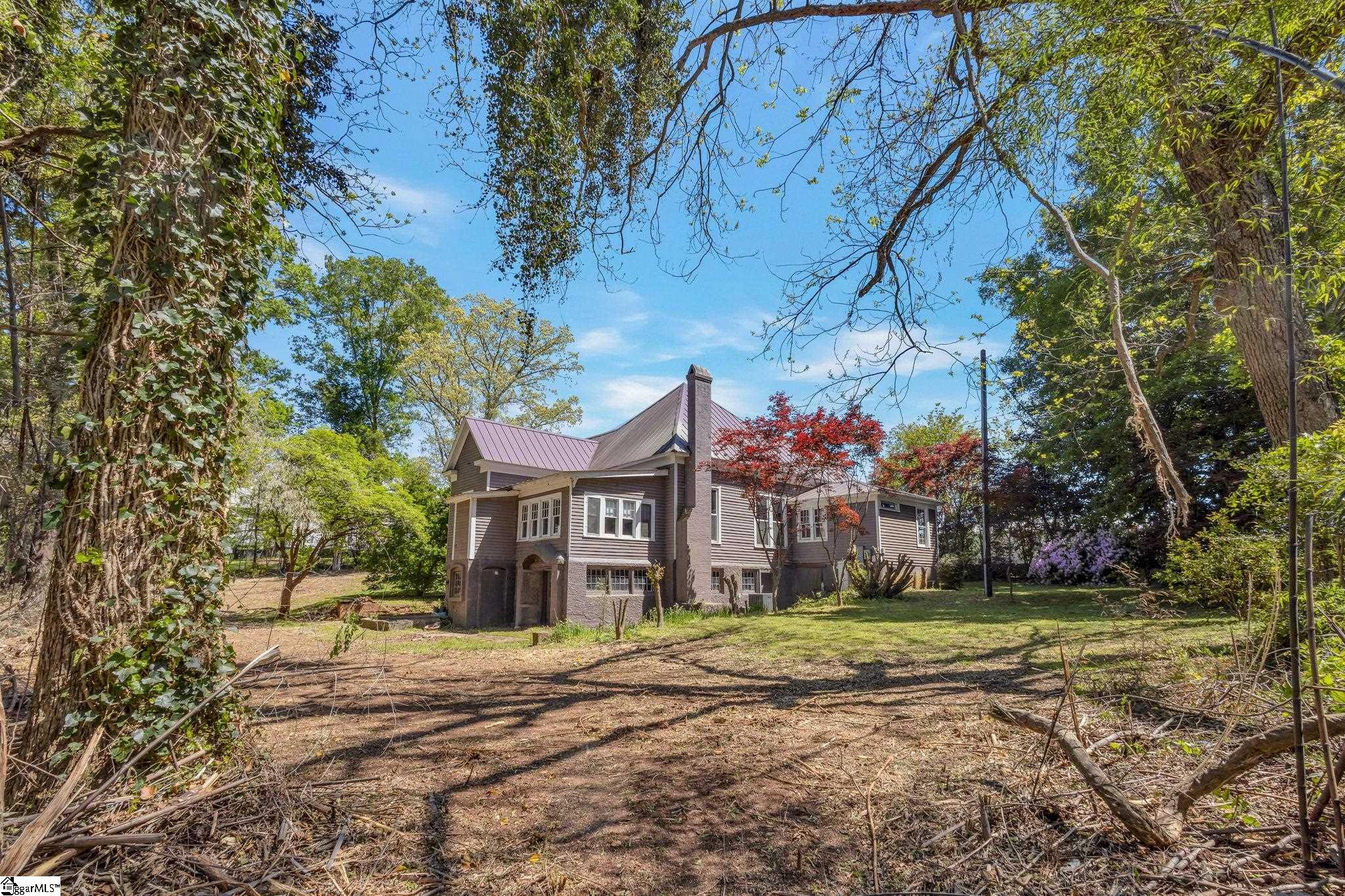 Opportunity meets character in this distinctive downtown property offering space, charm, and exceptional potential. Situated on approximately 1.74 acres, this 2-story home with a partial finished basement features 2,425 square feet above grade plus an additional 1,135 square feet in the basement. Despite its Main Street location, the property offers a sense of privacy, surrounded by mature trees, maintained hedges, and decorative landscaping. Ideally located within a short walk to The Central Roller Mills, restaurants, coffee shops, retail, and event spaces, this home combines convenience with accessibility. Also just a short drive to Clemson. Recent restoration work includes raised ceilings to approximately 12 feet on the main level and 25 feet in the great room, creating an open feel. A rebuilt staircase leads to a versatile loft area with two rooms and a full bath, suitable for office, study, playroom, or potential additional bedrooms. The kitchen features updated cabinetry with ample storage, coffee bar/drink station area, and transom windows throughout the home providing natural light. Outdoor living includes a 316 square foot wraparound porch. Updates include plumbing and electrical (2007), stairwell (2010), porch (2012), water heater (2018/2019), metal roof, and HVAC system. The basement includes exterior double-door access to a patio area and is plumbed for a future bathroom, offering potential for a second living space, in-law quarters, or possible short-term rental use. The lot may have potential to subdivide; buyer to verify. Property reflects deferred maintenance consistent with age, and some areas are in the process of renovation. Property sold As-Is, Home will not qualify for most traditional financing. Buyer to verify all information. This property offers strong potential for buyers seeking a project in a downtown location. If square footage is important, buyer/buyer’s agent to verify.