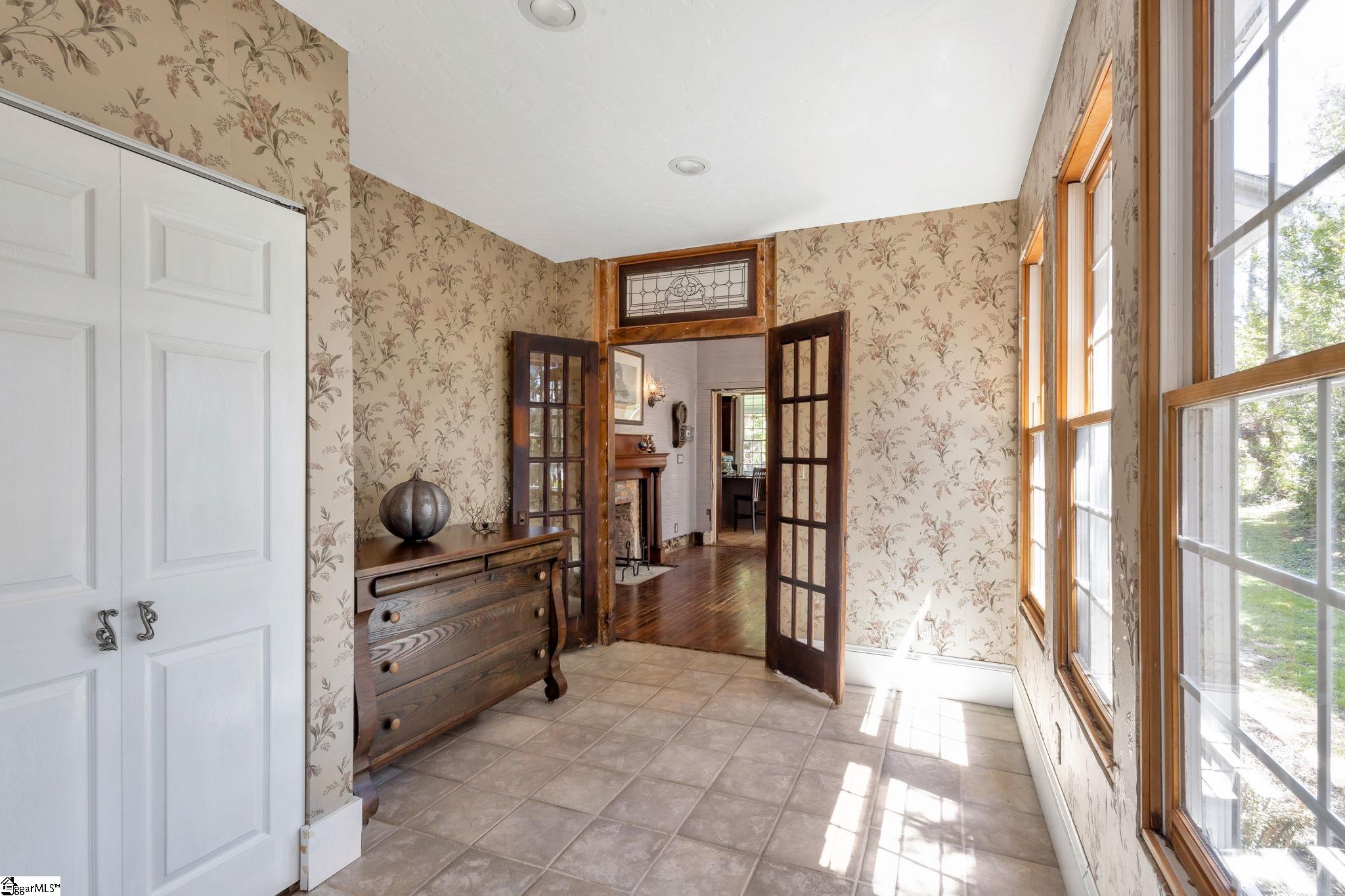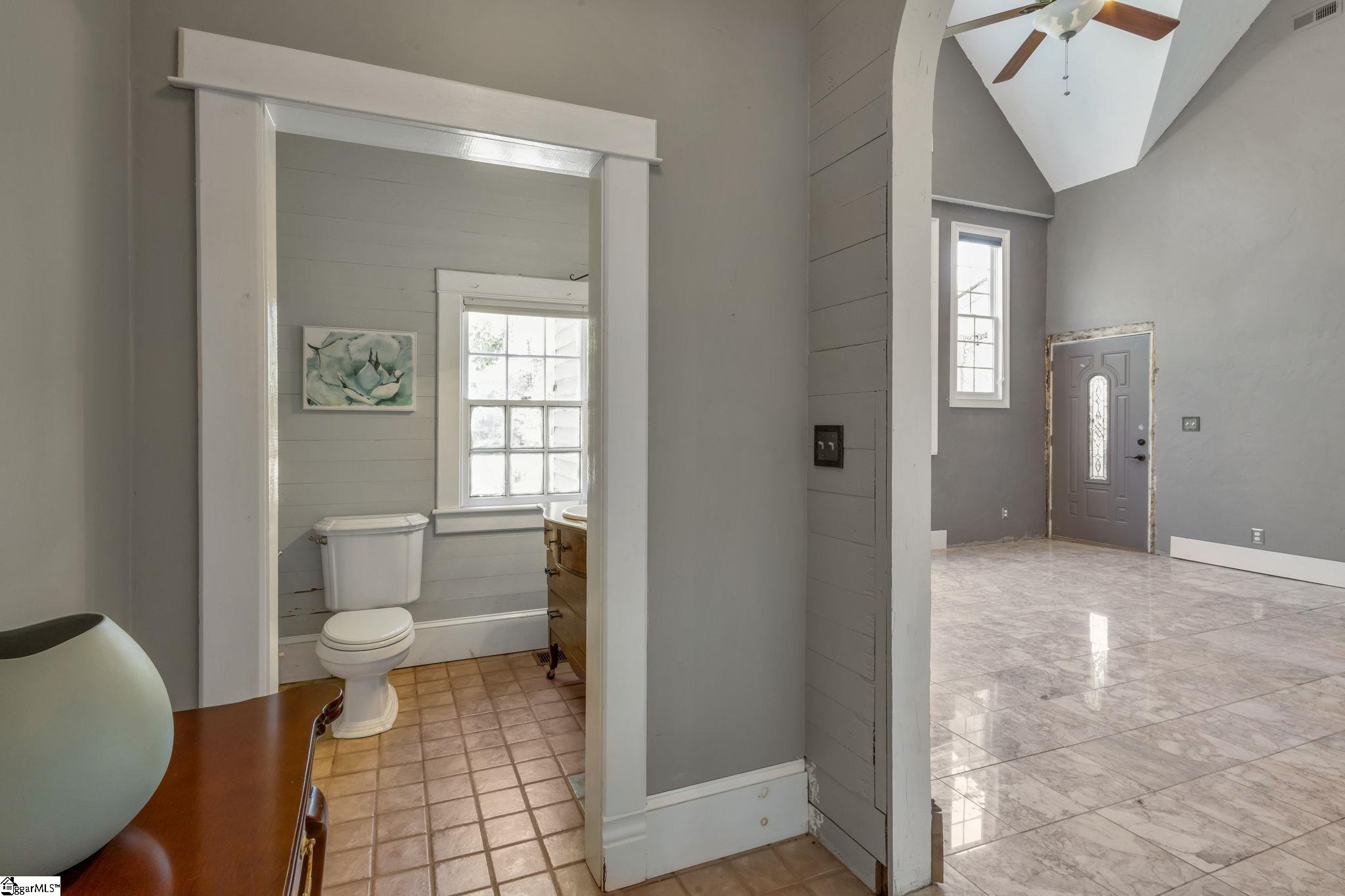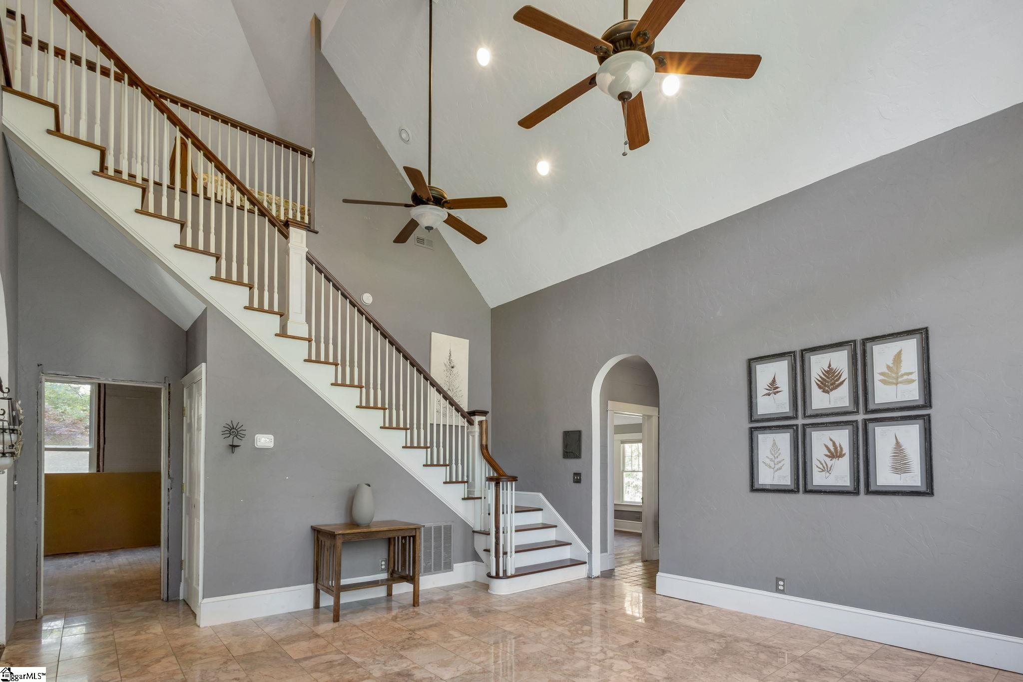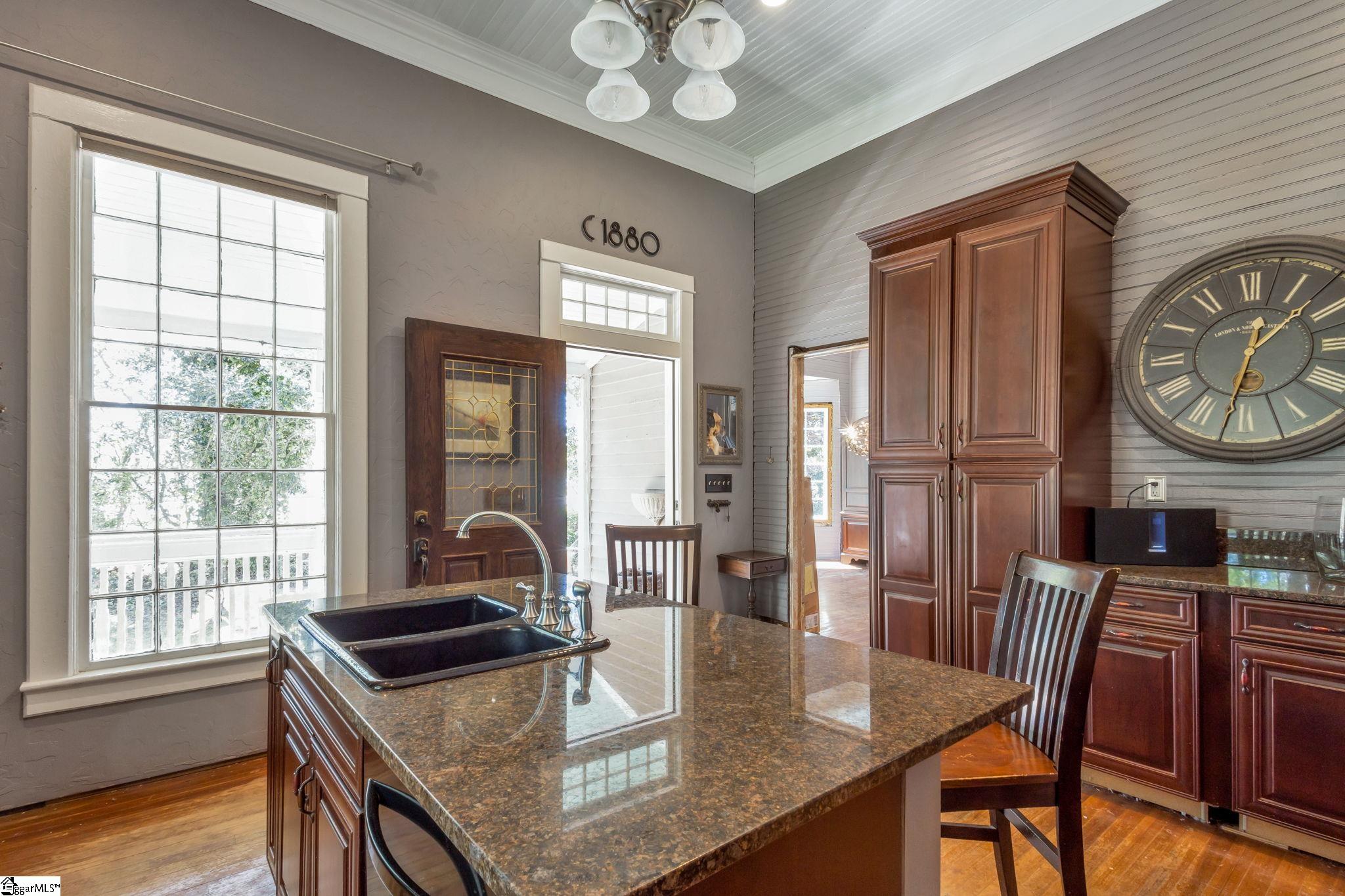 Opportunity meets character in this distinctive downtown property offering space, charm, and exceptional potential. Situated on approximately 1.74 acres, this 2-story home with a partial finished basement features 2,425 square feet above grade plus an additional 1,135 square feet in the basement. Despite its Main Street location, the property offers a sense of privacy, surrounded by mature trees, maintained hedges, and decorative landscaping. Ideally located within a short walk to The Central Roller Mills, restaurants, coffee shops, retail, and event spaces, this home combines convenience with accessibility. Also just a short drive to Clemson. Recent restoration work includes raised ceilings to approximately 12 feet on the main level and 25 feet in the great room, creating an open feel. A rebuilt staircase leads to a versatile loft area with two rooms and a full bath, suitable for office, study, playroom, or potential additional bedrooms. The kitchen features updated cabinetry with ample storage, coffee bar/drink station area, and transom windows throughout the home providing natural light. Outdoor living includes a 316 square foot wraparound porch. Updates include plumbing and electrical (2007), stairwell (2010), porch (2012), water heater (2018/2019), metal roof, and HVAC system. The basement includes exterior double-door access to a patio area and is plumbed for a future bathroom, offering potential for a second living space, in-law quarters, or possible short-term rental use. The lot may have potential to subdivide; buyer to verify. Property reflects deferred maintenance consistent with age, and some areas are in the process of renovation. Property sold As-Is, Home will not qualify for most traditional financing. Buyer to verify all information. This property offers strong potential for buyers seeking a project in a downtown location. If square footage is important, buyer/buyer’s agent to verify.