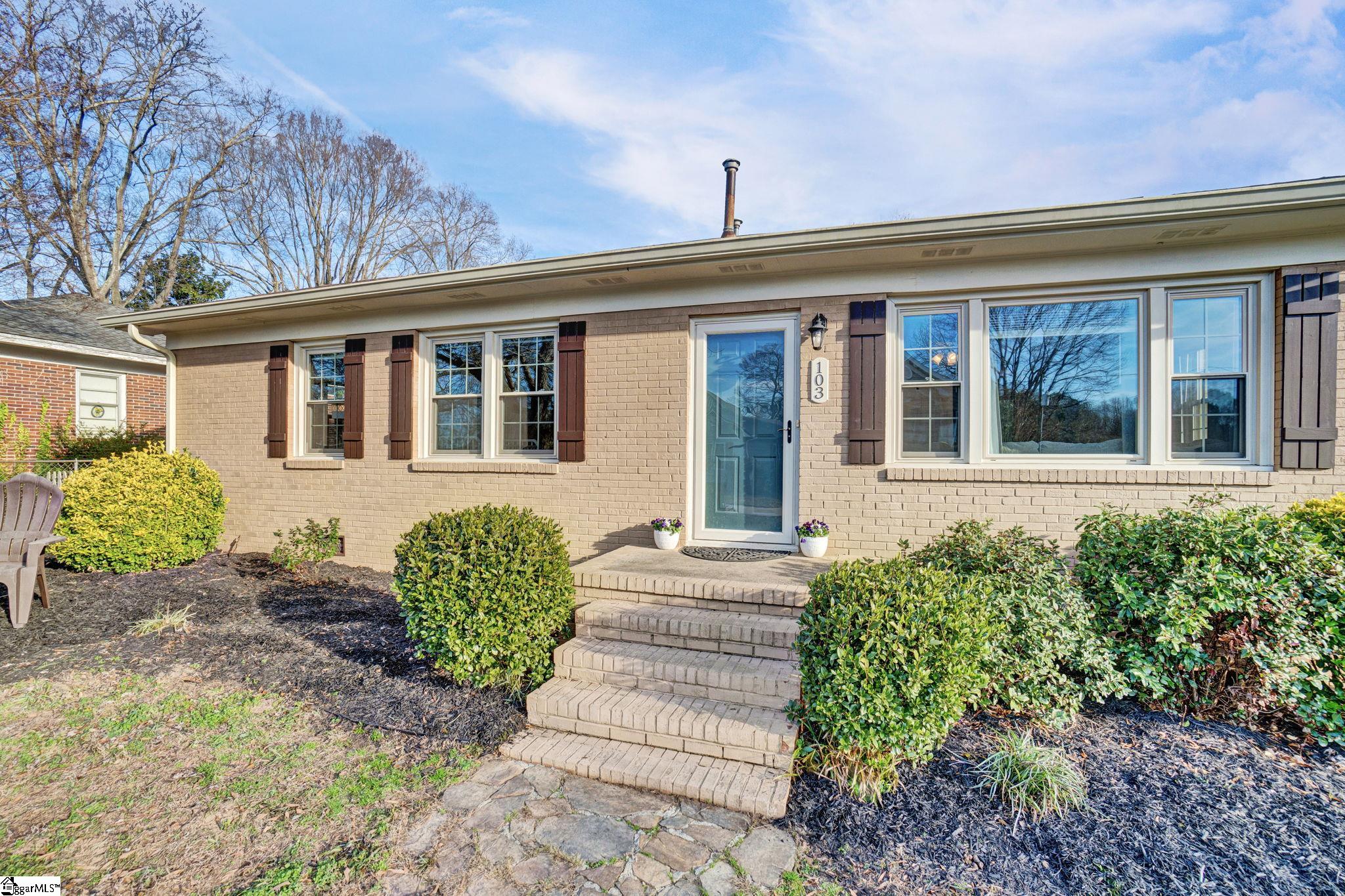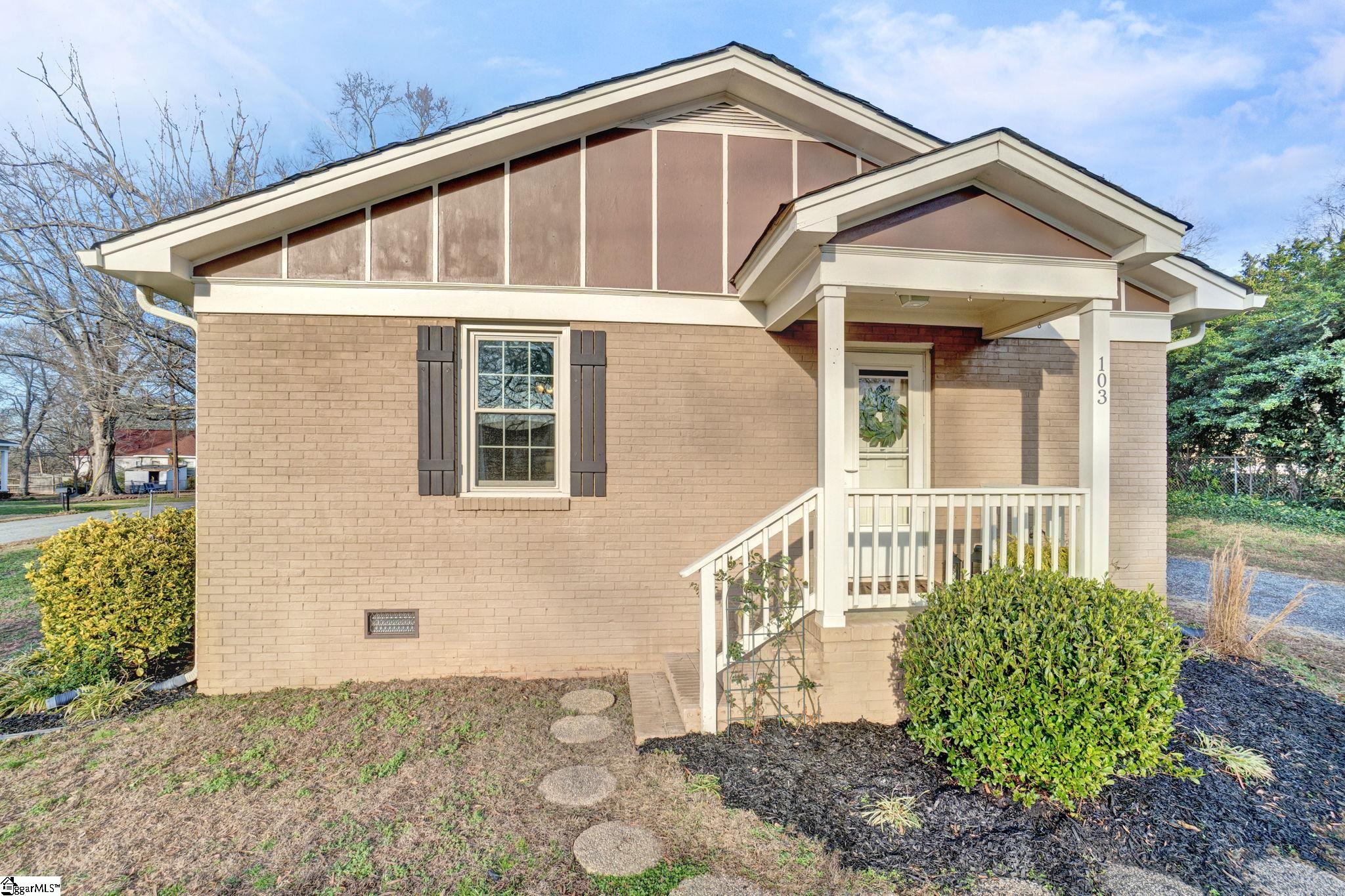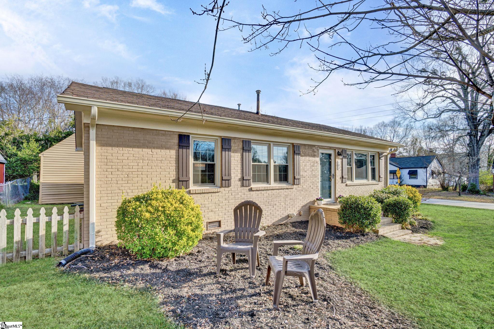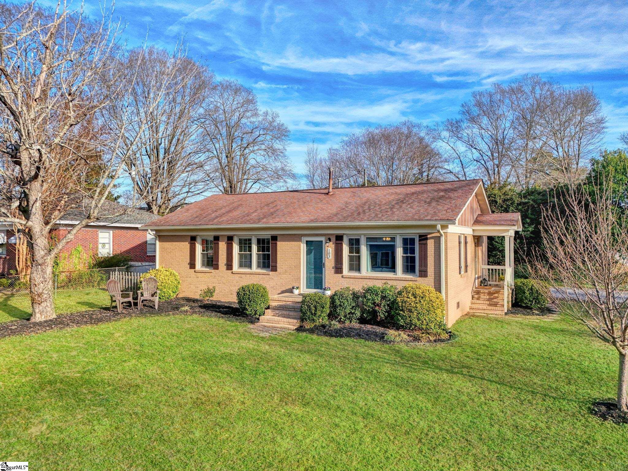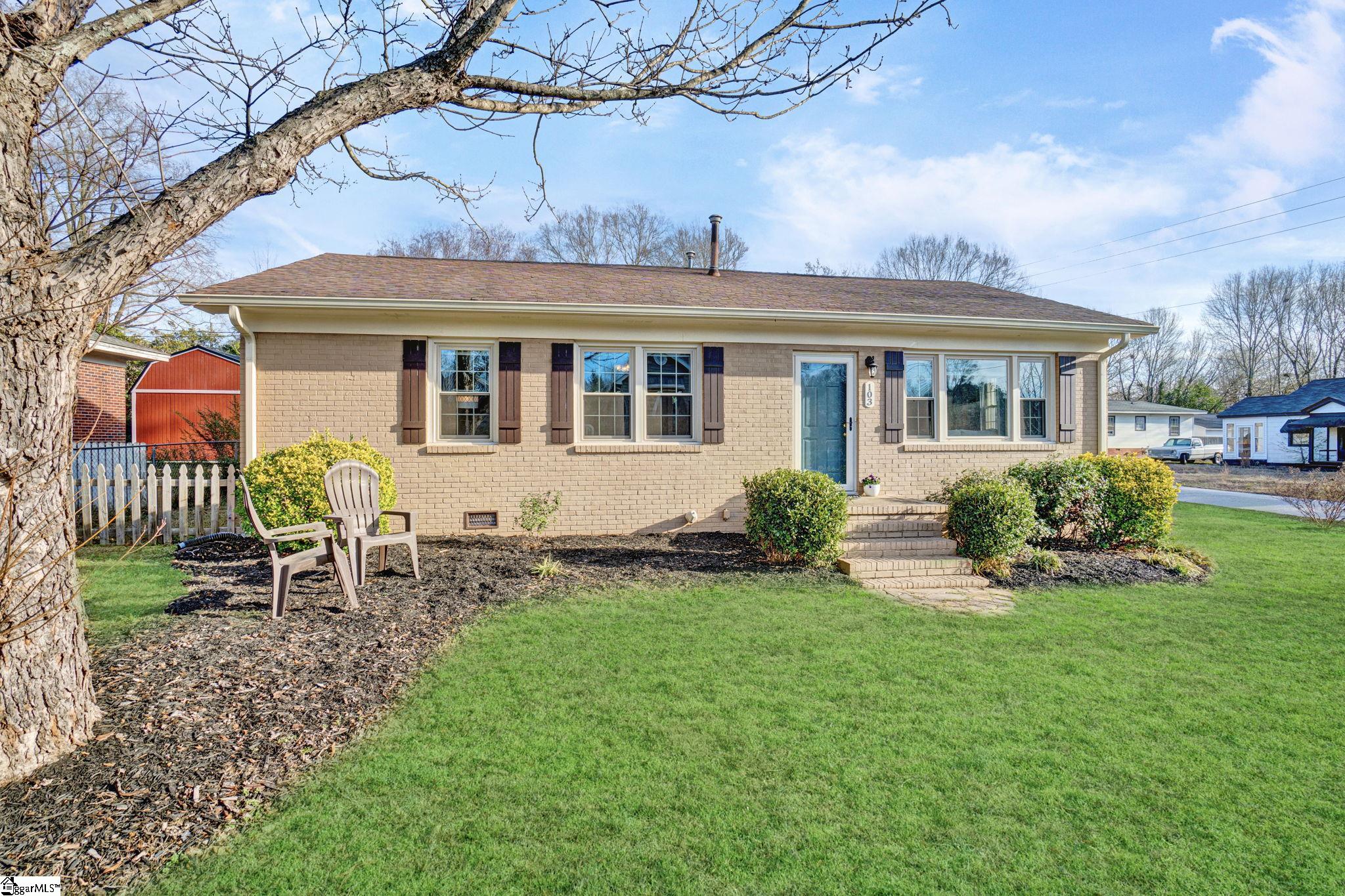 There are homes that feel quietly proud of the life they have lived and 103 Gault Street is one of them. Set in the heart of Fountain Inn, this one story brick ranch reads like a well loved novel, steady, welcoming, and beautifully cared for. From the moment I step inside, I am struck by how exceptionally clean this home is. It is genuinely one of the cleanest homes I have ever been in, thoughtfully maintained and cared for in a way you can feel in every room. The living room opens easily and feels light filled, with vinyl windows that pour in natural sunlight and create a calm, inviting atmosphere. There is no carpet anywhere in the home, just clean lines, easy living, and a sense of freshness that carries throughout. Everything feels bright, tidy, and effortlessly comfortable. This is a true one story ranch style home with three bedrooms and one and a half baths, laid out with simplicity and function in mind. The kitchen offers a versatile layout with generous counter space, perfect for everyday meals or slow weekend mornings. The entire home feels orderly, intentional, and ready for daily life. Just off the side of the home is one of my favorite features. A charming side porch leads you outdoors and adds a touch of character that feels straight out of a small town storybook. The board and batten detail here is especially sweet, giving this space personality and warmth. Behind the scenes, the seller has recently installed a brand new HVAC system, adding comfort, efficiency, and peace of mind. Combined with the vinyl windows, this home has been thoughtfully updated to support easy, low maintenance living. Outside, the yard opens wide and level, offering space to garden, play, relax, or gather. A small firepit creates a natural place for evening conversations, while the outbuilding provides valuable storage and does convey. The yard feels open and usable, the kind that invites you to spend time outdoors without feeling overwhelming. Location is where this home truly shines. From here, you can walk to Fountain Inn Farmers Park for green space, events, and community gatherings. A short stroll brings you to local favorites like Cucina 100, Bobby’s BBQ, and Little Italy Pizzeria, along with shops and restaurants that give Fountain Inn its cherished small town charm. If you are searching for a one story brick ranch in Fountain Inn SC with vinyl windows, no carpet, a new HVAC system, abundant natural light, a large level yard, charming architectural details, and walkable access to parks, restaurants, and shopping, 103 Gault Street is more than a home. It is a beautifully kept chapter, ready for its next story to be written.