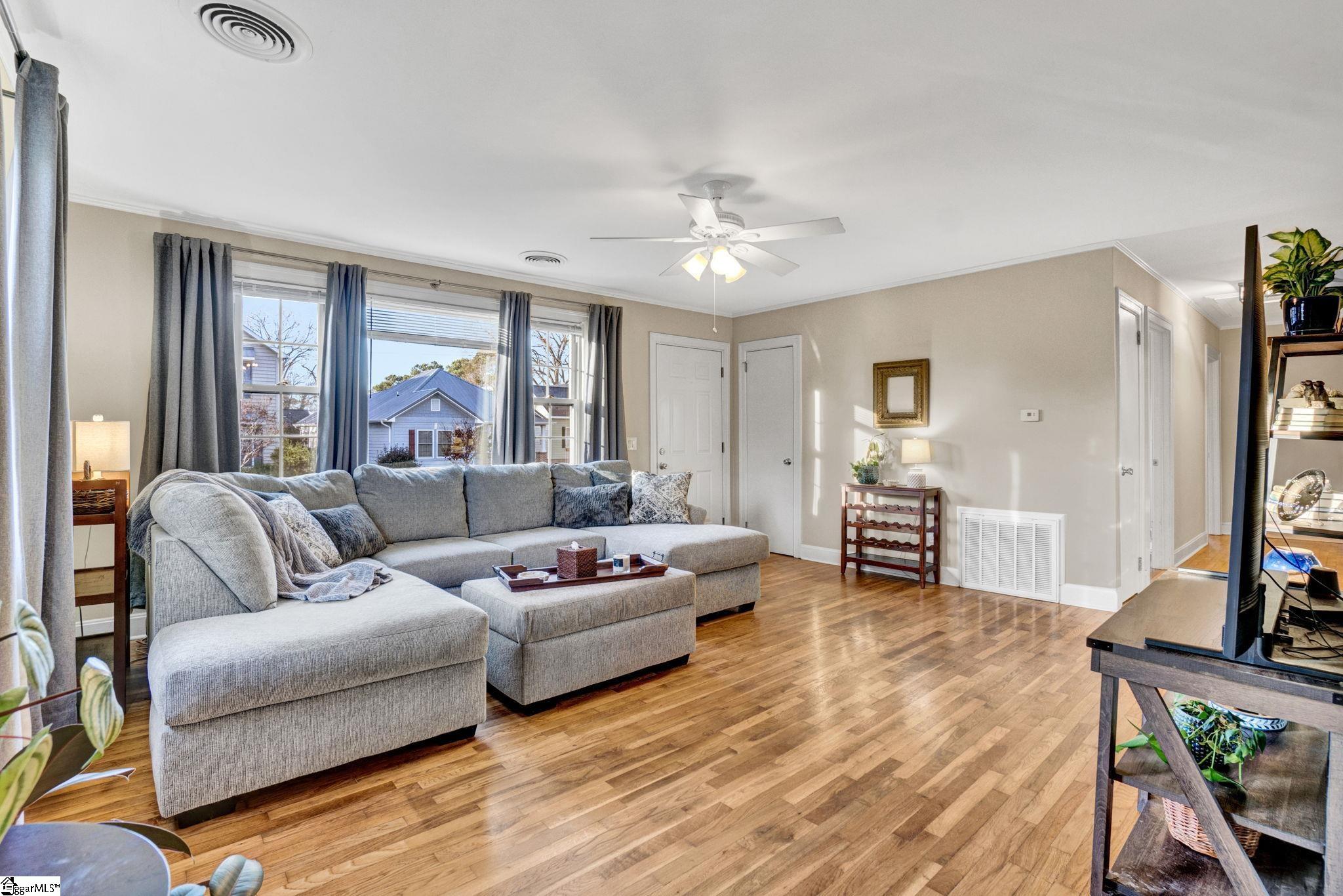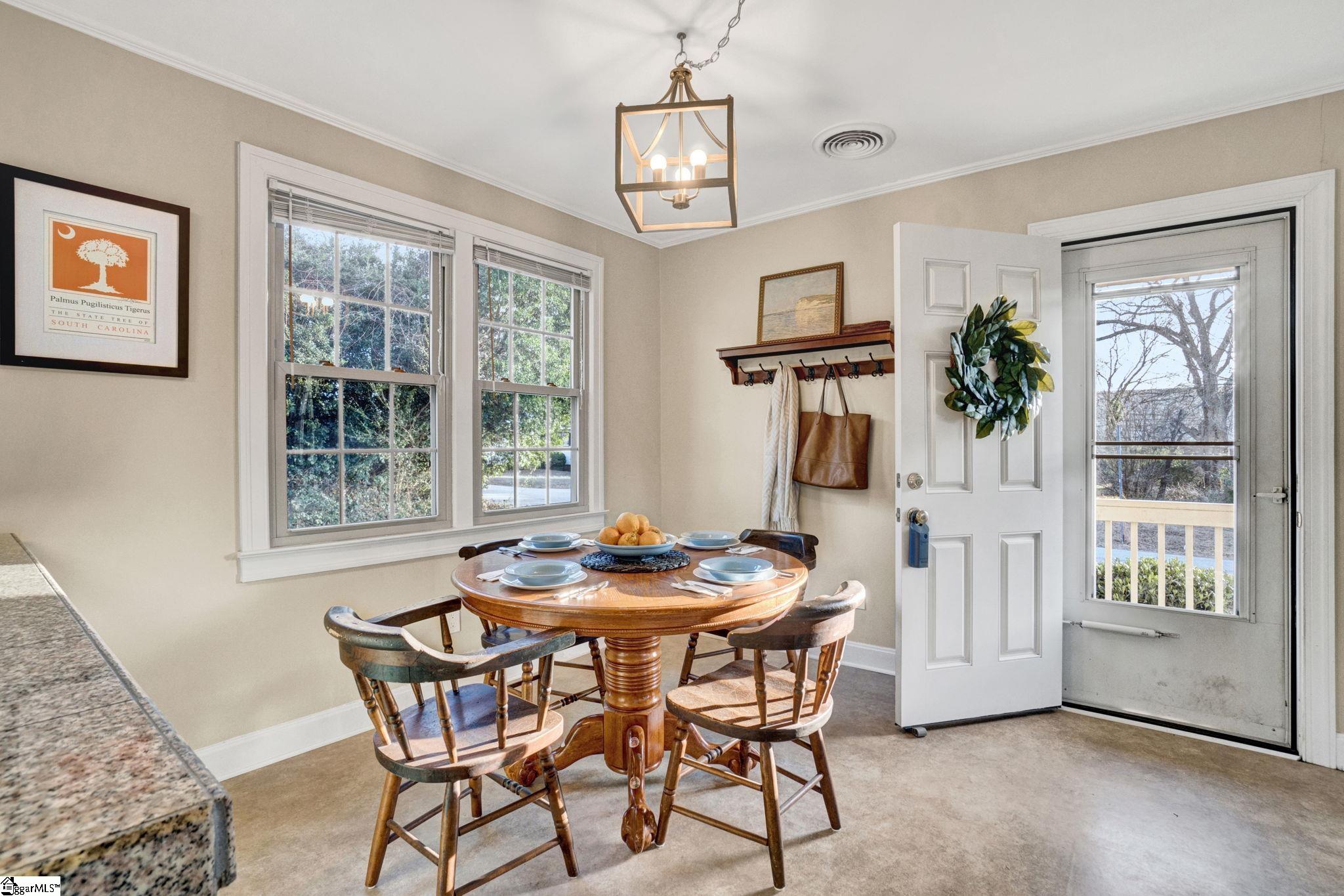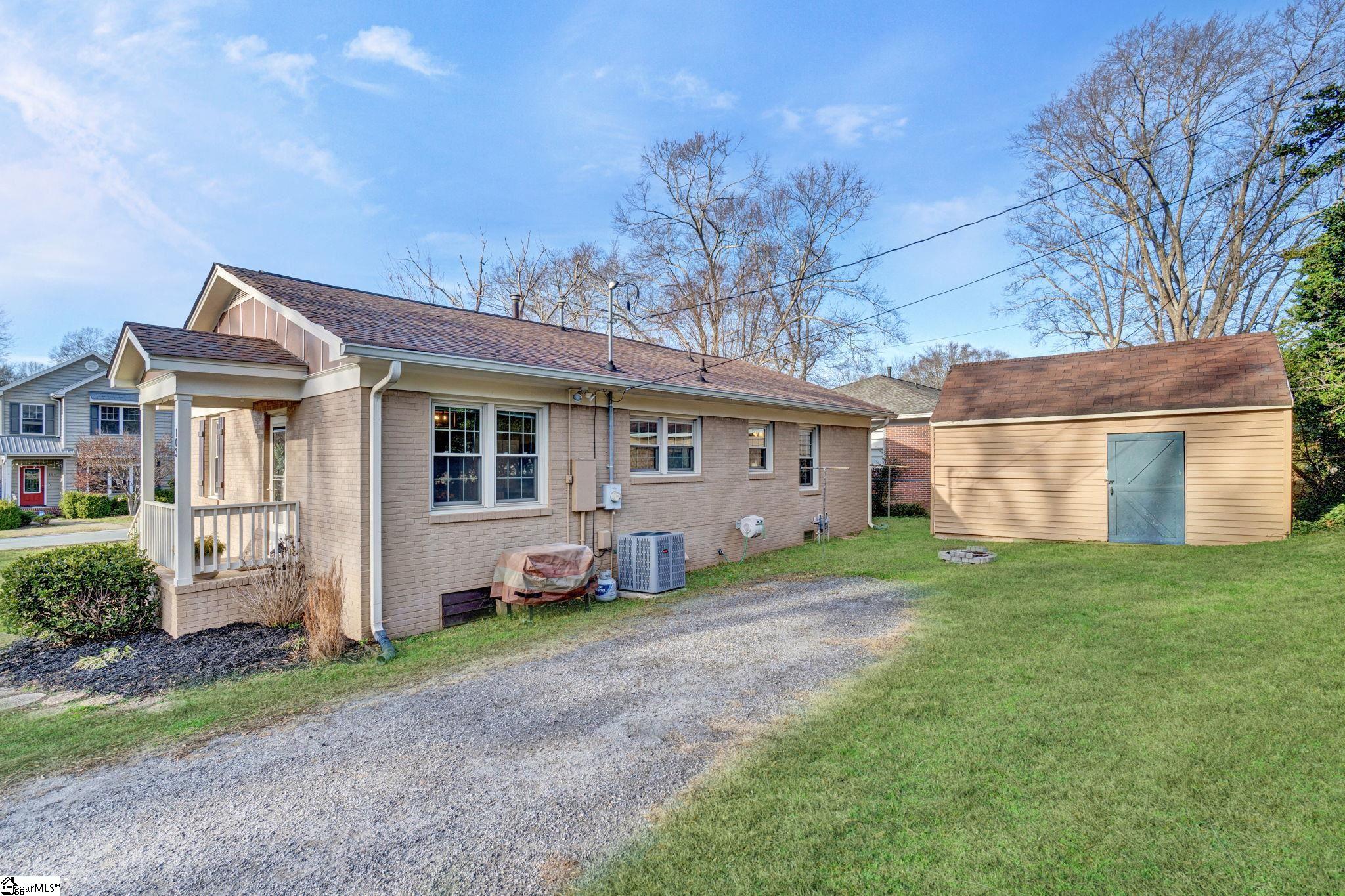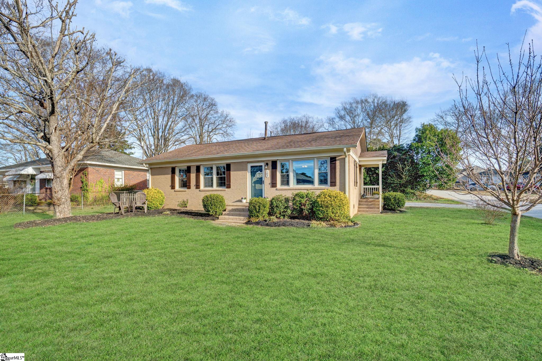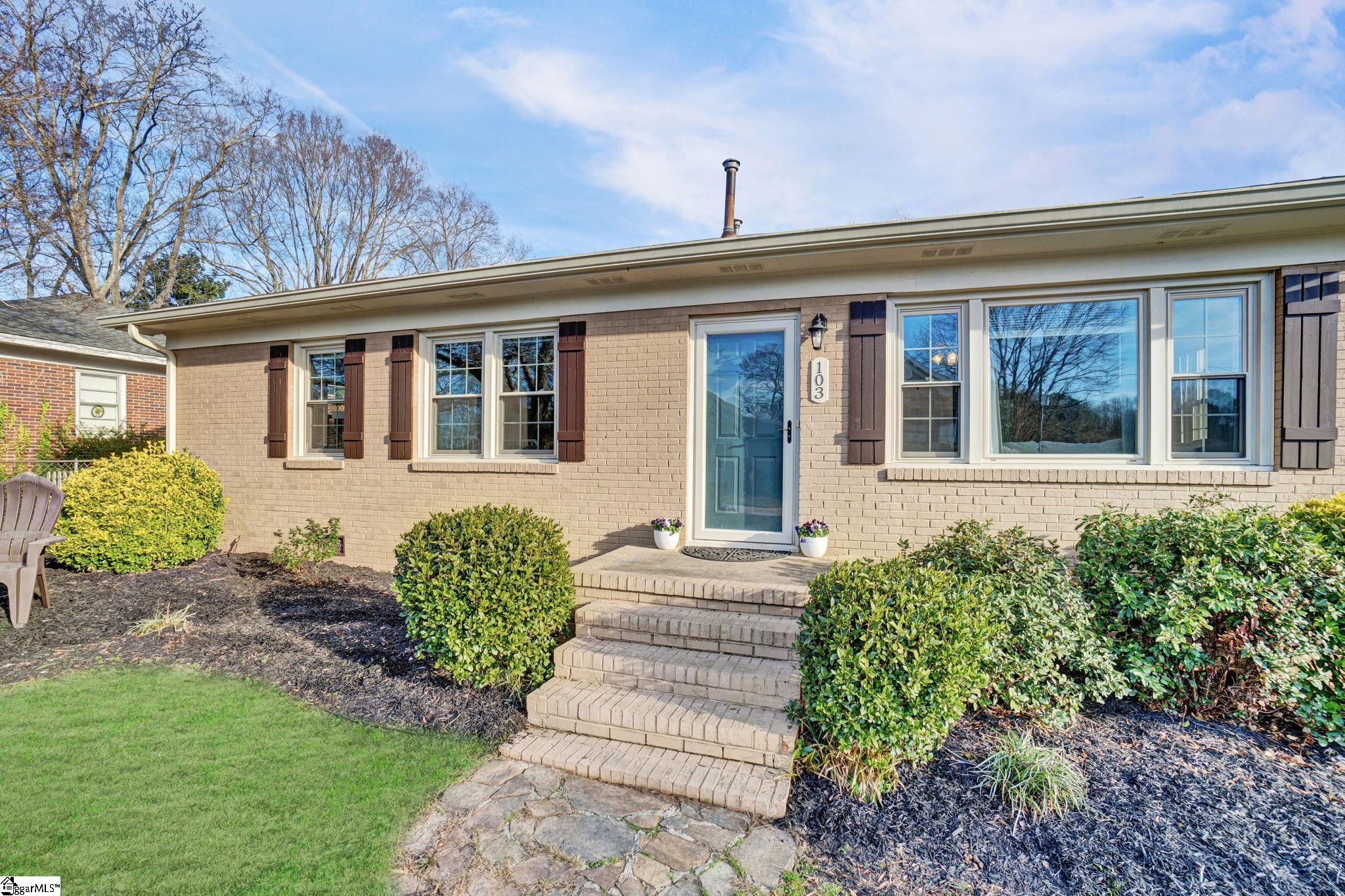 There are homes that feel quietly proud of the life they have lived and 103 Gault Street is one of them. Set in the heart of Fountain Inn, this one story brick ranch reads like a well loved novel, steady, welcoming, and beautifully cared for. From the moment I step inside, I am struck by how exceptionally clean this home is. It is genuinely one of the cleanest homes I have ever been in, thoughtfully maintained and cared for in a way you can feel in every room. The living room opens easily and feels light filled, with vinyl windows that pour in natural sunlight and create a calm, inviting atmosphere. There is no carpet anywhere in the home, just clean lines, easy living, and a sense of freshness that carries throughout. Everything feels bright, tidy, and effortlessly comfortable. This is a true one story ranch style home with three bedrooms and one and a half baths, laid out with simplicity and function in mind. The kitchen offers a versatile layout with generous counter space, perfect for everyday meals or slow weekend mornings. The entire home feels orderly, intentional, and ready for daily life. Just off the side of the home is one of my favorite features. A charming side porch leads you outdoors and adds a touch of character that feels straight out of a small town storybook. The board and batten detail here is especially sweet, giving this space personality and warmth. Behind the scenes, the seller has recently installed a brand new HVAC system, adding comfort, efficiency, and peace of mind. Combined with the vinyl windows, this home has been thoughtfully updated to support easy, low maintenance living. Outside, the yard opens wide and level, offering space to garden, play, relax, or gather. A small firepit creates a natural place for evening conversations, while the outbuilding provides valuable storage and does convey. The yard feels open and usable, the kind that invites you to spend time outdoors without feeling overwhelming. Location is where this home truly shines. From here, you can walk to Fountain Inn Farmers Park for green space, events, and community gatherings. A short stroll brings you to local favorites like Cucina 100, Bobby’s BBQ, and Little Italy Pizzeria, along with shops and restaurants that give Fountain Inn its cherished small town charm. If you are searching for a one story brick ranch in Fountain Inn SC with vinyl windows, no carpet, a new HVAC system, abundant natural light, a large level yard, charming architectural details, and walkable access to parks, restaurants, and shopping, 103 Gault Street is more than a home. It is a beautifully kept chapter, ready for its next story to be written.