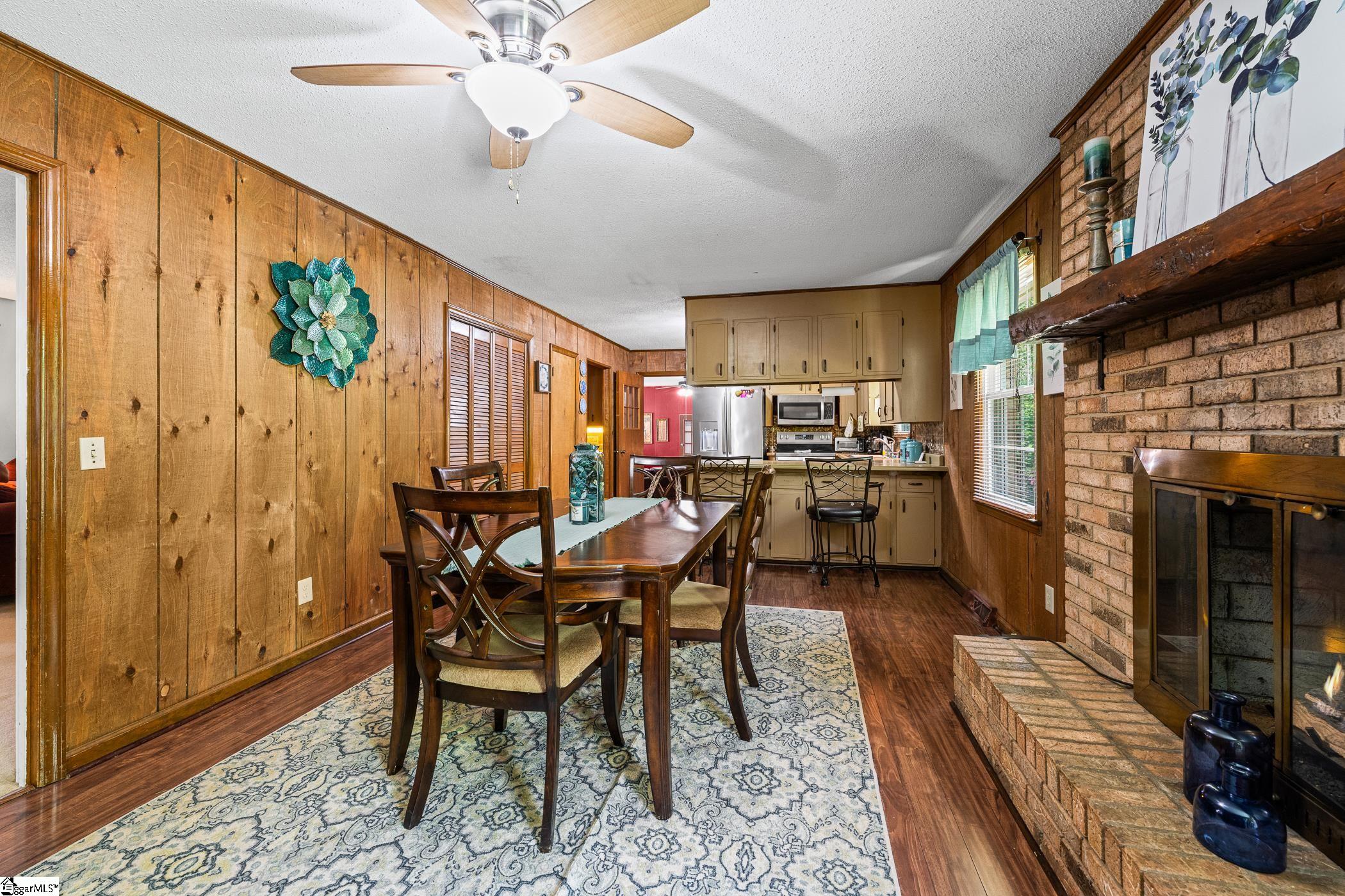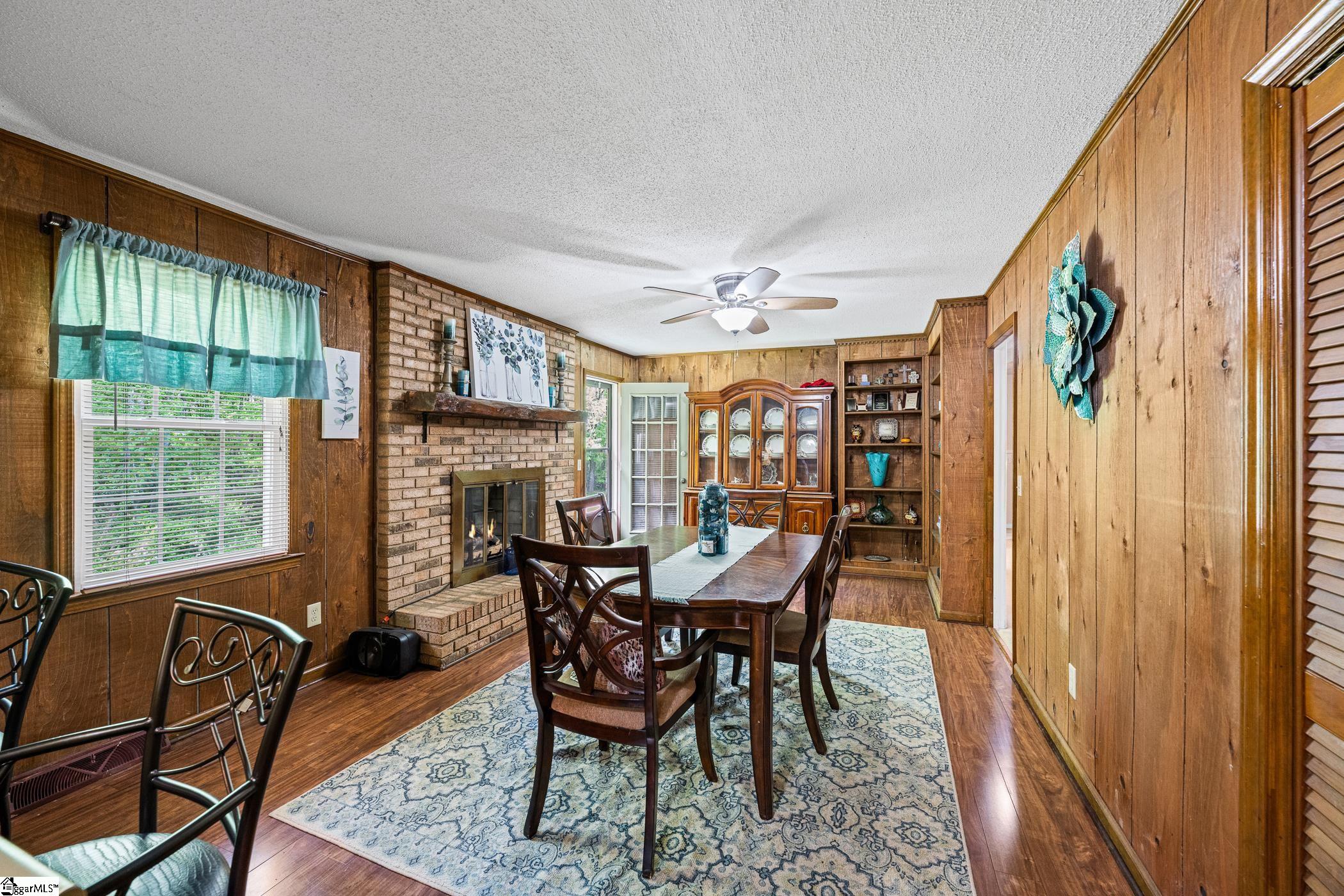 Welcome to this 3 bedroom, 2 bathroom brick home sitting on over half an acre at the end of a quiet cul-de-sac. The mature trees and private yard give you a peaceful setting while still being less than 10 minutes from shopping and restaurants. The front porch is a great spot to sit and enjoy the beauty of this neighborhood. Inside a beautiful entryway opens to a comfortable living room with plenty of space to relax or entertain. You can move into the dining and kitchen area through the hallway or the butler’s pantry, and the dining room features a gas fireplace that adds a warm, inviting feel and a doors that enters to the back deck and the gorgeous back yard. A converted space offers a large great room along with a small private office, giving you flexible space for a second living area, workspace, or playroom. On the other side of the home are three bedrooms, including a primary bedroom with its own bathroom, along with a full hall bath. Out back, you’ll find a detached oversized two car garage or workshop with a concrete slab and electricity, perfect for storage, projects, or hobbies. No HOA, plenty of privacy, and a convenient location make this a great place to call home.