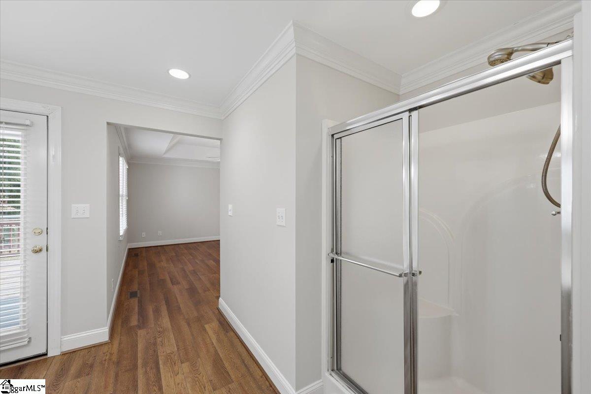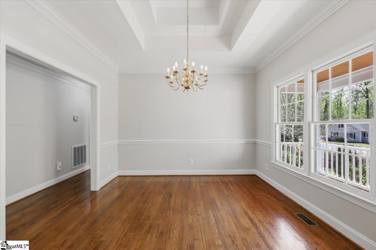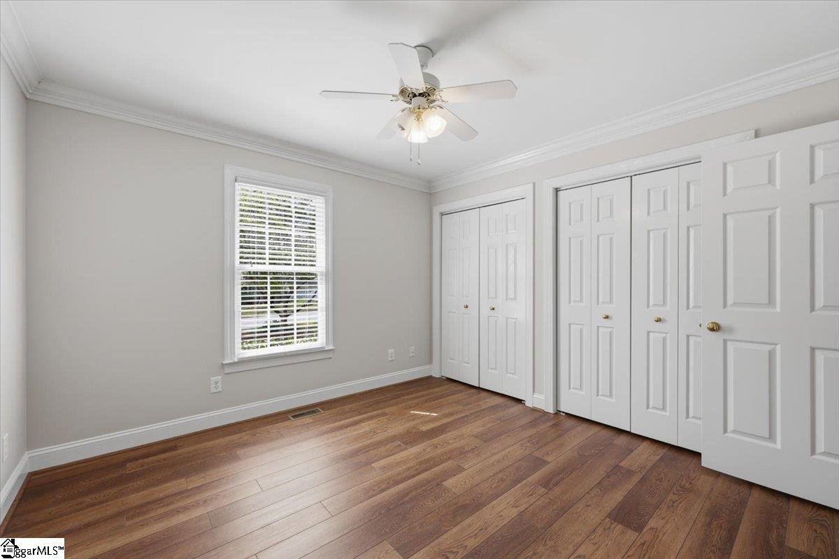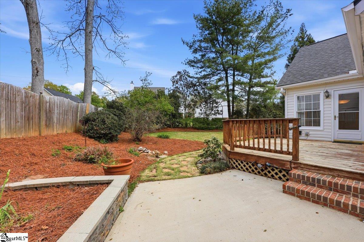 Welcome to 104 Brendle Drive in the desirable Wemberly Way community—just minutes from the charm and convenience of Downtown Simpsonville! This beautifully maintained home offers the perfect blend of comfort, style, and functionality—all in a quiet, established neighborhood with no HOA. A classic rocking chair front porch invites you in, where you’re greeted by gorgeous hardwood flooring that flows throughout the main living areas. Just off the entry, the dining room makes an elegant first impression with its double tray ceiling and decorative details—perfect for hosting and gathering. The spacious living room features a vaulted ceiling, abundant natural light, and a stunning gas fireplace that creates a warm and welcoming atmosphere. The kitchen truly serves as the heart of the home, offering ample cabinetry, counter space, stainless steel appliances, including a dual fuel range with a warming drawer. Just off the kitchen, the large breakfast room overlooks the backyard and opens to a deck—complete with an extendable awning for comfortable outdoor living. The primary suite is a relaxing retreat, highlighted by a tray ceiling, beautiful flooring, a large walk-in closet, and private access to its own deck—ideal for morning coffee or unwinding at the end of the day. Two additional bedrooms and a full bath are conveniently located on the main level, while a spacious fourth bedroom or bonus room upstairs provides flexibility for guests, a home office, or recreation space. Additional features include a laundry room with extra storage just off the kitchen, an oversized garage, and a detached outbuilding with a poured concrete floor—perfect for hobbies or additional storage. Step outside and enjoy a beautifully landscaped yard with seasonal blooms, supported by front and backyard irrigation. Major updates and peace-of-mind features include a new roof (2025), a crawlspace dehumidifier, a transferable termite bond and fresh paint throughout! This home has been lovingly cared for, and it shows at every turn. Don’t miss your opportunity to live in a peaceful, established community just minutes from everything—schedule your showing today before it’s gone!