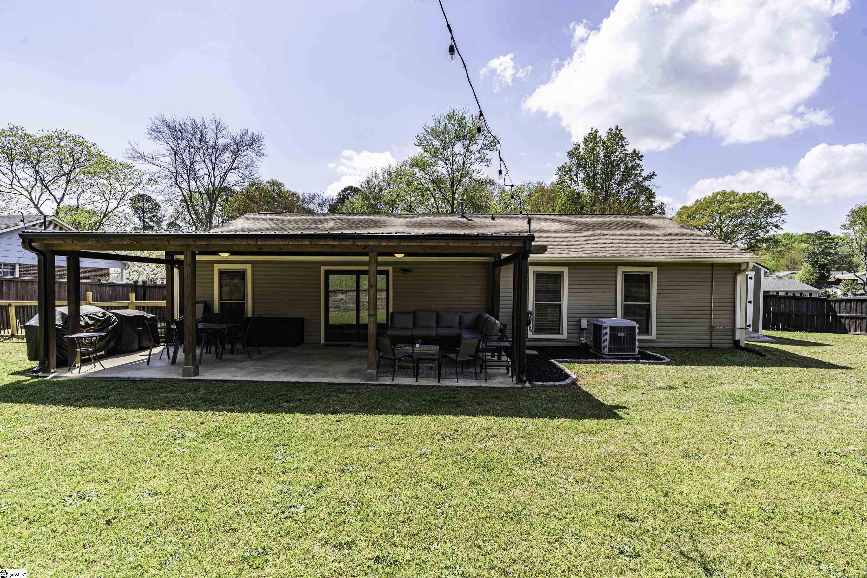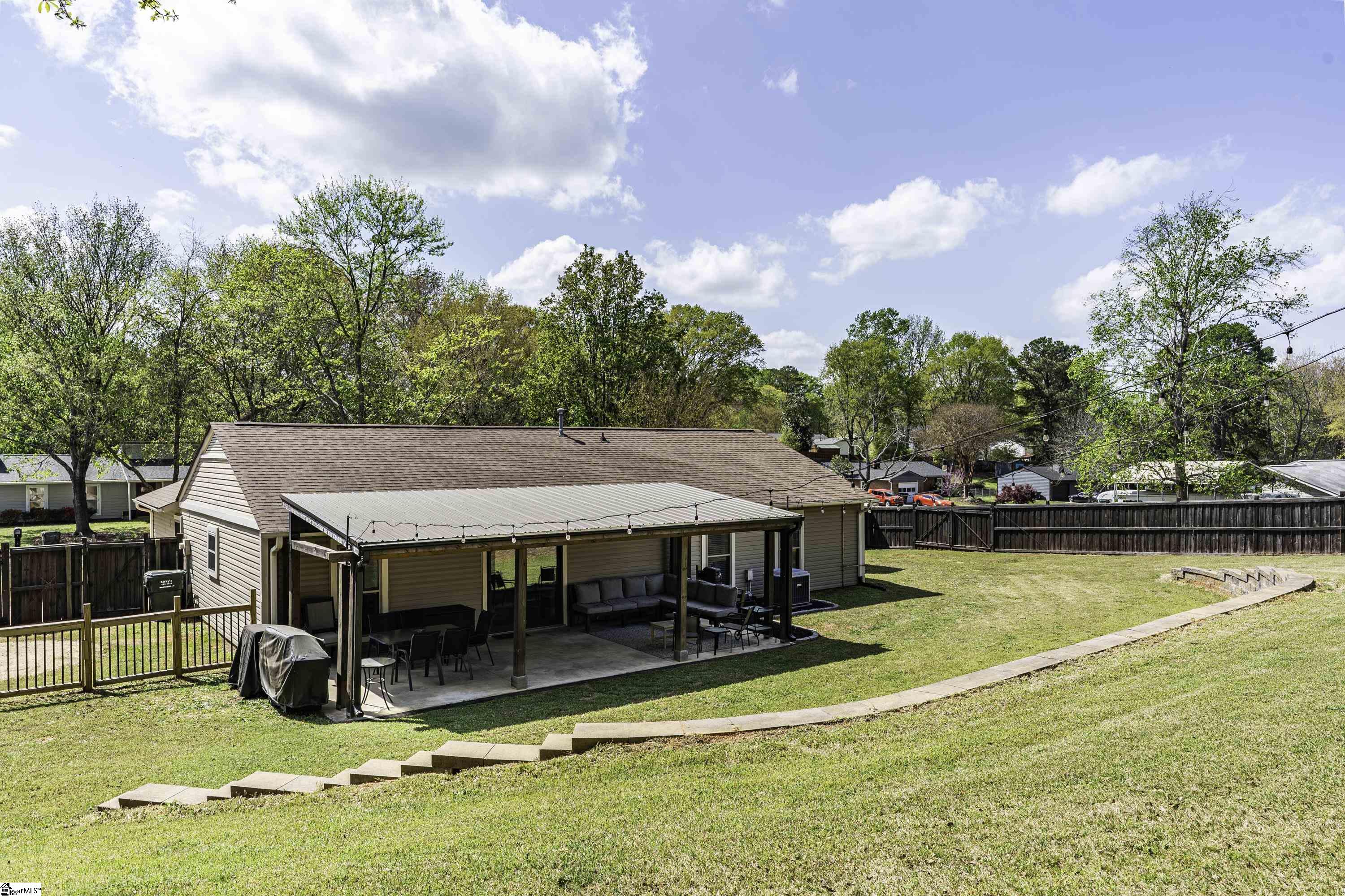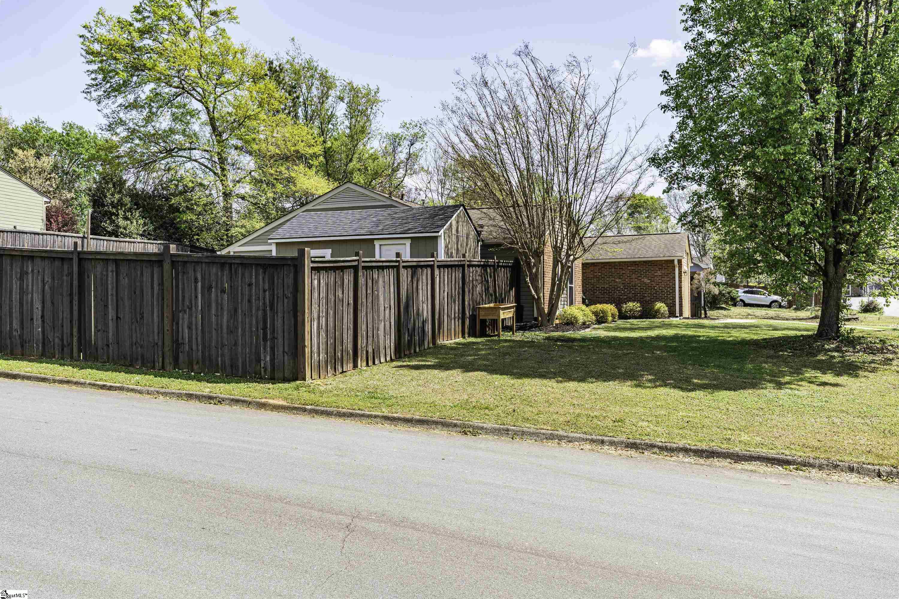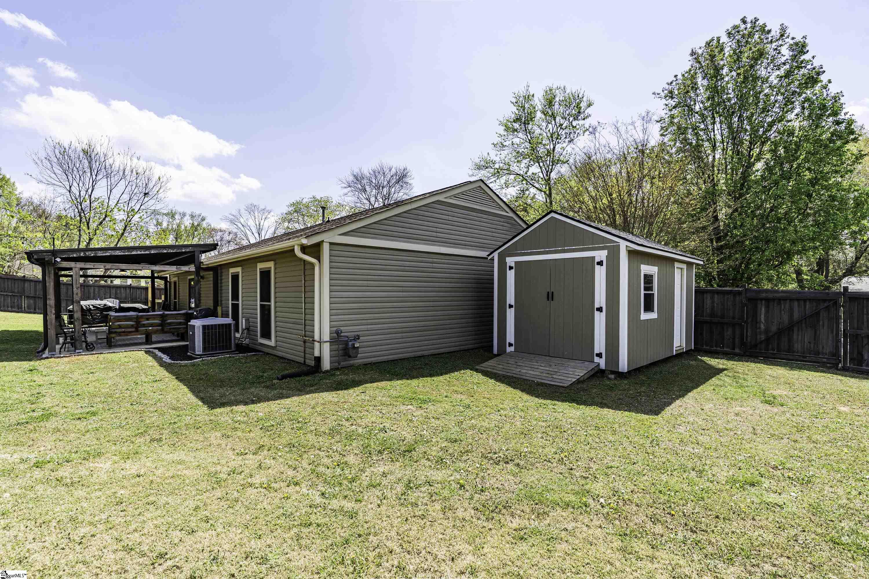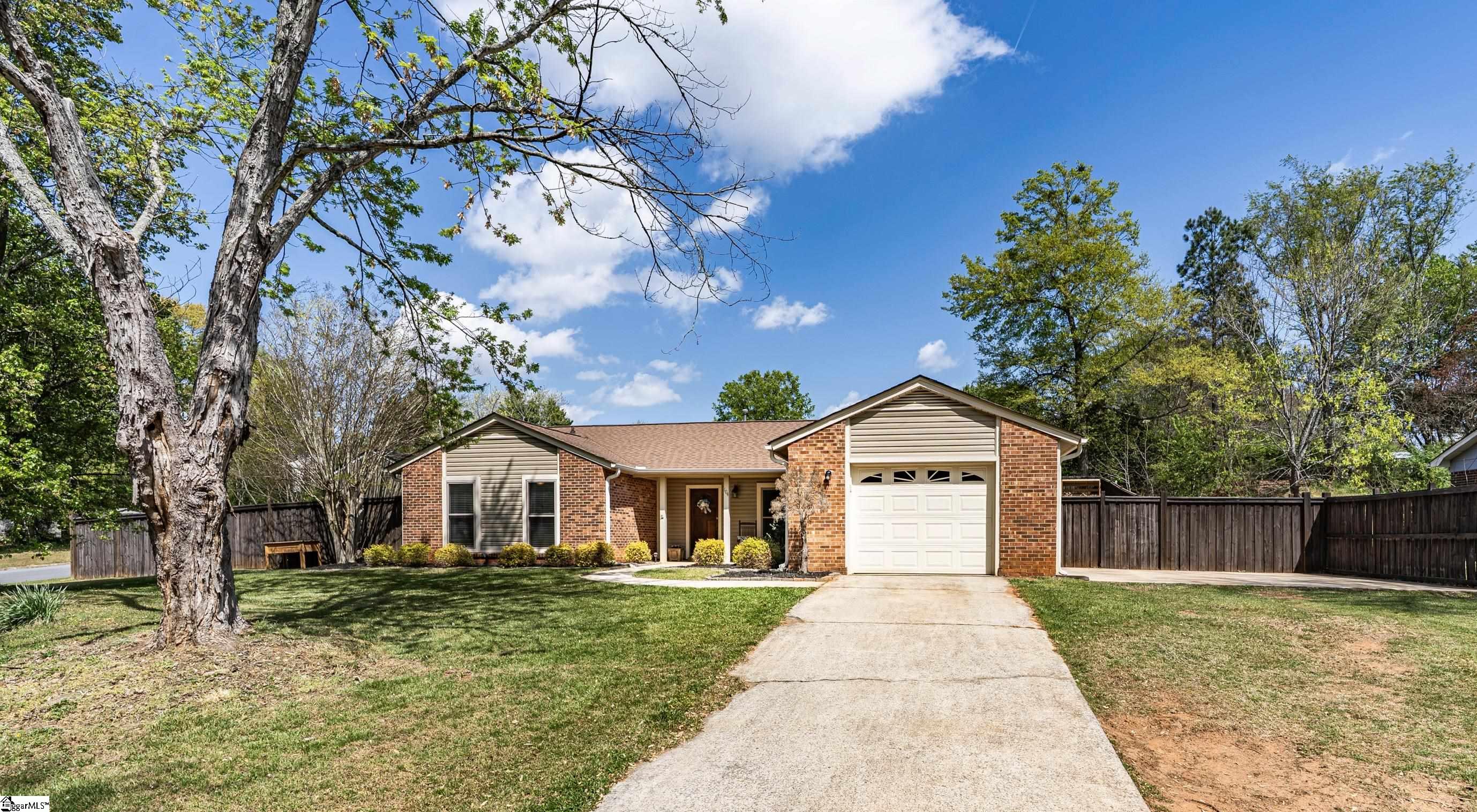 GREAT LOCATION. GREAT SCHOOLS. This charming one-level home is located on a spacious corner lot in Westminster Village. Perfectly situated between Pelham and Hudson Road, this property is adjacent to the Devenger subdivisions and just 15 minutes from Downtown Greenville. The interior features a bright, open floor plan with numerous updates. The newly renovated kitchen is equipped with an abundance of cabinets, granite countertops and stainless steel appliances, flowing seamlessly into the spacious dining area and a living room centered around a large rock fireplace with gas logs, a vaulted ceiling and stained wooden beam. The large primary suite includes a bath with tiled shower, two closets, one of which is a walk-in, while two additional bedrooms share a well-appointed hall bath. The outdoor living space is a standout feature, offering a fully fenced backyard sanctuary, a 31×14 covered patio, a sliding safety fence that surrounds the side yard area and can be easily opened up. Additionally, there is a beautiful retaining wall, plenty of space for a fire pit, entertaining, playground and gardening. For extra storage, there is a very nice 176 square foot storage shed which matches the home. Easy access to I-385, I-85, Greenville, local shopping and restaurants. Don’t miss out. This home will not last long!