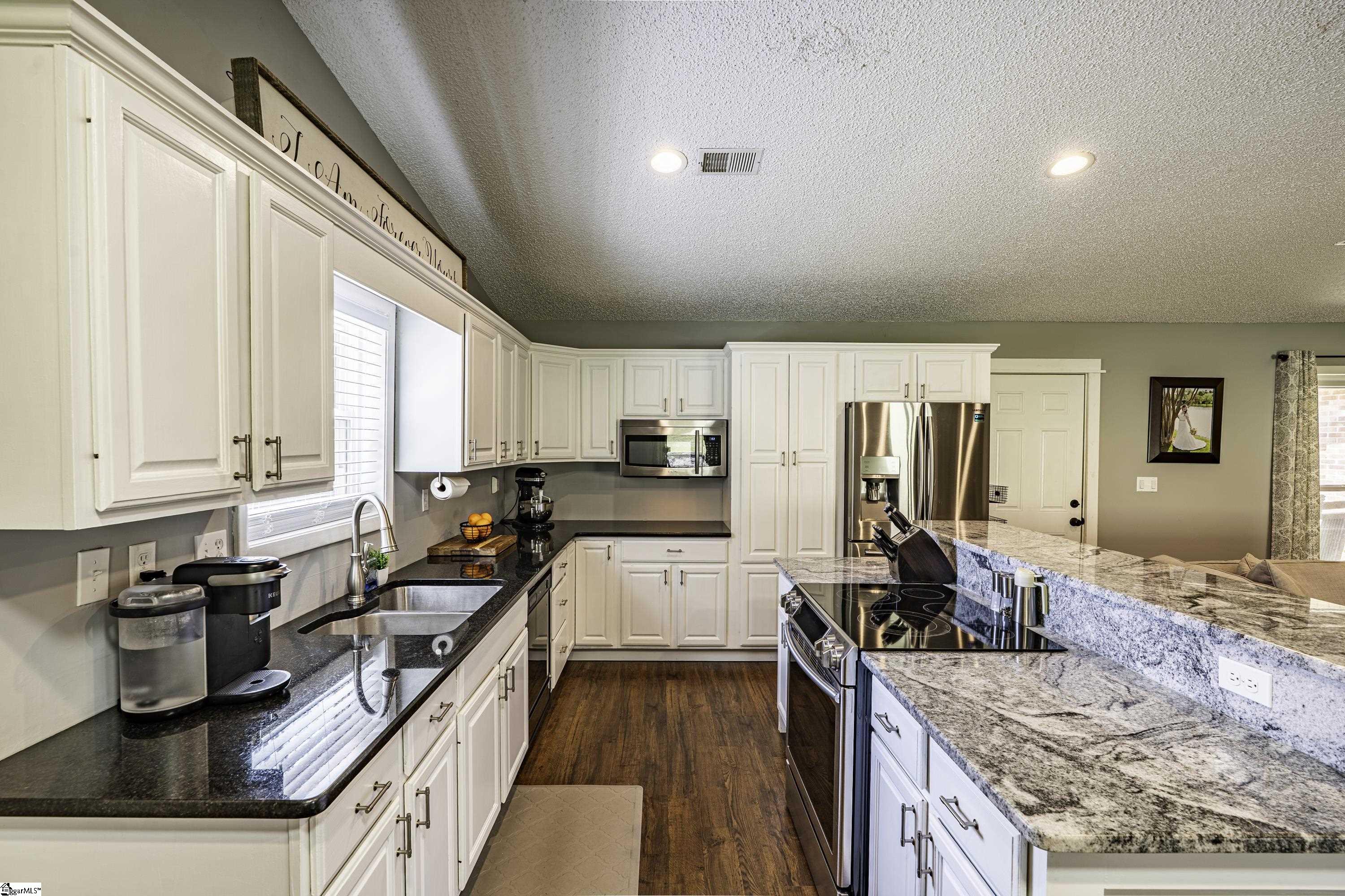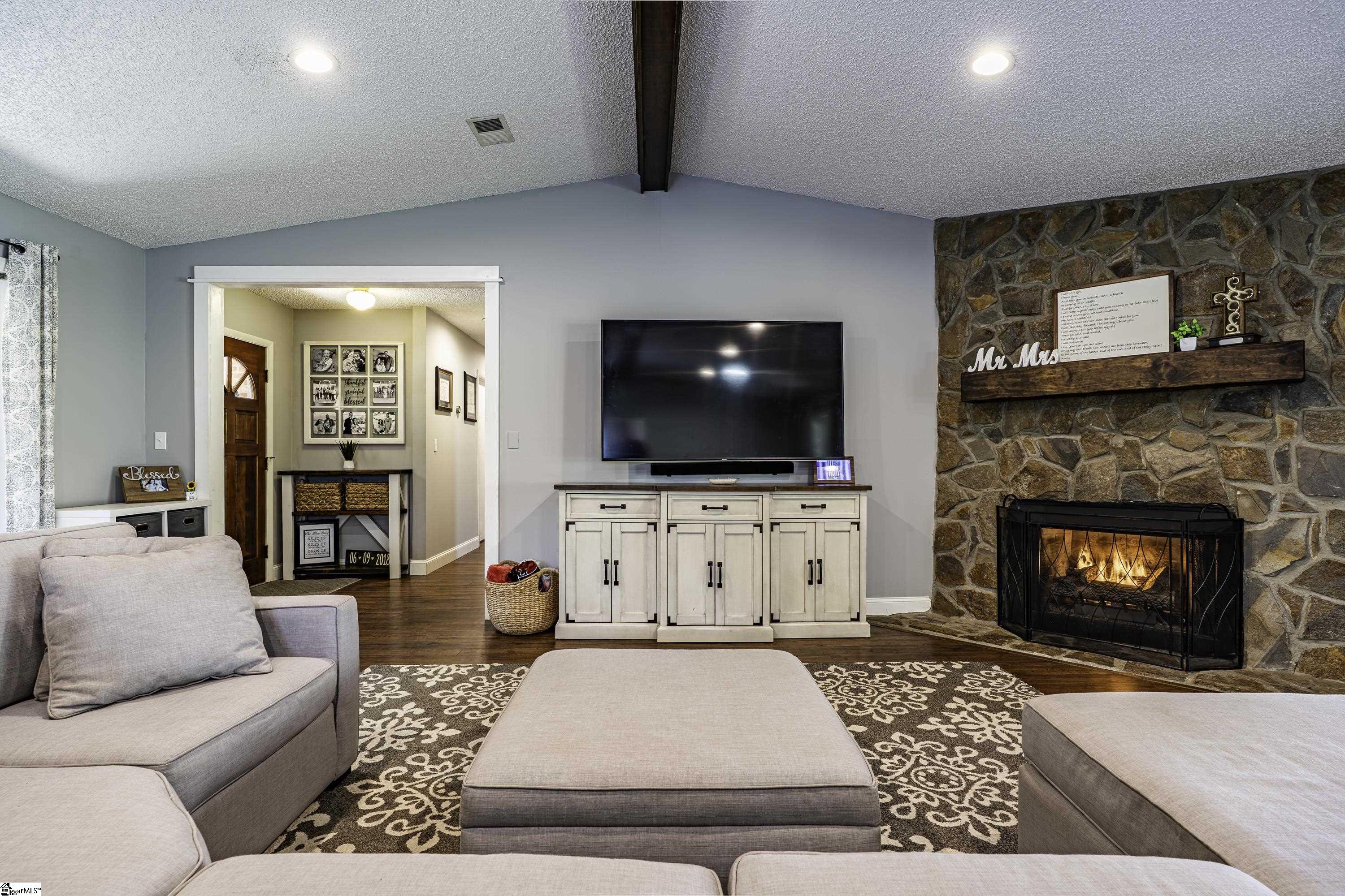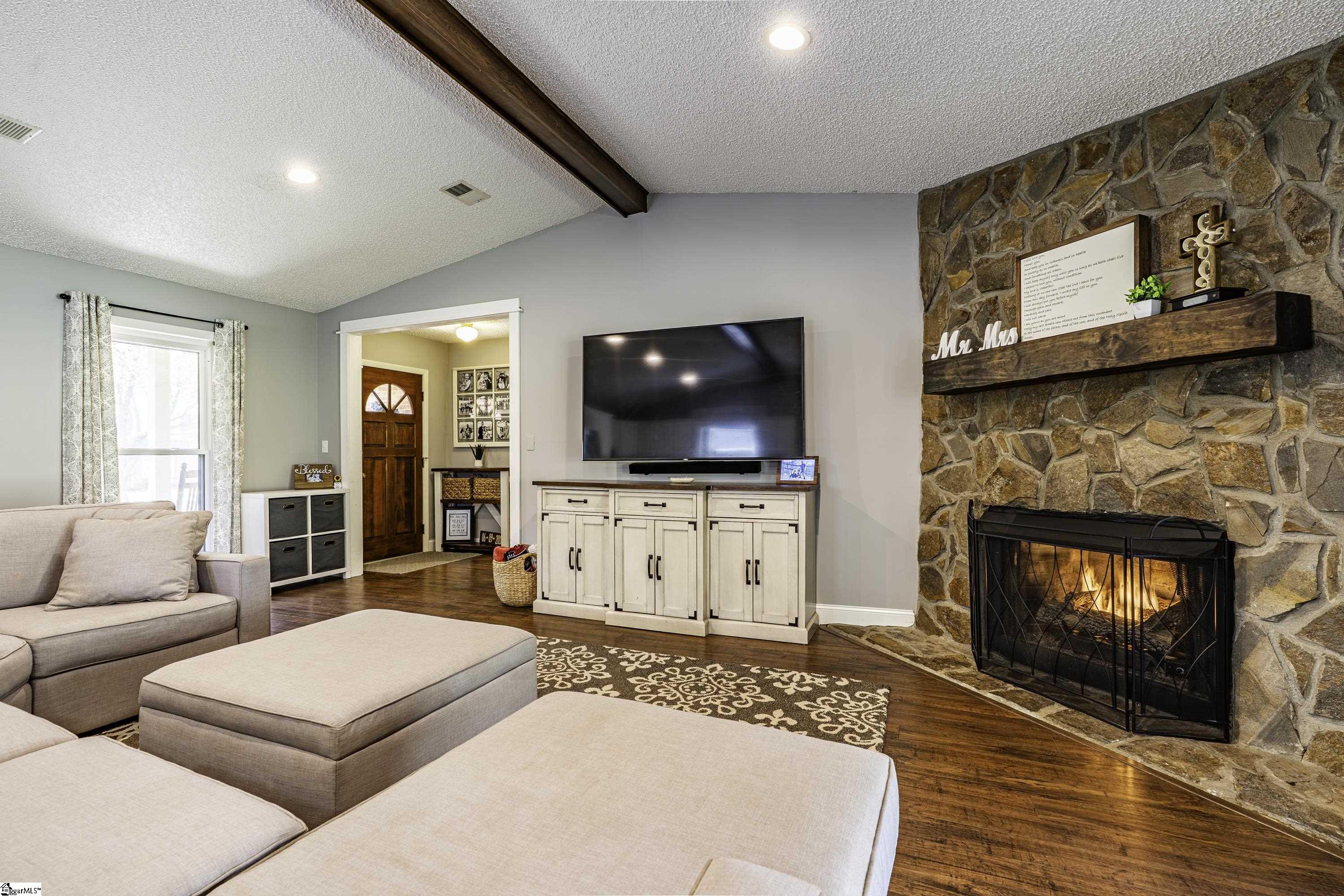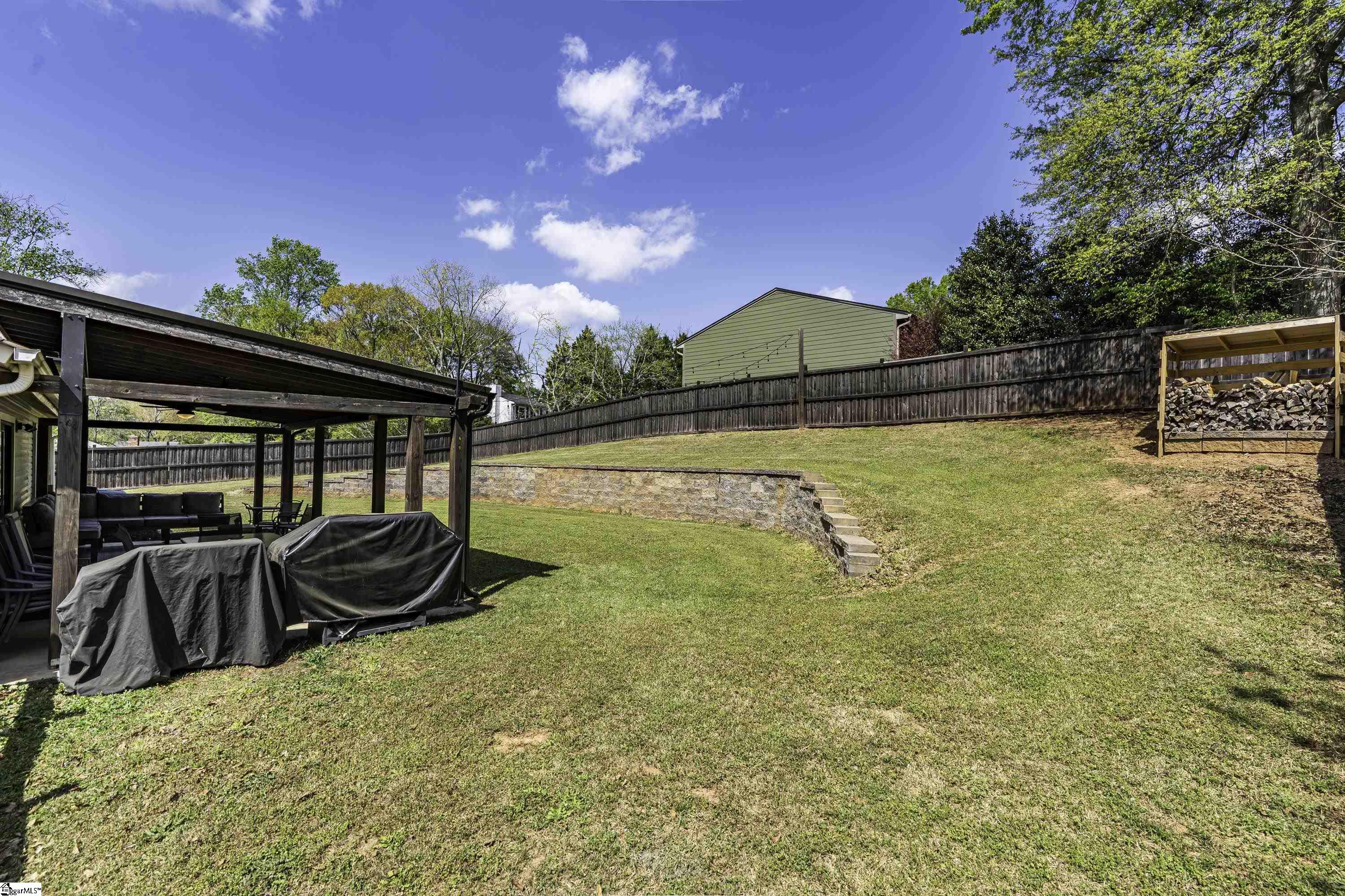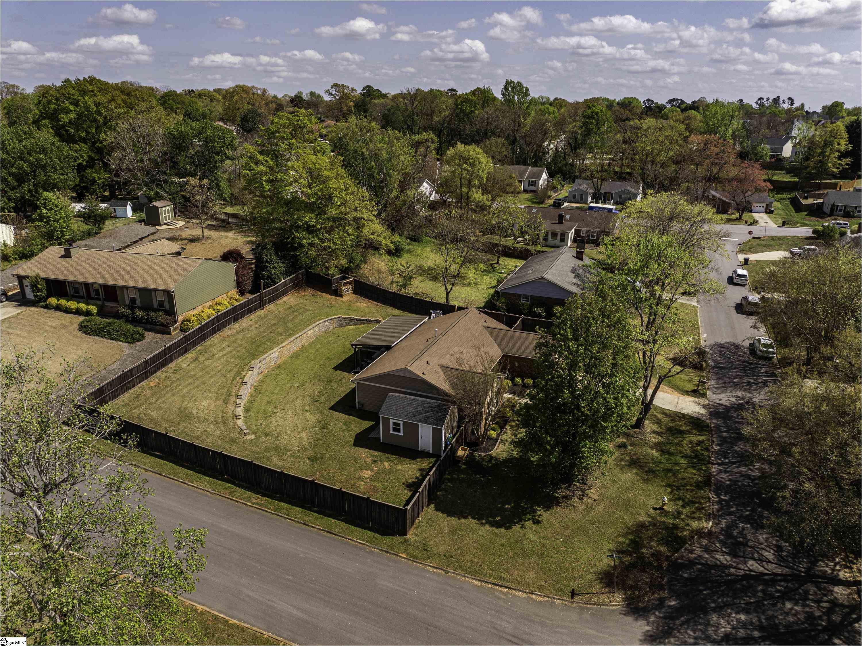 GREAT LOCATION. GREAT SCHOOLS. This charming one-level home is located on a spacious corner lot in Westminster Village. Perfectly situated between Pelham and Hudson Road, this property is adjacent to the Devenger subdivisions and just 15 minutes from Downtown Greenville. The interior features a bright, open floor plan with numerous updates. The newly renovated kitchen is equipped with an abundance of cabinets, granite countertops and stainless steel appliances, flowing seamlessly into the spacious dining area and a living room centered around a large rock fireplace with gas logs, a vaulted ceiling and stained wooden beam. The large primary suite includes a bath with tiled shower, two closets, one of which is a walk-in, while two additional bedrooms share a well-appointed hall bath. The outdoor living space is a standout feature, offering a fully fenced backyard sanctuary, a 31×14 covered patio, a sliding safety fence that surrounds the side yard area and can be easily opened up. Additionally, there is a beautiful retaining wall, plenty of space for a fire pit, entertaining, playground and gardening. For extra storage, there is a very nice 176 square foot storage shed which matches the home. Easy access to I-385, I-85, Greenville, local shopping and restaurants. Don’t miss out. This home will not last long!