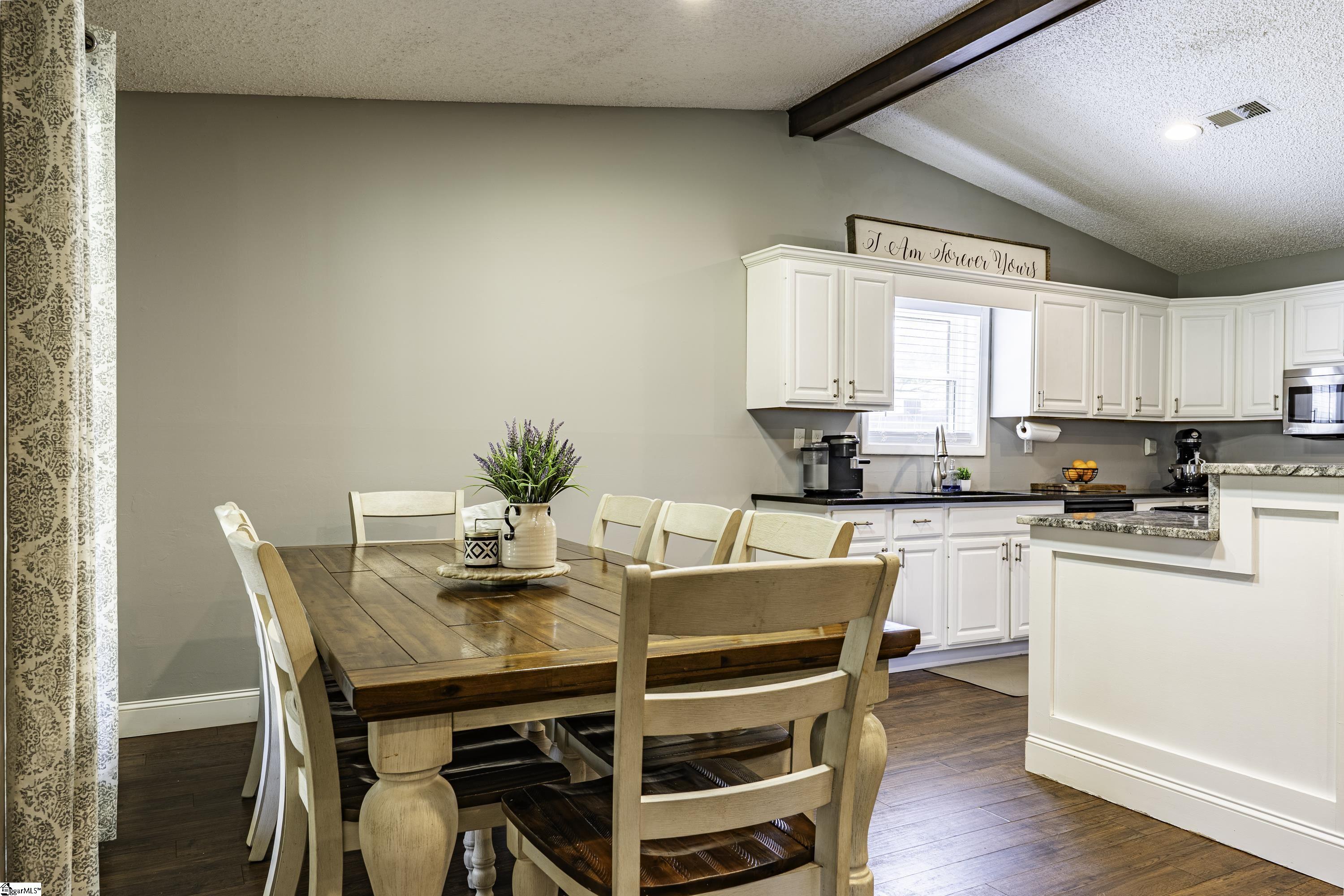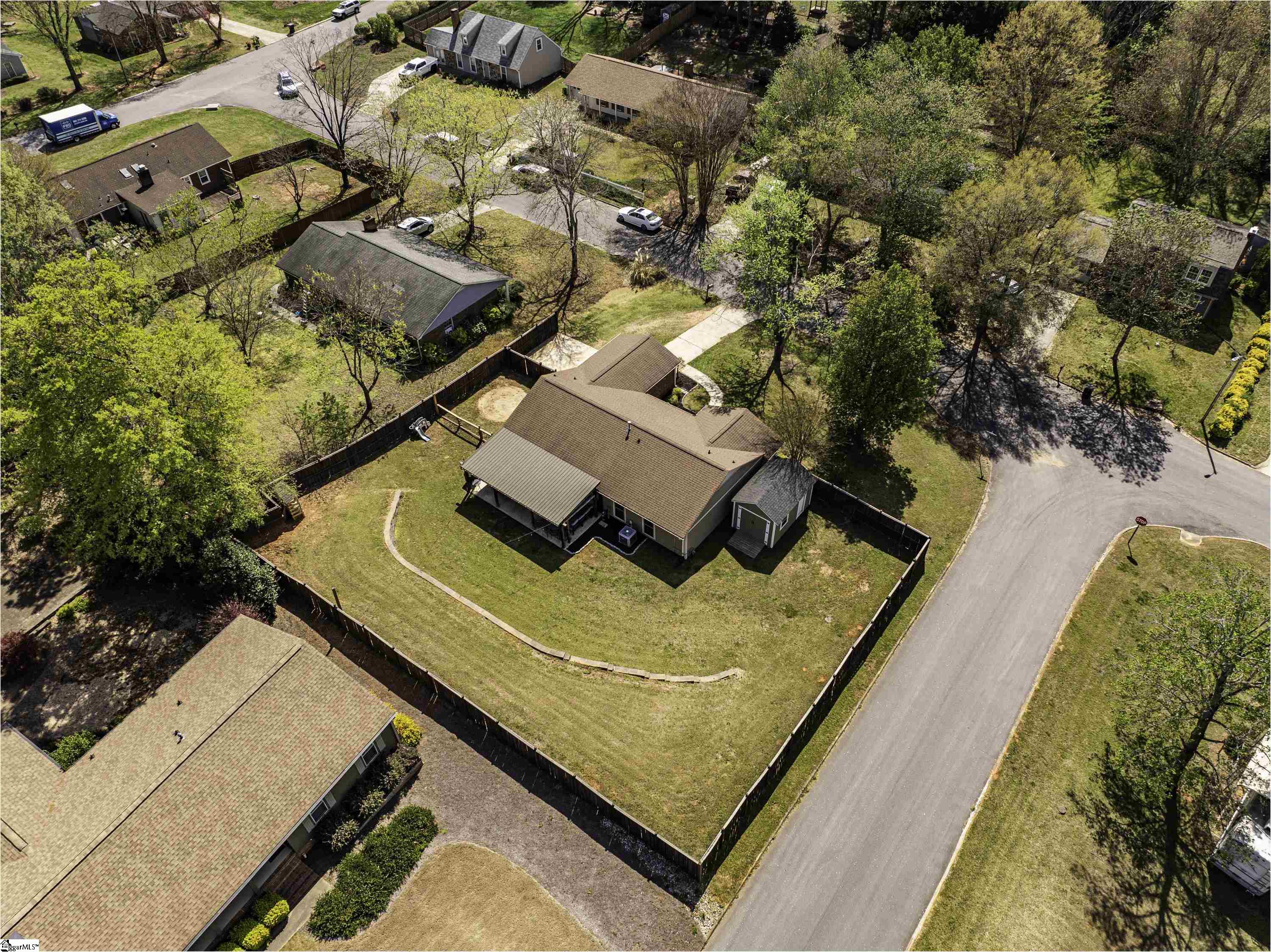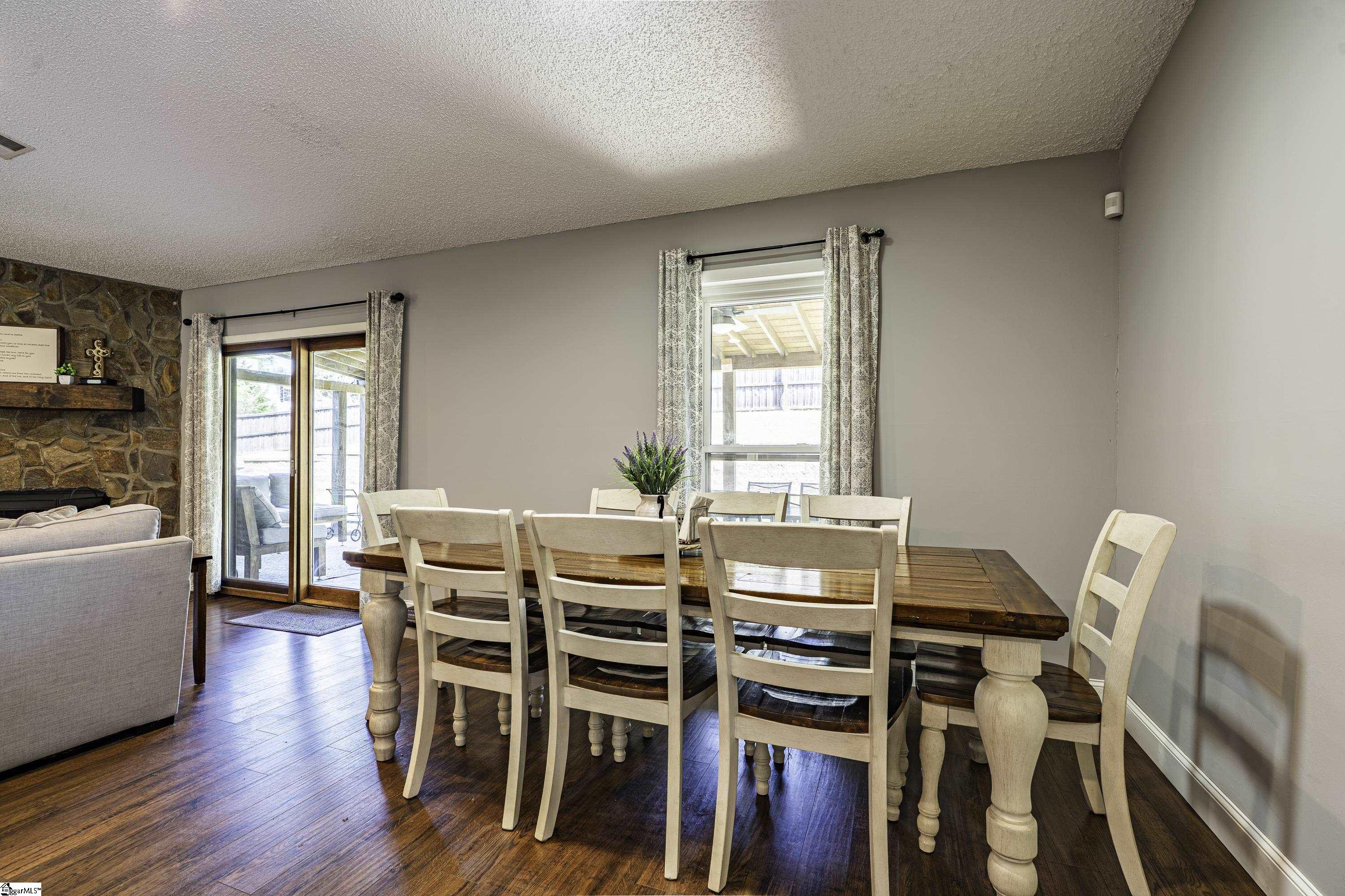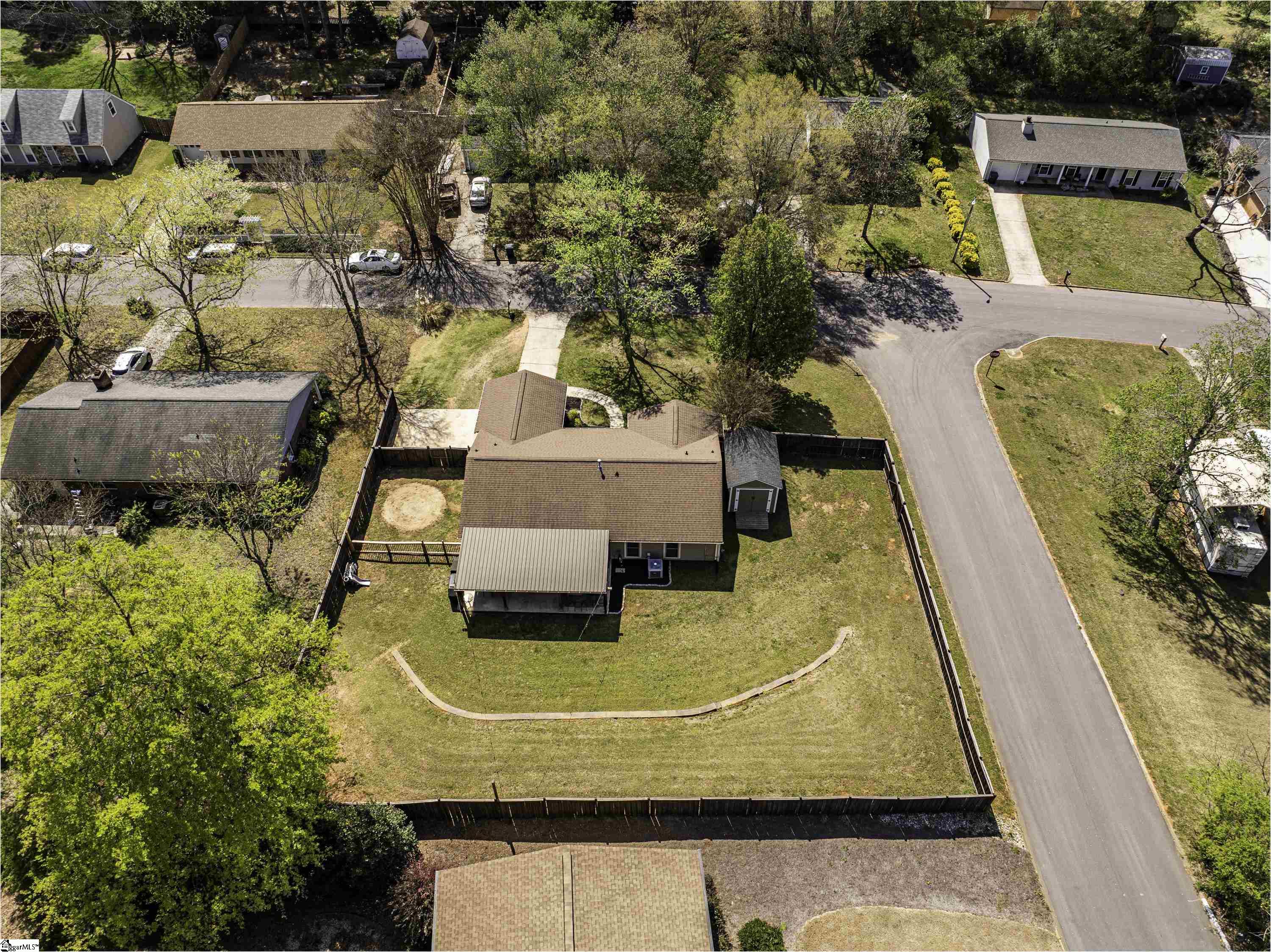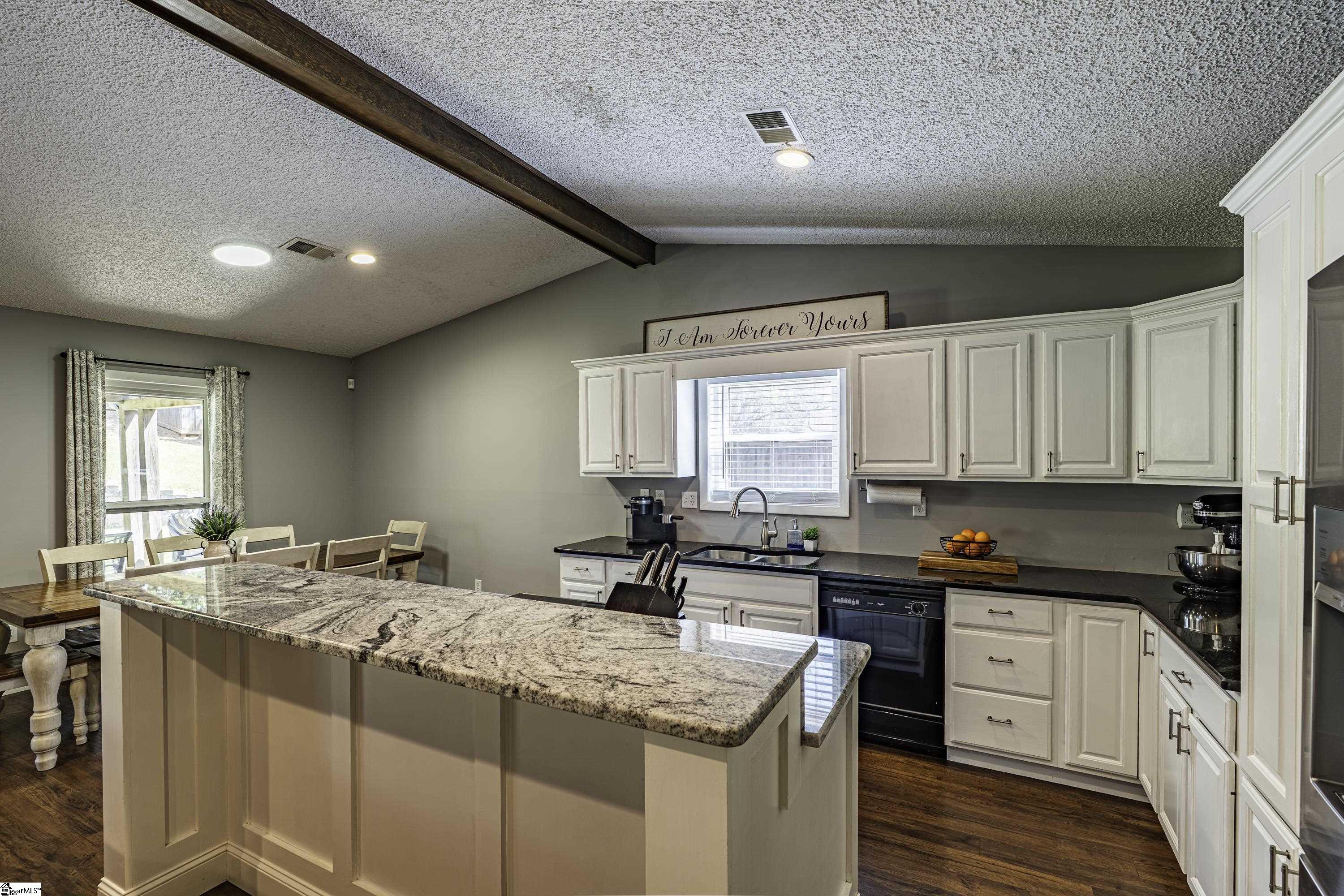 GREAT LOCATION. GREAT SCHOOLS. This charming one-level home is located on a spacious corner lot in Westminster Village. Perfectly situated between Pelham and Hudson Road, this property is adjacent to the Devenger subdivisions and just 15 minutes from Downtown Greenville. The interior features a bright, open floor plan with numerous updates. The newly renovated kitchen is equipped with an abundance of cabinets, granite countertops and stainless steel appliances, flowing seamlessly into the spacious dining area and a living room centered around a large rock fireplace with gas logs, a vaulted ceiling and stained wooden beam. The large primary suite includes a bath with tiled shower, two closets, one of which is a walk-in, while two additional bedrooms share a well-appointed hall bath. The outdoor living space is a standout feature, offering a fully fenced backyard sanctuary, a 31×14 covered patio, a sliding safety fence that surrounds the side yard area and can be easily opened up. Additionally, there is a beautiful retaining wall, plenty of space for a fire pit, entertaining, playground and gardening. For extra storage, there is a very nice 176 square foot storage shed which matches the home. Easy access to I-385, I-85, Greenville, local shopping and restaurants. Don’t miss out. This home will not last long!