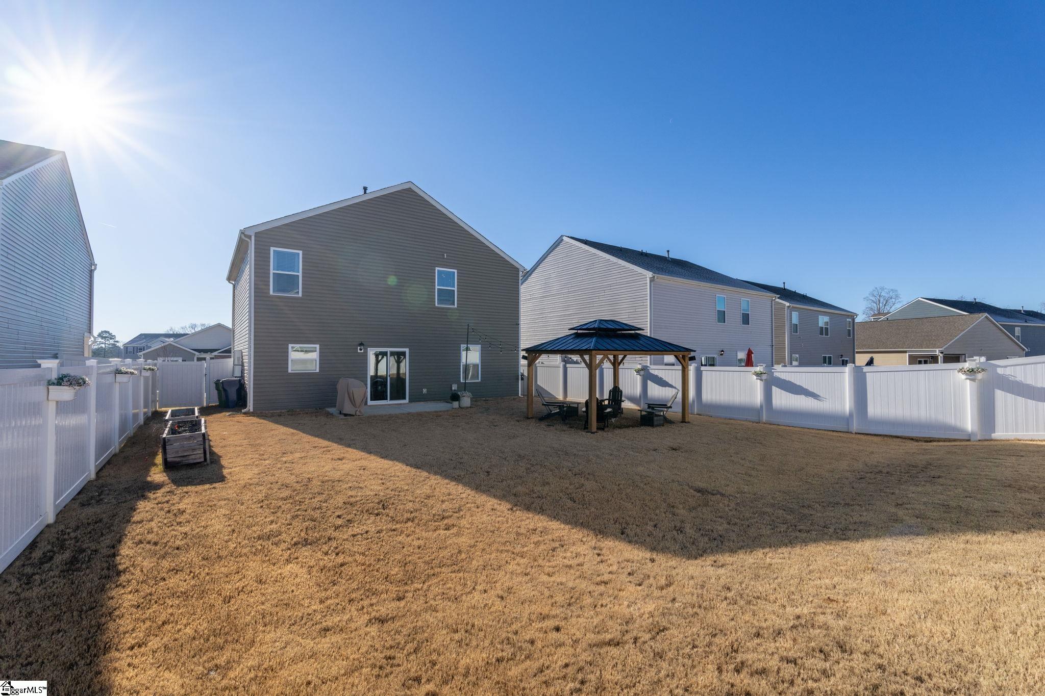 Welcome to this beautifully maintained 3 bedroom, 2.5 bath home in the Chestnut Ridge neighborhood. Offering nearly 1,900 sq ft of inviting living space, this home blends modern updates, comfort, and everyday functionality. The main level features an open-concept layout filled with natural light. The living and dining areas flow seamlessly into the kitchen, creating an effortless space for hosting and everyday living. Throughout the home, you’ll find updated lighting fixtures, stylish trimwork, and accent walls that elevate the overall look and feel. Upstairs, the spacious primary suite features a generous walk-in closet and private ensuite. Two additional bedrooms share a well-appointed hall bath, and a convenient half bath is located on the main level for guests. Step outside to a fully fenced-in backyard, perfect for pets, play, or outdoor entertaining. A charming gazebo anchors the space, offering the ideal spot for relaxing, dining, or enjoying quiet evenings at home .Residents enjoy top-notch neighborhood amenities, including a community pool, playground, cabana, pickleball courts, and volleyball courts, a true lifestyle community with something for everyone. Why wait to build when this nearly new home is completely move-in ready? Located just 20 minutes from vibrant Downtown Greenville, you’ll love the convenience, comfort, and value this home offers. Schedule your private showing today!