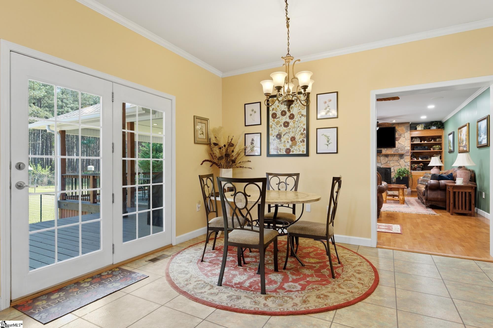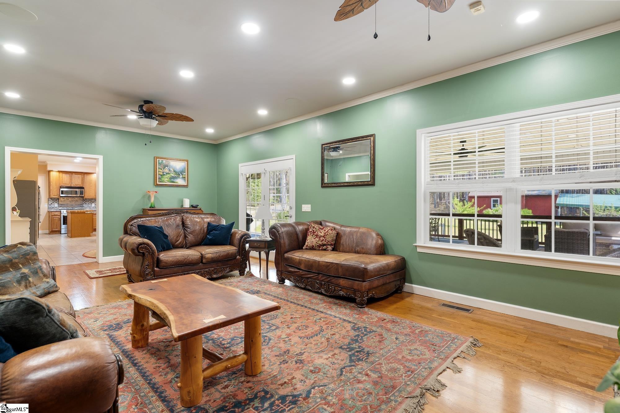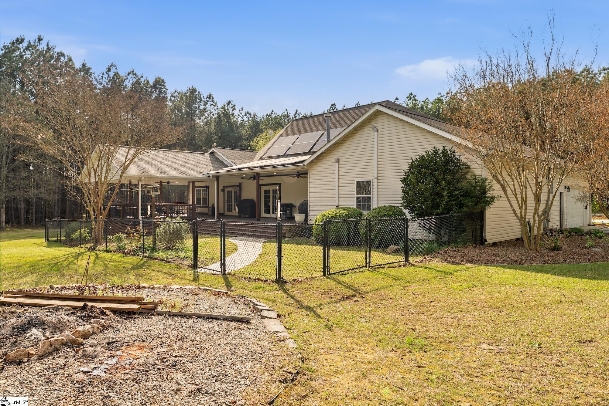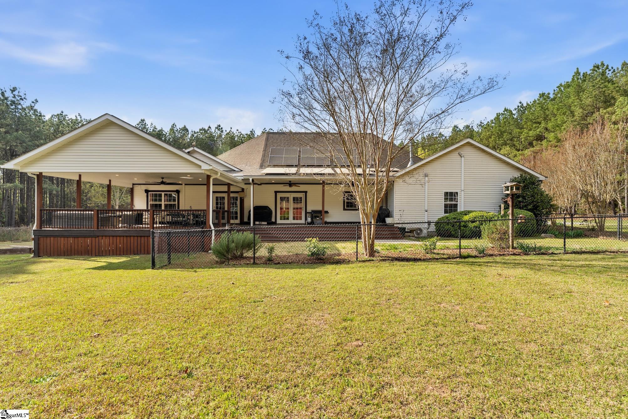 Welcome to your own private, gated estate at 105 Greenville Church Road in Donalds where space, freedom, and lifestyle come together on nearly 15 picturesque acres in the peaceful countryside. From the moment you arrive, the gated entrance and fully paved, tree-lined driveway create an immediate sense of privacy and exclusivity. Tastefully upgraded throughout, this property offers a spacious and well-designed layout that blends modern comfort with the beauty and functionality of country living. Spanning 3,544 square feet, the home is complemented by an additional 480 square feet of thoughtfully finished upper-level space with charming sloped ceilings; ideal for a private retreat, studio, or flex living area. This expansive home features 5 bedrooms and 3 bathrooms, offering both comfort and flexibility for a variety of living arrangements. Inside, you will find a warm and inviting layout with hardwood floors flowing through spacious living areas anchored by 2 stunning fireplaces with gas logs. The kitchen serves as the heart of the home with granite countertops, a walk-in pantry, bar seating, and a charming breakfast area ideal for everyday living and entertaining. The main level primary suite offers a private retreat with its own door leading to the deck, a cozy fireplace, and a spacious primary bath featuring dual vanities, an oversized walk-in shower, and a generous walk-in closet designed for comfort and functionality. Upstairs has been fully finished to include a large bedroom, full bath, expansive storage room with new cabinetry, and a versatile flex space perfect for a media room, music studio, playroom, or additional lounge area. Outdoor living takes center stage with a truly impressive covered back deck spanning approximately 1,000 square feet, offering a seamless extension of the home designed for gathering, relaxing, and taking in the peaceful surroundings. The front porch has been thoughtfully updated with wood and iron accents, adding warmth and character from the moment you arrive. Set on agriculturally zoned acreage with valuable timber, no HOA, and no restrictions, this property offers both immediate enjoyment and long term flexibility. The land is rich with established vegetation including myrtle trees, birchwood trees, pine trees, hydrangeas, blueberry bushes, peach, muscadine, and apricot, creating a setting that is both beautiful and functional. A fenced area provides space for dogs to roam, while a chicken coop, shed, RV parking, and additional outbuilding with carport support a versatile country lifestyle. For those needing space for vehicles, hobbies, or equipment, the property features a four car detached garage and shop with commercial lighting, water access, and expanded concrete flooring including an additional 25×25 section, along with a two car attached garage for a total of six covered parking spaces. A 16KW solar system owned outright, offering long term energy efficiency and savings. Despite its private setting, the property is conveniently located approximately 48 miles from Greenville-Spartanburg International Airport, 43 miles to Falls Park on the Reedy in downtown Greenville, about 23 minutes to downtown Greenwood, and just 25 miles to Lake Greenwood for boating and outdoor recreation. This is more than a home, it is a lifestyle property offering space, versatility, natural beauty, and the freedom to create your own vision.