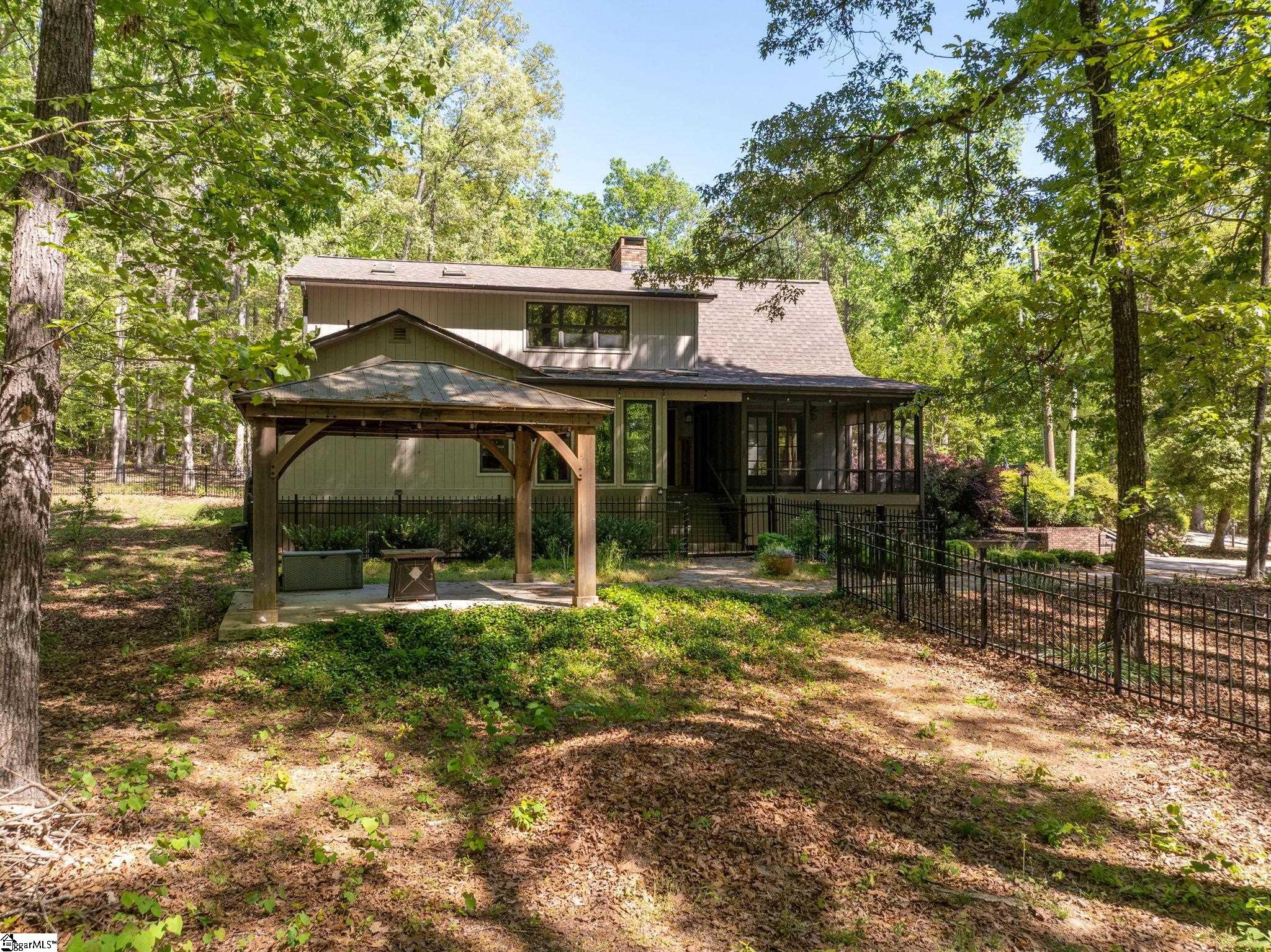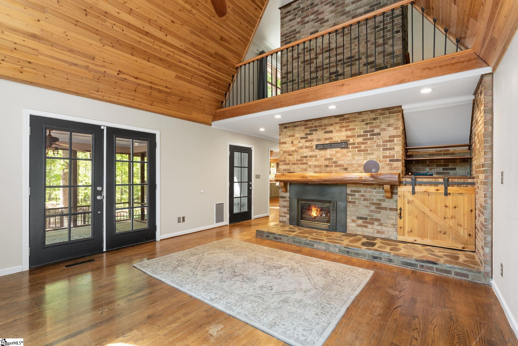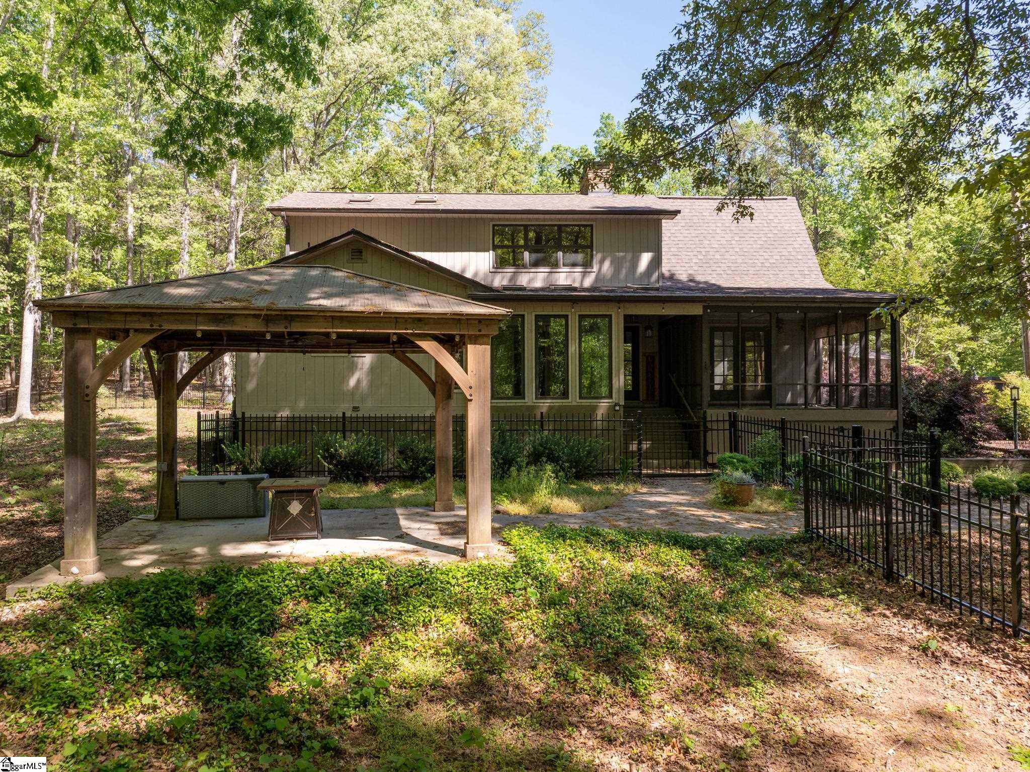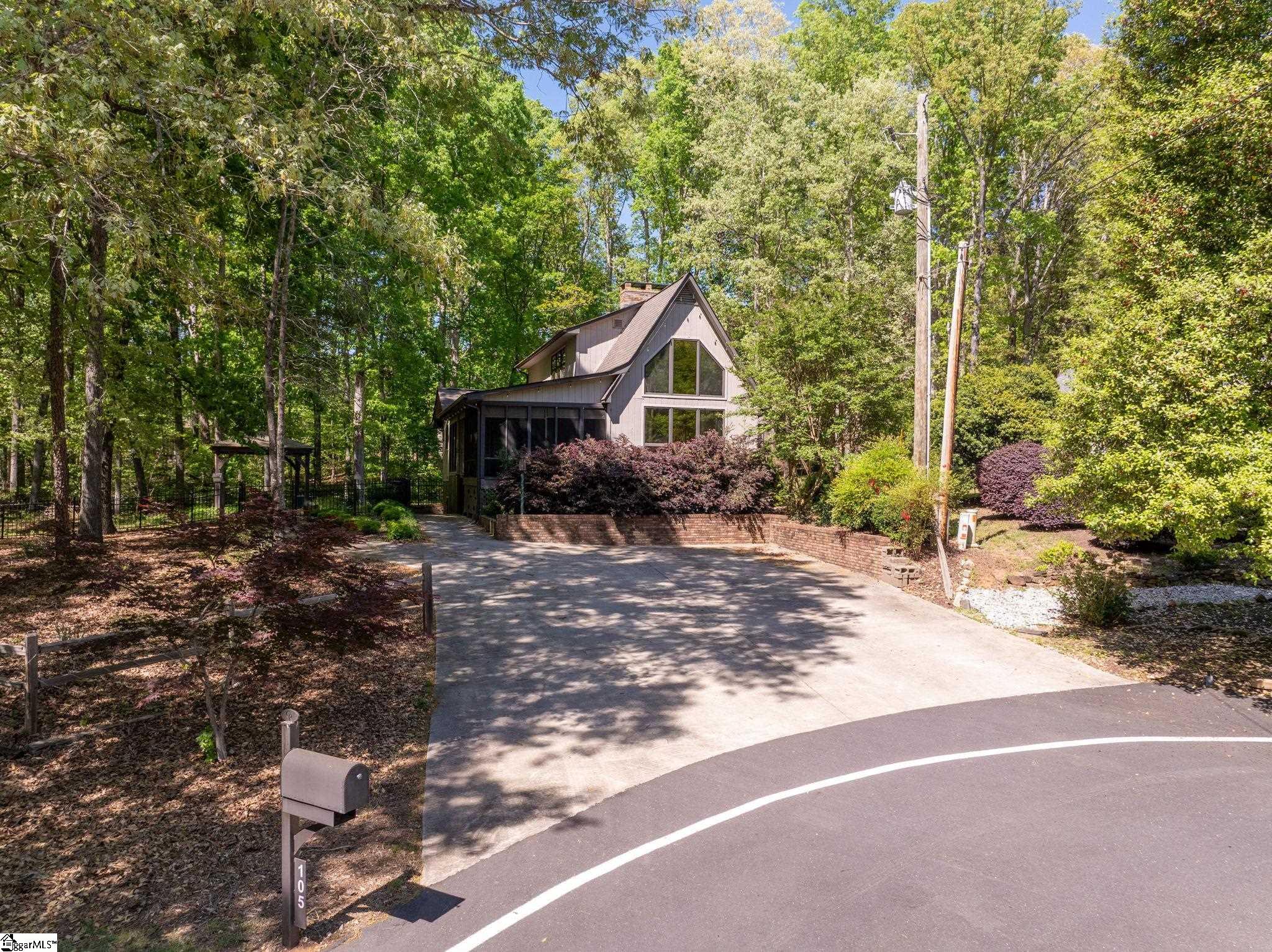 Nestled within the prestigious gated community of Chickasaw Point, 105 Spoon Ct. is a captivating two-story lake house that perfectly balances rustic charm with modern elegance. The heart of the home features a stunning living room, anchored by a two-story brick fireplace with a rustic wood mantle and matching stone hearth, all set beneath soaring vaulted wood-tongue-and-groove ceilings and gleaming hardwood floors. Culinary enthusiasts will adore the large kitchen, which boasts granite countertops, a tile backsplash, premium black stainless steel KitchenAid appliances, a separate island, and a formal dining room situated just off the main cooking area. The expansive primary suite on the main level offers a private retreat, featuring French doors that lead directly to an intimate outdoor area with a step-down hot tub. The main floor is completed by a functional laundry room and a flexible utility space, while the upper level provides a large, private bedroom with its own full bathroom. The exterior of the property is just as inviting, offering a charming iron-fenced yard and a picturesque gazebo perfect for quiet afternoons. Living in Chickasaw Point means embracing an active lifestyle with unparalleled amenities, including lake access, a marina, golf, tennis courts, a pool, walking trails, a playground, and more! Whether you are spending the day on Lake Hartwell or enjoying a meal at the Overlook Restaurant with breathtaking water views, this home offers a unique opportunity to live where you play.