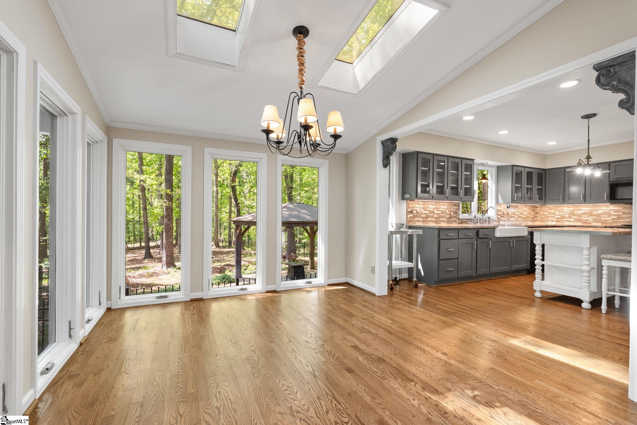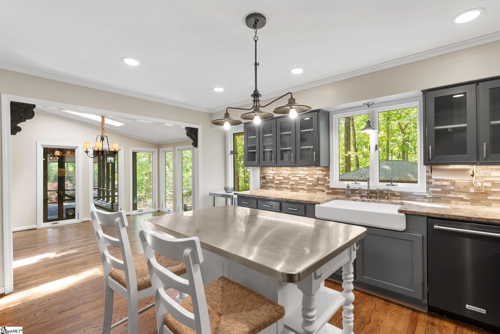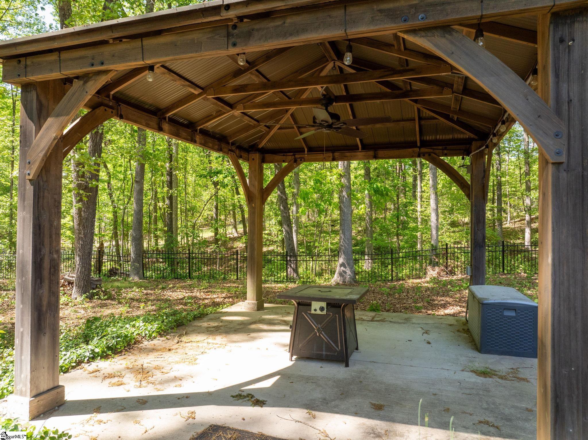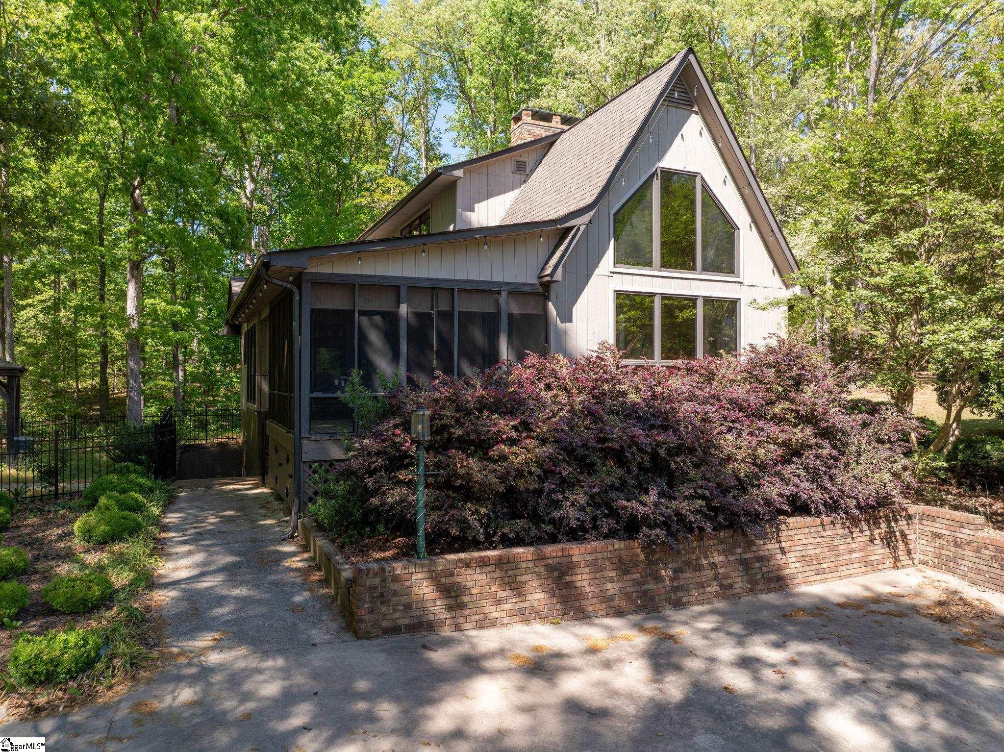 Nestled within the prestigious gated community of Chickasaw Point, 105 Spoon Ct. is a captivating two-story lake house that perfectly balances rustic charm with modern elegance. The heart of the home features a stunning living room, anchored by a two-story brick fireplace with a rustic wood mantle and matching stone hearth, all set beneath soaring vaulted wood-tongue-and-groove ceilings and gleaming hardwood floors. Culinary enthusiasts will adore the large kitchen, which boasts granite countertops, a tile backsplash, premium black stainless steel KitchenAid appliances, a separate island, and a formal dining room situated just off the main cooking area. The expansive primary suite on the main level offers a private retreat, featuring French doors that lead directly to an intimate outdoor area with a step-down hot tub. The main floor is completed by a functional laundry room and a flexible utility space, while the upper level provides a large, private bedroom with its own full bathroom. The exterior of the property is just as inviting, offering a charming iron-fenced yard and a picturesque gazebo perfect for quiet afternoons. Living in Chickasaw Point means embracing an active lifestyle with unparalleled amenities, including lake access, a marina, golf, tennis courts, a pool, walking trails, a playground, and more! Whether you are spending the day on Lake Hartwell or enjoying a meal at the Overlook Restaurant with breathtaking water views, this home offers a unique opportunity to live where you play.