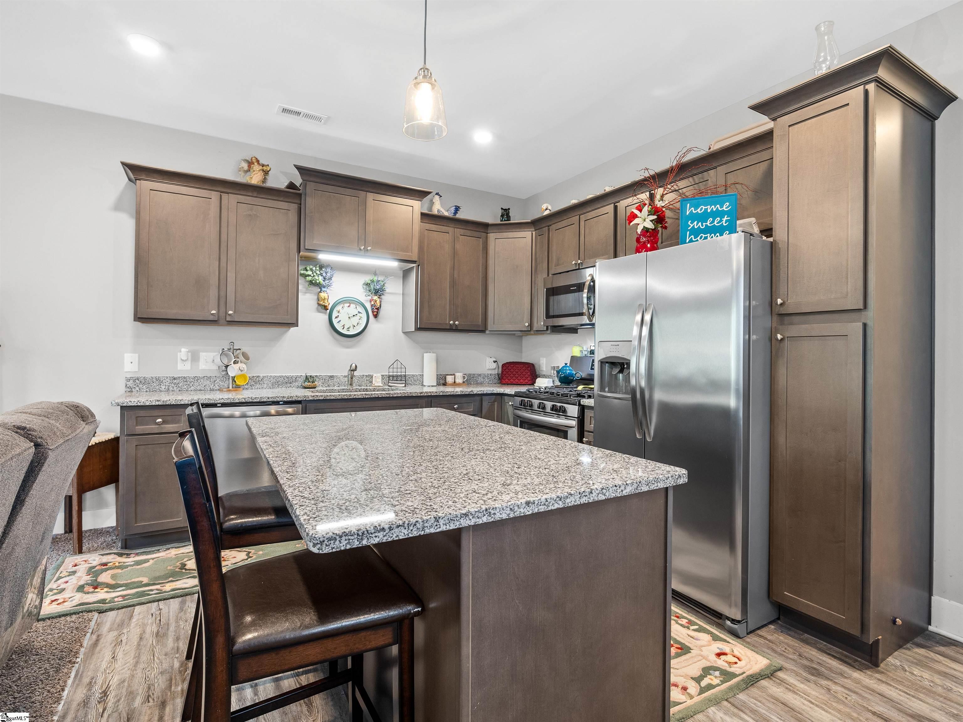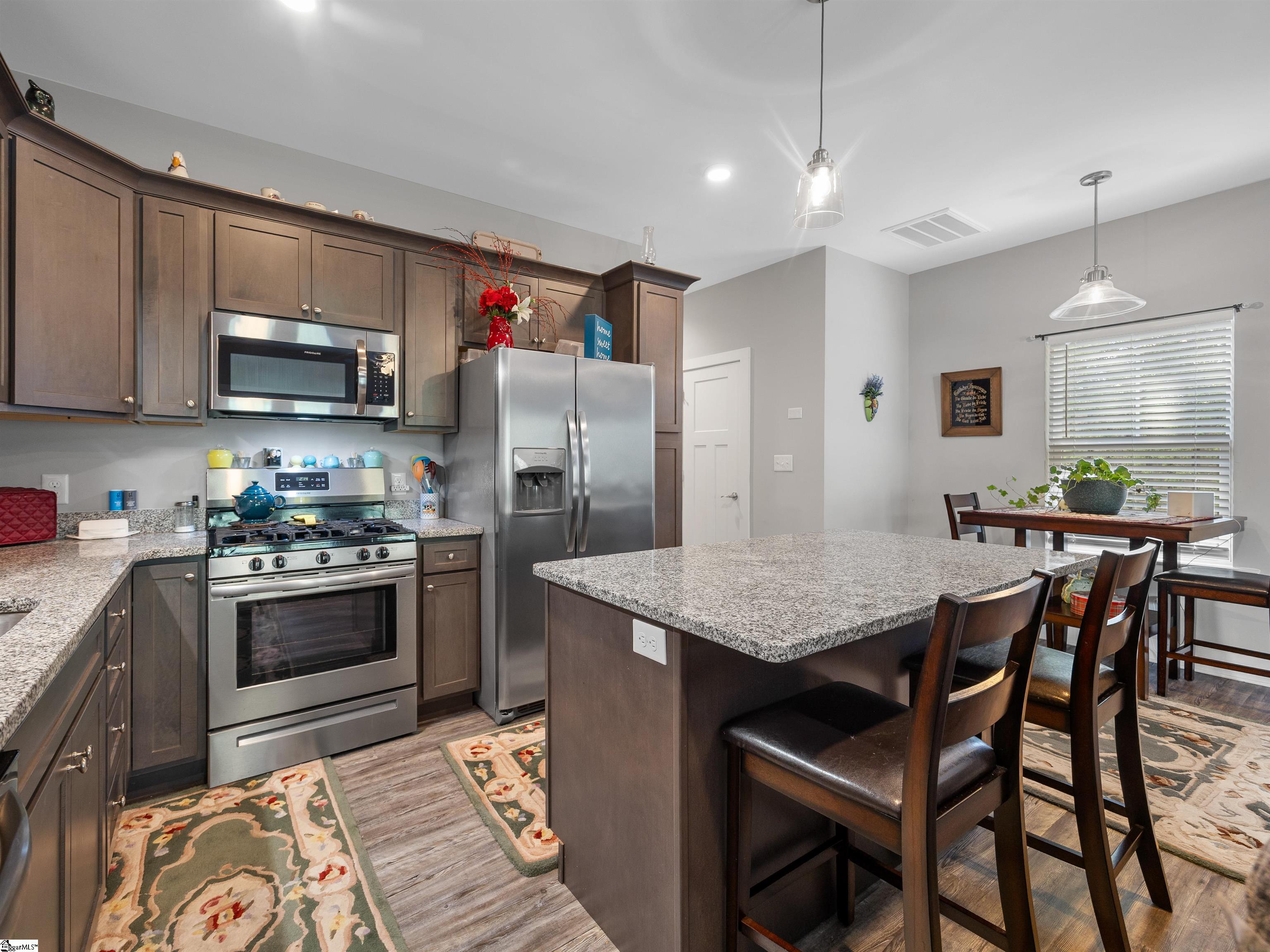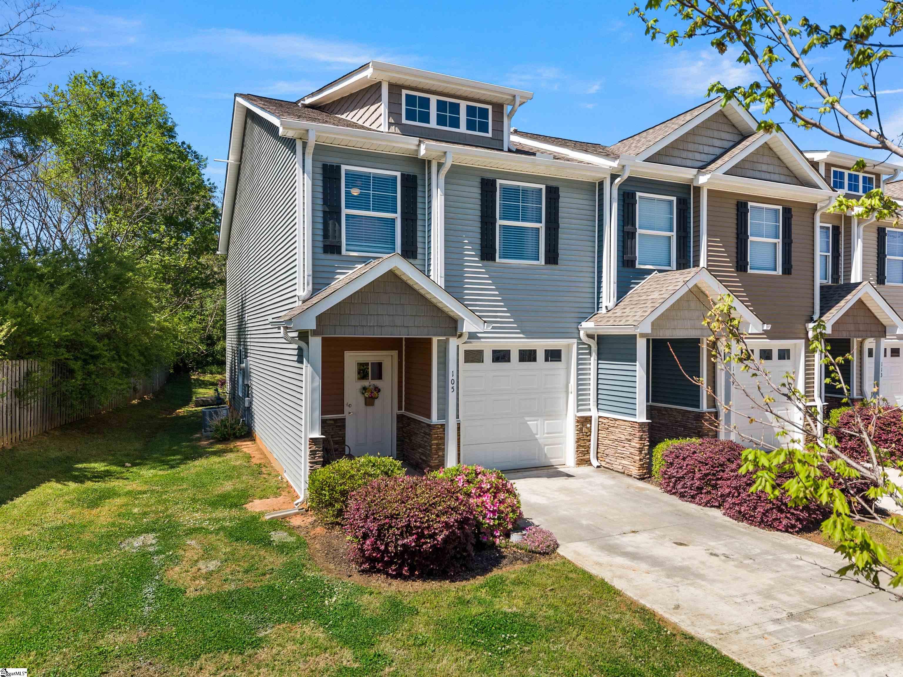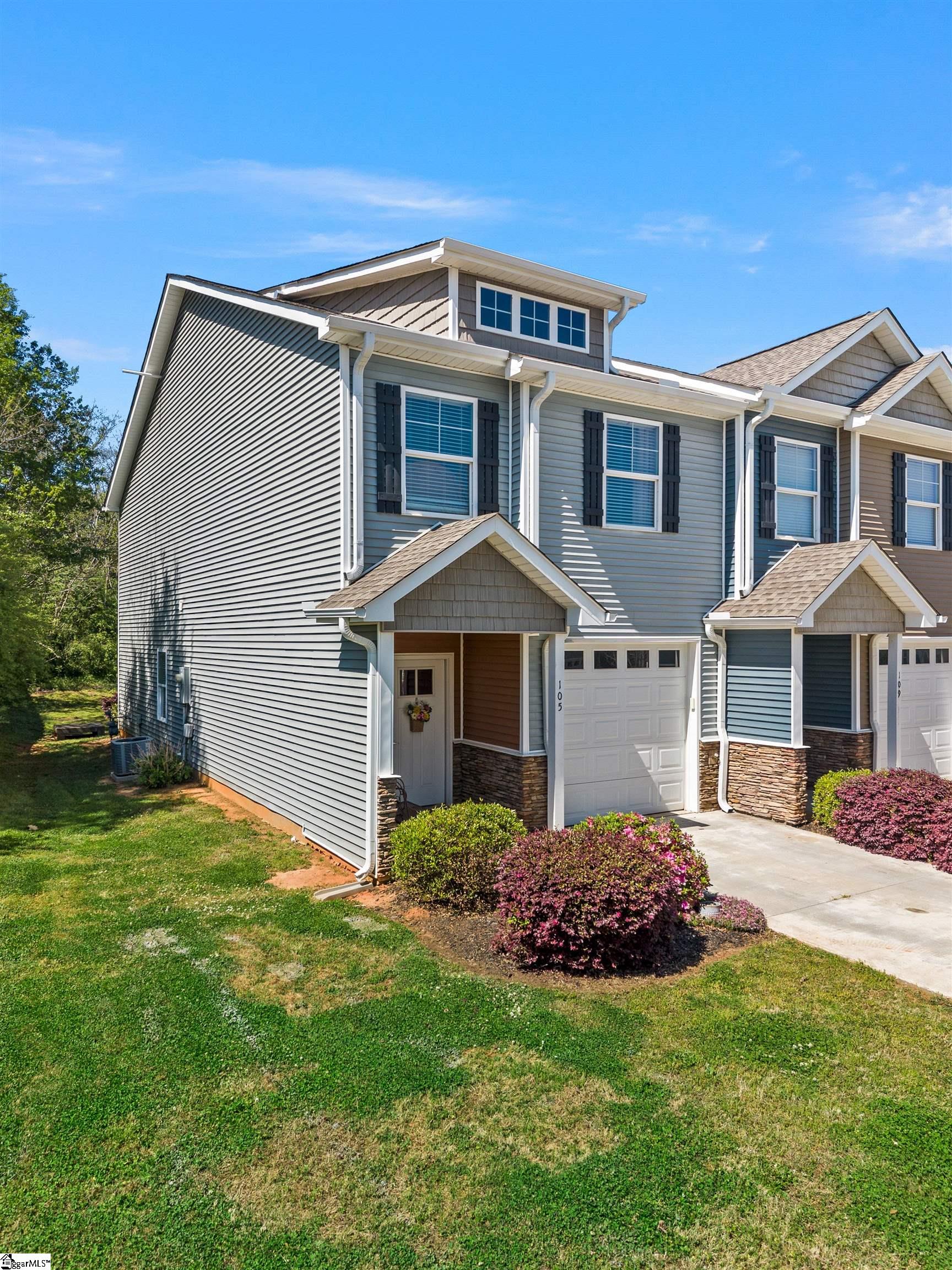 Beautifully cared for townhome in the heart of Boiling Springs offering low-maintenance living without sacrificing style or space! This 3-bedroom, 2.5-bath home features approximately 1,561 square feet and an inviting open floor plan on the main level—perfect for everyday living and entertaining. The kitchen is well-appointed with granite countertops, a gas range, and stainless steel appliances, flowing seamlessly into the living, island seating, and a dining area. Additional main-level highlights include durable vinyl plank flooring, a convenient half bath, and a tankless water heater for efficiency. Upstairs, you’ll find a thoughtfully designed split-bedroom layout with two full bathrooms and a centrally located laundry area. The spacious primary suite boasts a trey ceiling, walk-in closet, and private bath, while the second bedroom also features its own walk-in closet. Carpet and padding on the second level are in like-new condition. Storage is abundant with attic space, an under-stair cubby, and a garage. Situated on a desirable corner end lot bordered by trees, this home offers added privacy and a peaceful setting. Enjoy all the benefits of homeownership without the upkeep—HOA covers exterior maintenance, lawn care, street lights, and termite treatment. Conveniently located off Highway 9 with easy access to I-85, I-26, and downtown Spartanburg, this move-in ready home combines comfort, convenience, and low-maintenance living. Don’t miss your opportunity to make it yours!