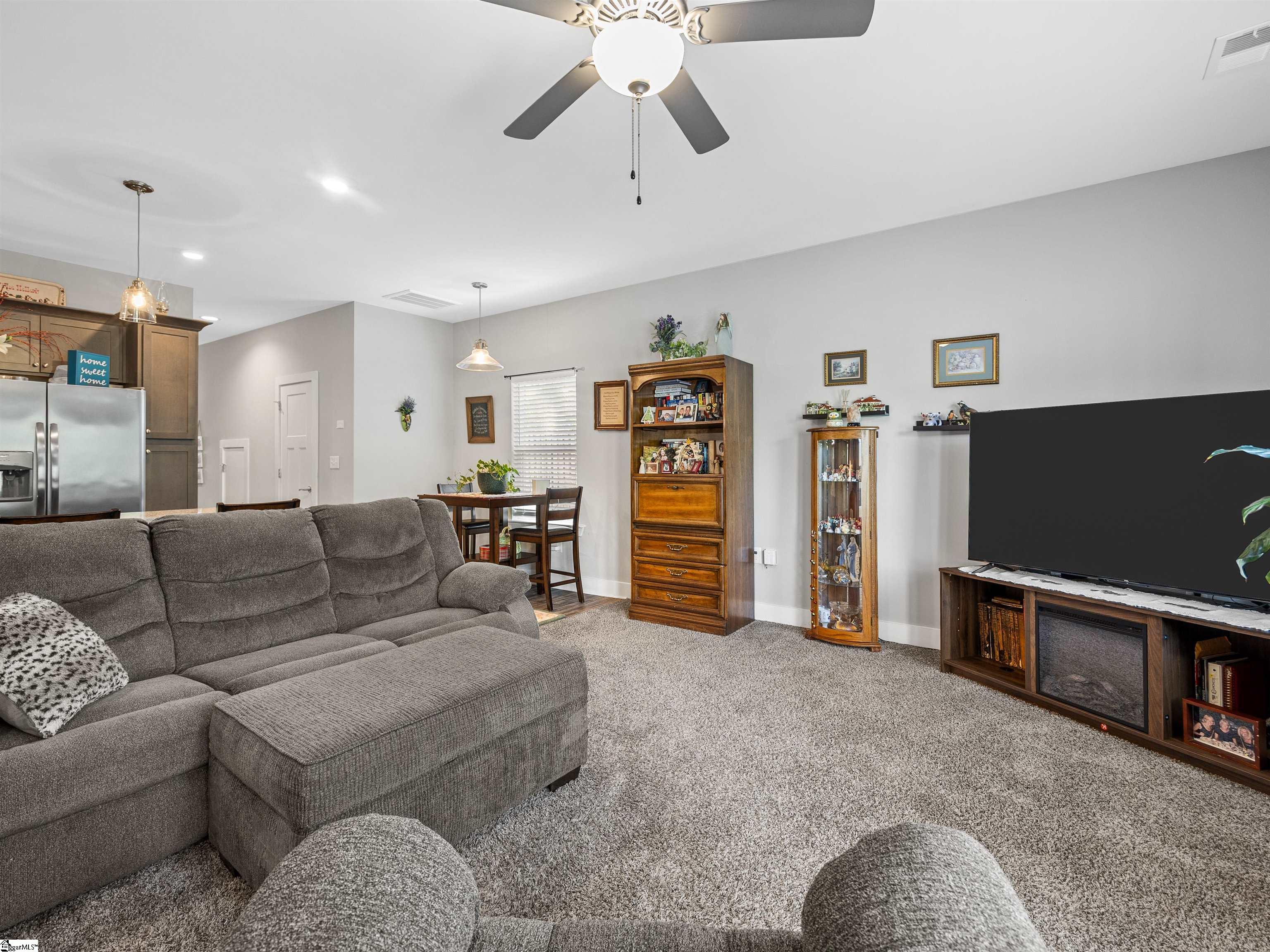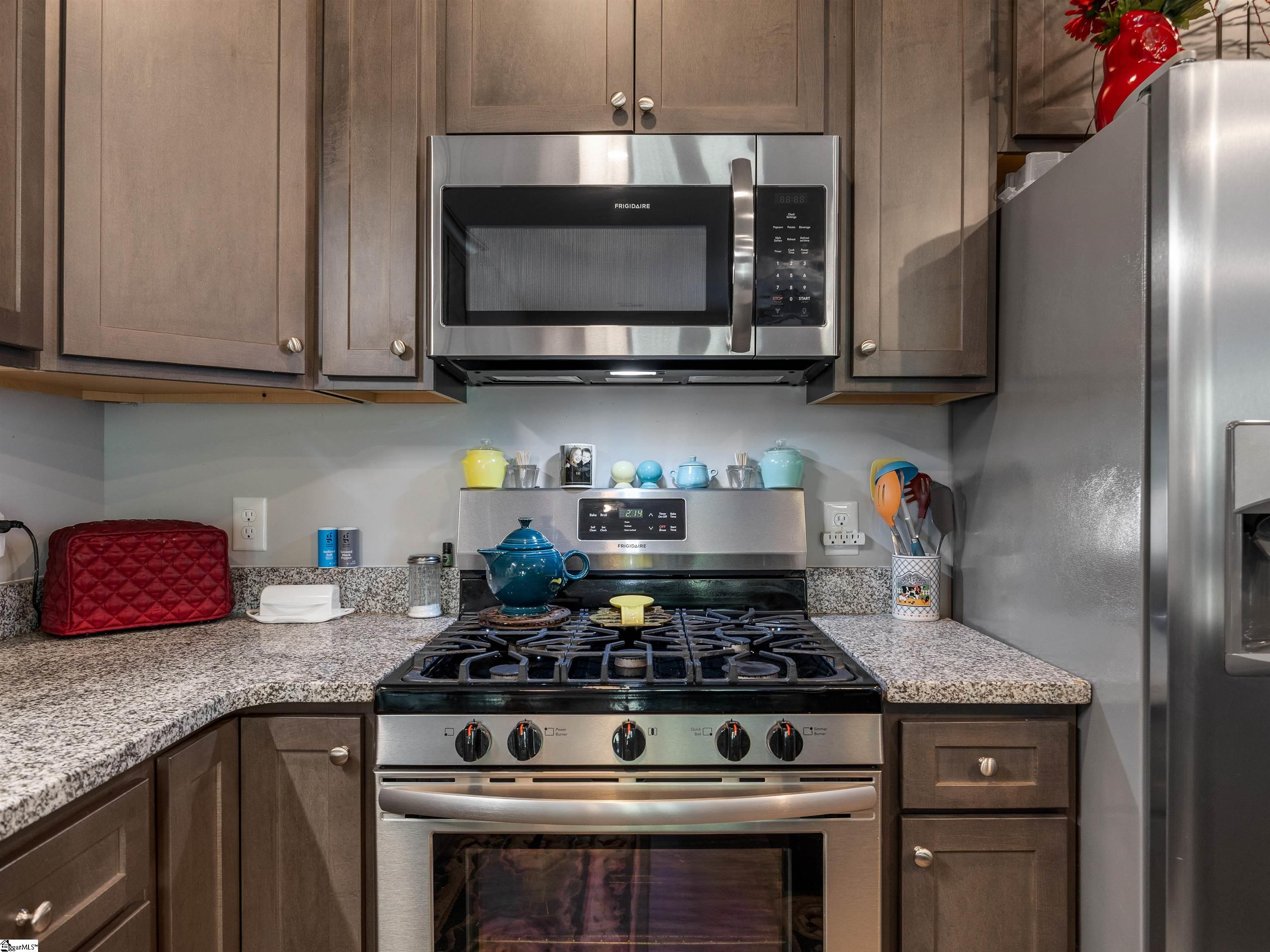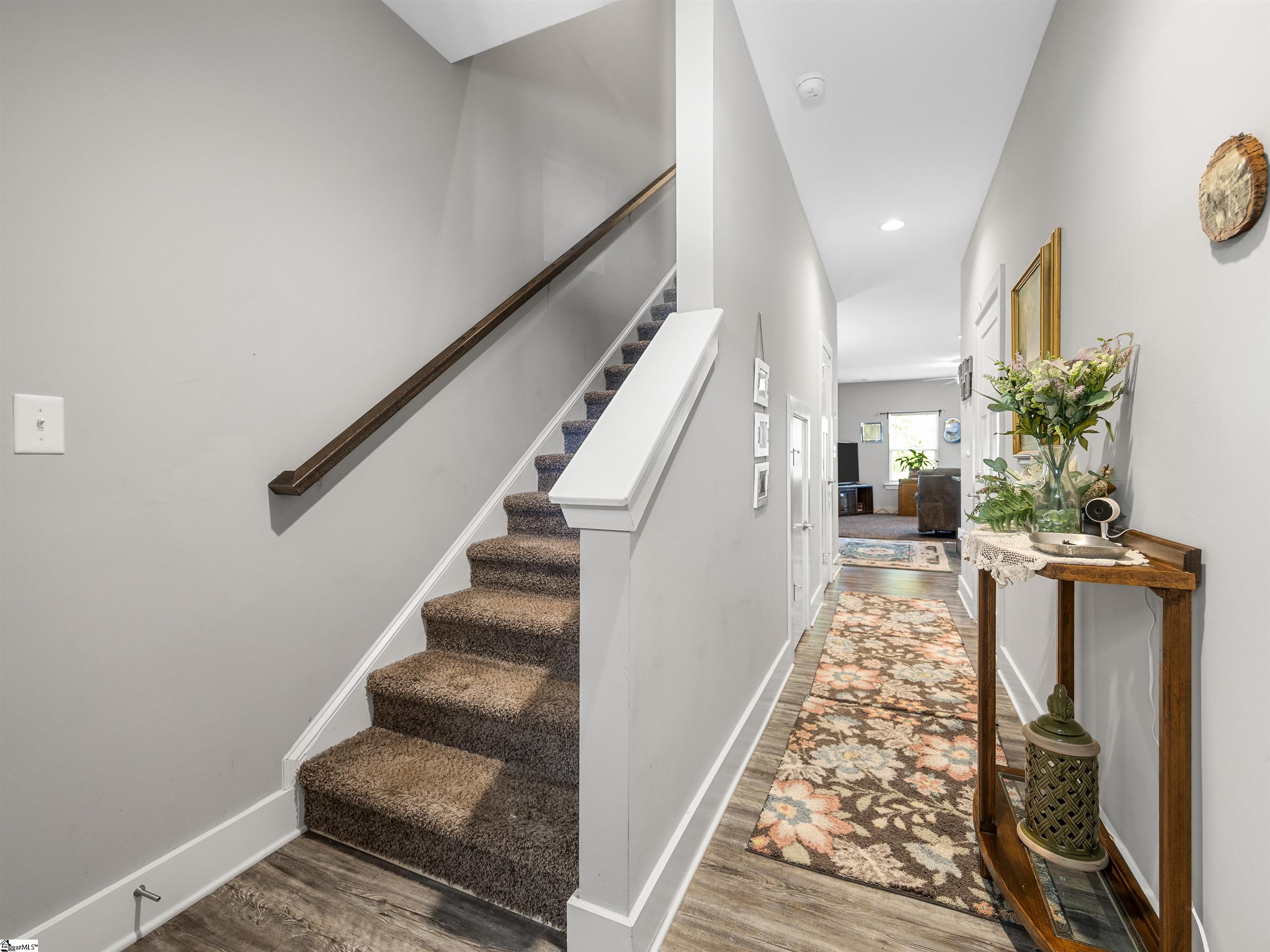 Beautifully cared for townhome in the heart of Boiling Springs offering low-maintenance living without sacrificing style or space! This 3-bedroom, 2.5-bath home features approximately 1,561 square feet and an inviting open floor plan on the main level—perfect for everyday living and entertaining. The kitchen is well-appointed with granite countertops, a gas range, and stainless steel appliances, flowing seamlessly into the living, island seating, and a dining area. Additional main-level highlights include durable vinyl plank flooring, a convenient half bath, and a tankless water heater for efficiency. Upstairs, you’ll find a thoughtfully designed split-bedroom layout with two full bathrooms and a centrally located laundry area. The spacious primary suite boasts a trey ceiling, walk-in closet, and private bath, while the second bedroom also features its own walk-in closet. Carpet and padding on the second level are in like-new condition. Storage is abundant with attic space, an under-stair cubby, and a garage. Situated on a desirable corner end lot bordered by trees, this home offers added privacy and a peaceful setting. Enjoy all the benefits of homeownership without the upkeep—HOA covers exterior maintenance, lawn care, street lights, and termite treatment. Conveniently located off Highway 9 with easy access to I-85, I-26, and downtown Spartanburg, this move-in ready home combines comfort, convenience, and low-maintenance living. Don’t miss your opportunity to make it yours!