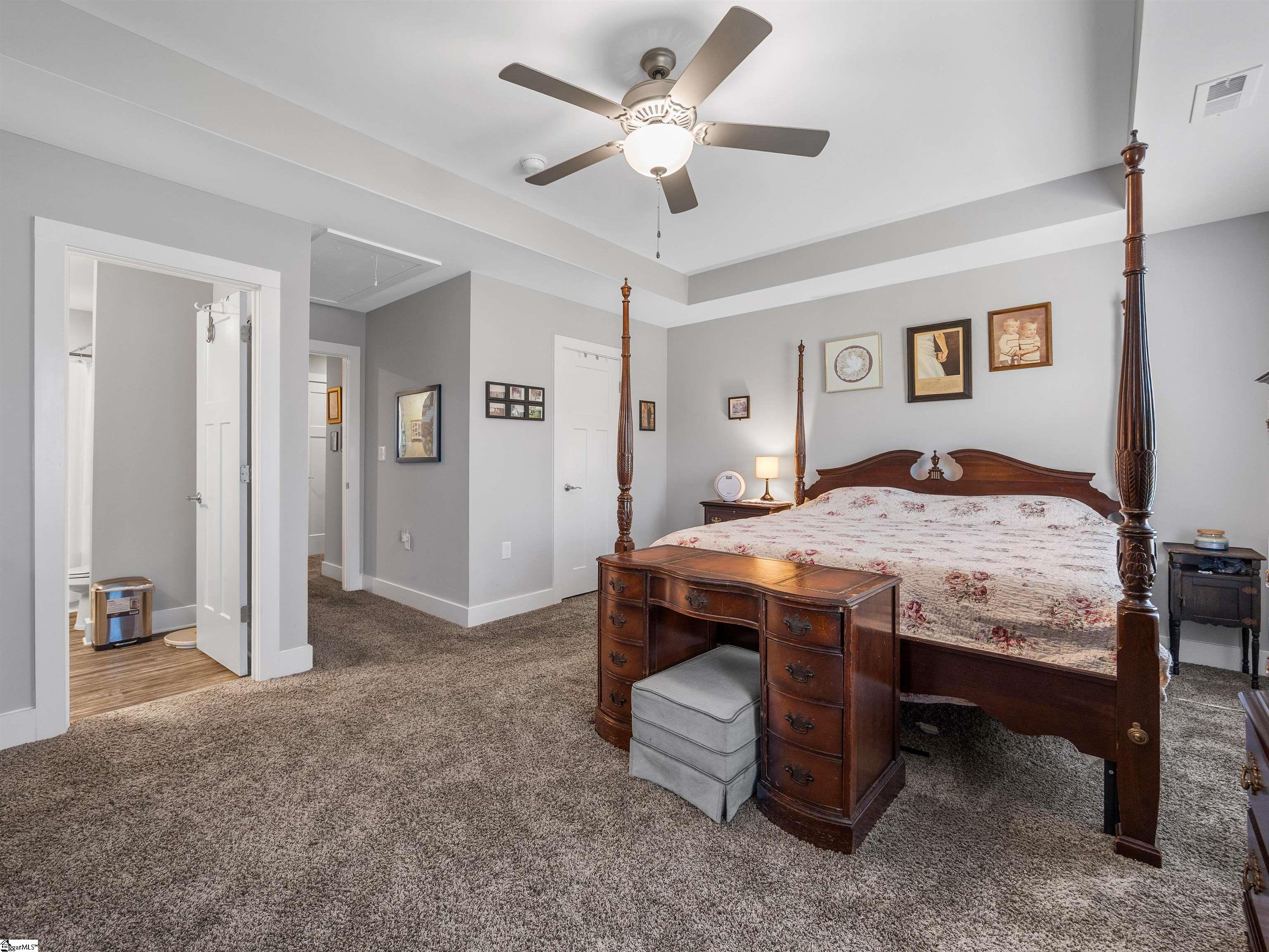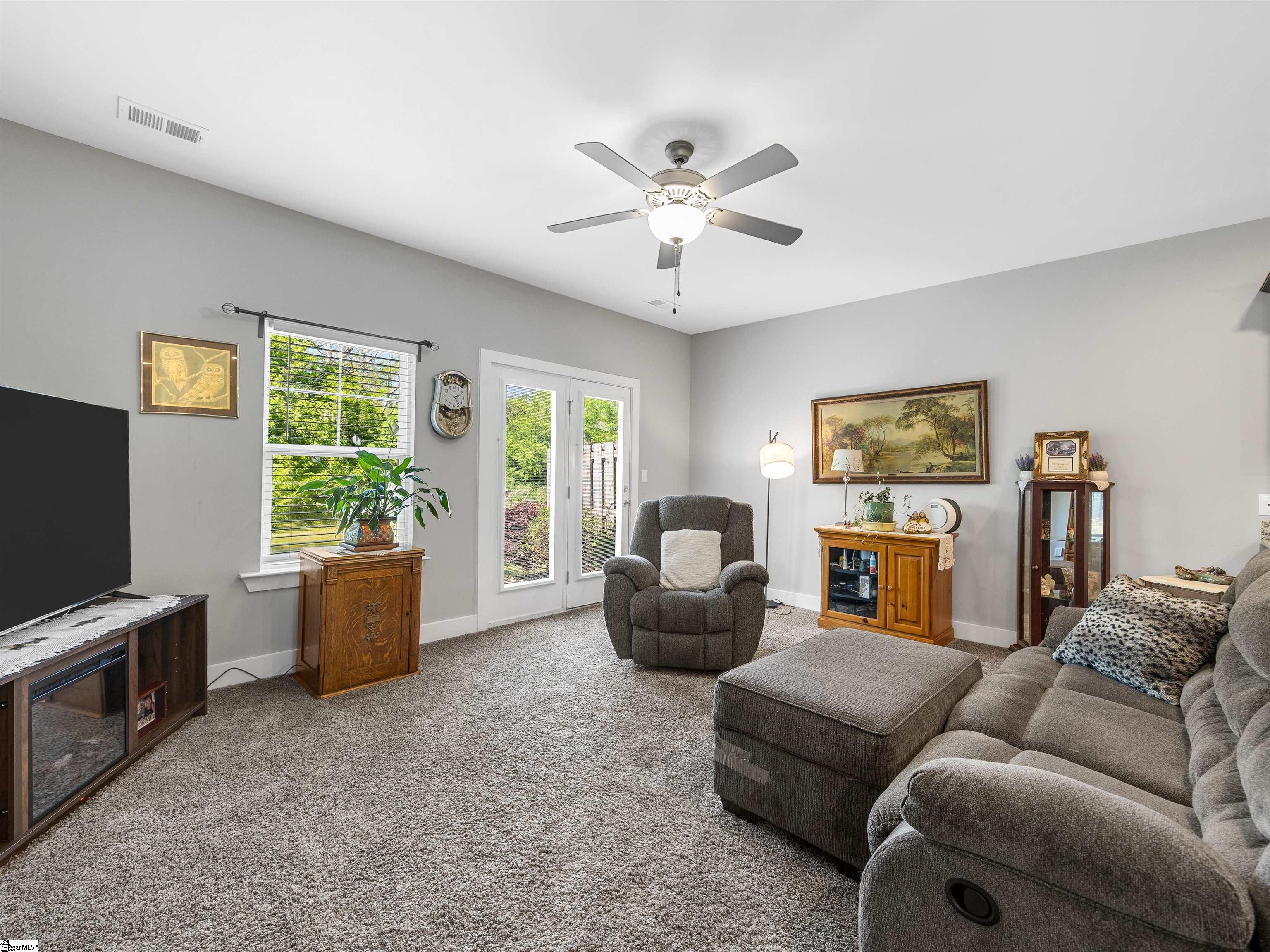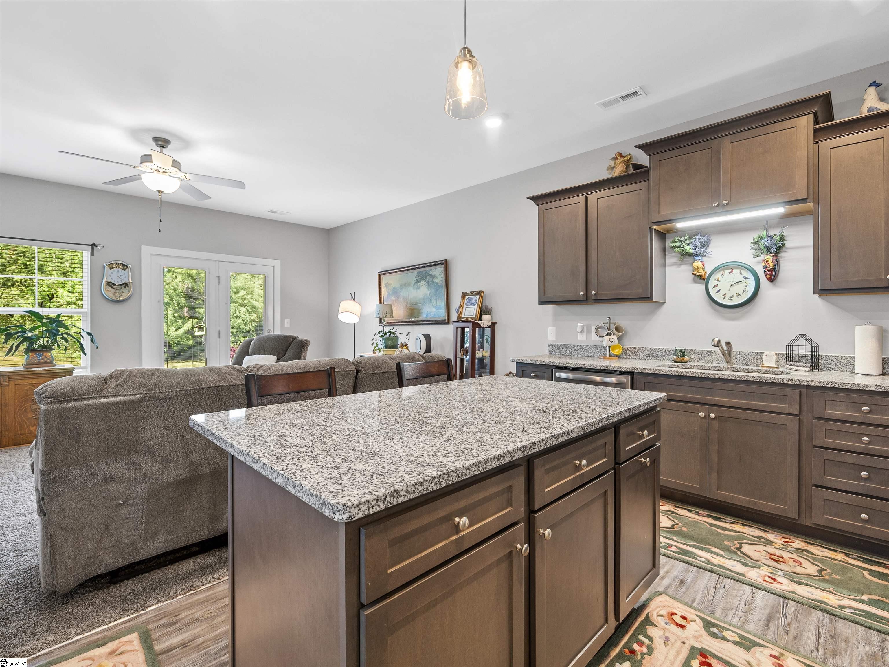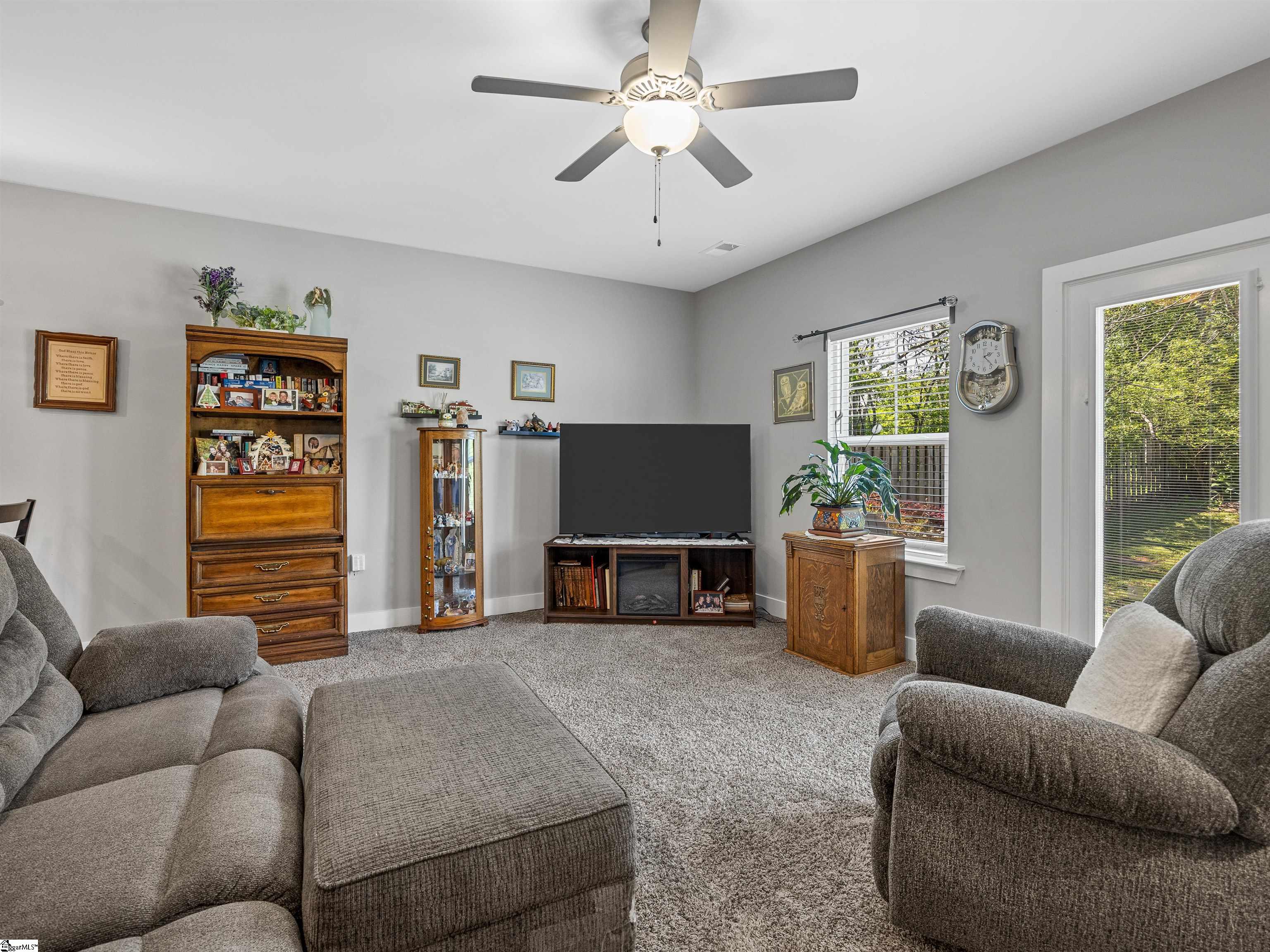Beautifully cared for townhome in the heart of Boiling Springs offering low-maintenance living without sacrificing style or space! This 3-bedroom, 2.5-bath home features approximately 1,561 square feet and an inviting open floor plan on the main level—perfect for everyday living and entertaining. The kitchen is well-appointed with granite countertops, a gas range, and stainless steel appliances, flowing seamlessly into the living, island seating, and a dining area. Additional main-level highlights include durable vinyl plank flooring, a convenient half bath, and a tankless water heater for efficiency. Upstairs, you’ll find a thoughtfully designed split-bedroom layout with two full bathrooms and a centrally located laundry area. The spacious primary suite boasts a trey ceiling, walk-in closet, and private bath, while the second bedroom also features its own walk-in closet. Carpet and padding on the second level are in like-new condition. Storage is abundant with attic space, an under-stair cubby, and a garage. Situated on a desirable corner end lot bordered by trees, this home offers added privacy and a peaceful setting. Enjoy all the benefits of homeownership without the upkeep—HOA covers exterior maintenance, lawn care, street lights, and termite treatment. Conveniently located off Highway 9 with easy access to I-85, I-26, and downtown Spartanburg, this move-in ready home combines comfort, convenience, and low-maintenance living. Don’t miss your opportunity to make it yours!