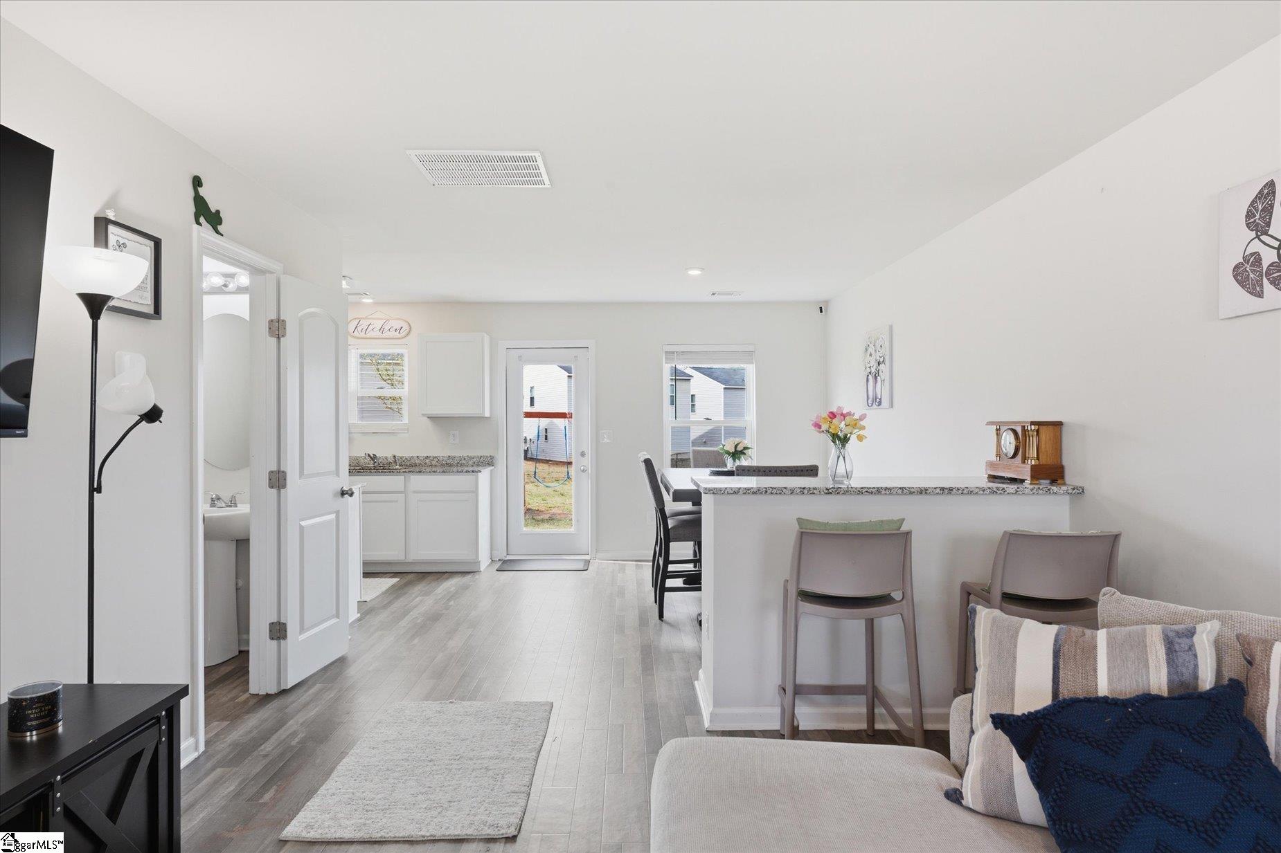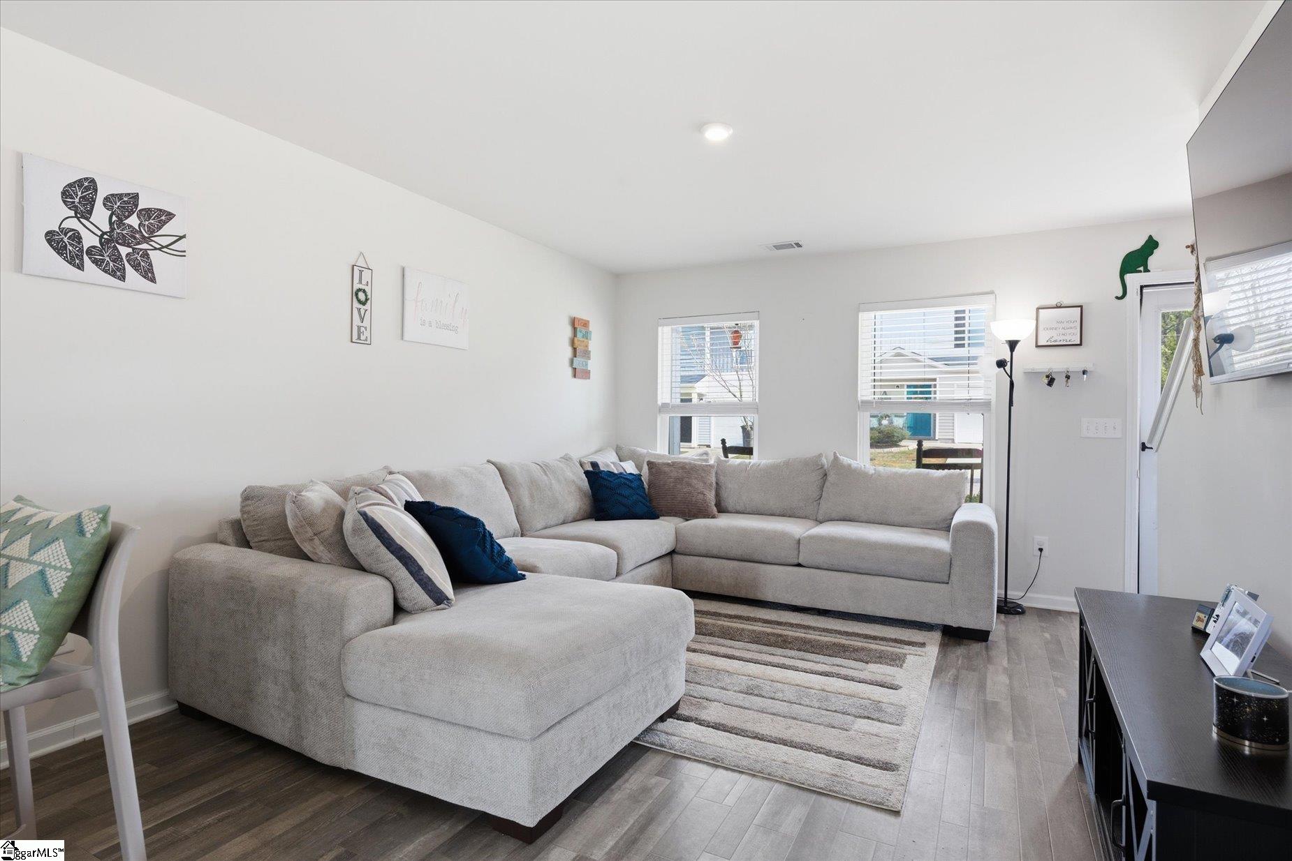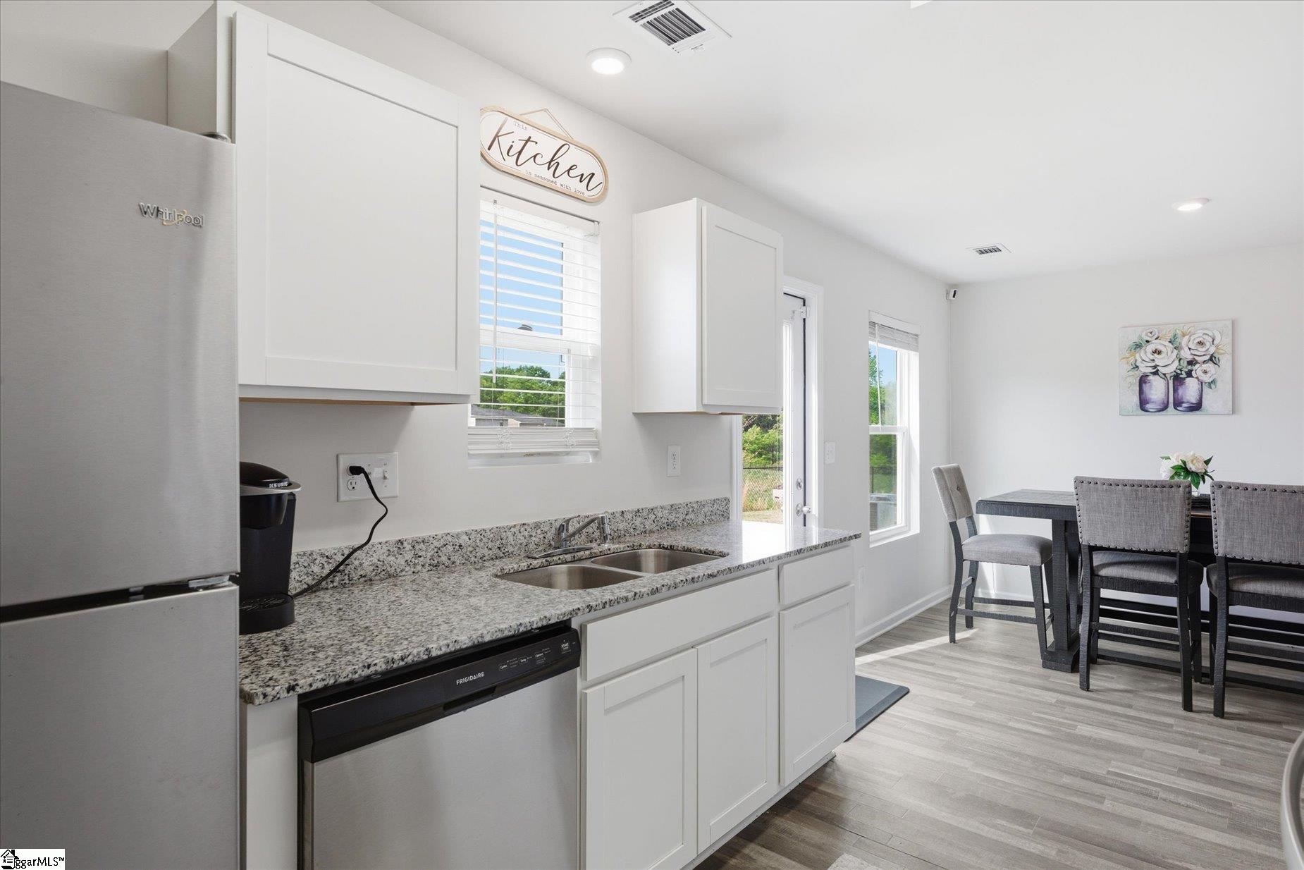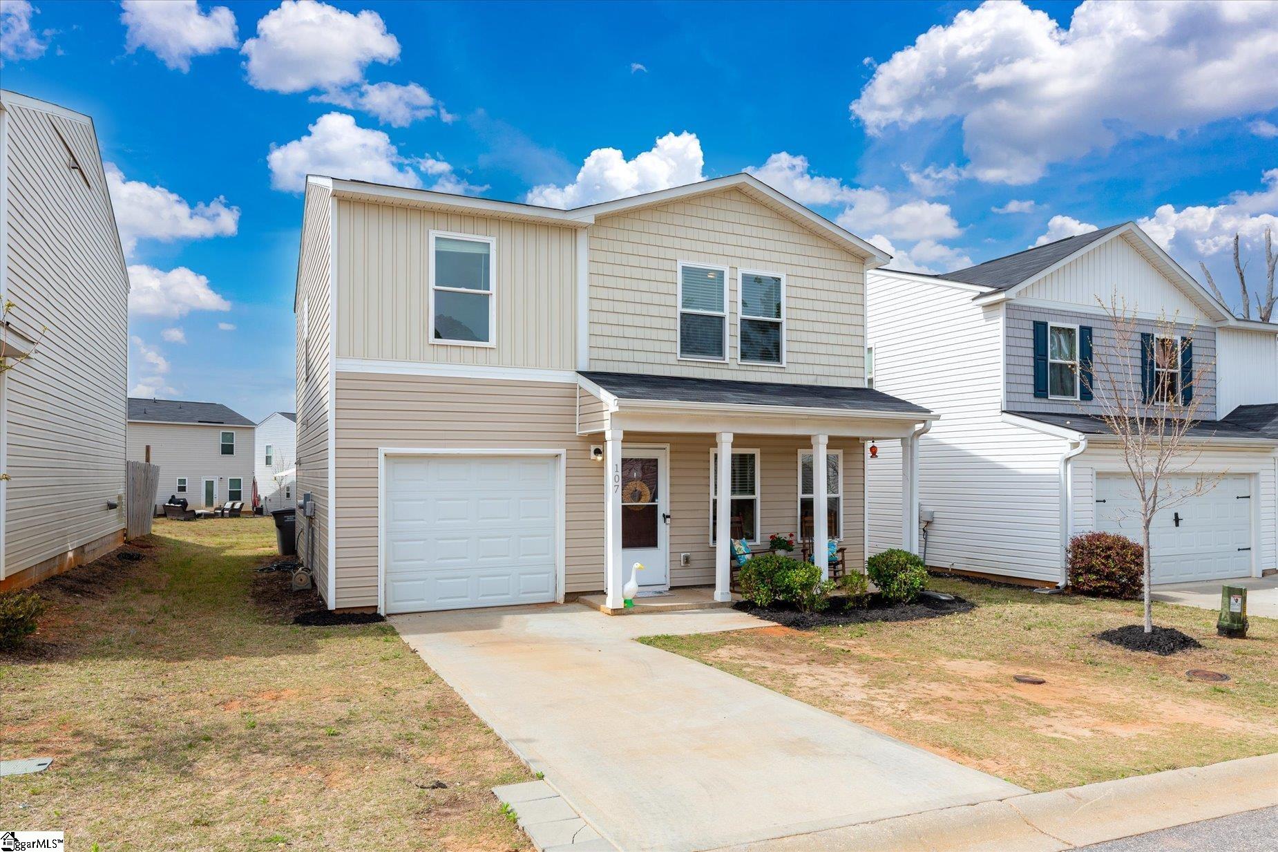 Have you been looking for a home real close to downtown Greenville for under 250K? It’s tough! Look no further; this adorable 3-bedroom, 2.5-bath home in the Main Street Village Subdivision is waiting on you! The home was built in 2021 and is in good shape. No need to worry about repairs and having to redo the whole house just to move in. The home is so cute; you will love the rocking chair front porch when you drive up. You will enjoy the 1-car garage for storage or for your complete with opener. Inside is a super nice great room with plenty of room for your sectional and windows for natural light. You will notice the flooring is luxury vinyl plank, and the entire home has ZERO carpet. The owners just spent a small fortune removing all the carpet on the second level and steps and replacing it with luxury vinyl flooring, a huge plus with kids and pets. The dining area is really nice; it has room for a big table and chairs and has an upgraded granite bar great for overflow from the table or a couple more seats for the table—a great addition. The kitchen is great, with nice cabinets and stainless appliances; the dishwasher is brand new. Counters are granite, which is an awesome upgrade. There is also a powder room on the first floor for your guest, and the laundry room is also located on the first floor. Upstairs you will find two bedrooms with a hall bath featuring a granite countertop and a tub-shower combo. The primary bedroom is very spacious with a full bath, double granite vanities, a tub-shower combo, and a walk-in closet. There is a nice flat backyard you can fence in if you desire; the sellers like the openness. Not sure if I mentioned the HOA takes care of all the lawn maintenance, so no cutting grass or worrying about the lawn. There are also street lights and garbage pickup included, all for only $80 a month. This is an incredible opportunity. You cannot beat the price, the floor plan, or the location—three huge wins. I am on standby to show you this great home. Call me directly for a private showing. I do not see this place sitting for long, so let’s go take a look before it’s GONE!