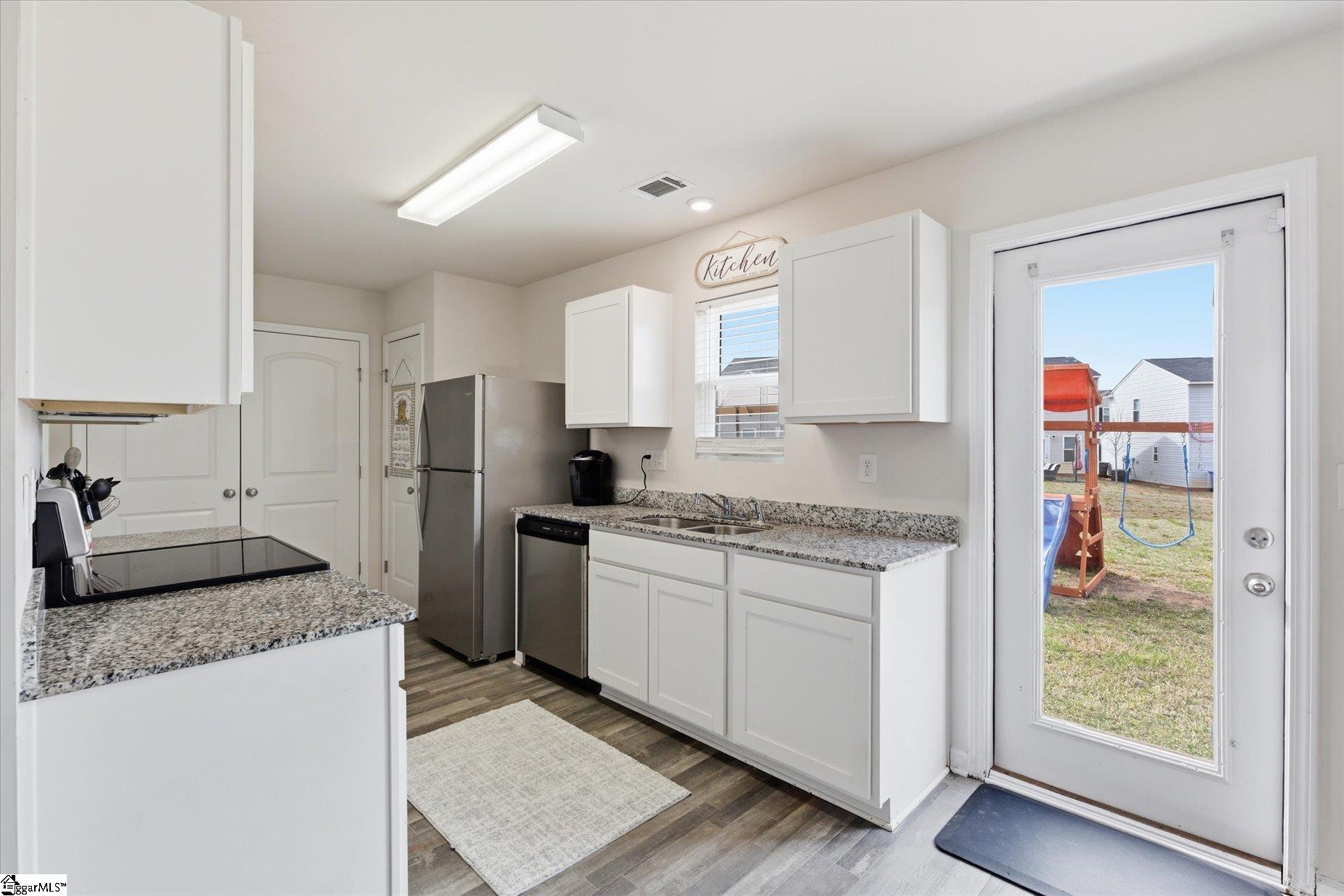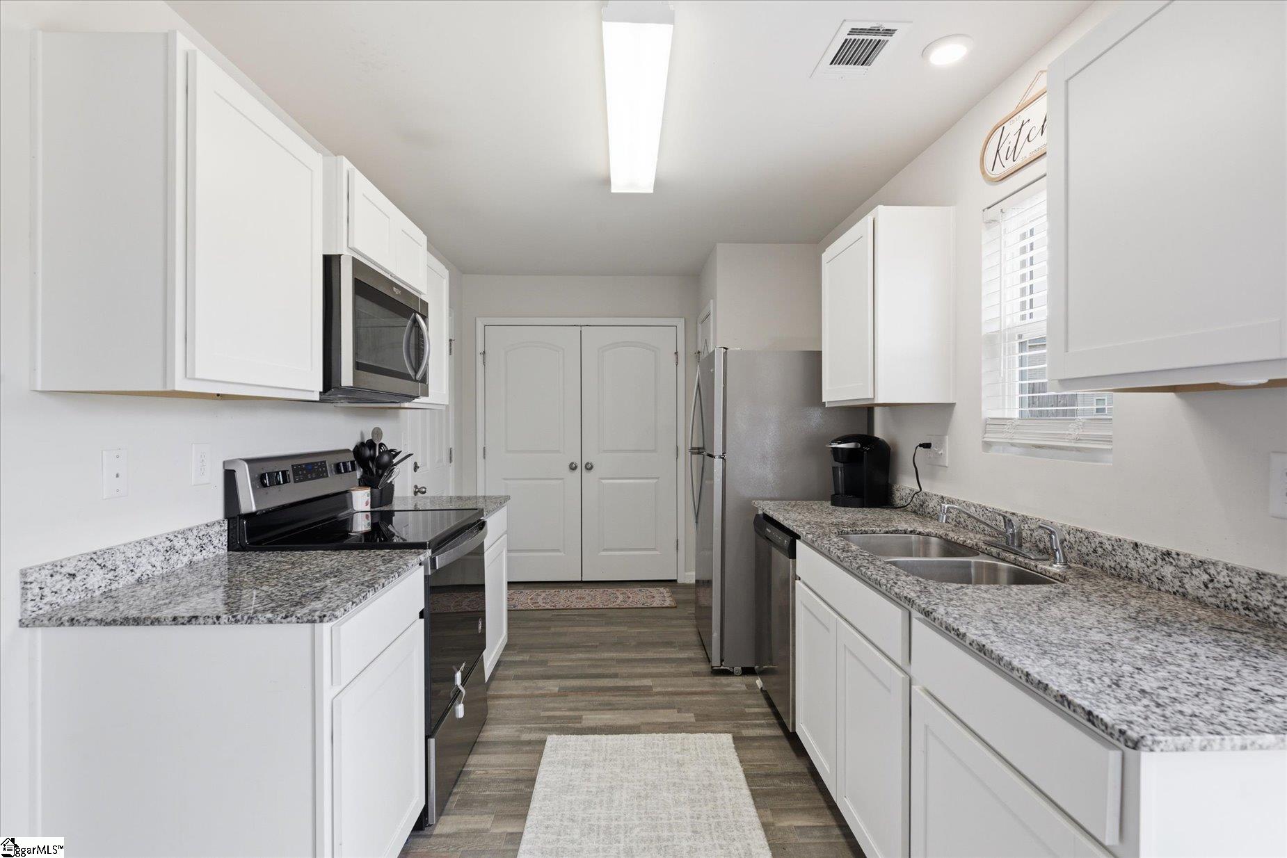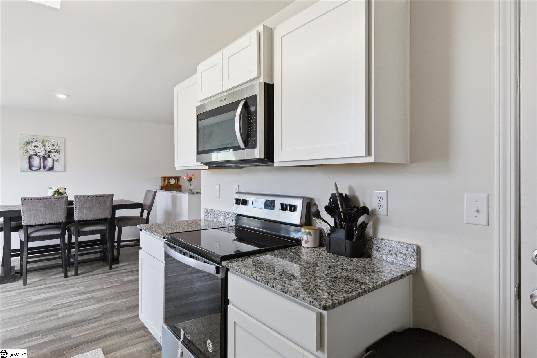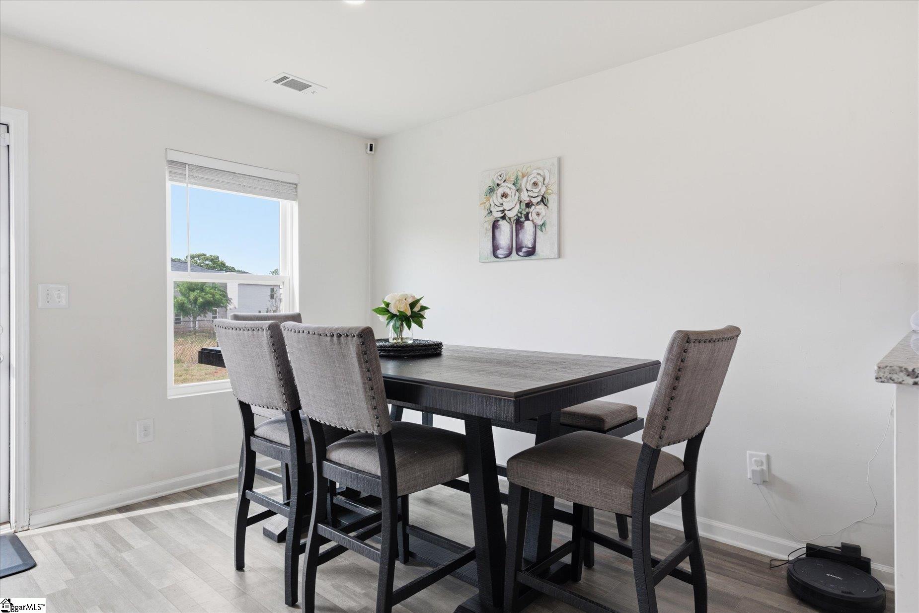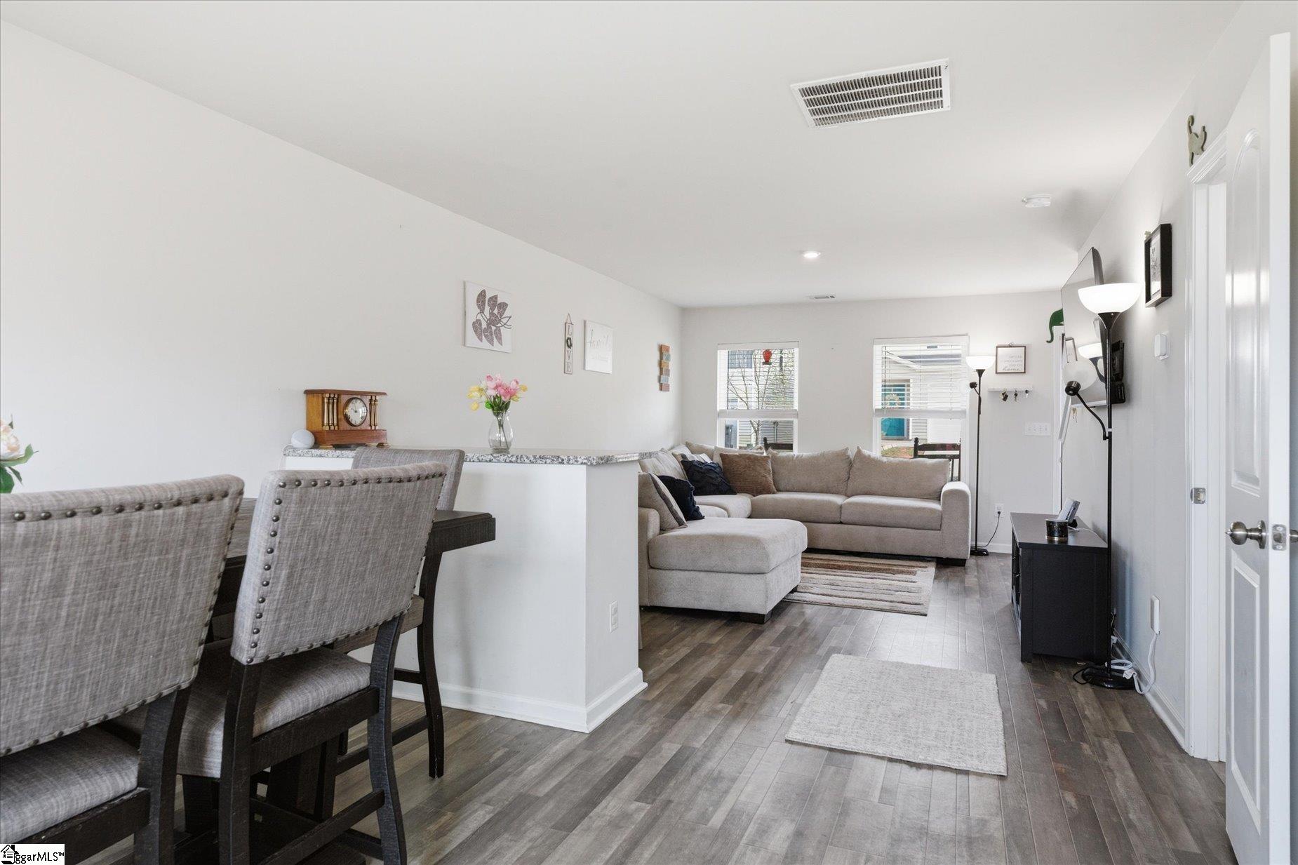 Have you been looking for a home real close to downtown Greenville for under 250K? It’s tough! Look no further; this adorable 3-bedroom, 2.5-bath home in the Main Street Village Subdivision is waiting on you! The home was built in 2021 and is in good shape. No need to worry about repairs and having to redo the whole house just to move in. The home is so cute; you will love the rocking chair front porch when you drive up. You will enjoy the 1-car garage for storage or for your complete with opener. Inside is a super nice great room with plenty of room for your sectional and windows for natural light. You will notice the flooring is luxury vinyl plank, and the entire home has ZERO carpet. The owners just spent a small fortune removing all the carpet on the second level and steps and replacing it with luxury vinyl flooring, a huge plus with kids and pets. The dining area is really nice; it has room for a big table and chairs and has an upgraded granite bar great for overflow from the table or a couple more seats for the table—a great addition. The kitchen is great, with nice cabinets and stainless appliances; the dishwasher is brand new. Counters are granite, which is an awesome upgrade. There is also a powder room on the first floor for your guest, and the laundry room is also located on the first floor. Upstairs you will find two bedrooms with a hall bath featuring a granite countertop and a tub-shower combo. The primary bedroom is very spacious with a full bath, double granite vanities, a tub-shower combo, and a walk-in closet. There is a nice flat backyard you can fence in if you desire; the sellers like the openness. Not sure if I mentioned the HOA takes care of all the lawn maintenance, so no cutting grass or worrying about the lawn. There are also street lights and garbage pickup included, all for only $80 a month. This is an incredible opportunity. You cannot beat the price, the floor plan, or the location—three huge wins. I am on standby to show you this great home. Call me directly for a private showing. I do not see this place sitting for long, so let’s go take a look before it’s GONE!