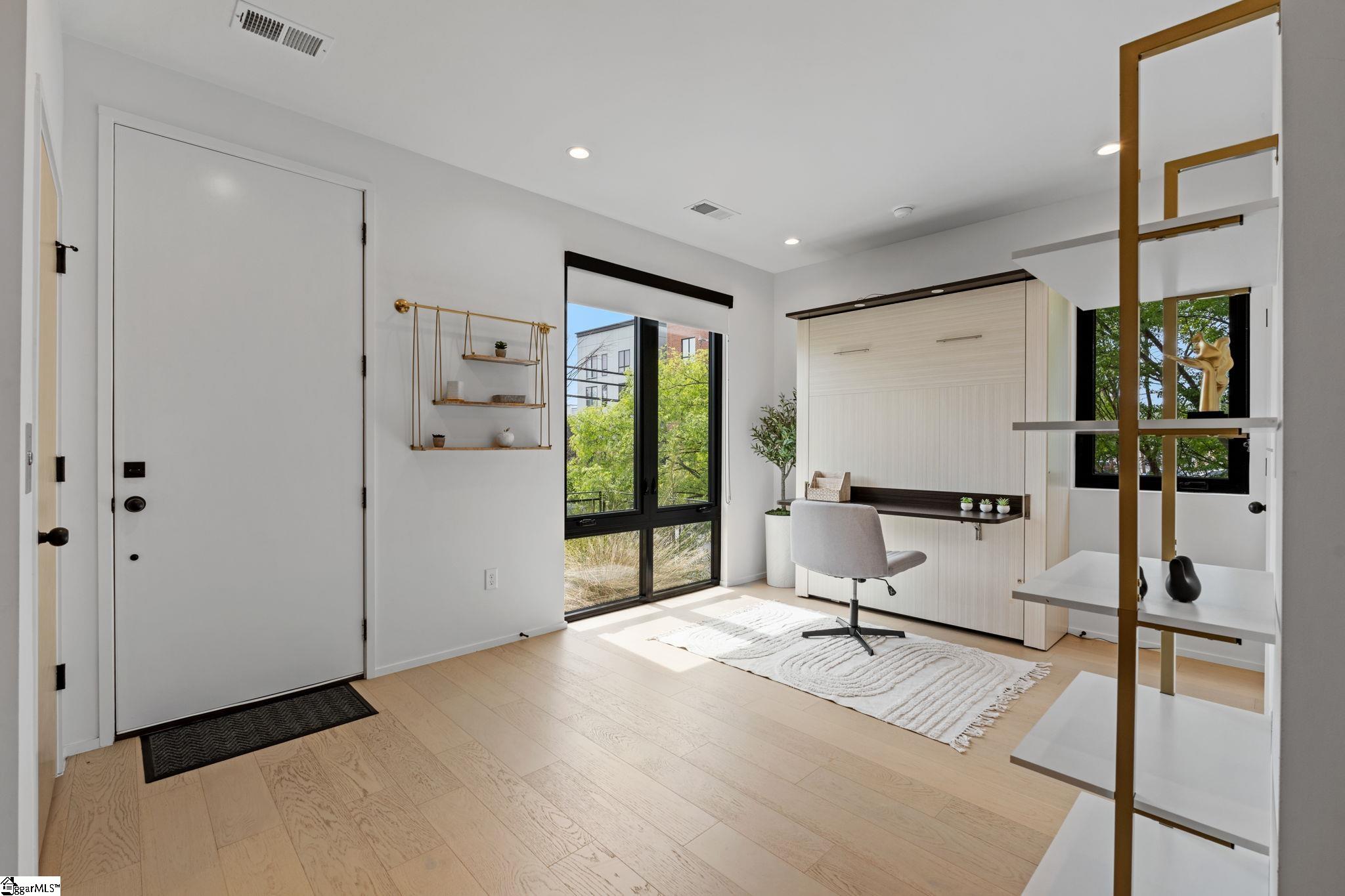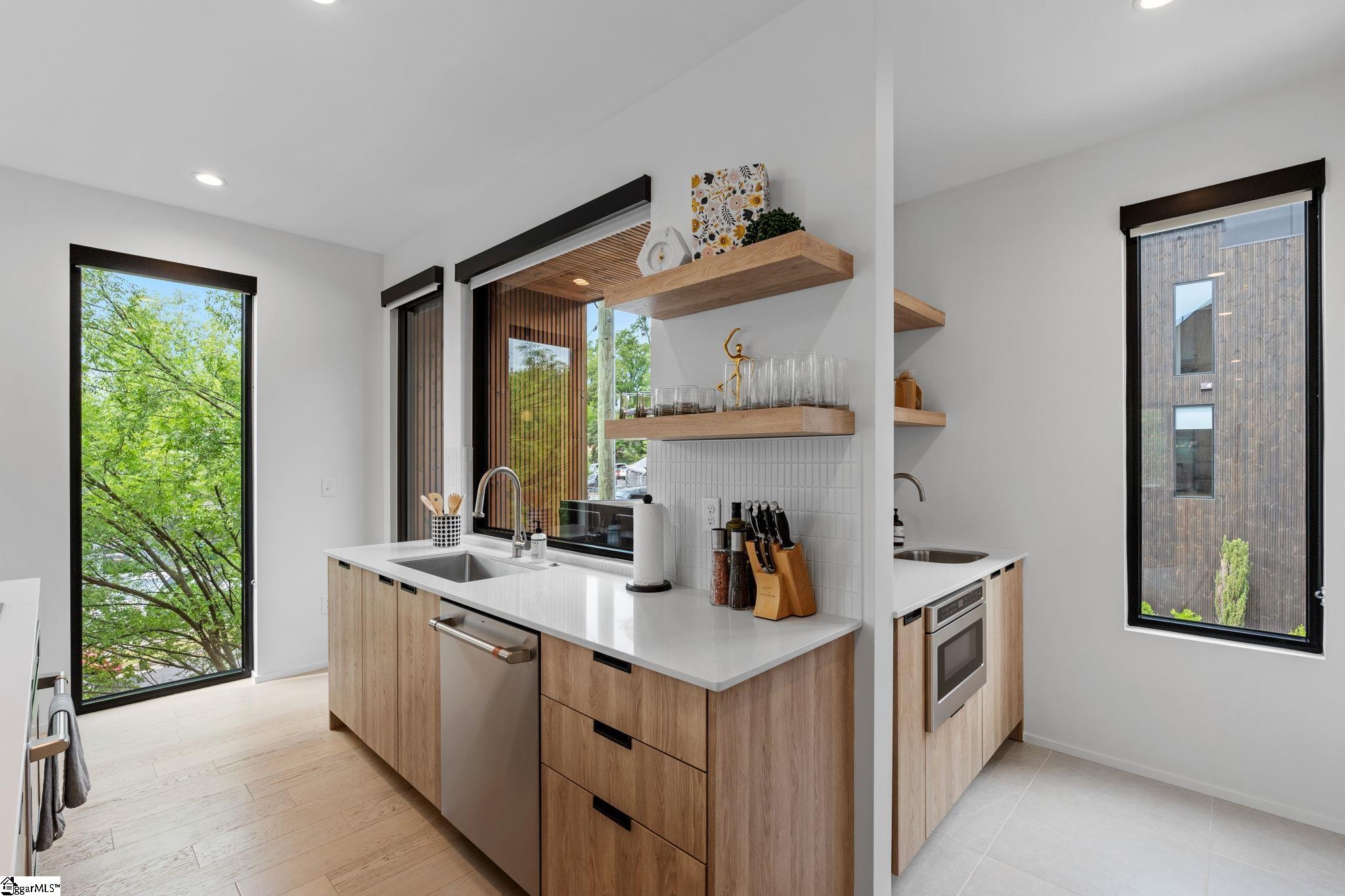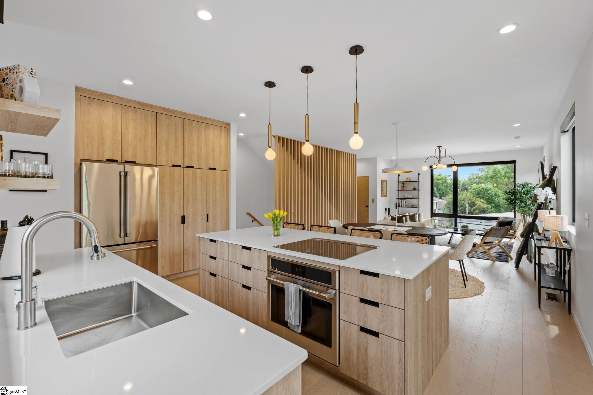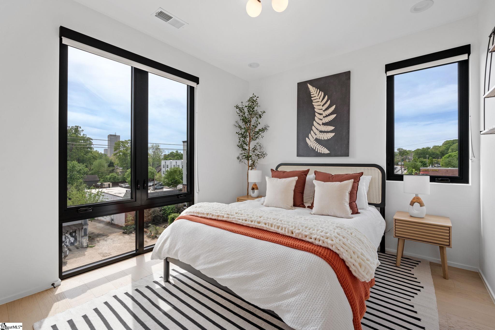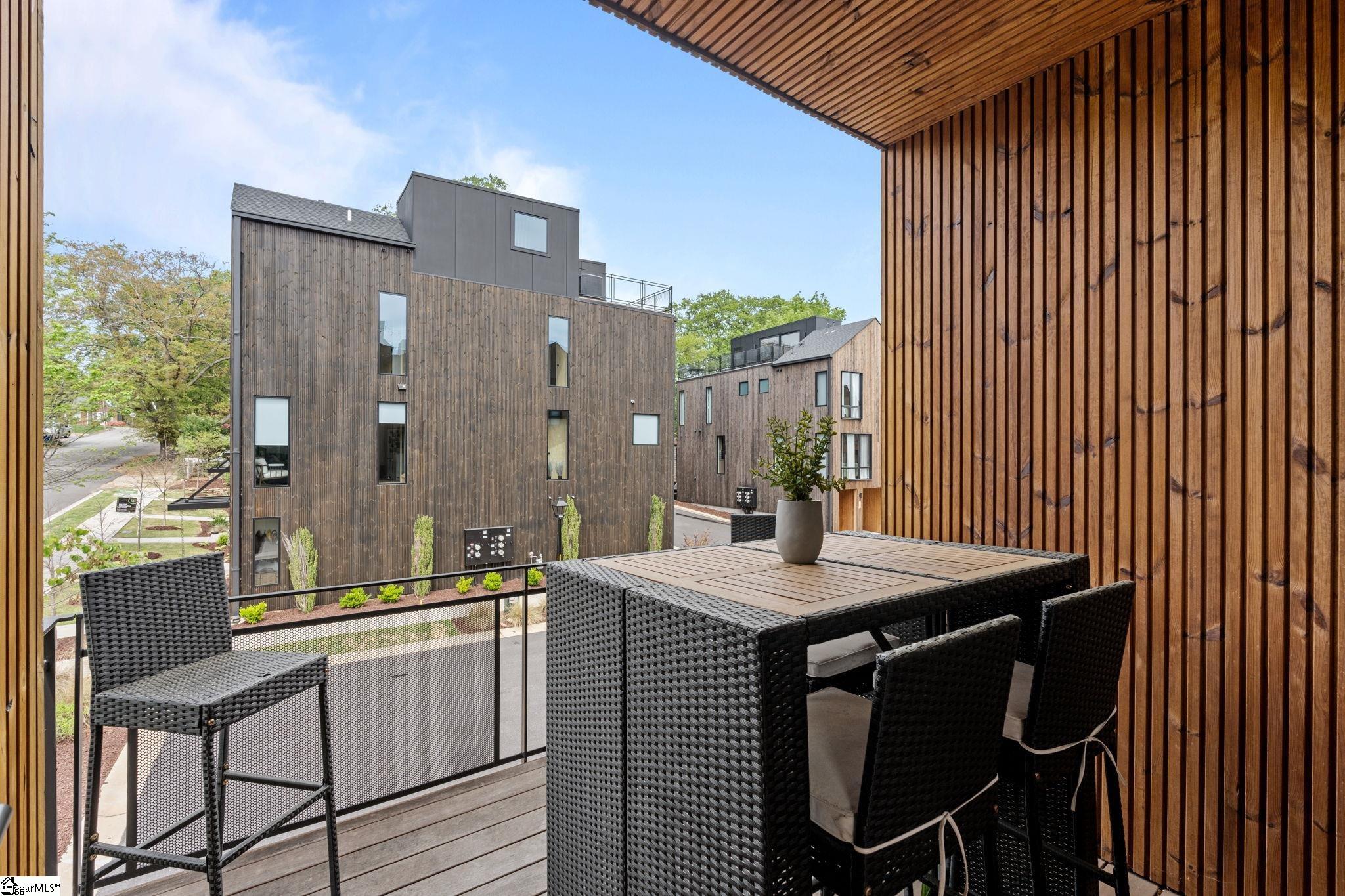 Elevated Scandinavian-inspired urban living meets a calm, modern retreat in this end-unit Downtown Greenville townhome, offered fully furnished and move-in ready. As a second residence, this home is basically a brand new construction. This 3 bedroom, 3.5 bath, 2,081 sqft home features a private elevator, bespoke cabinetry, and high-end thermally broken aluminum windows that fill the home with natural light. You can feel the intention in the curated interior design of the home, designed from the furniture to the dinnerware. The layout offers flexible living, a two-car garage, and HOA-maintained exterior for low-maintenance ownership. A rooftop terrace showcases stunning sunset views over downtown—perfect for entertaining or unwinding above the city. Ideally located between Earle Street and Main Street, this property is well-suited as a primary residence, lock and leave second home or investment opportunity. Coffee shops, restaurants, grocery store and even boutique shopping all walkable from this home. Morning walks on Earle and downtown walks for dinner, what could be better?
