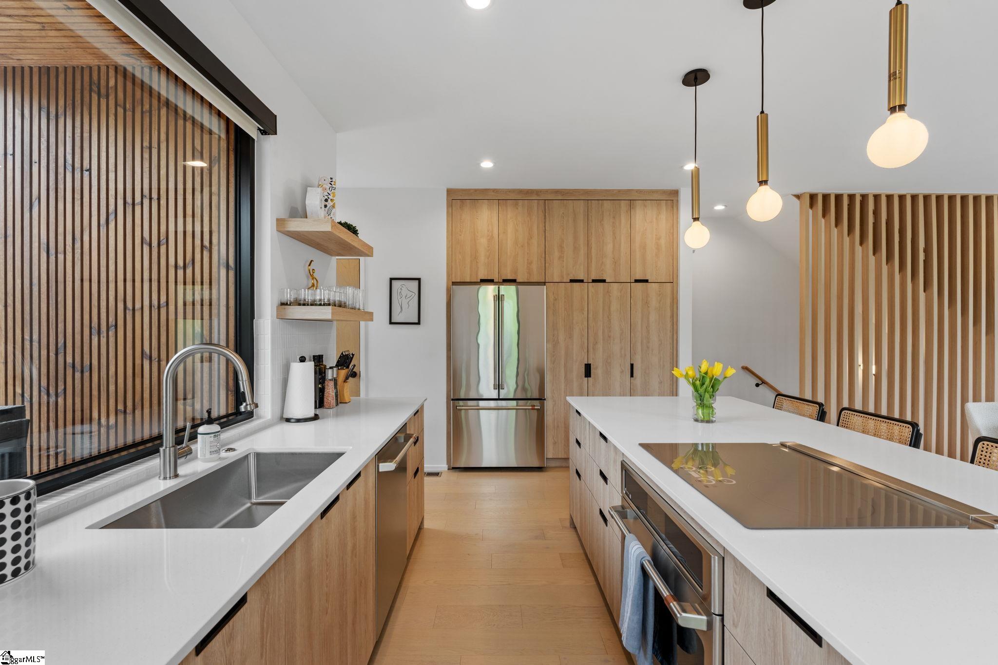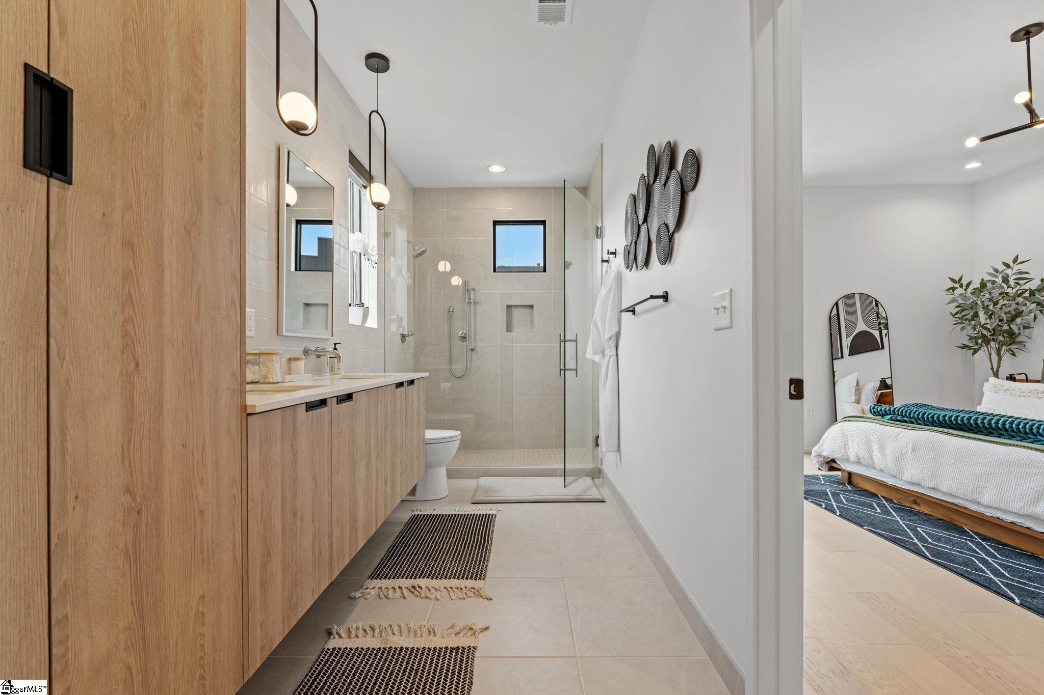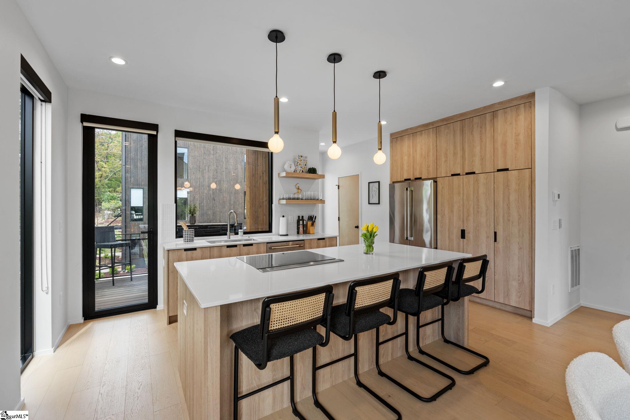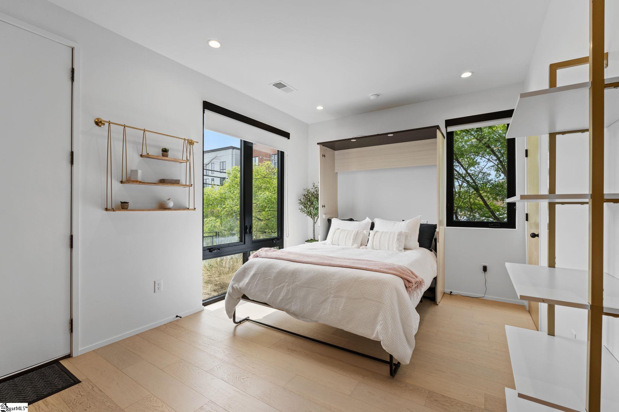 Elevated Scandinavian-inspired urban living meets a calm, modern retreat in this end-unit Downtown Greenville townhome, offered fully furnished and move-in ready. As a second residence, this home is basically a brand new construction. This 3 bedroom, 3.5 bath, 2,081 sqft home features a private elevator, bespoke cabinetry, and high-end thermally broken aluminum windows that fill the home with natural light. You can feel the intention in the curated interior design of the home, designed from the furniture to the dinnerware. The layout offers flexible living, a two-car garage, and HOA-maintained exterior for low-maintenance ownership. A rooftop terrace showcases stunning sunset views over downtown—perfect for entertaining or unwinding above the city. Ideally located between Earle Street and Main Street, this property is well-suited as a primary residence, lock and leave second home or investment opportunity. Coffee shops, restaurants, grocery store and even boutique shopping all walkable from this home. Morning walks on Earle and downtown walks for dinner, what could be better?