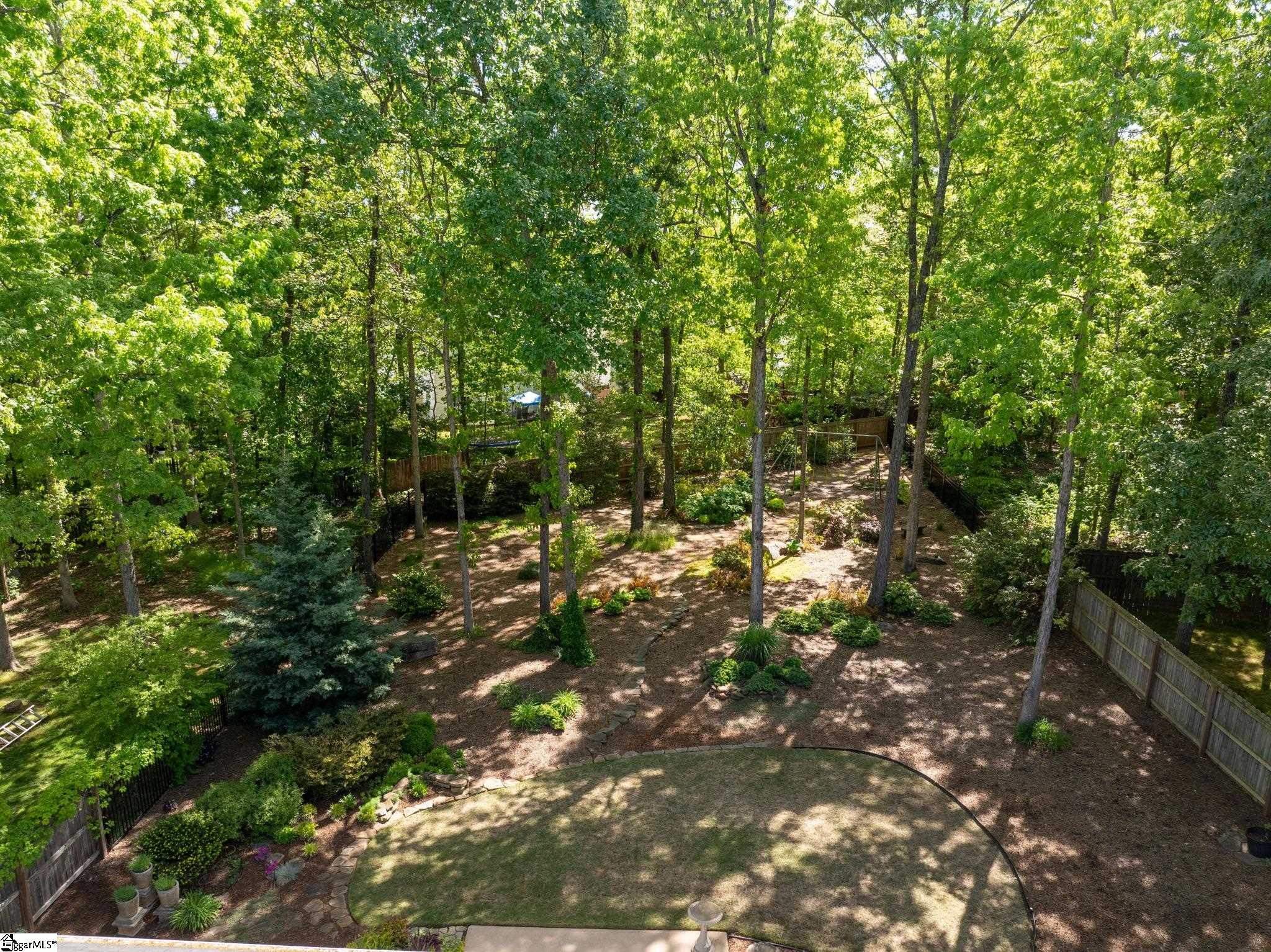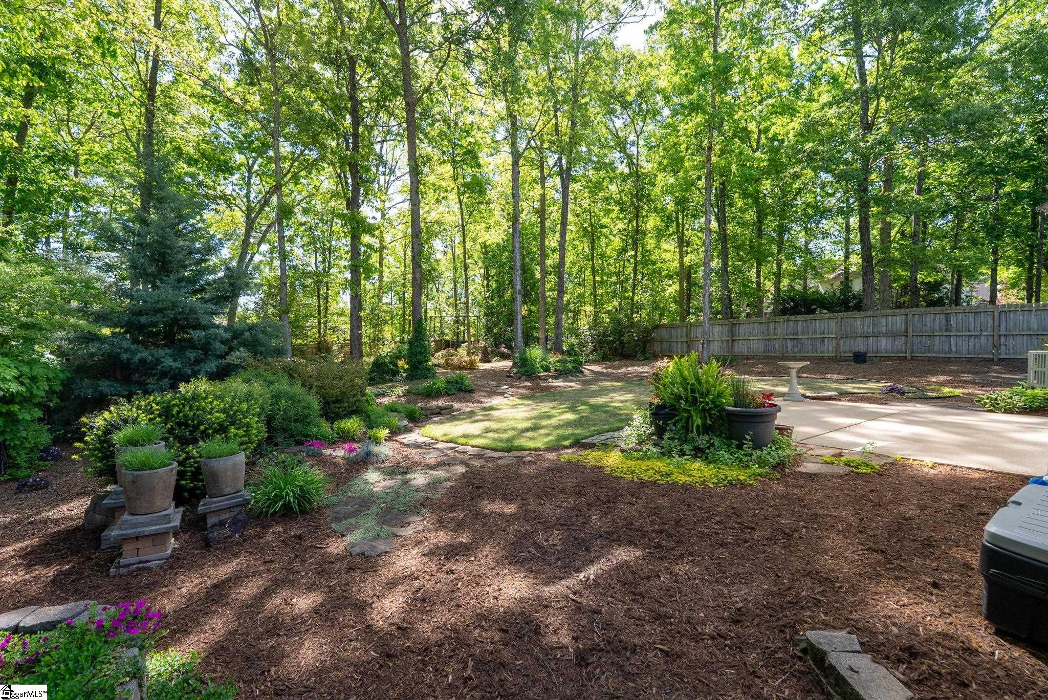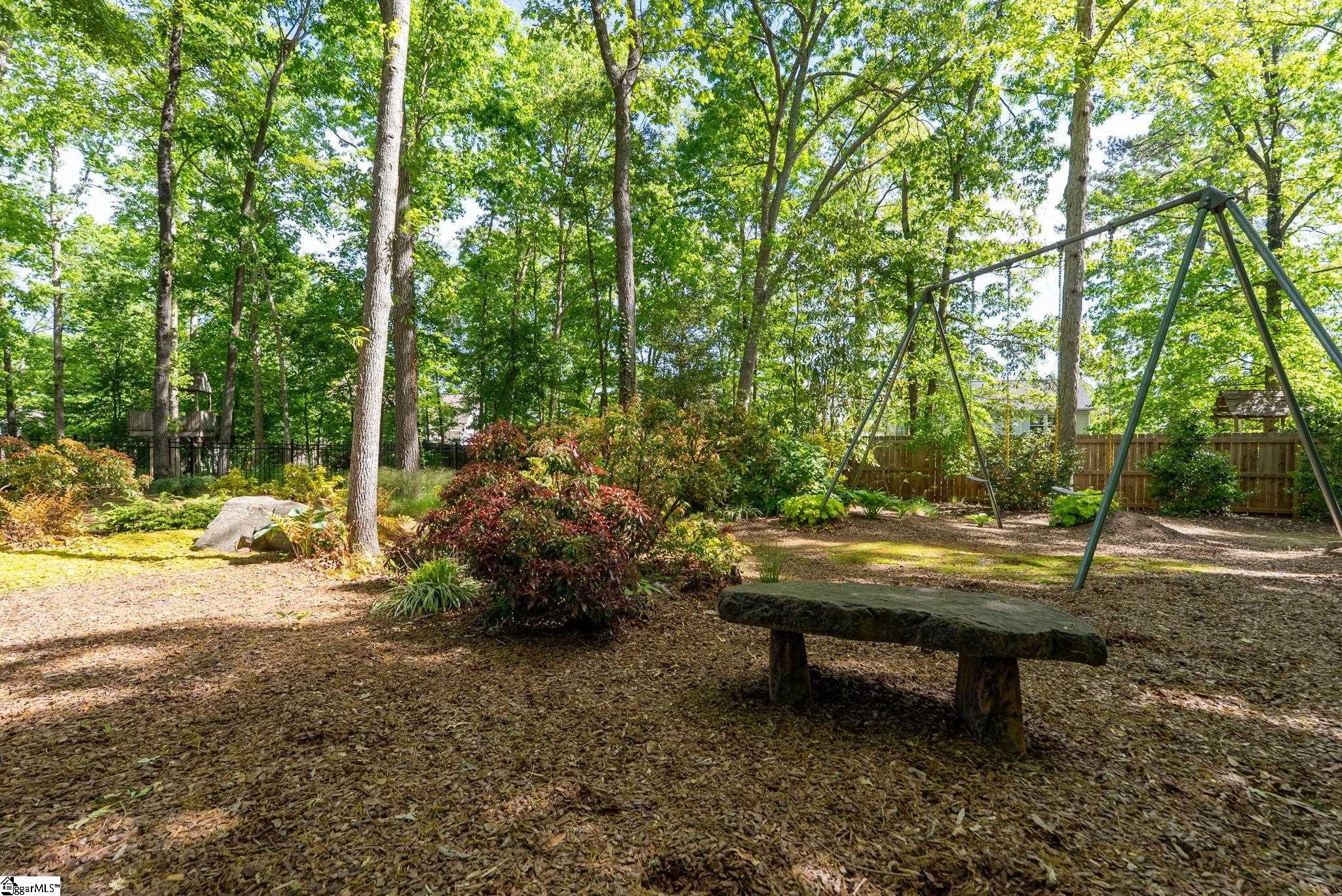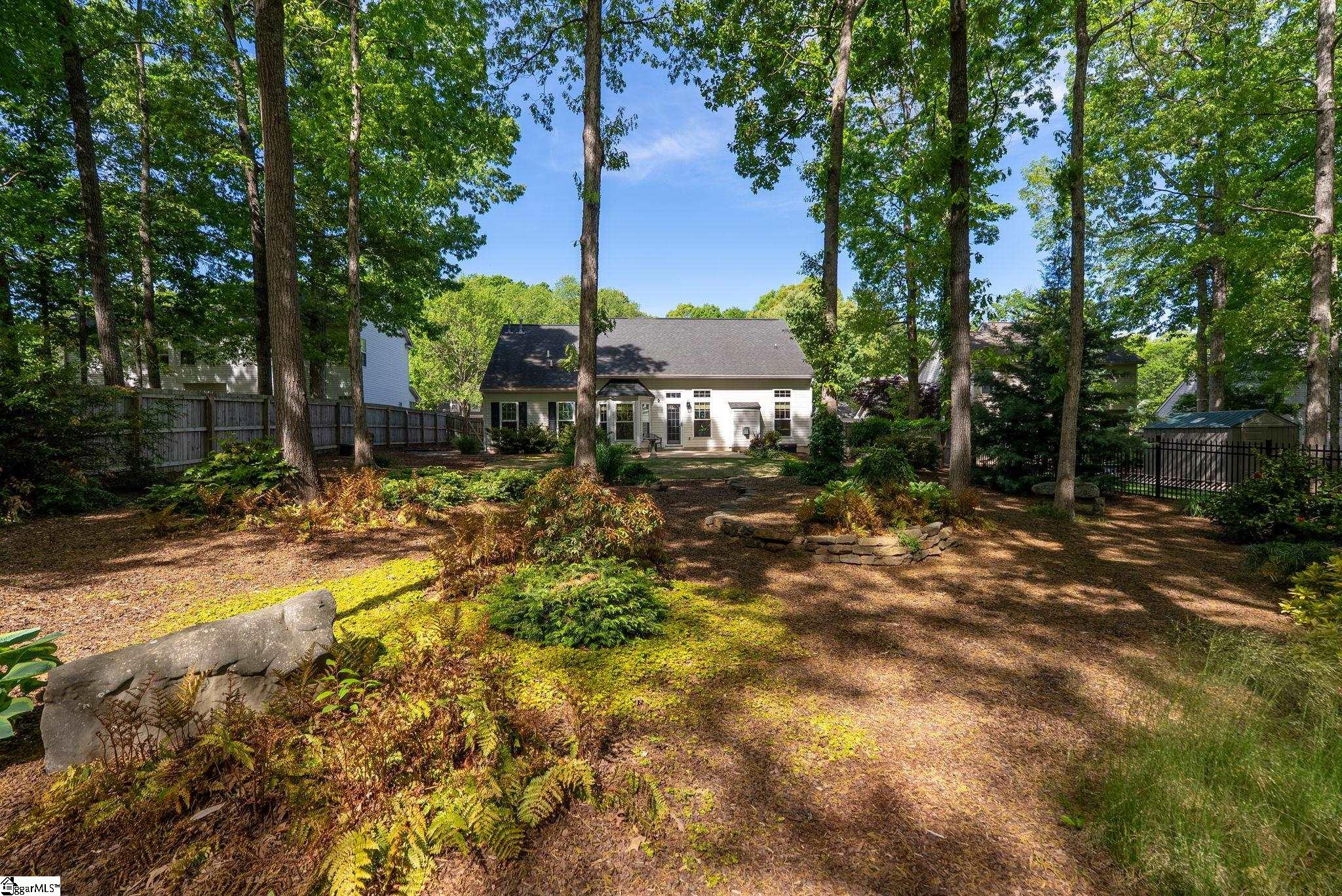 Why go to the park when you can have a park in your own backyard?! Welcome to 107 Moncton Place in the desirable Windsor Forest community in Simpsonville. This meticulously maintained brick one level+bonus home sits on a gorgeous lot with an incredibly designed backyard. Inside, you’ll find a beautiful living area with 10 ft ceilings, a wall of windows crowned with additional transom lighting, gas vented fireplace, and hardwood floors. There’s a large formal dining area with a lovely chandelier, chair rail, and crown molding, and a cozy breakfast nook that overlooks the yard through a canted bay window. The kitchen features granite countertops, maple cabinetry, stainless steel appliances (2025), and stool seating. The kitchen sits with an open view of the surrounding living areas, perfect for hosting, or quiet weekends together at home. There are three bedrooms on the main floor. The spacious primary suite is tucked away and feels like the respite it should be, with a wonderful view of the backyard, garden tub and shower, and sizable walk-in closet. The other two bedrooms have well apportioned closet spaces, and are conveniently located beside the full hall bathroom. Upstairs is a fantastic bonus that would function well as a bedroom, guest room, media space, or take advantage of the built-in recessed desk for your office. The attic space is extensive, with large amounts of shelving and storage, that continues over the garage, with easy access to the tankless gas water heater and furnace. The laundry room has upper cabinets and comes furnished with the washer and dryer. If you aren’t swooning already, you will be when you step onto the patio. The backyard is a stunning retreat, brimming with native plants, boulders, hard-scapes, and blooms. It really is a gardener’s dream and will make those without a ‘green thumb’ reconsider their position on the matter. Fully-fenced, thoughtfully designed, and matured to perfection, this outdoor space has plenty of lawn for playing and a commercial grade swing set that will delight the child in all of us. There’s plenty of room for parking on the concrete driveway (2018) or in the 2 car garage (with workbench!) Seller has made consistent upgrades from windows to HVAC, making this a wonderful opportunity to live with: award-winning schools, convenience to downtown Simpsonville and Five Forks amenities, neighborhood pool, and community recreation trails. Life is for living, and 107 Moncton is an invitation to live well!